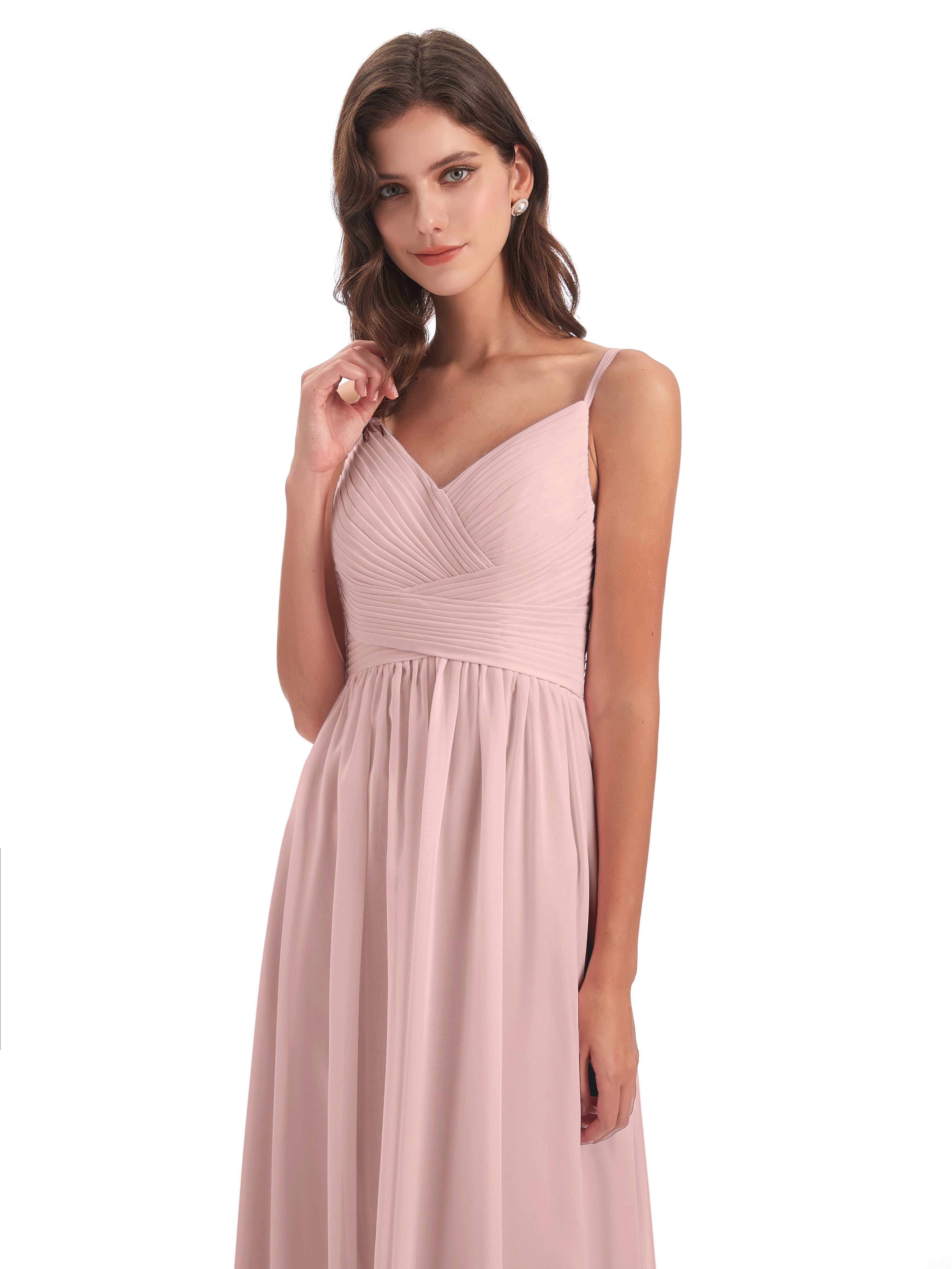 Dusty Rose Bridesmaid Dress Poppy Simple Spaghetti Straps Pleating Long Bridesmaid Dresses