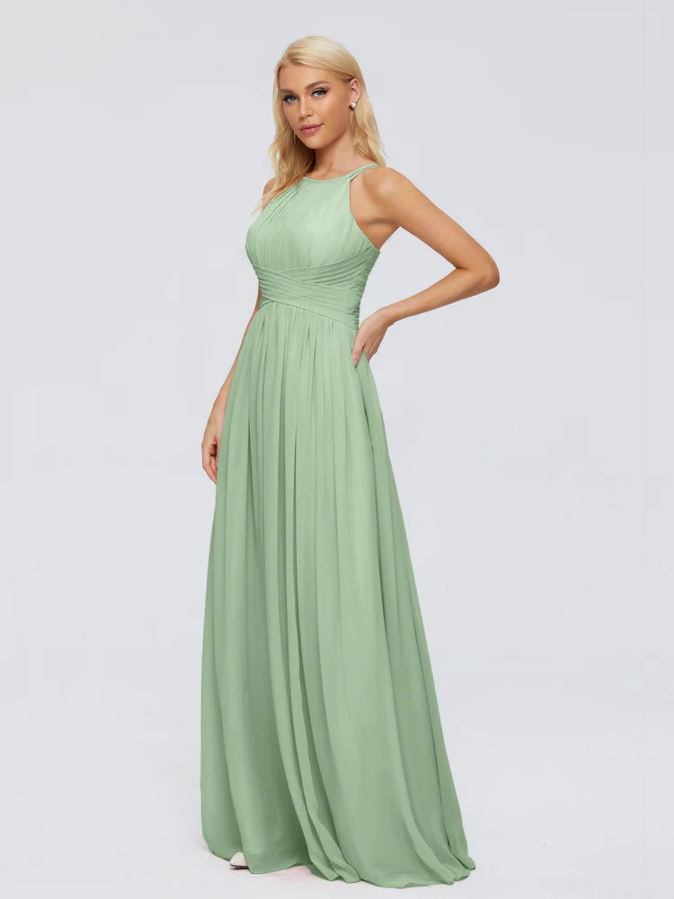 Dusty Sage Bridesmaid Dress Bridesmaid Dresses Sara Modest Ruched Chiffon Bridesmaid Dresses Long Halter Bridesmaid Dress