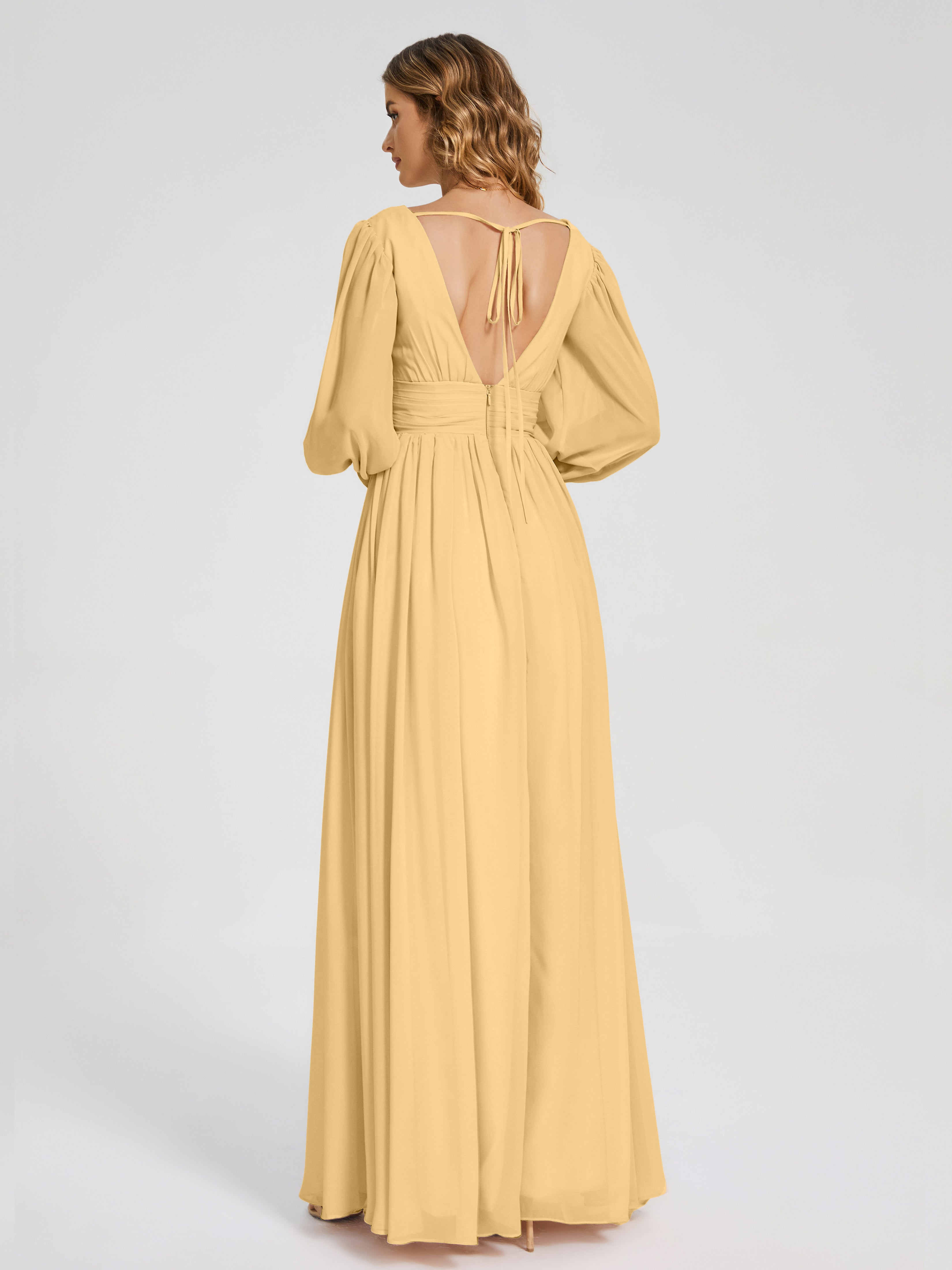 Gold Bridesmaid Dresses With Sleeves Journey Long Sleeves Split Chiffon Bridesmaid Dresses