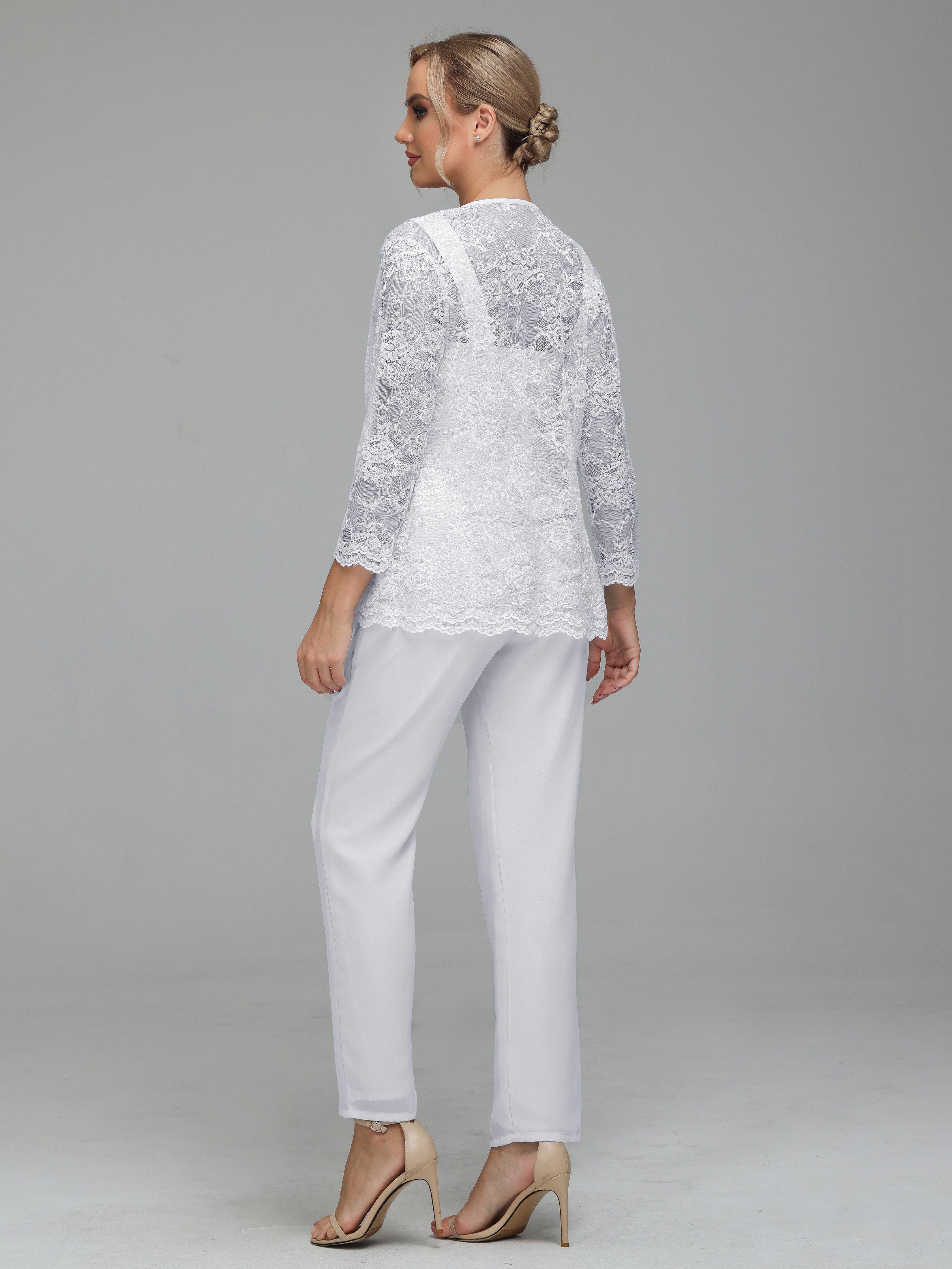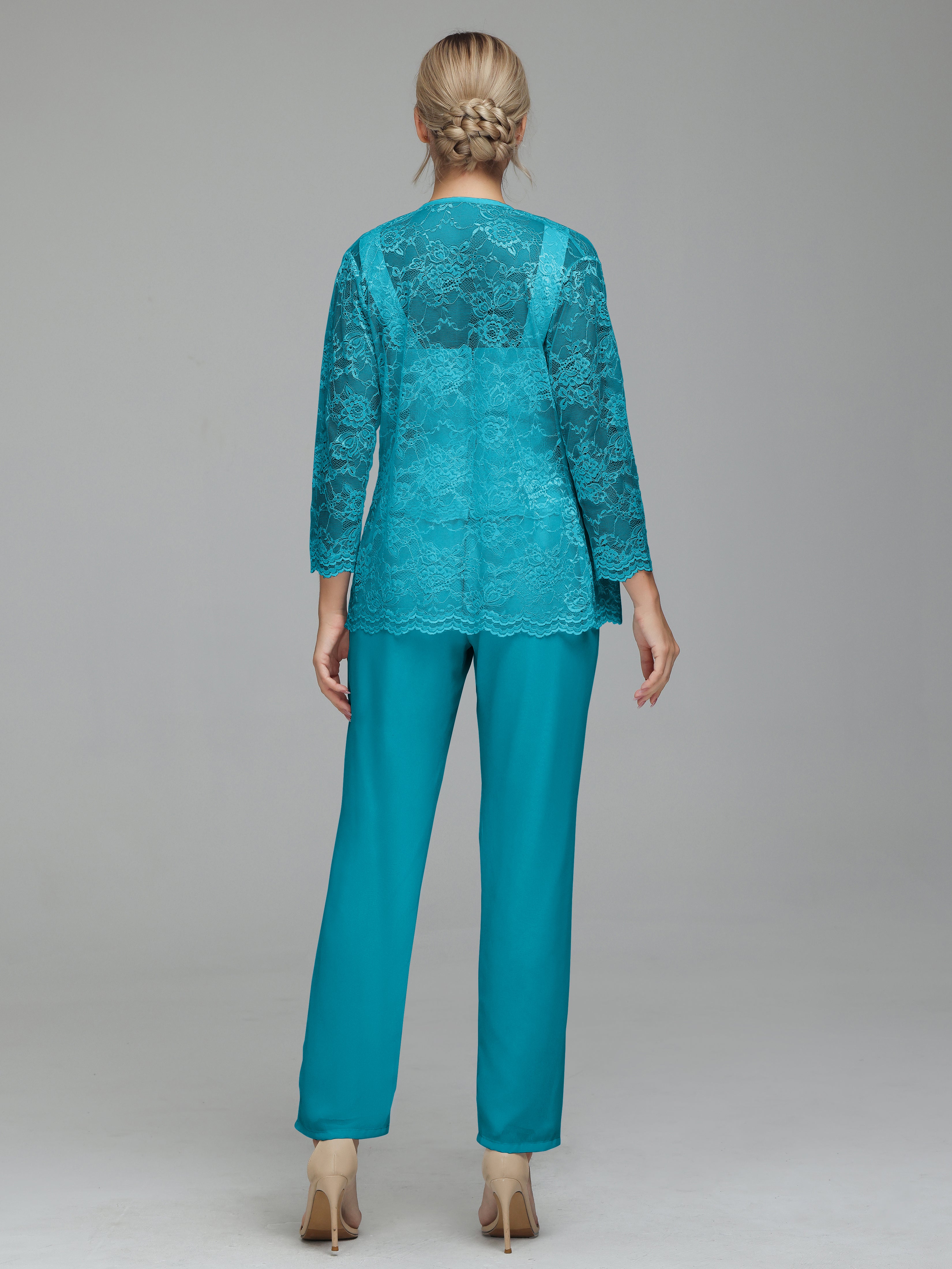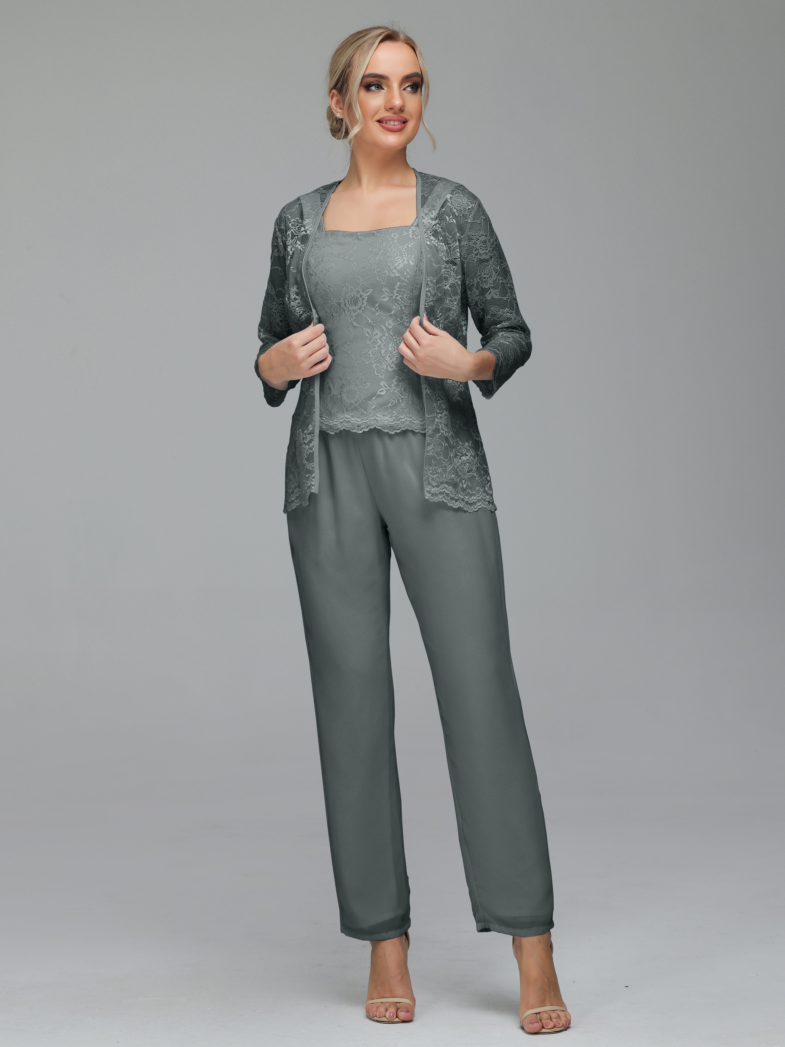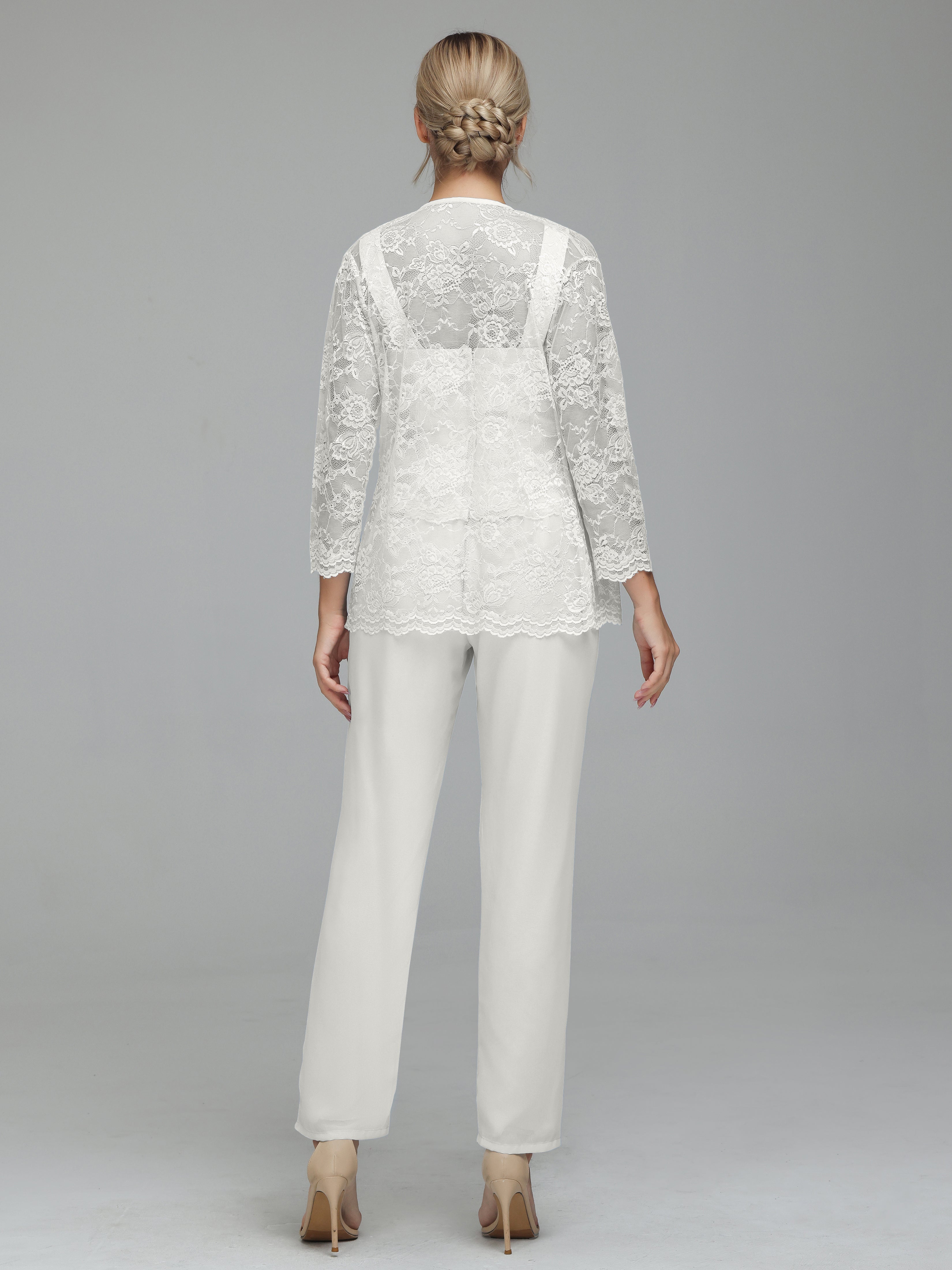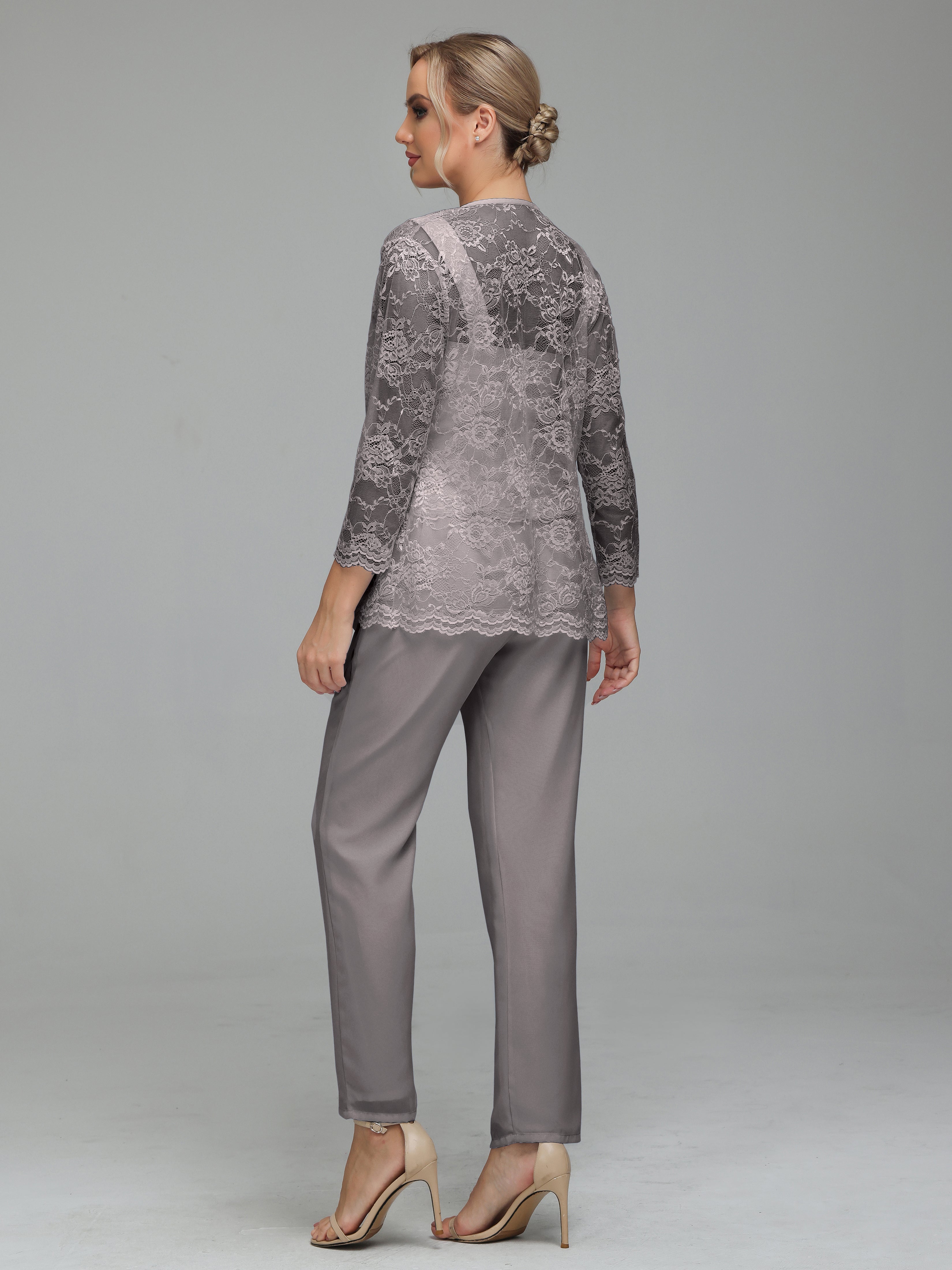 Graceful 3 Pieces Lace Chiffon Mother of Bride Dress Pant Suits