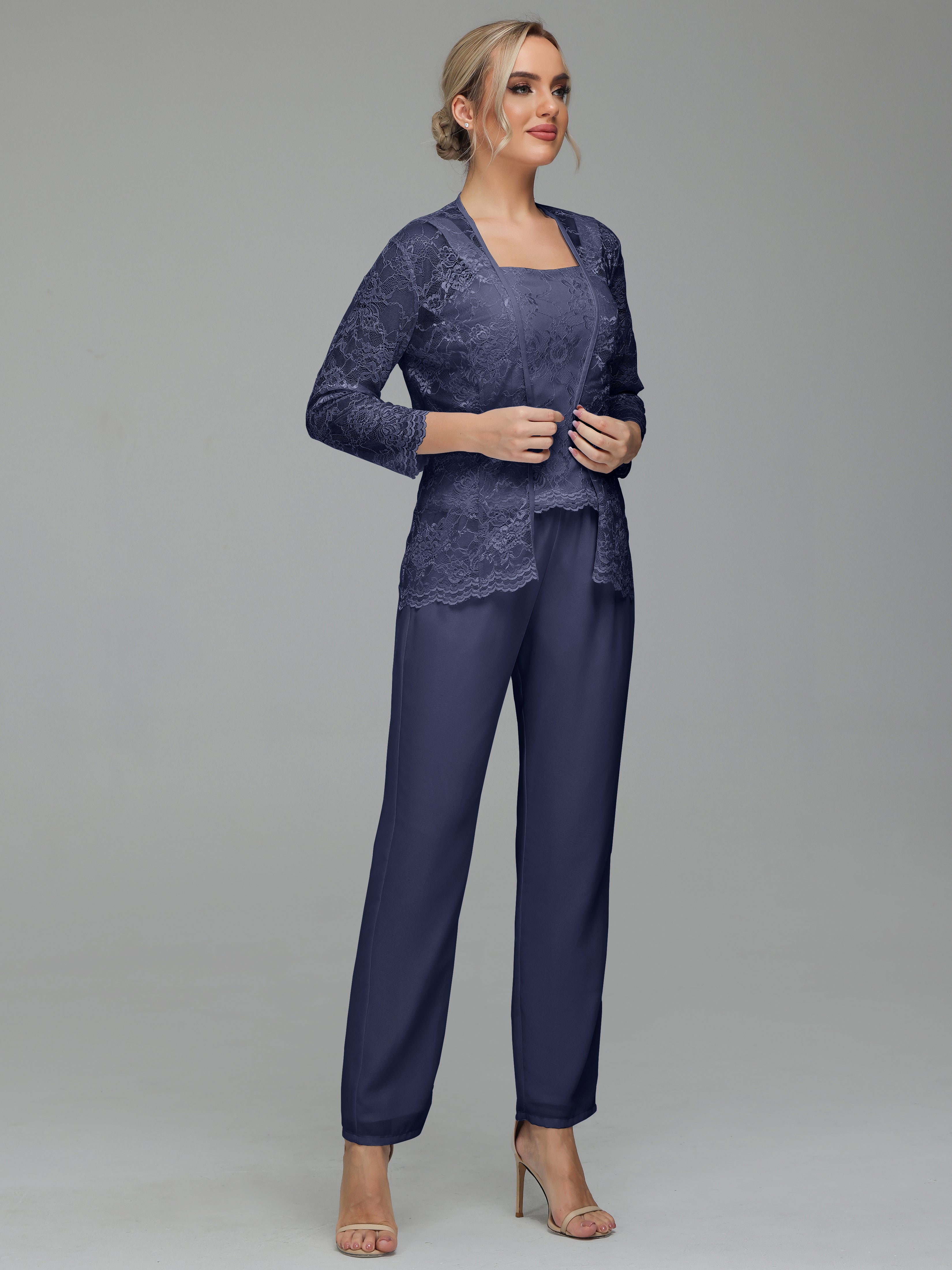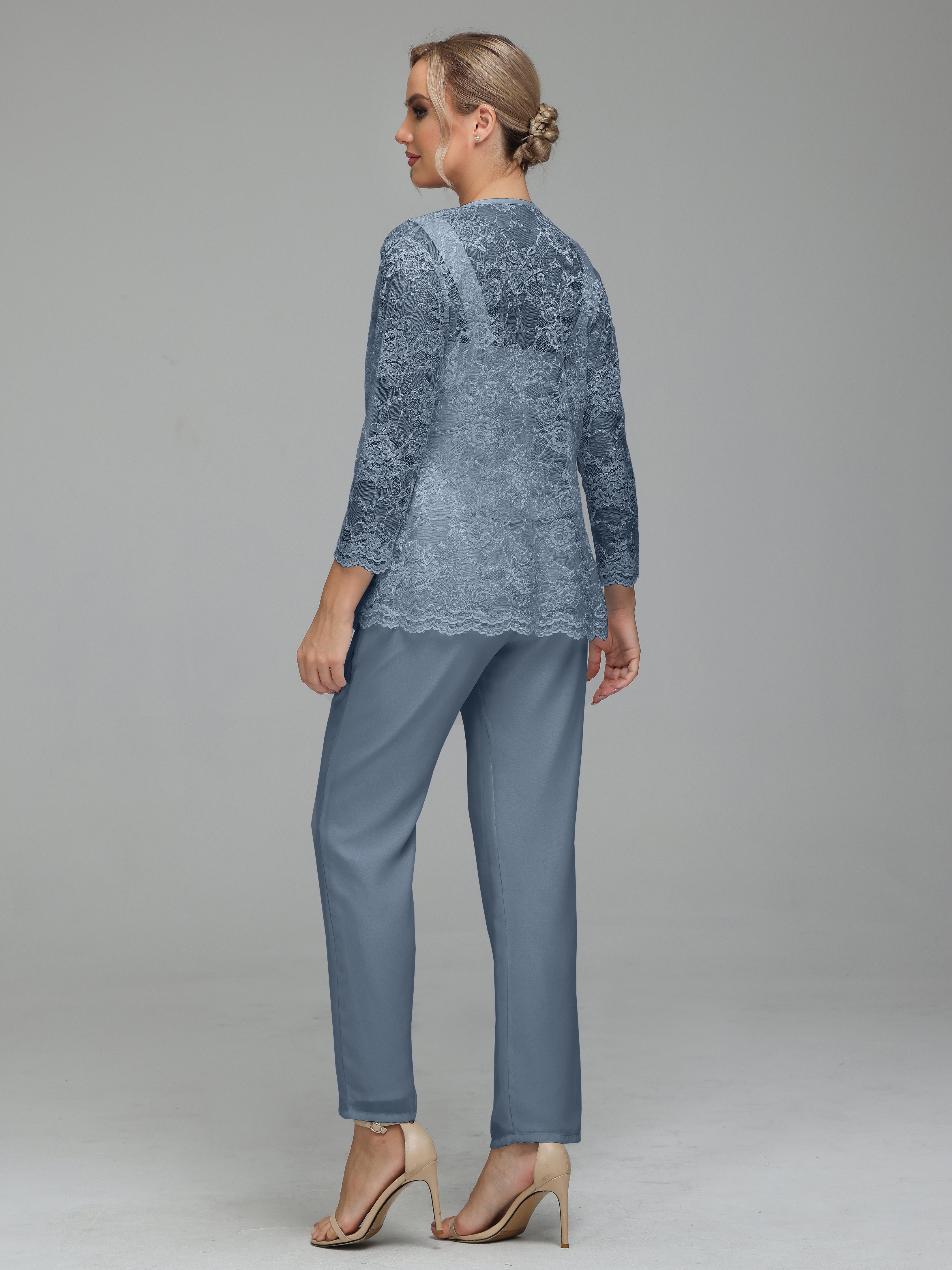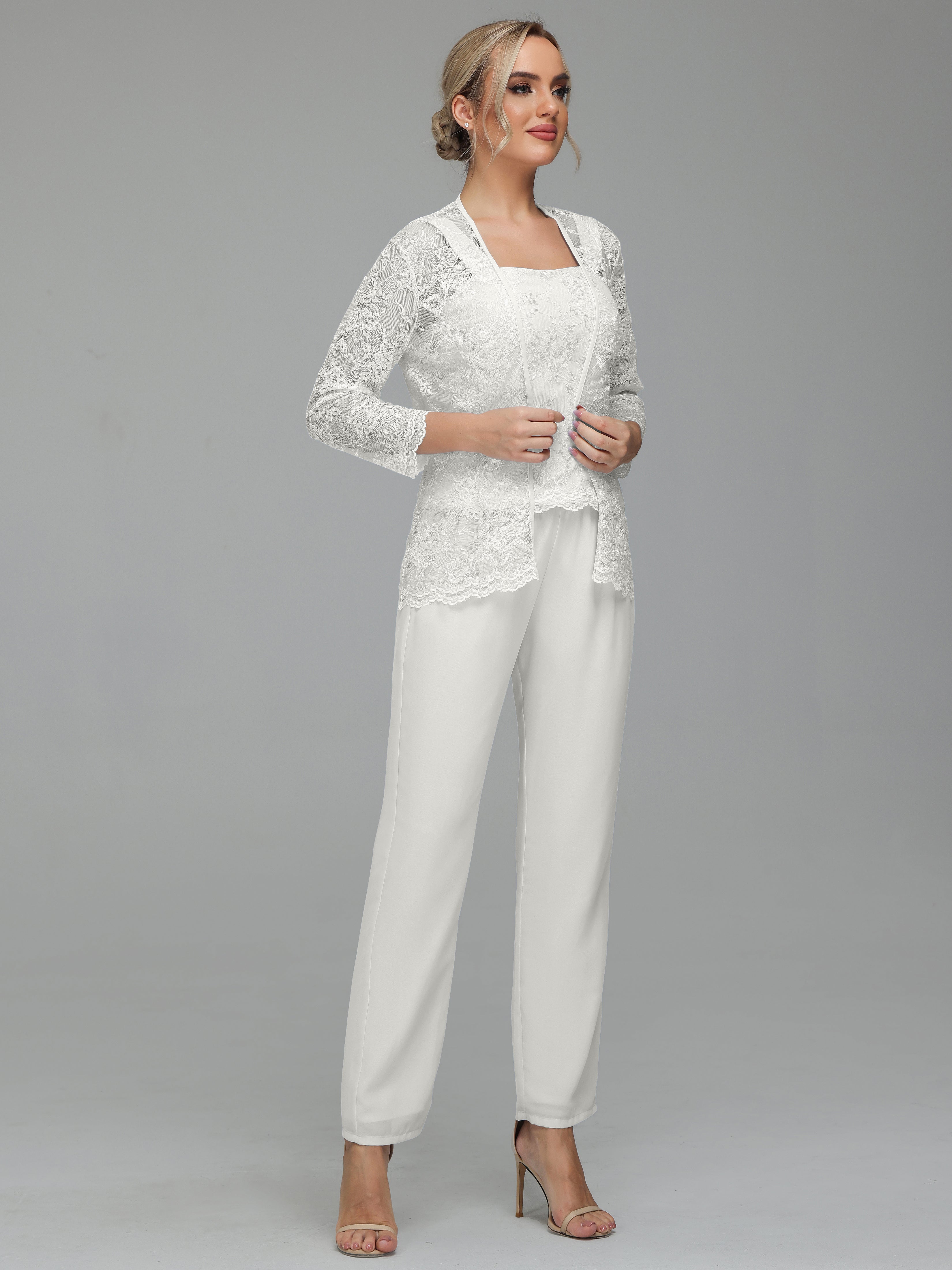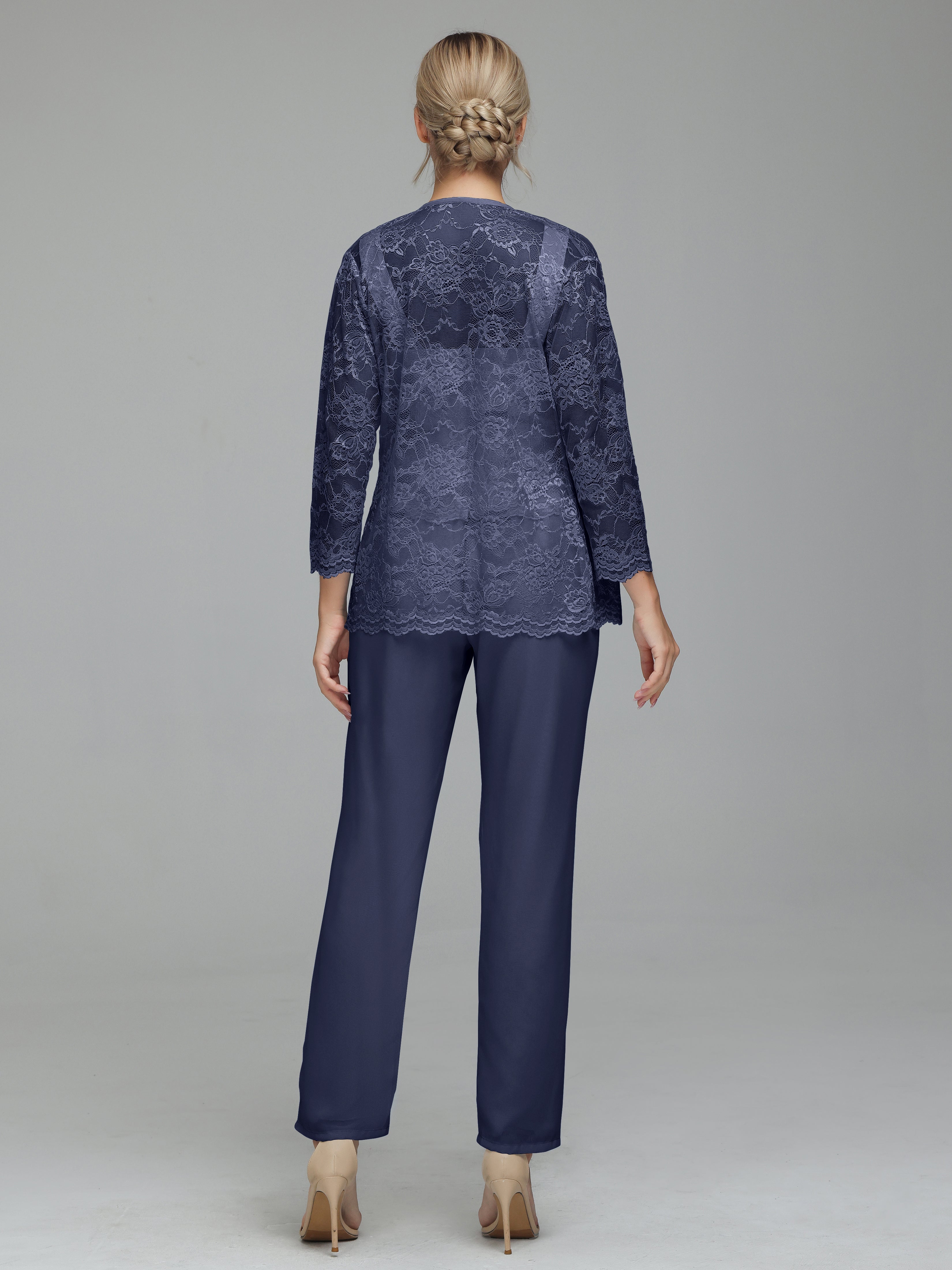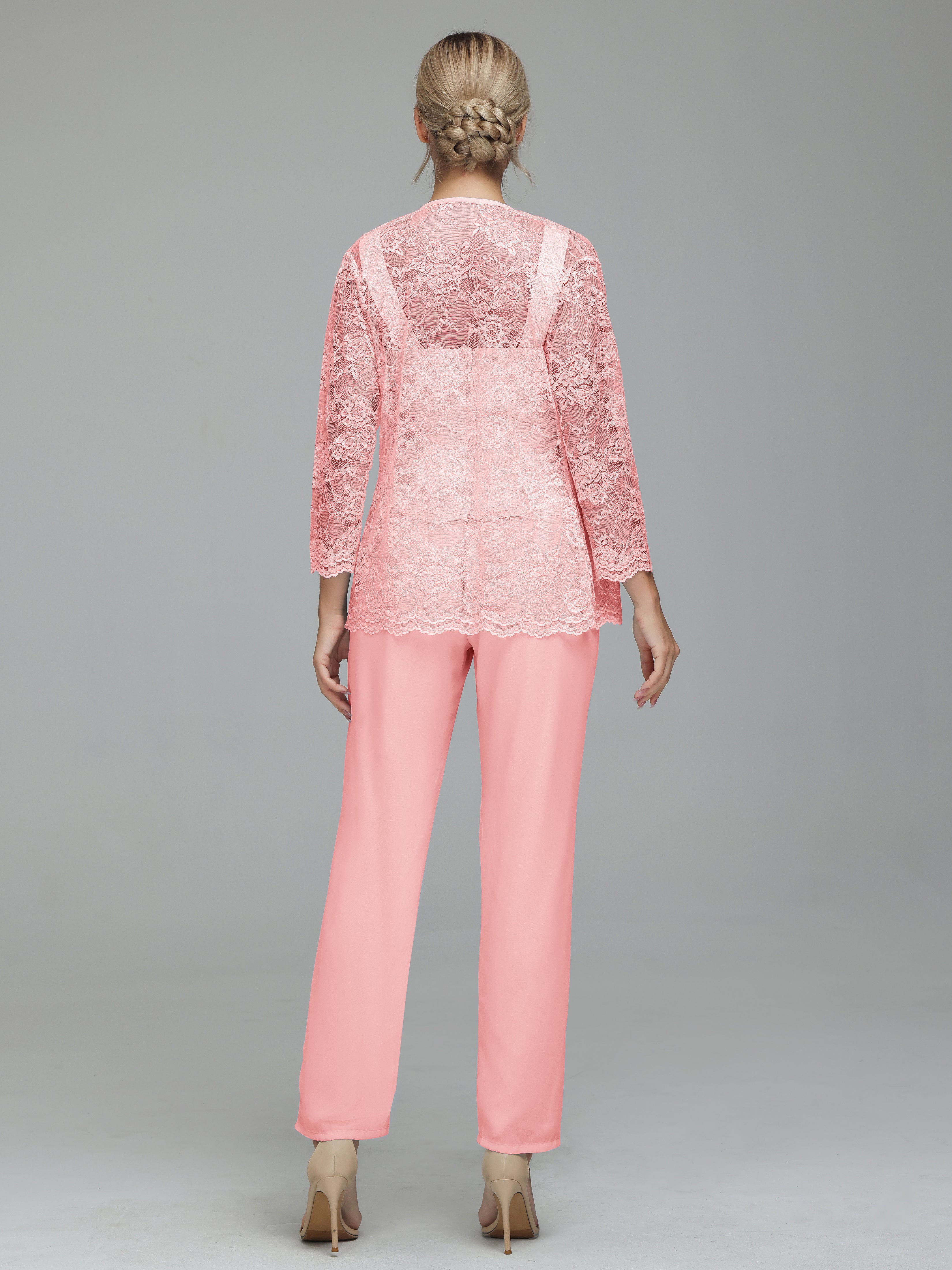 Graceful 3 Pieces Lace Chiffon Mother of Bride Dress Pant Suits