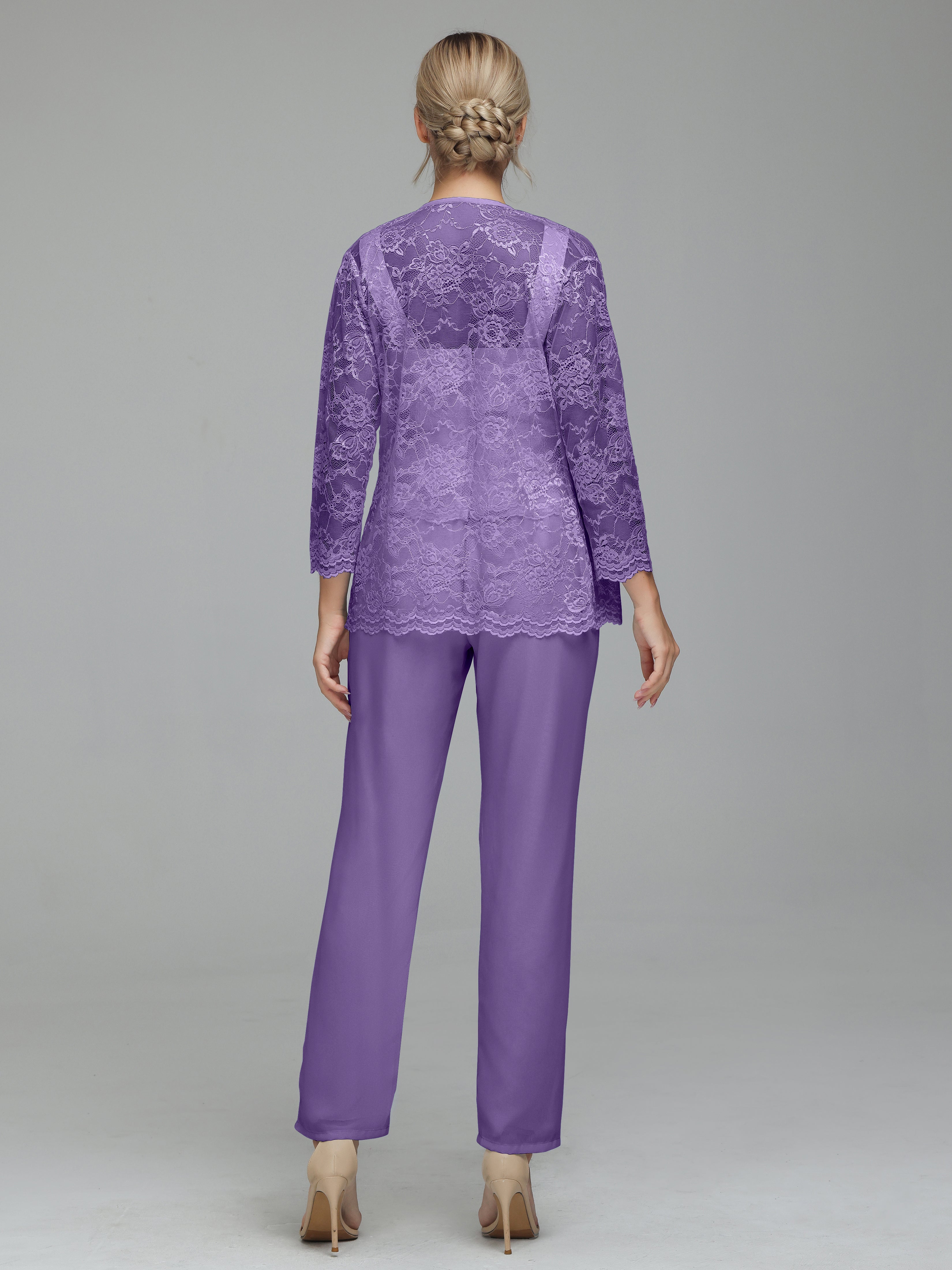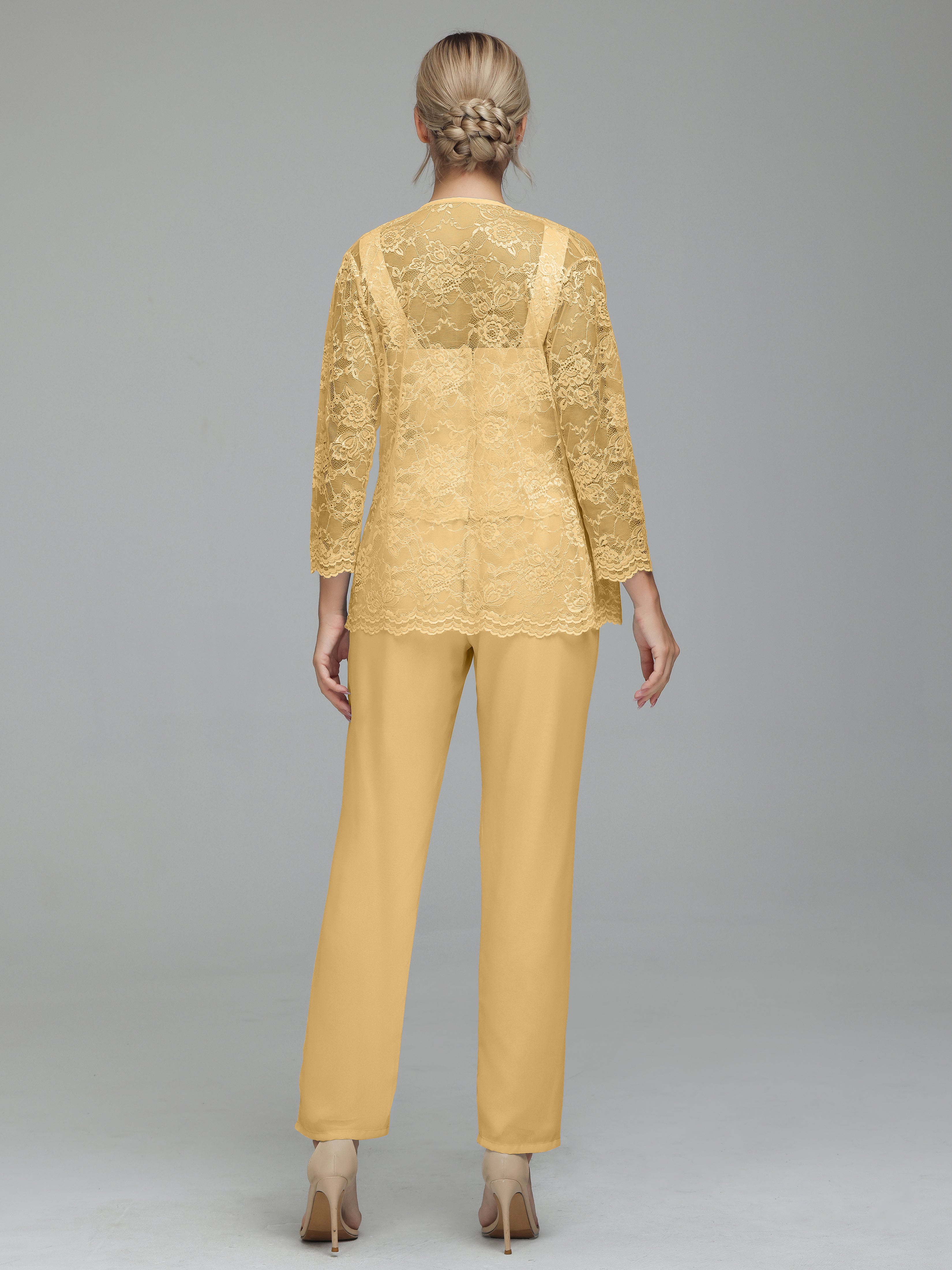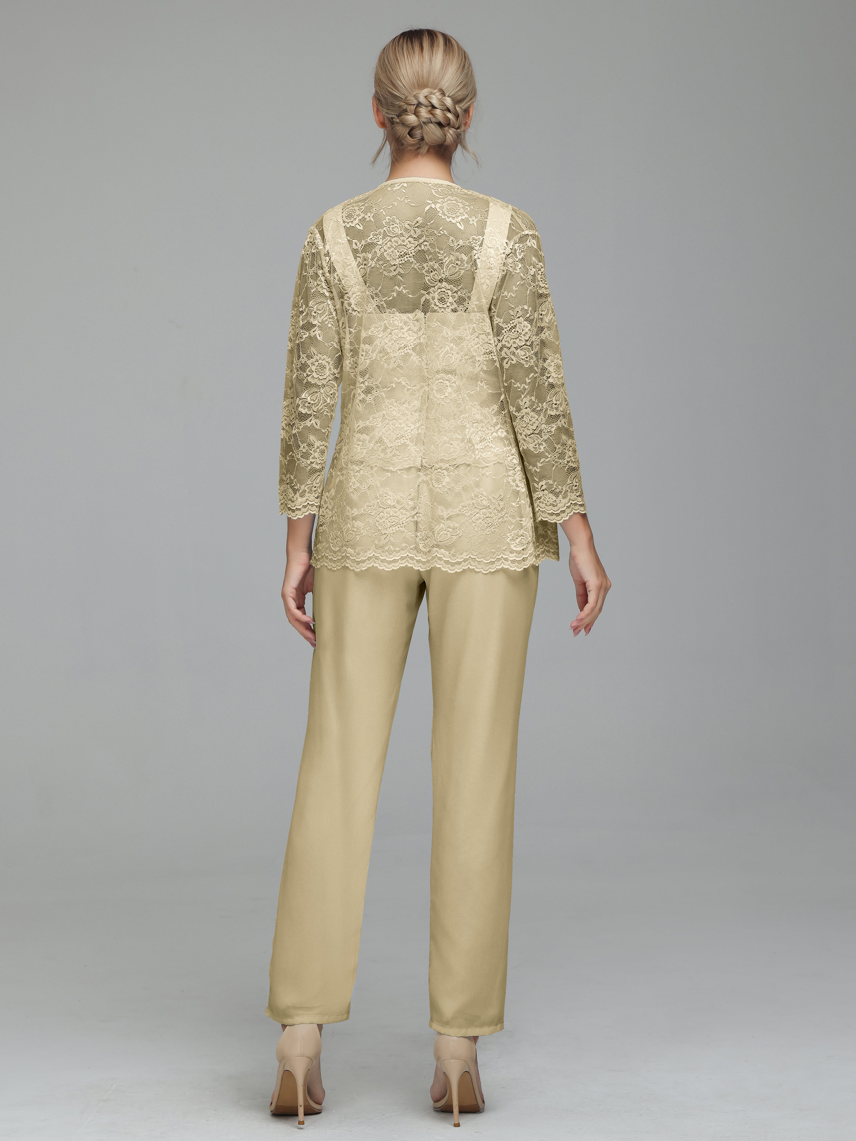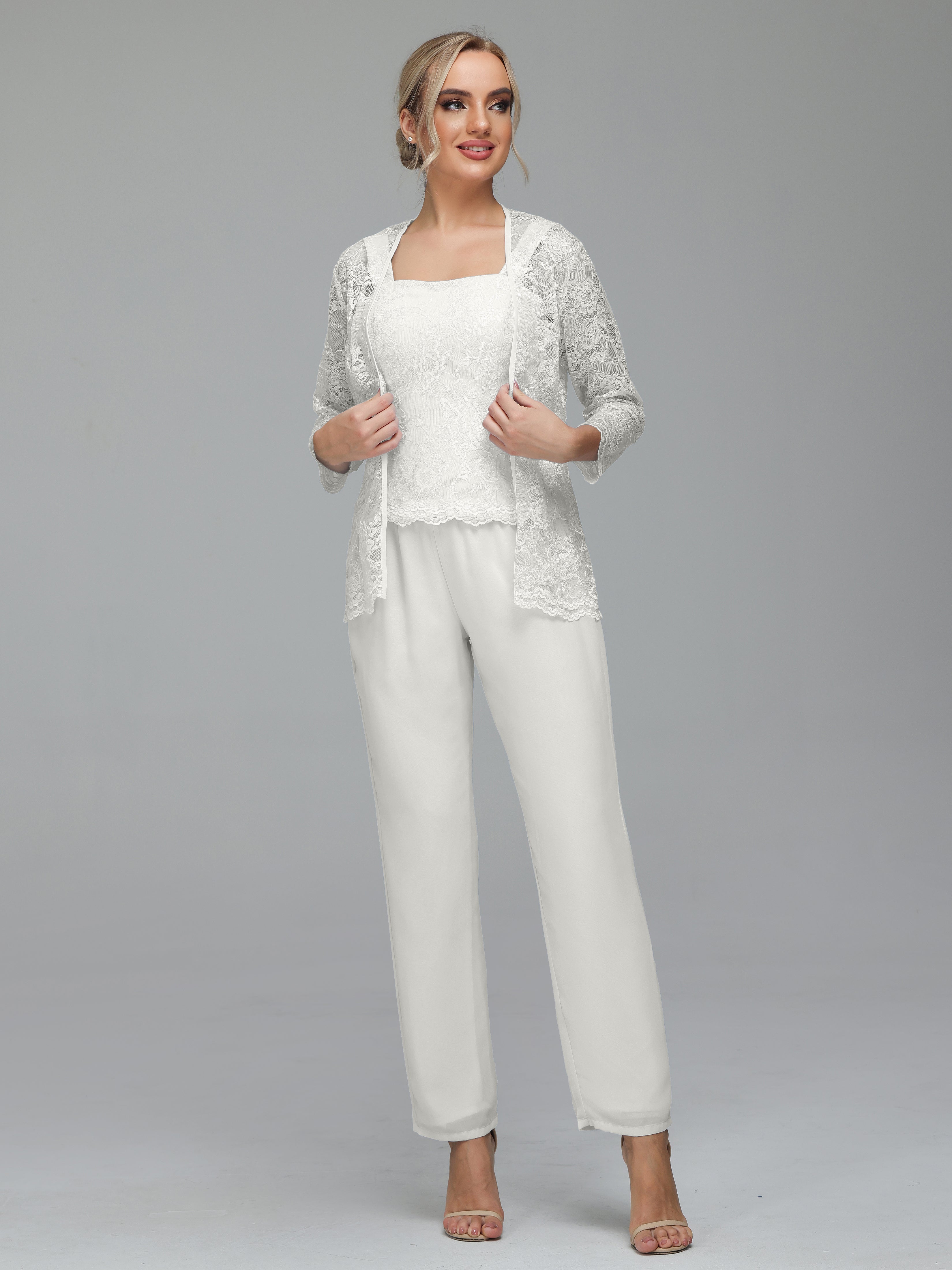 Graceful 3 Pieces Lace Chiffon Mother of Bride Dress Pant Suits