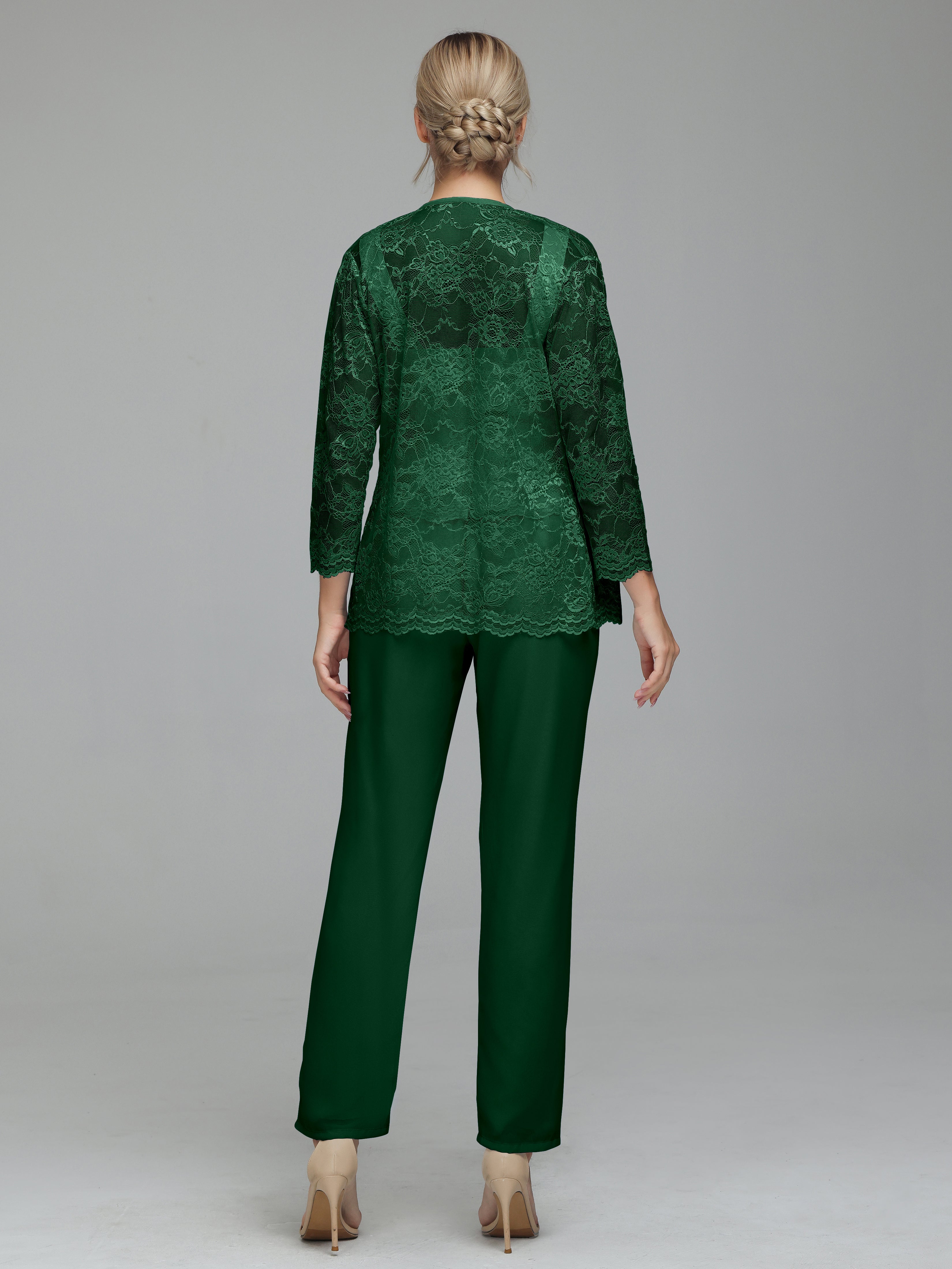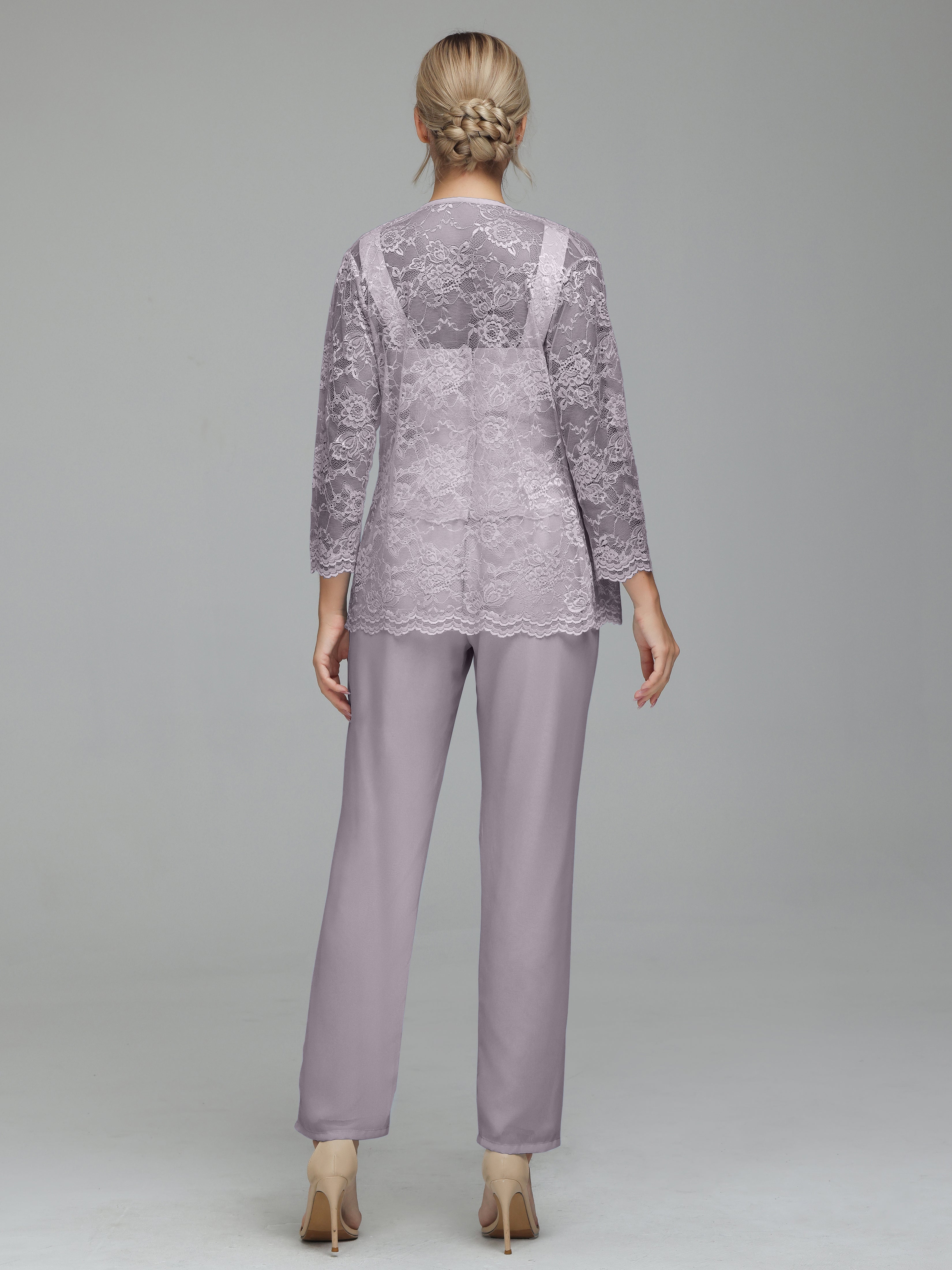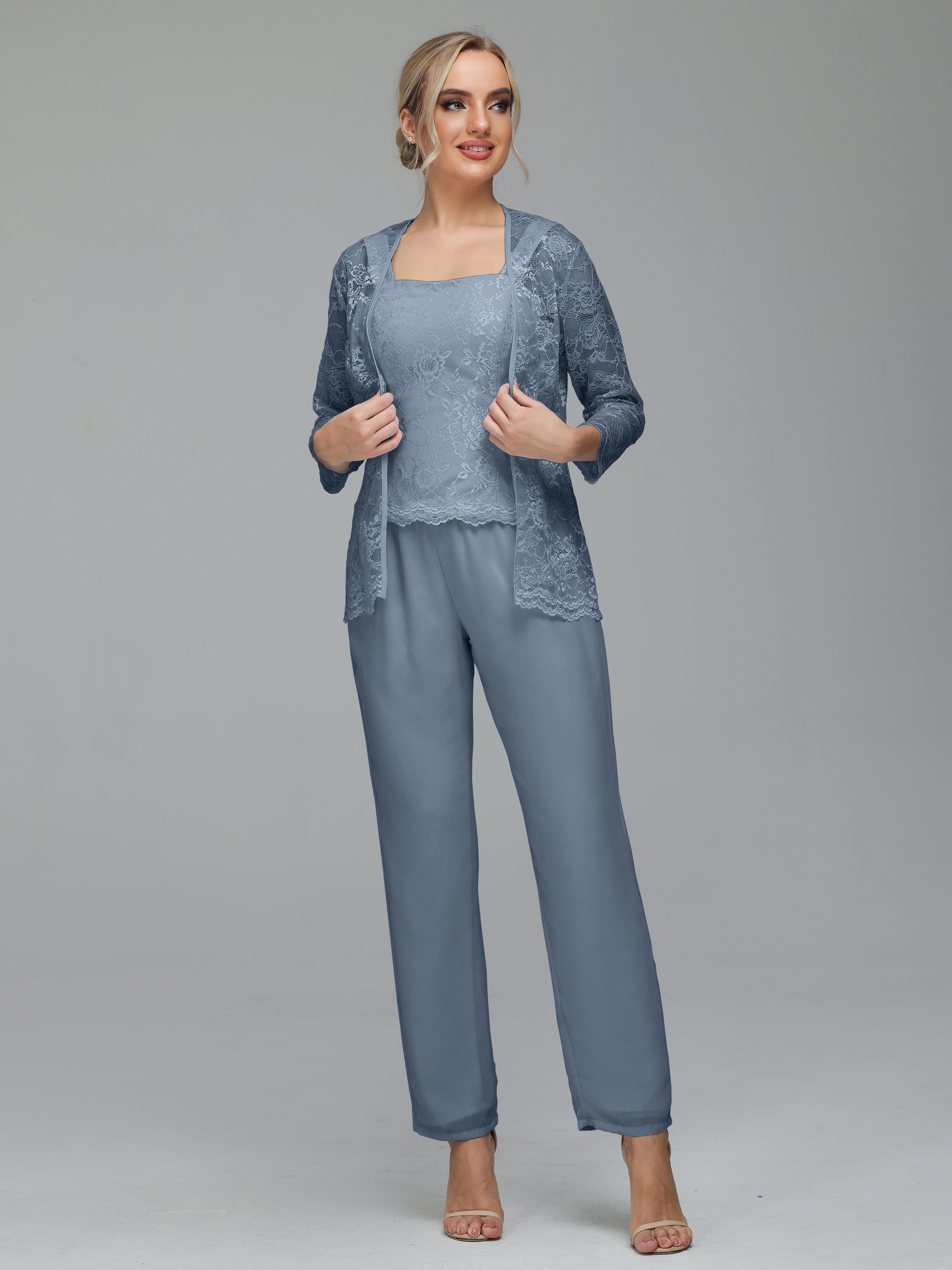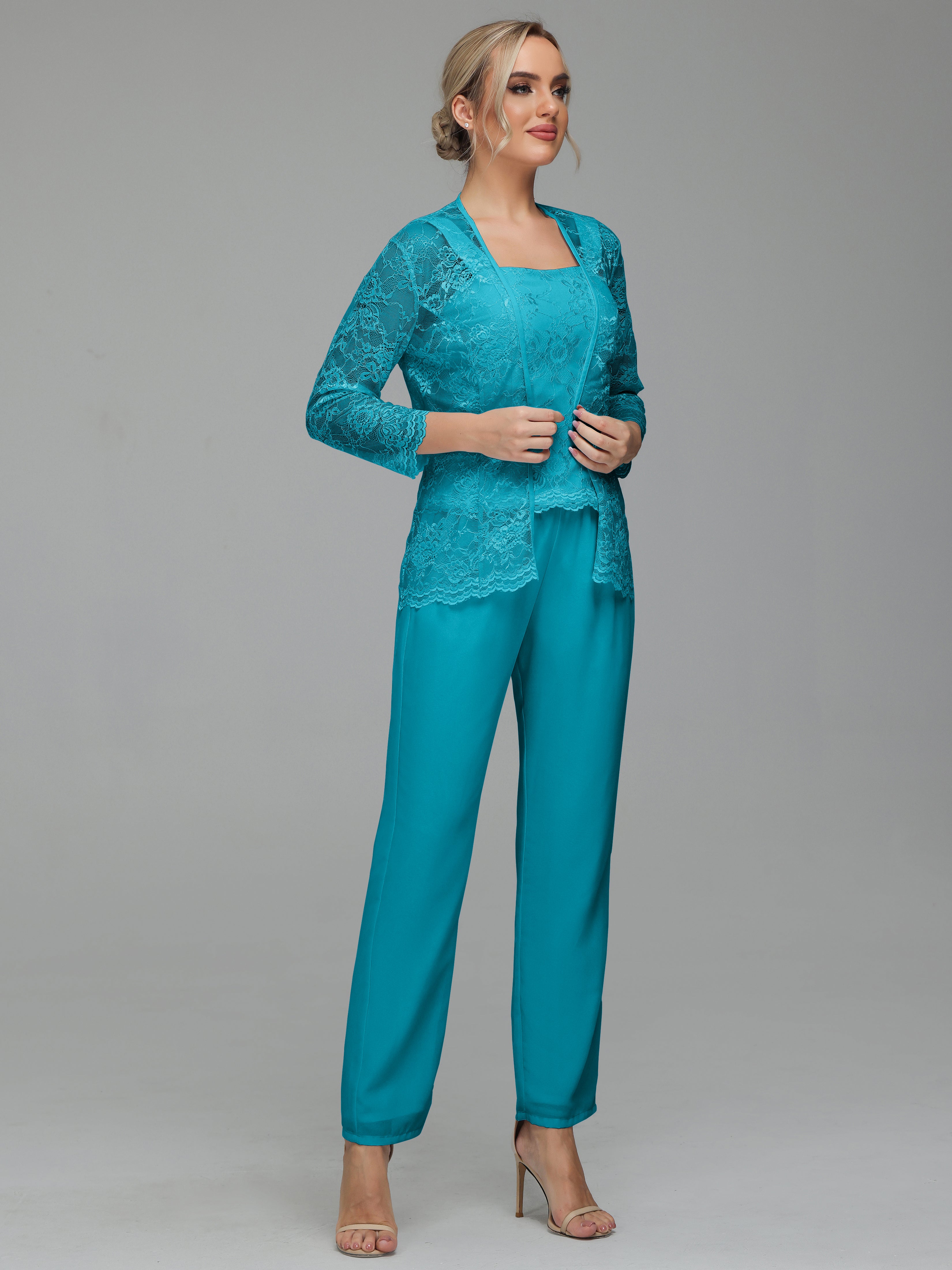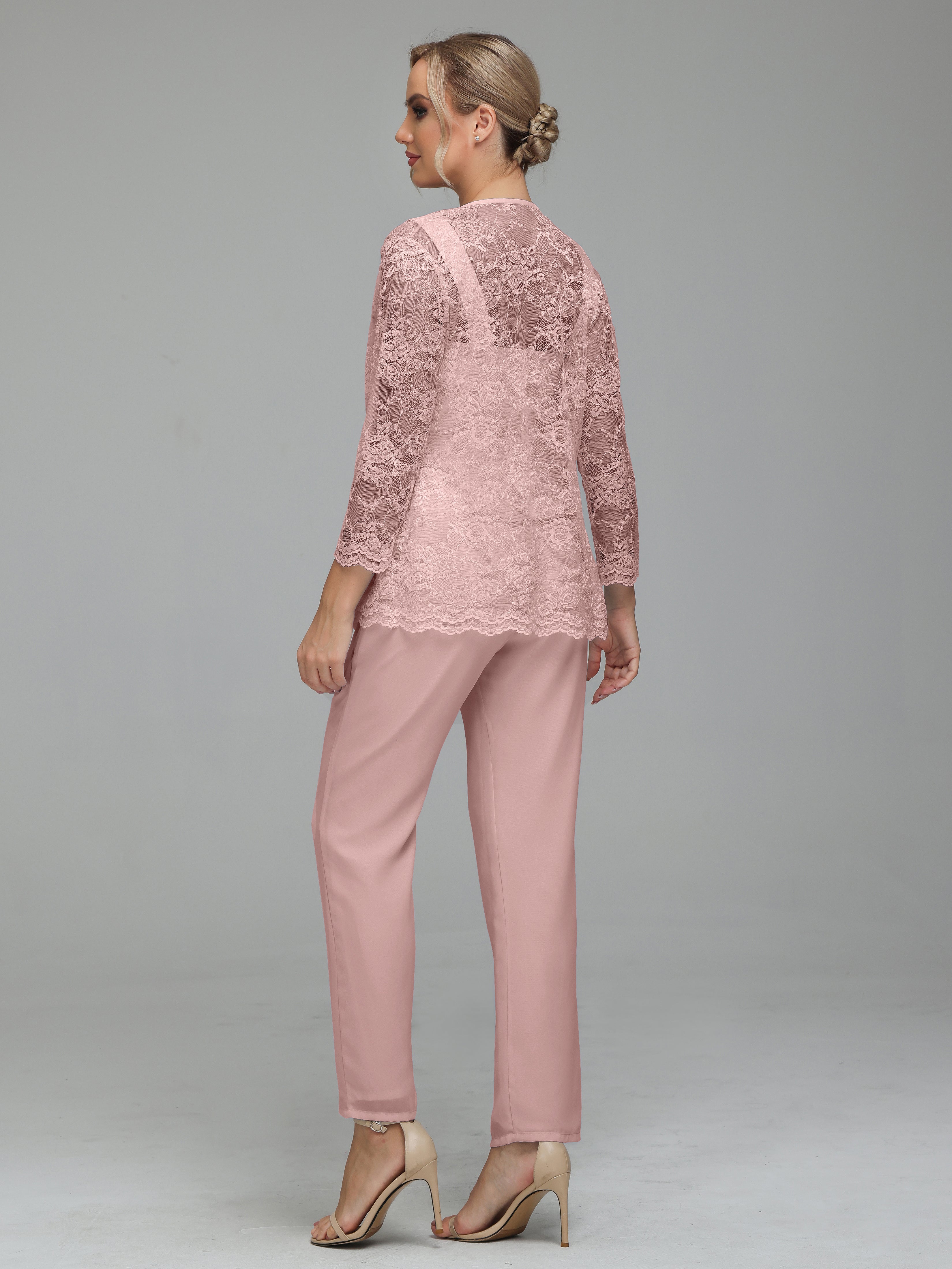 Graceful 3 Pieces Lace Chiffon Mother of Bride Dress Pant Suits