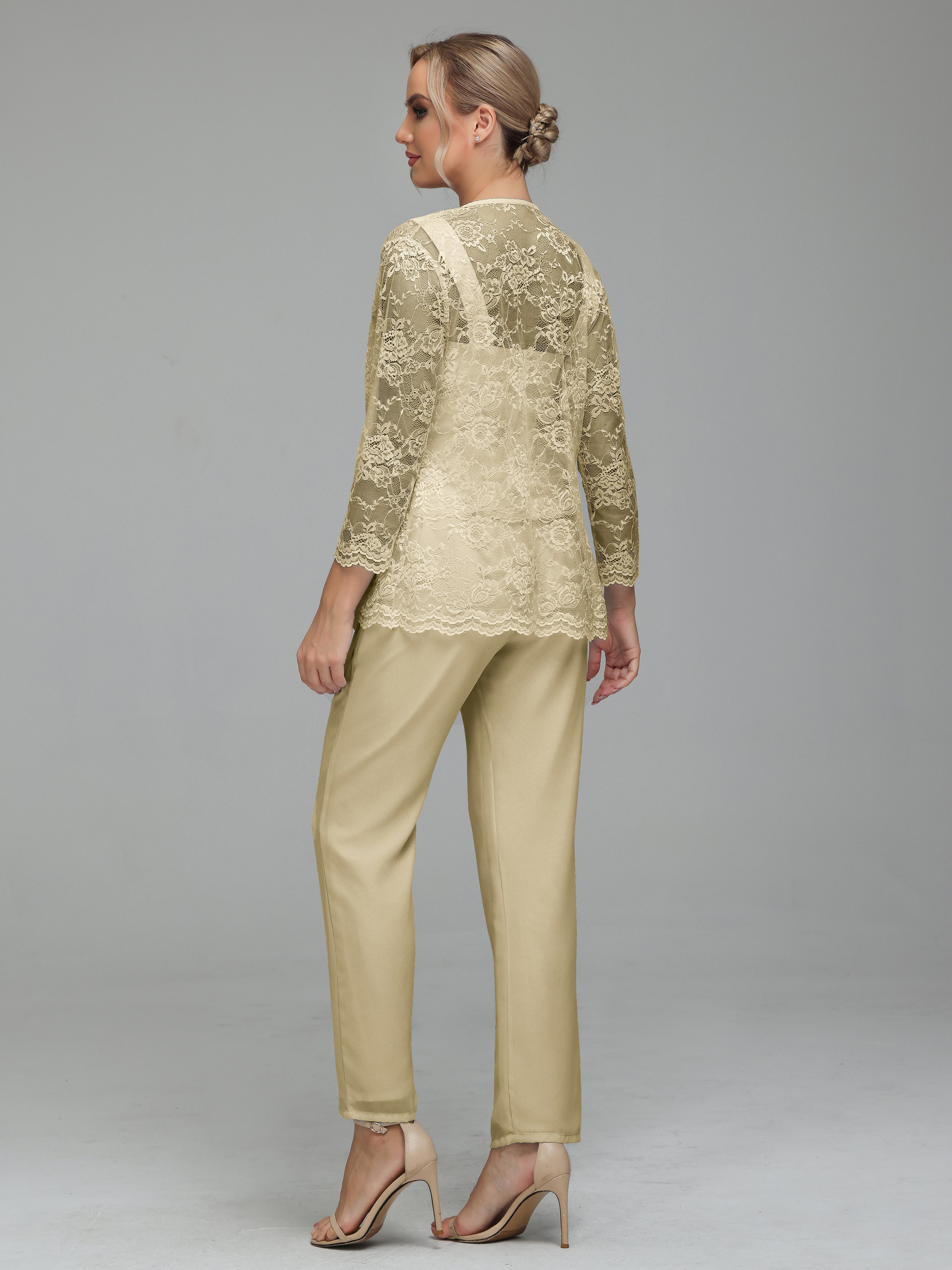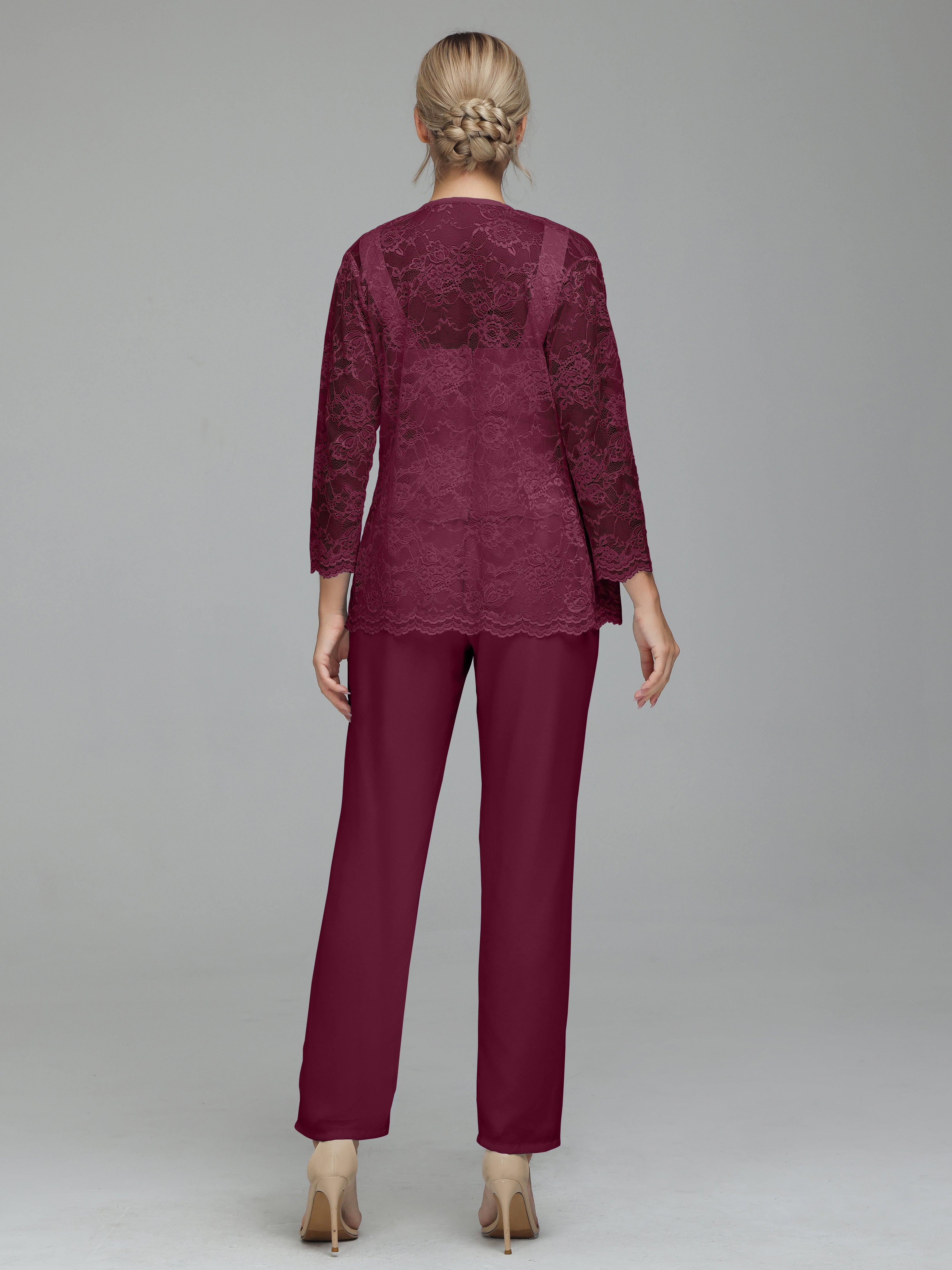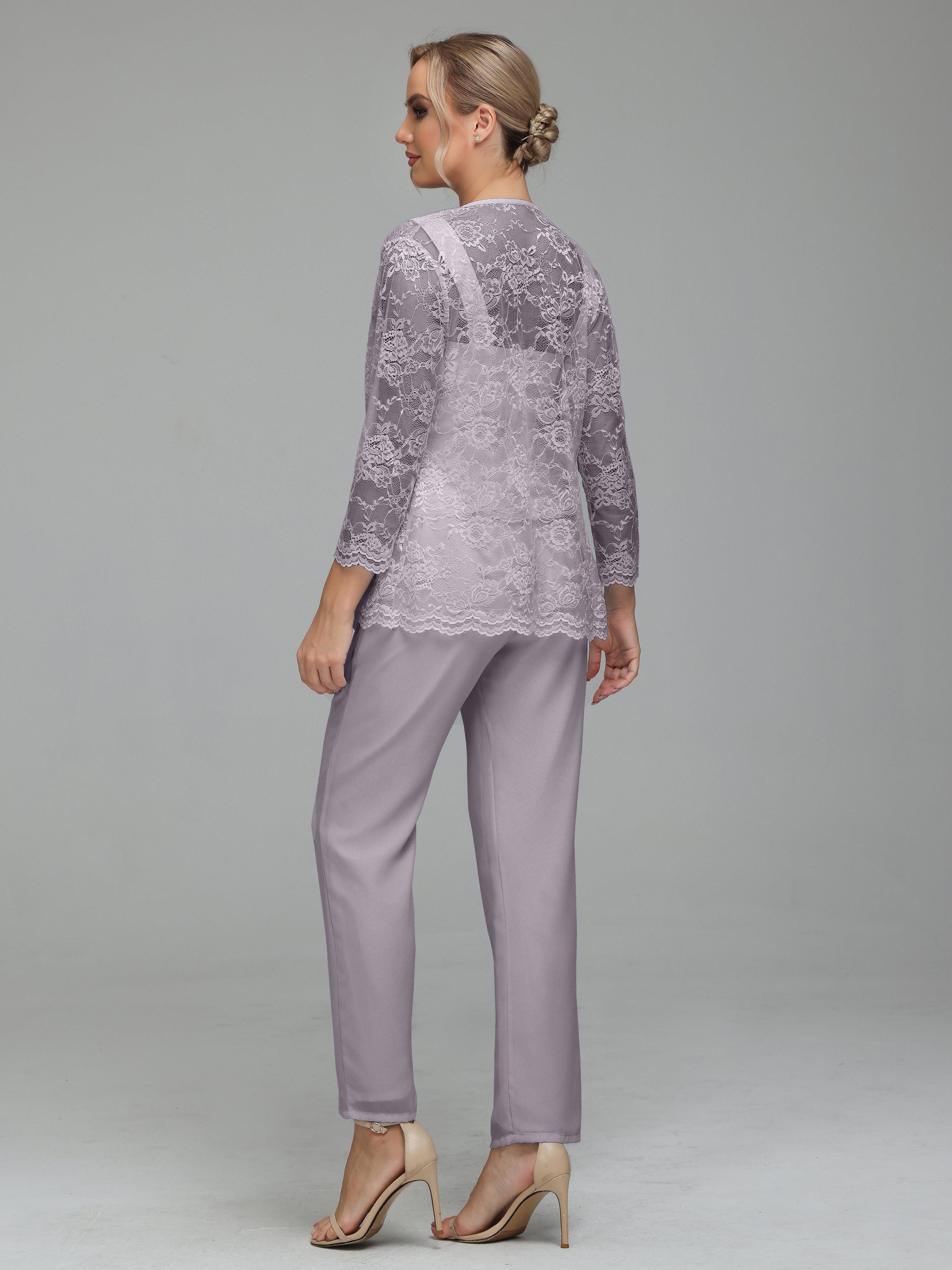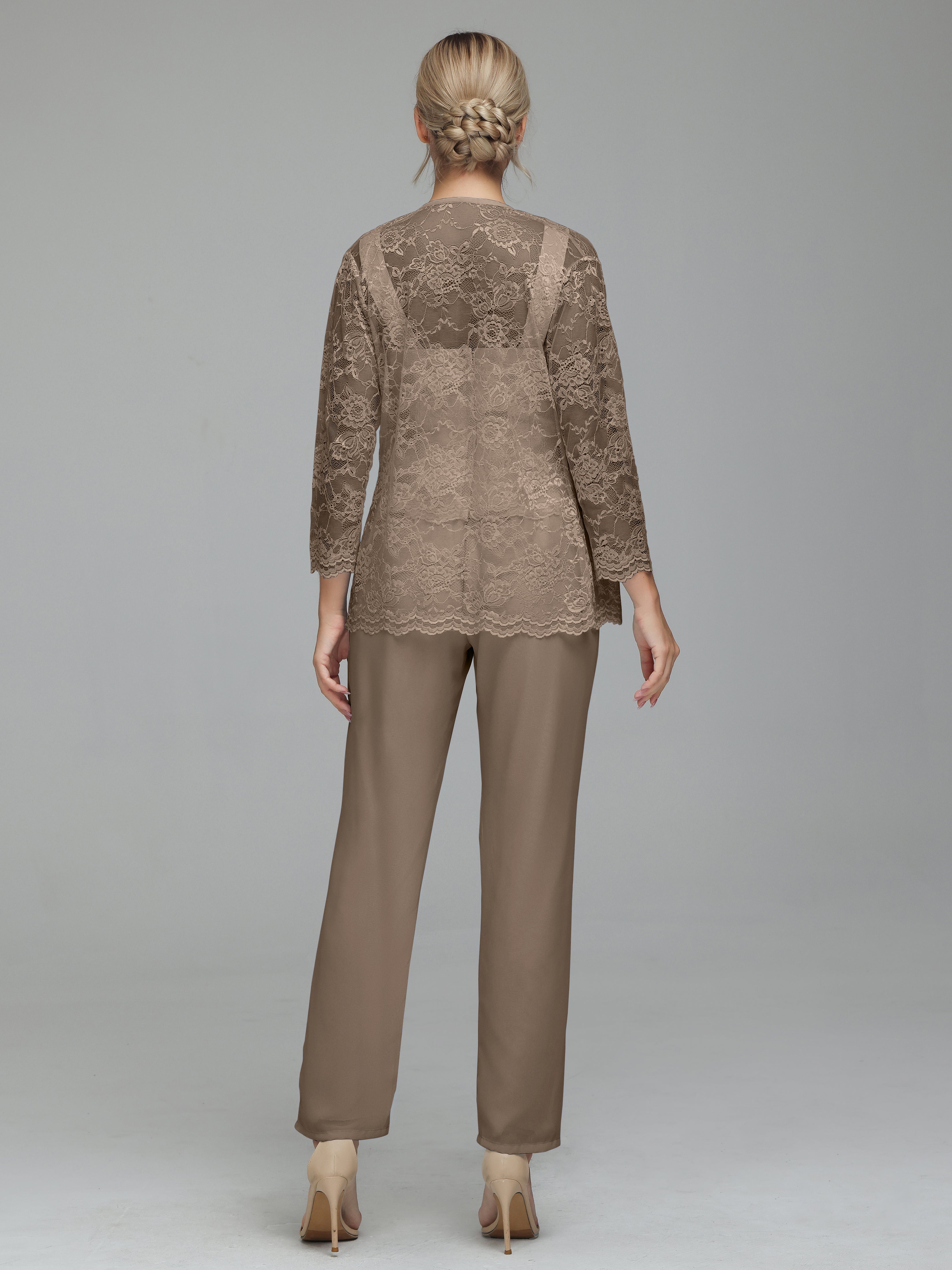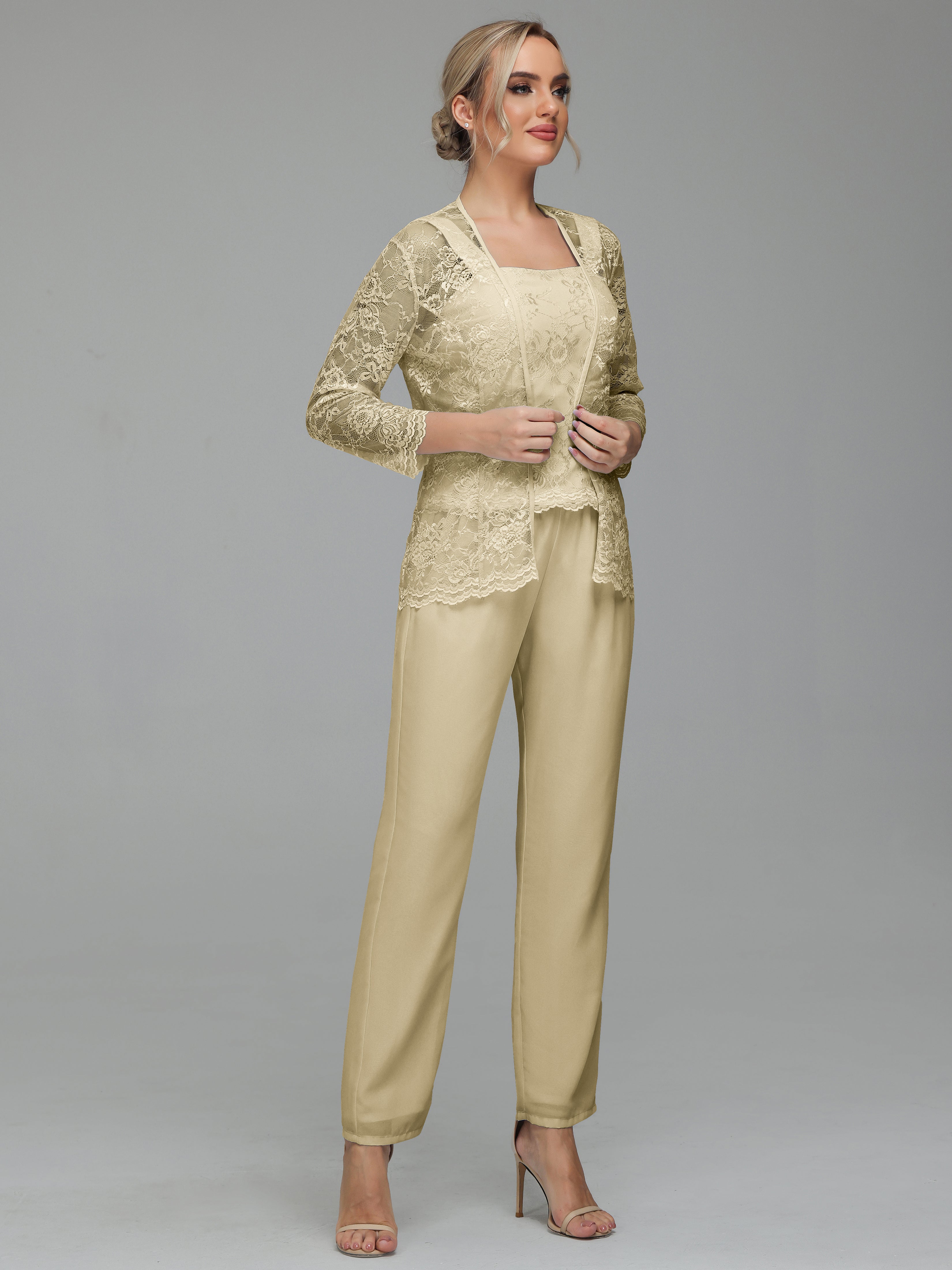 Graceful 3 Pieces Lace Chiffon Mother of Bride Dress Pant Suits