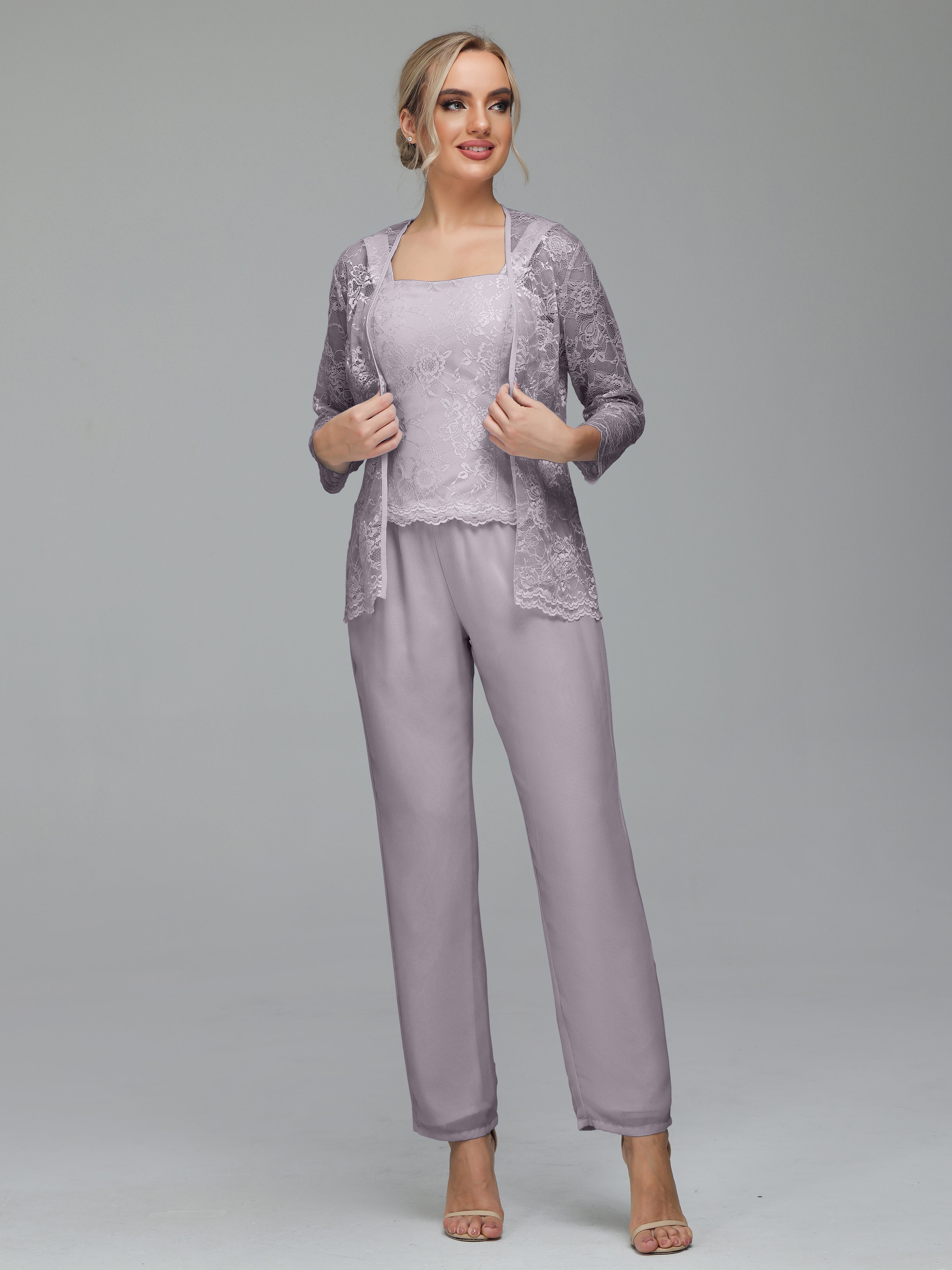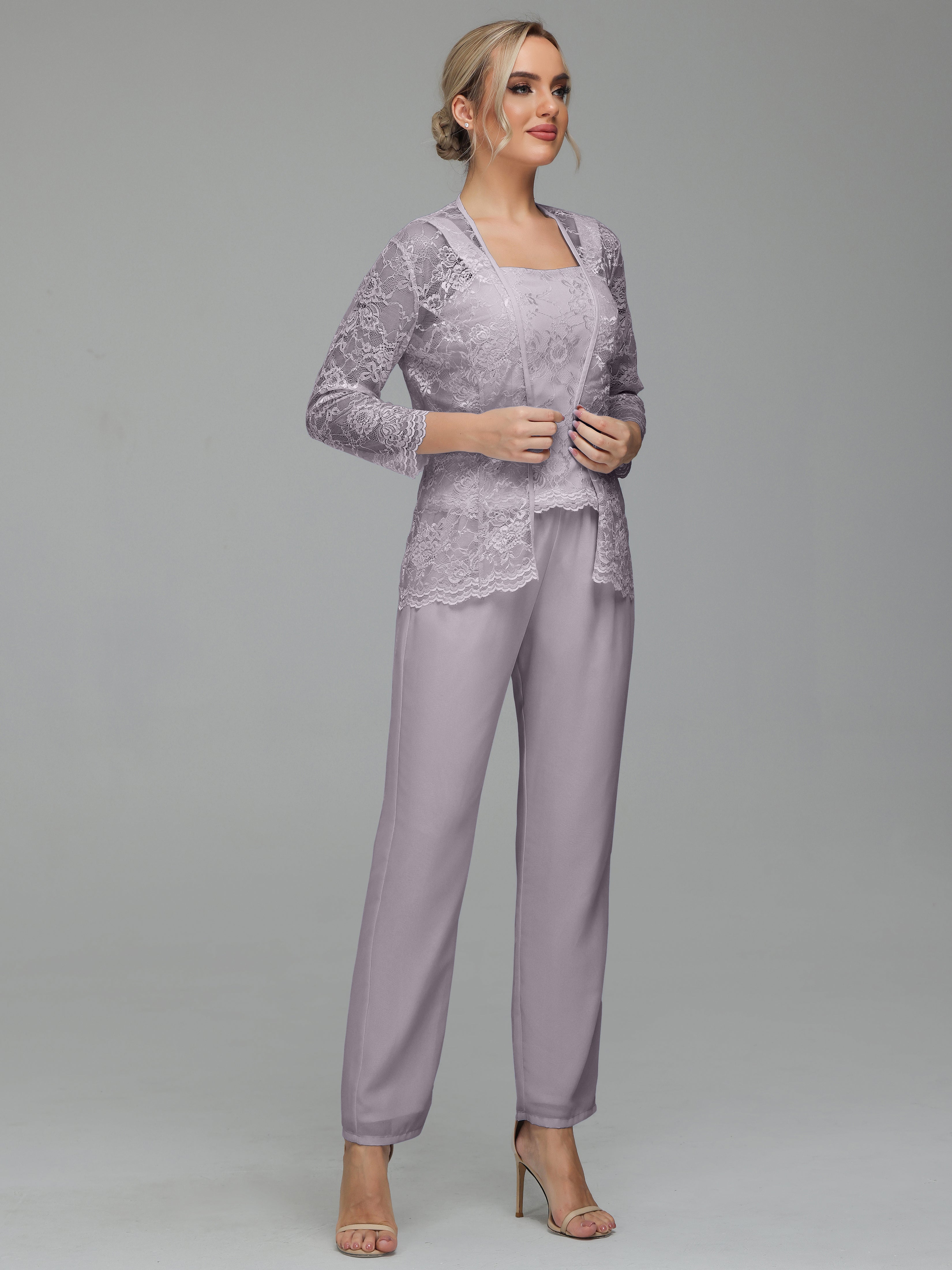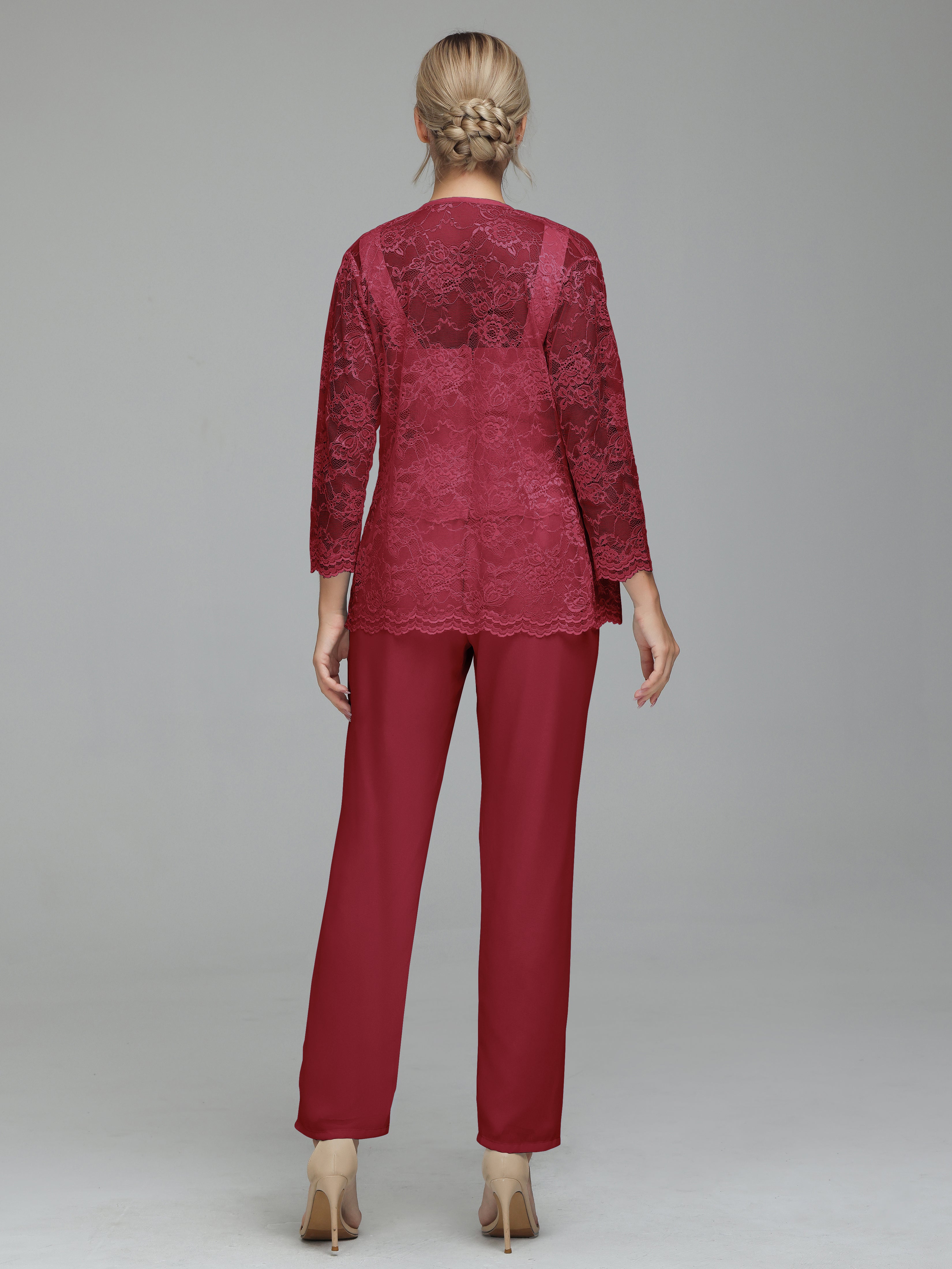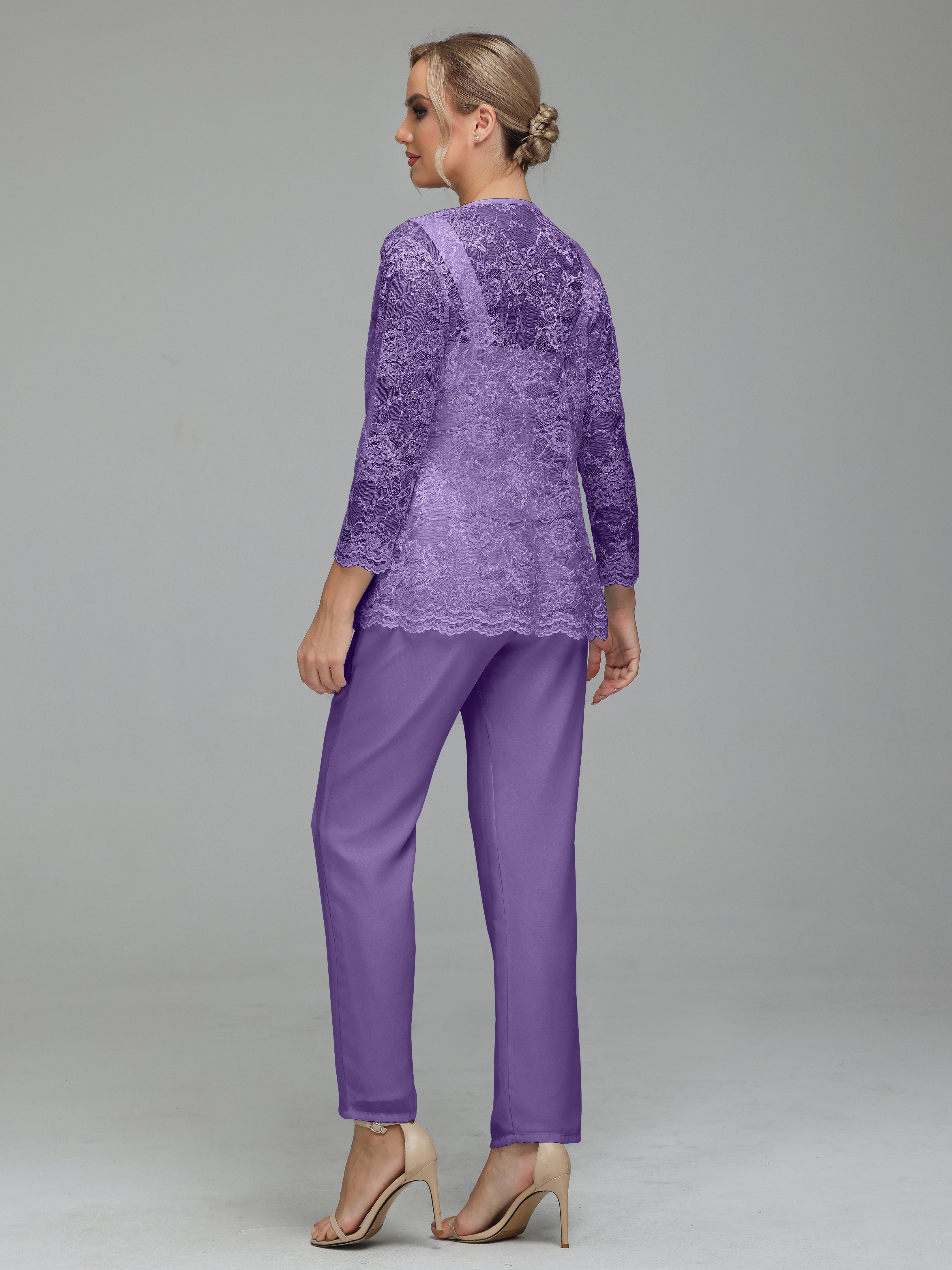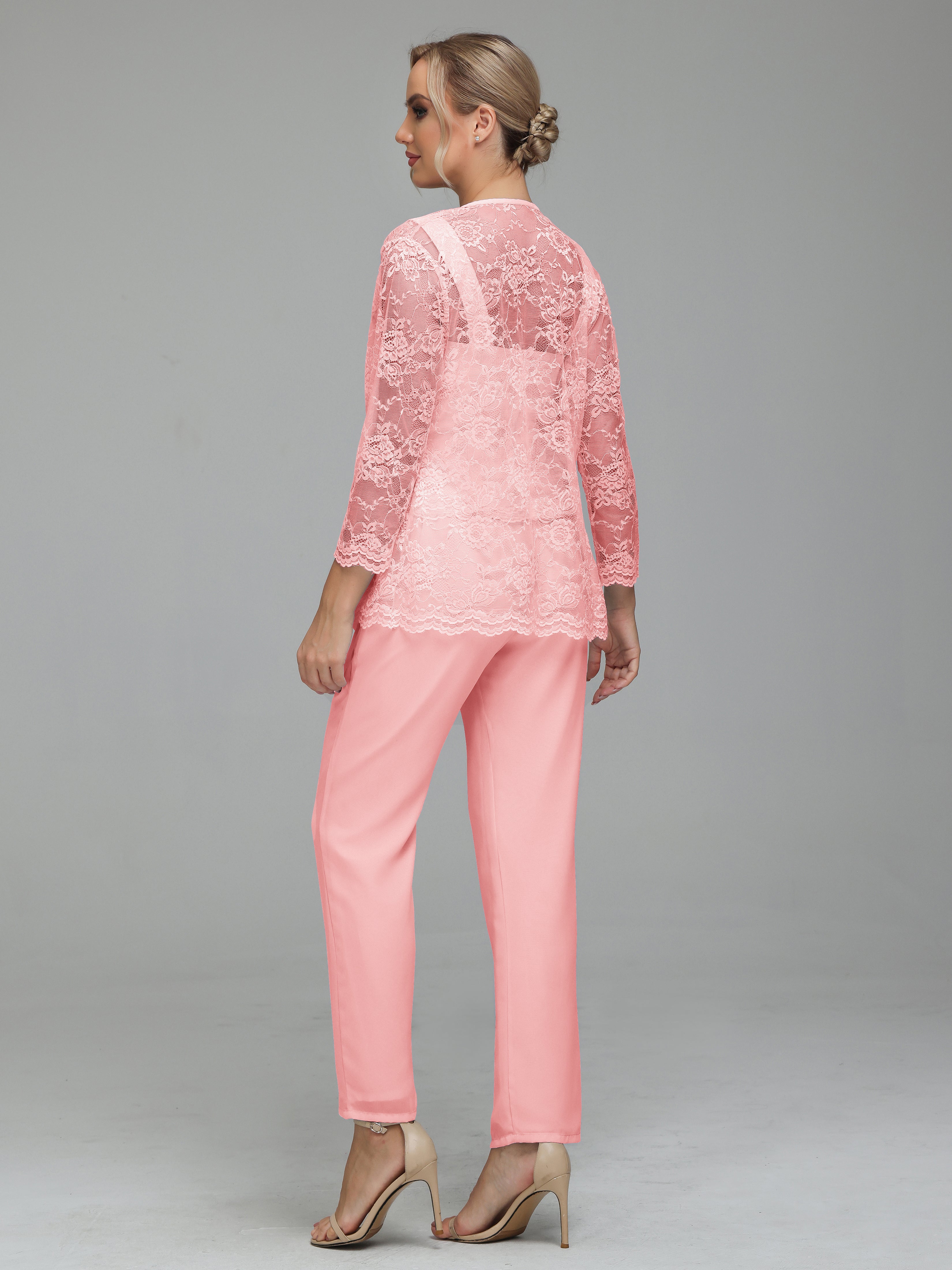 Graceful 3 Pieces Lace Chiffon Mother of Bride Dress Pant Suits