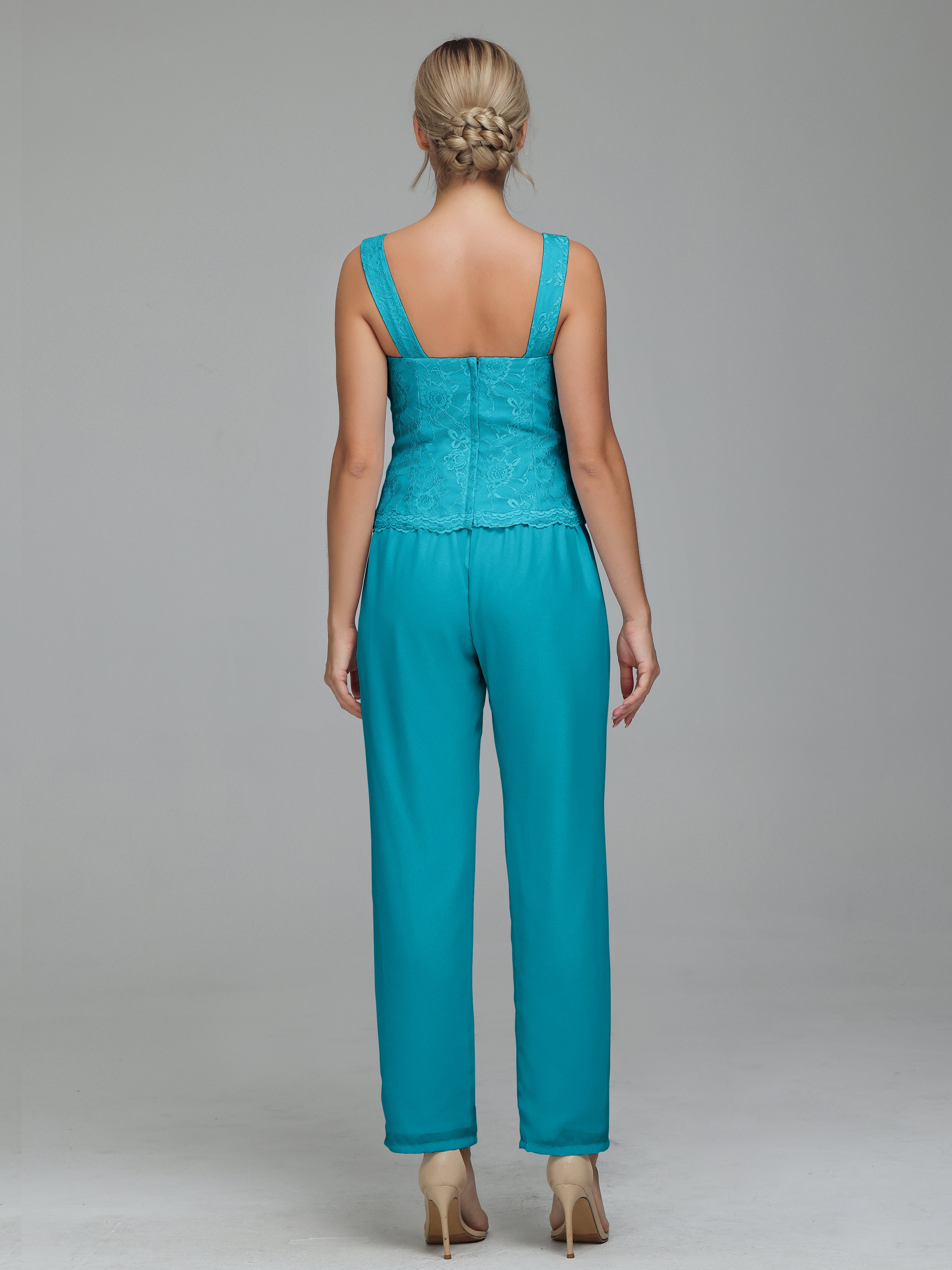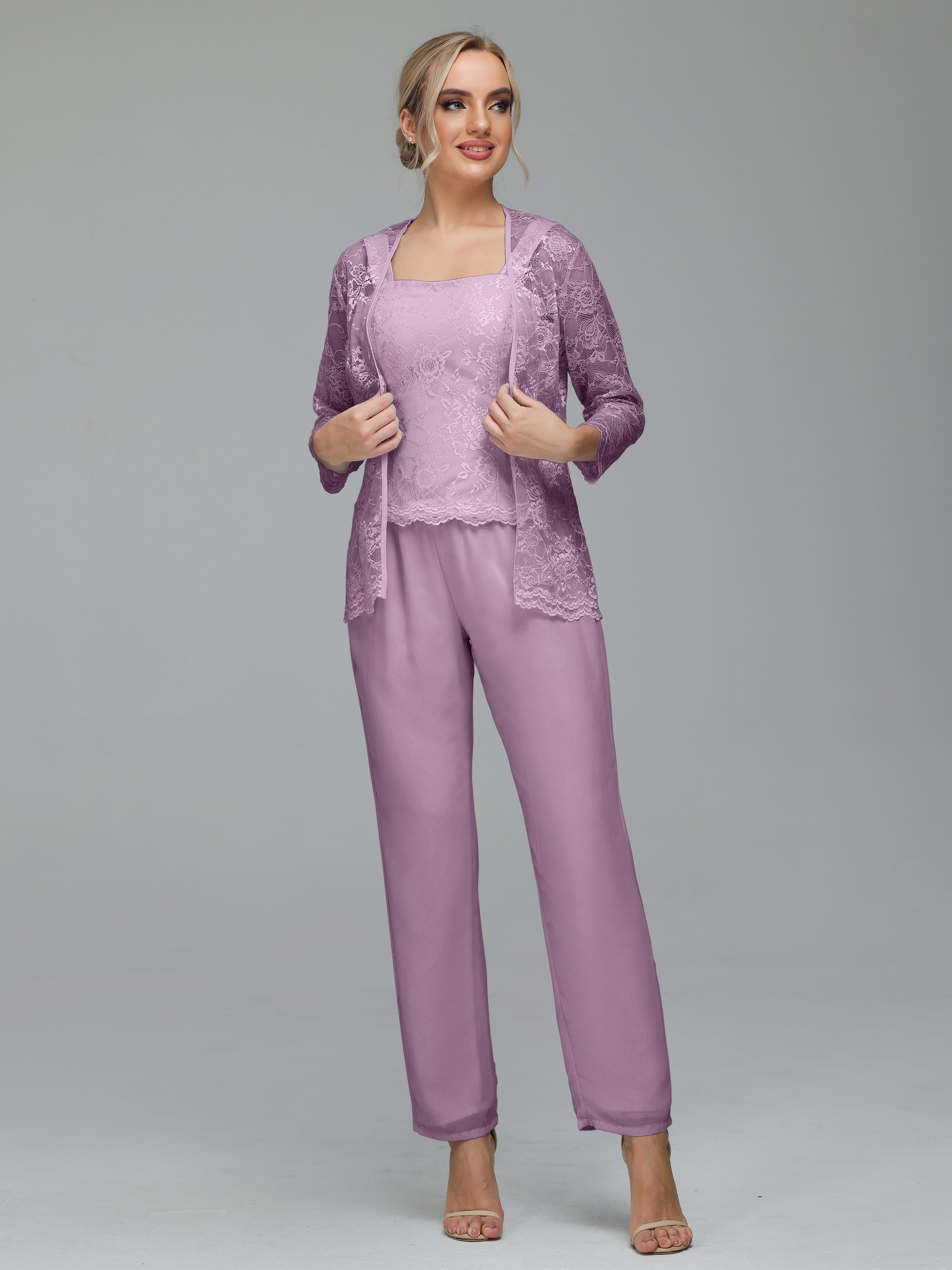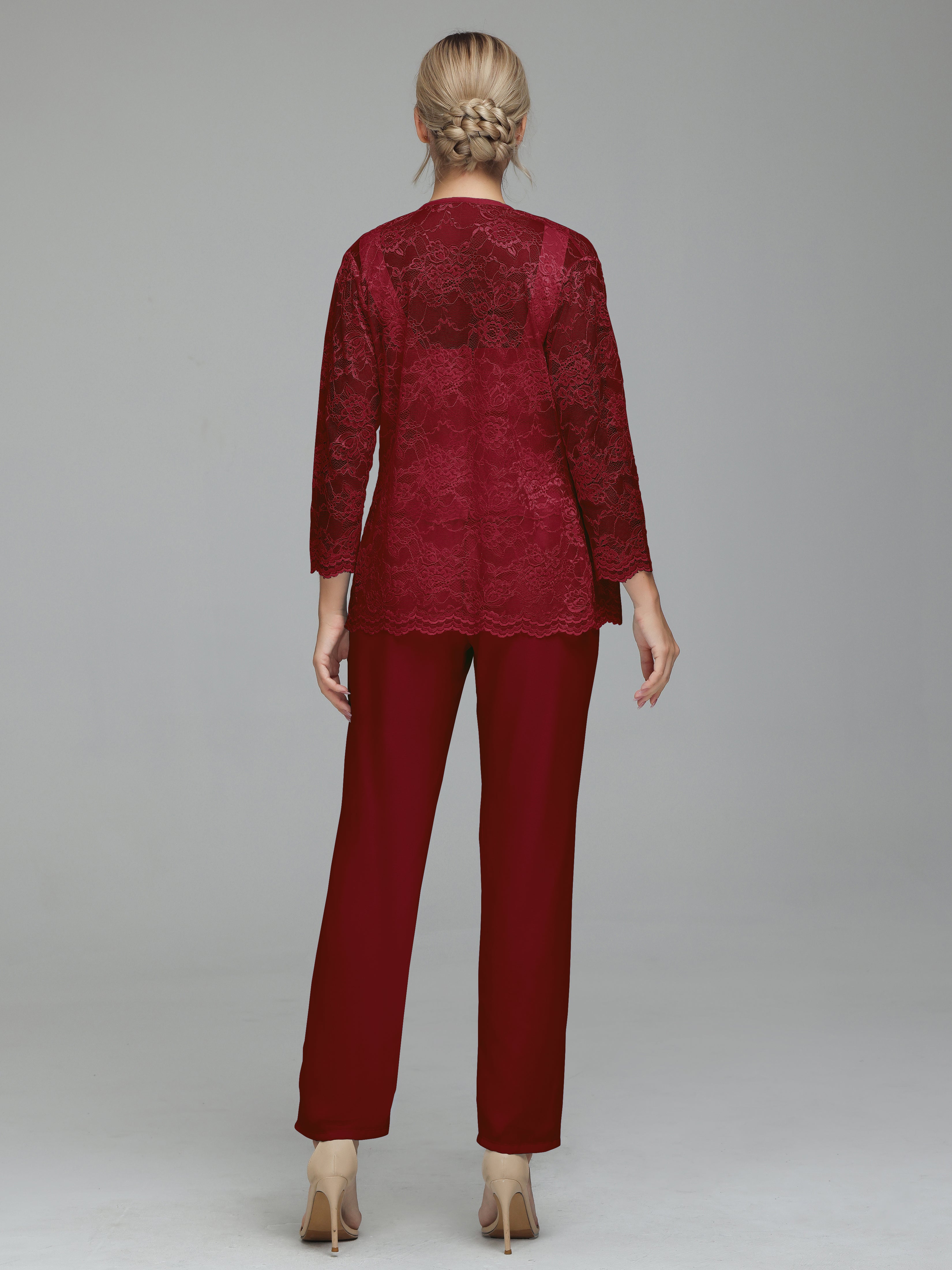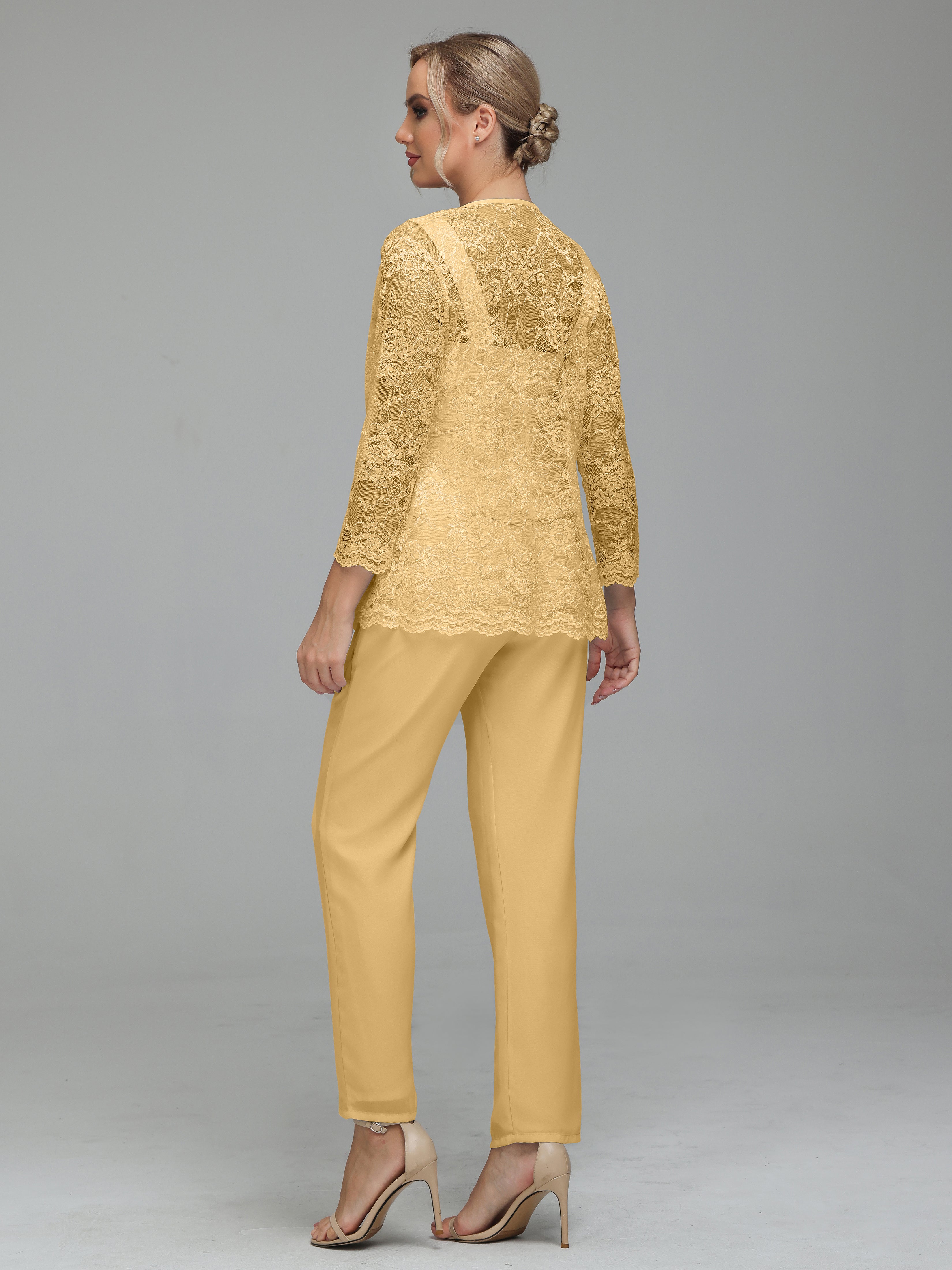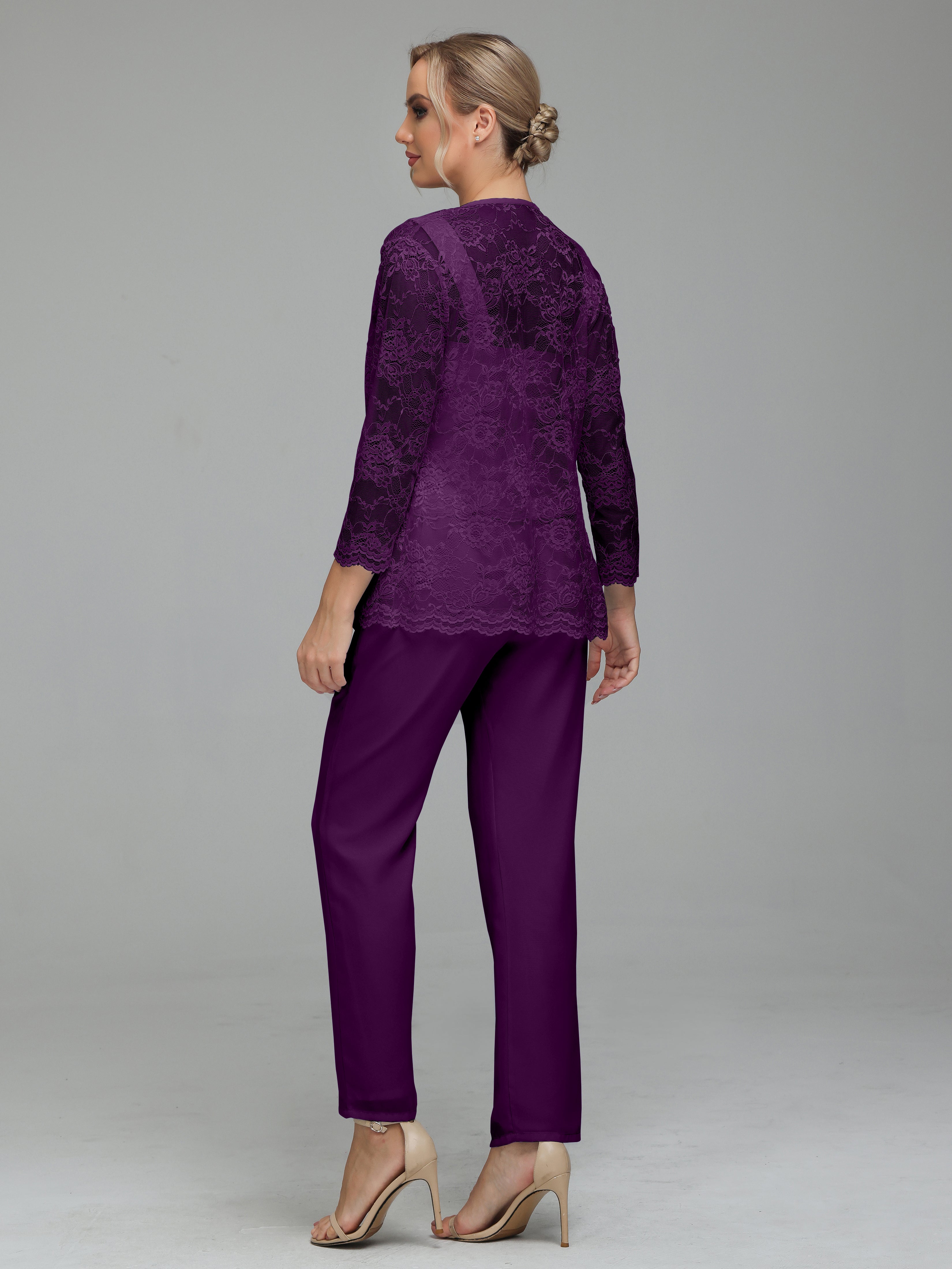 Graceful 3 Pieces Lace Chiffon Mother of Bride Dress Pant Suits