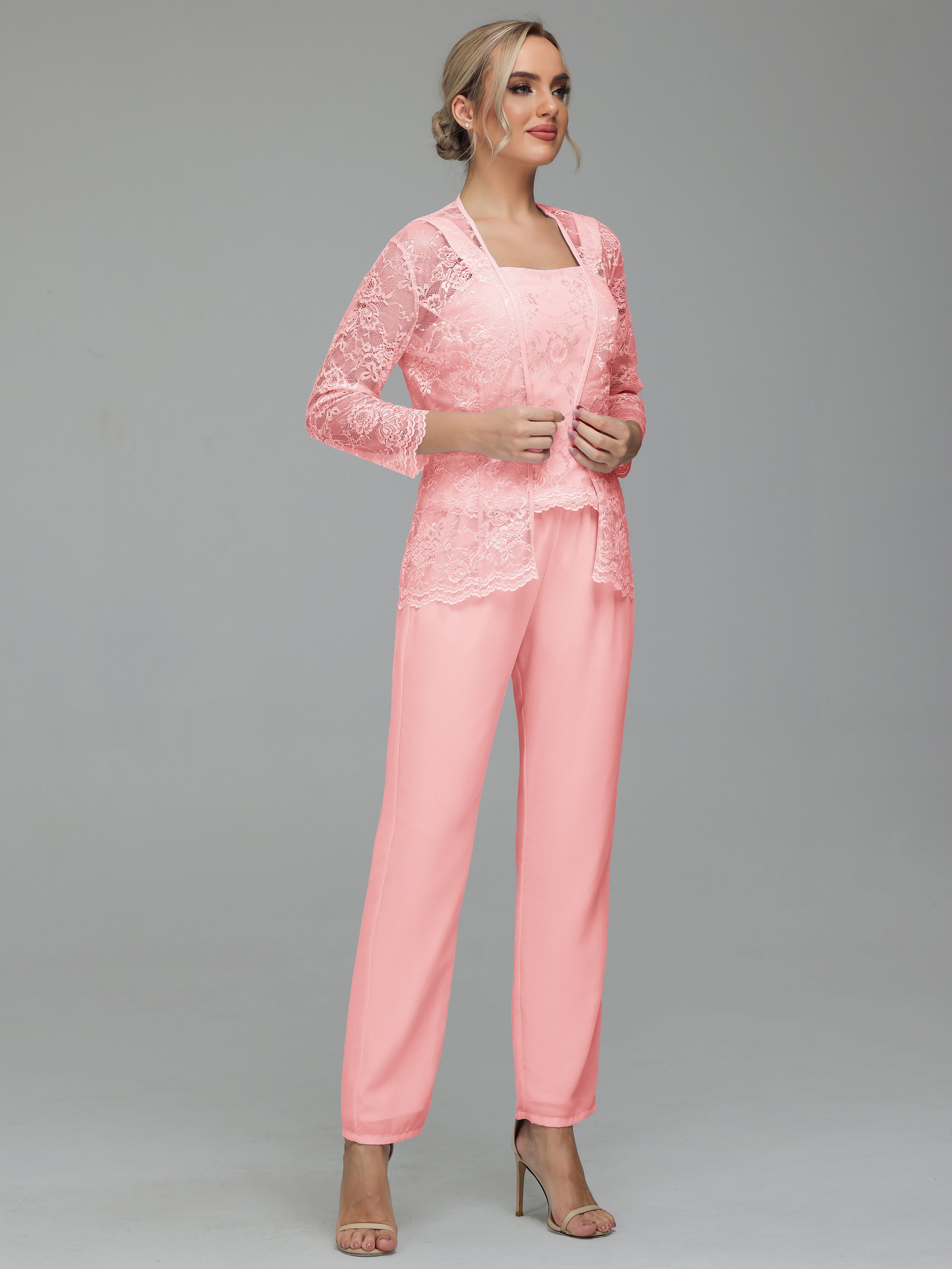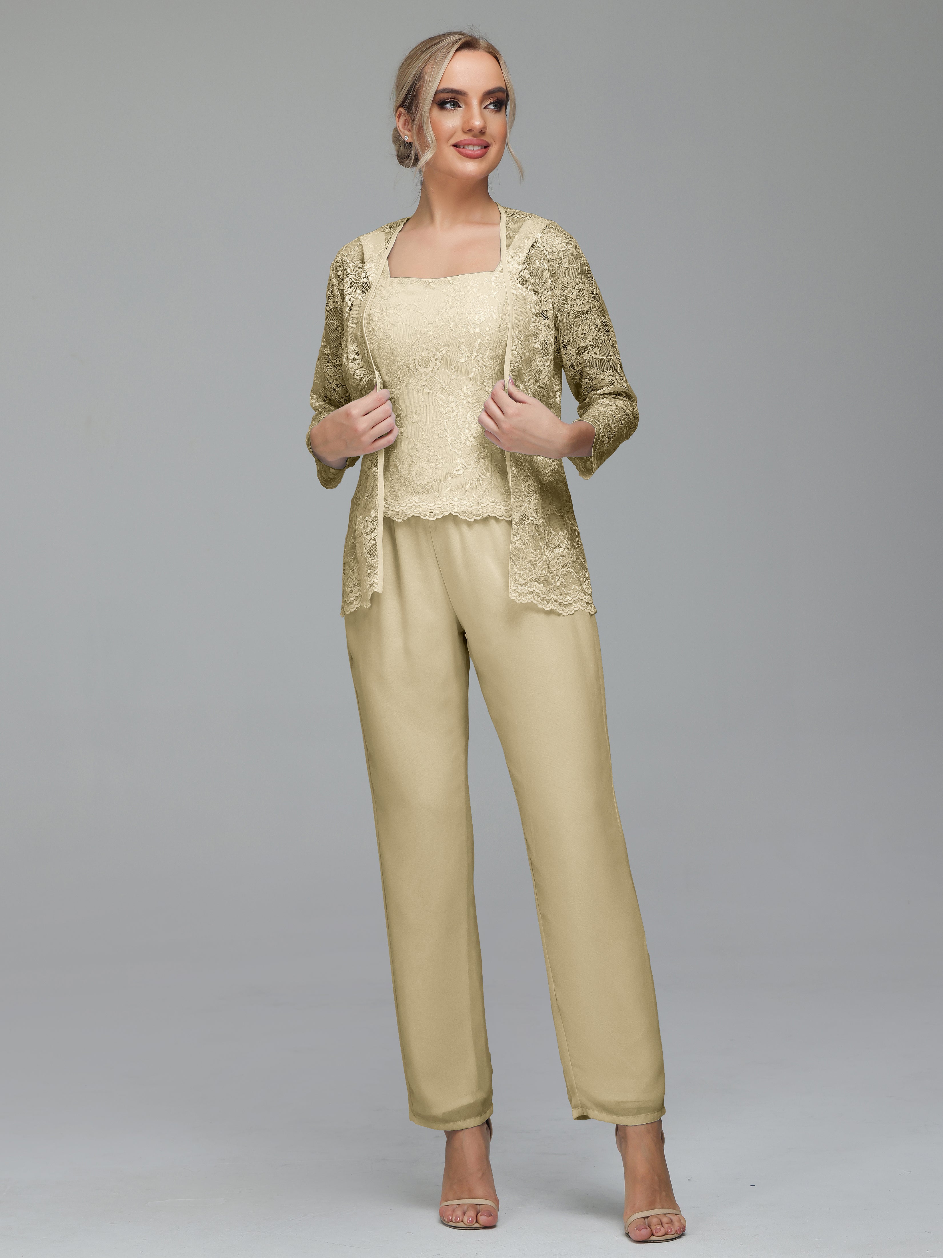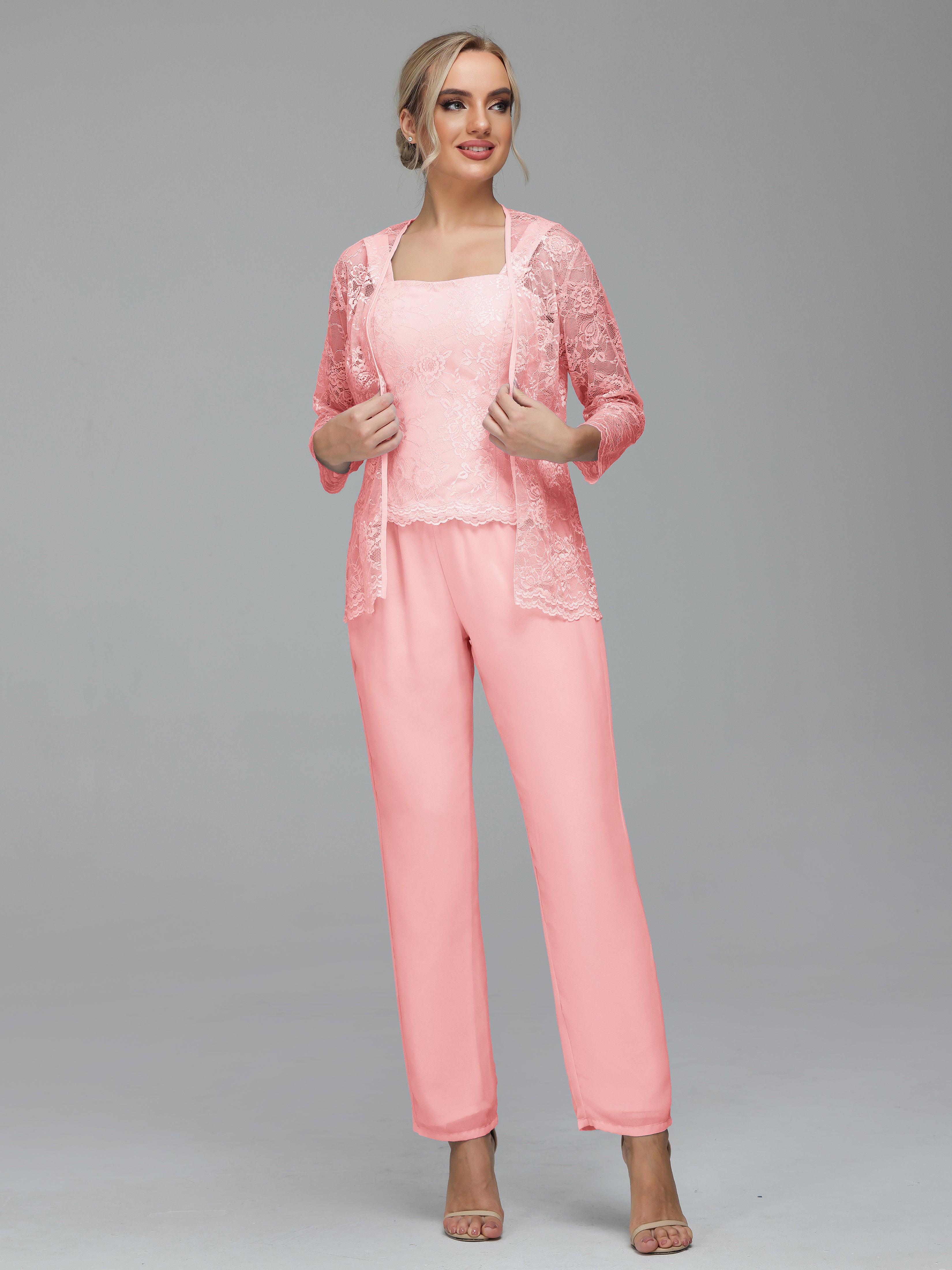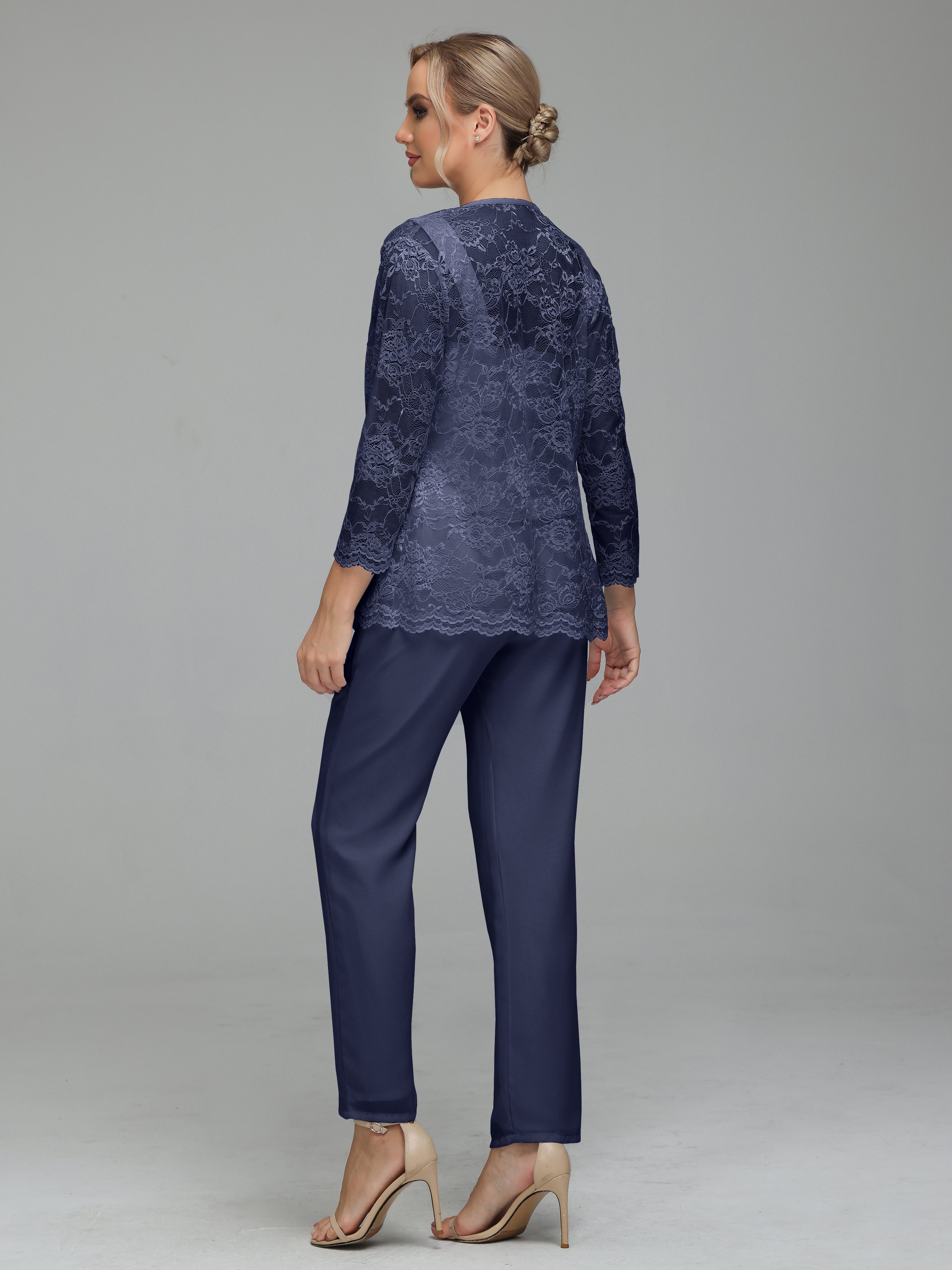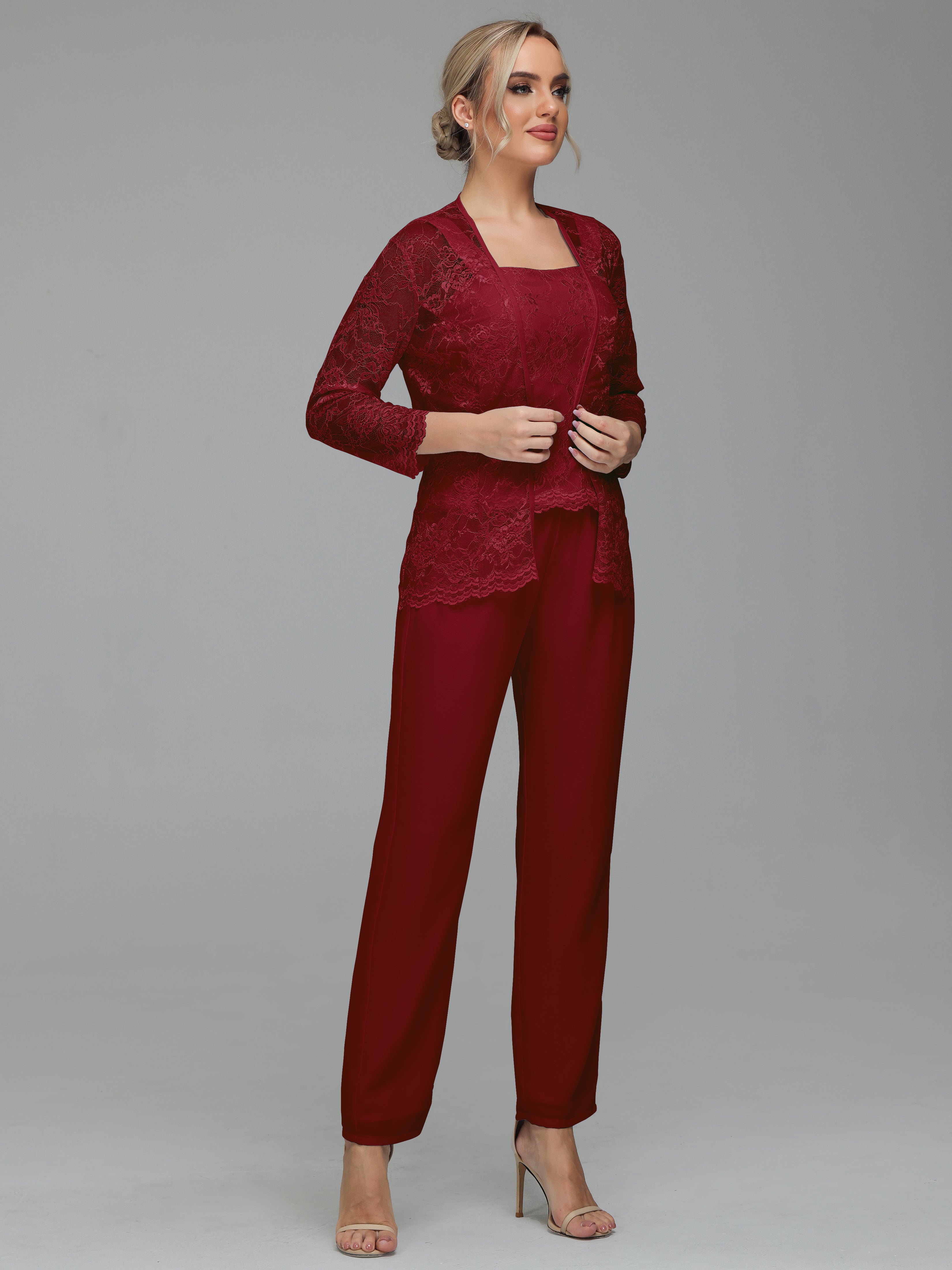 Graceful 3 Pieces Lace Chiffon Mother of Bride Dress Pant Suits
