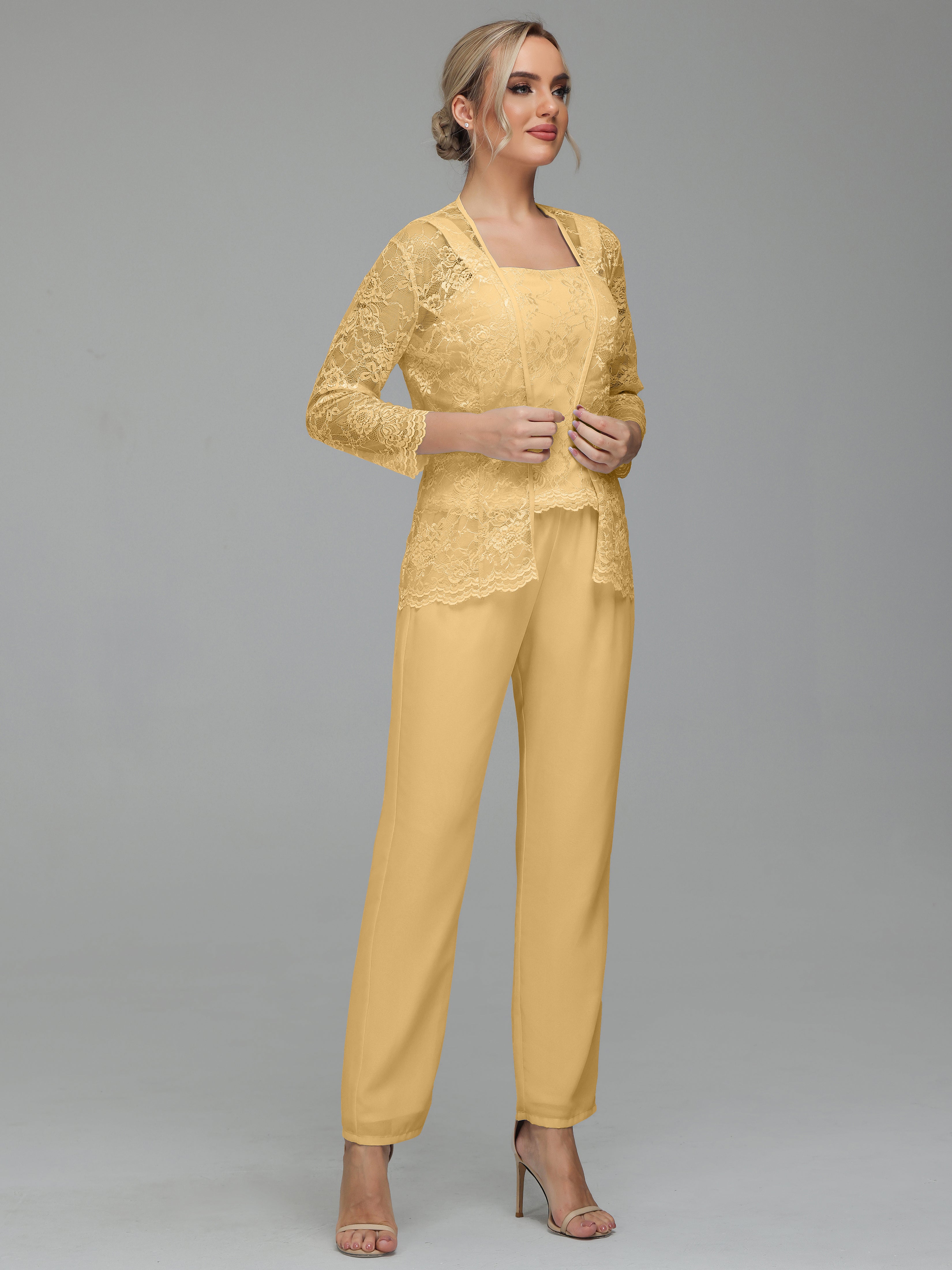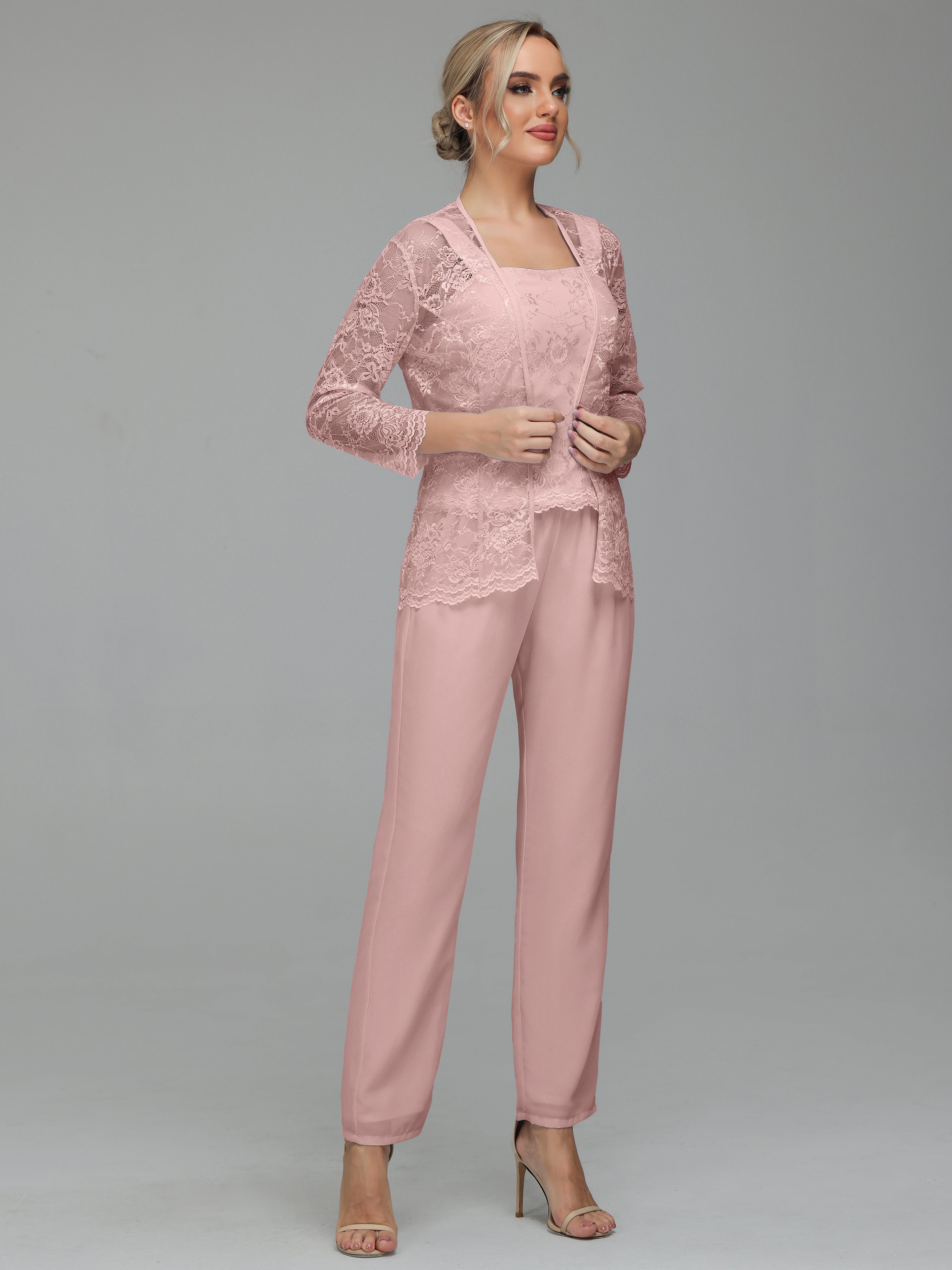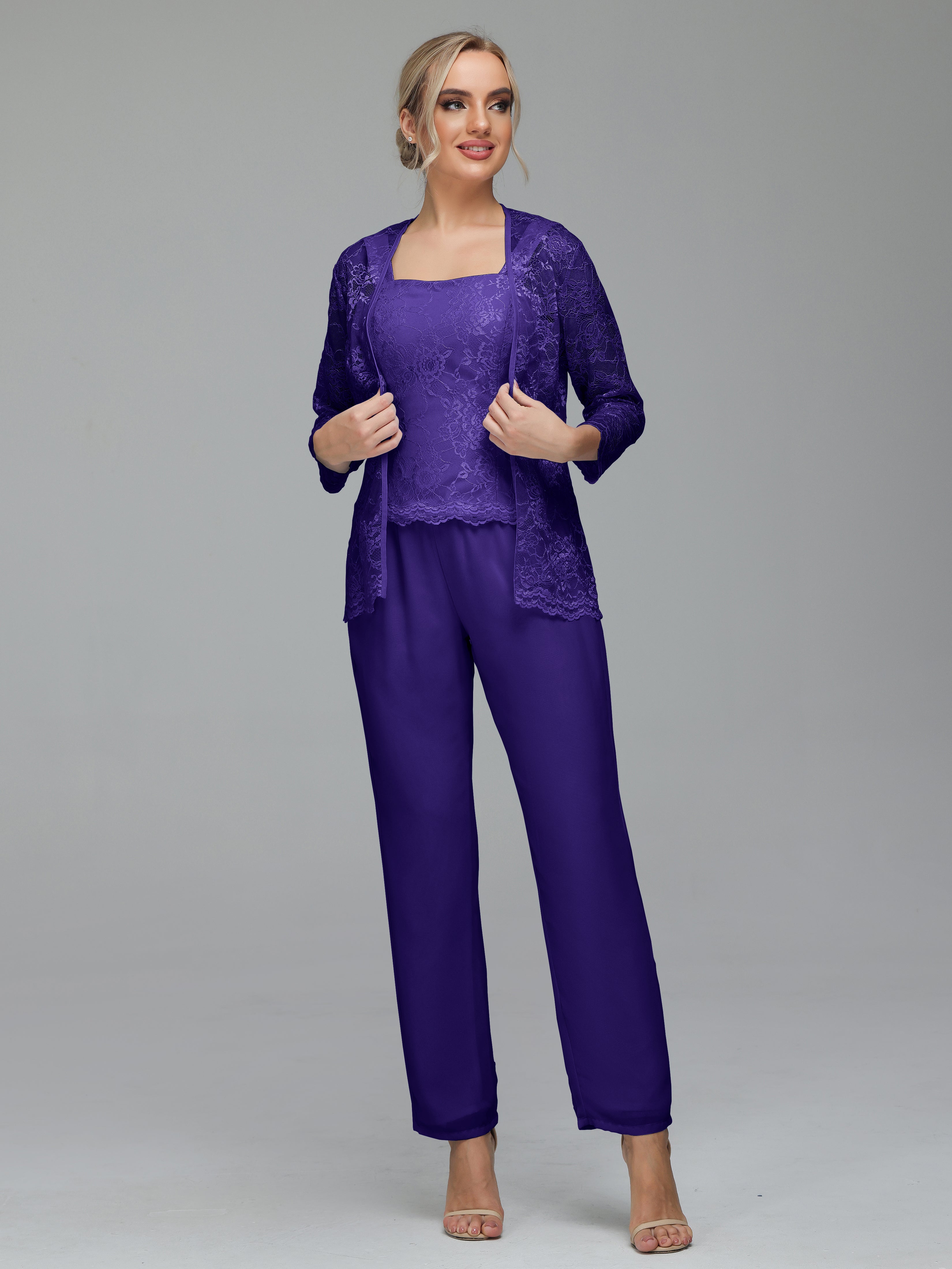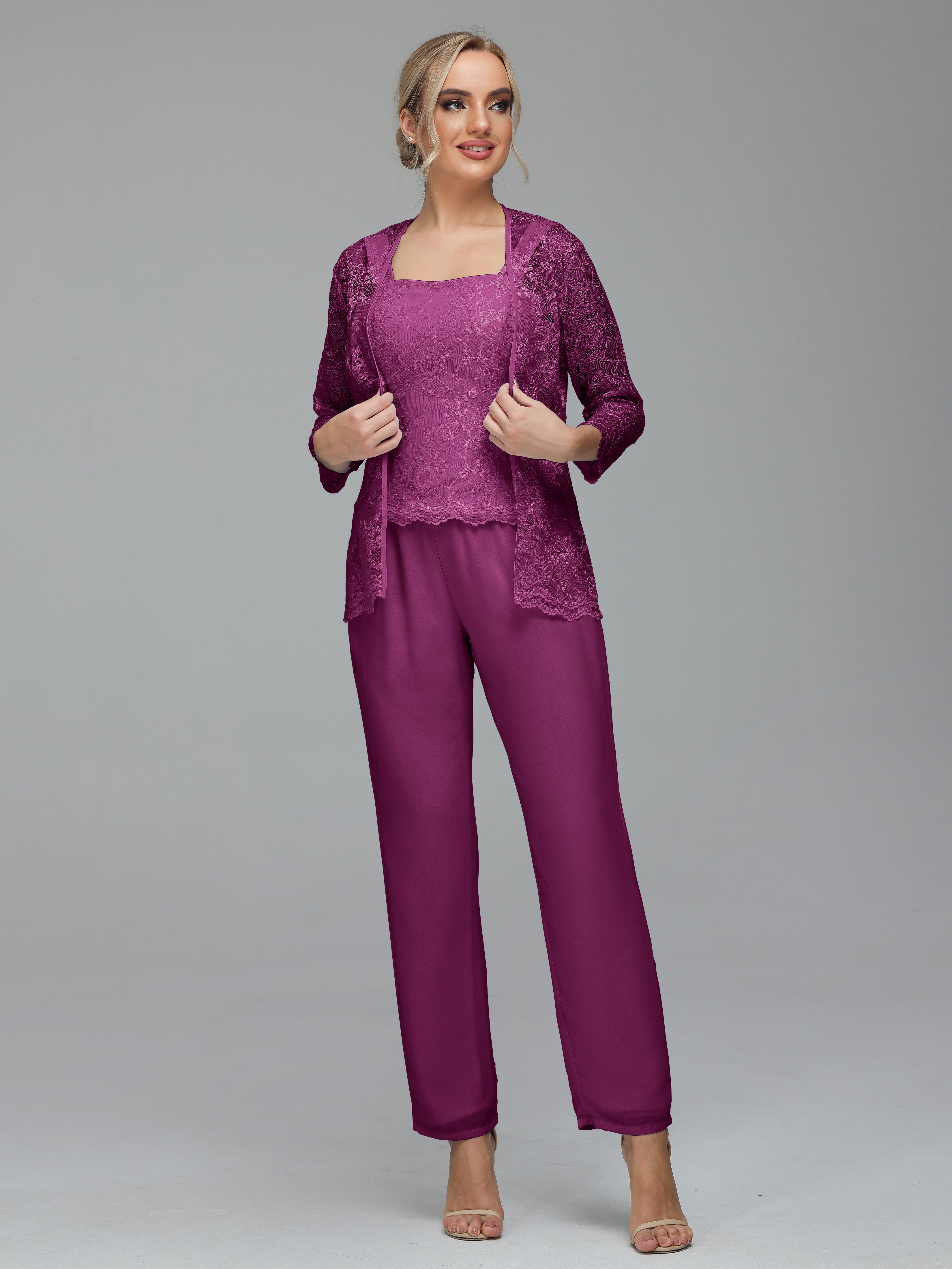 Graceful 3 Pieces Lace Chiffon Mother of Bride Dress Pant Suits