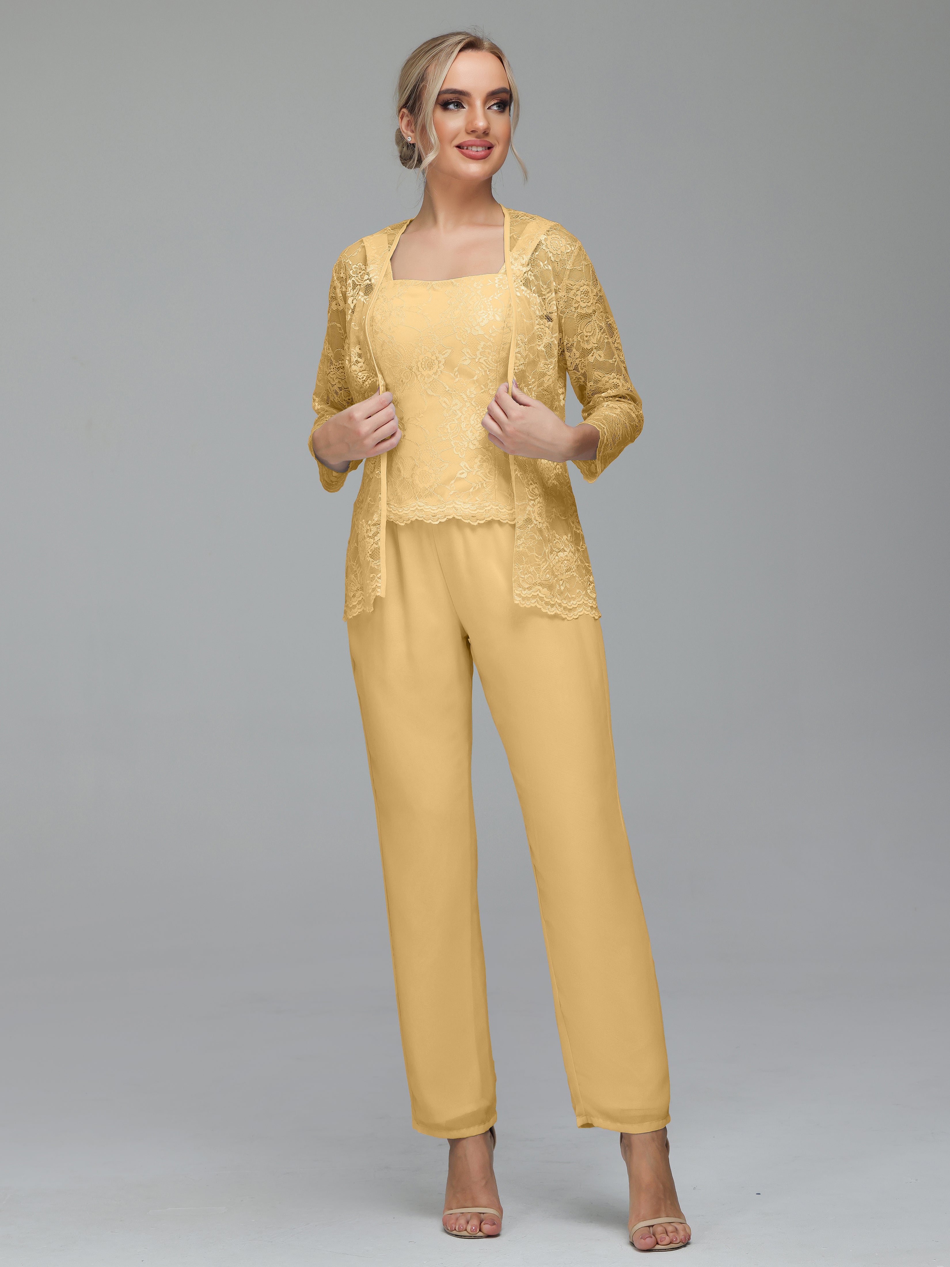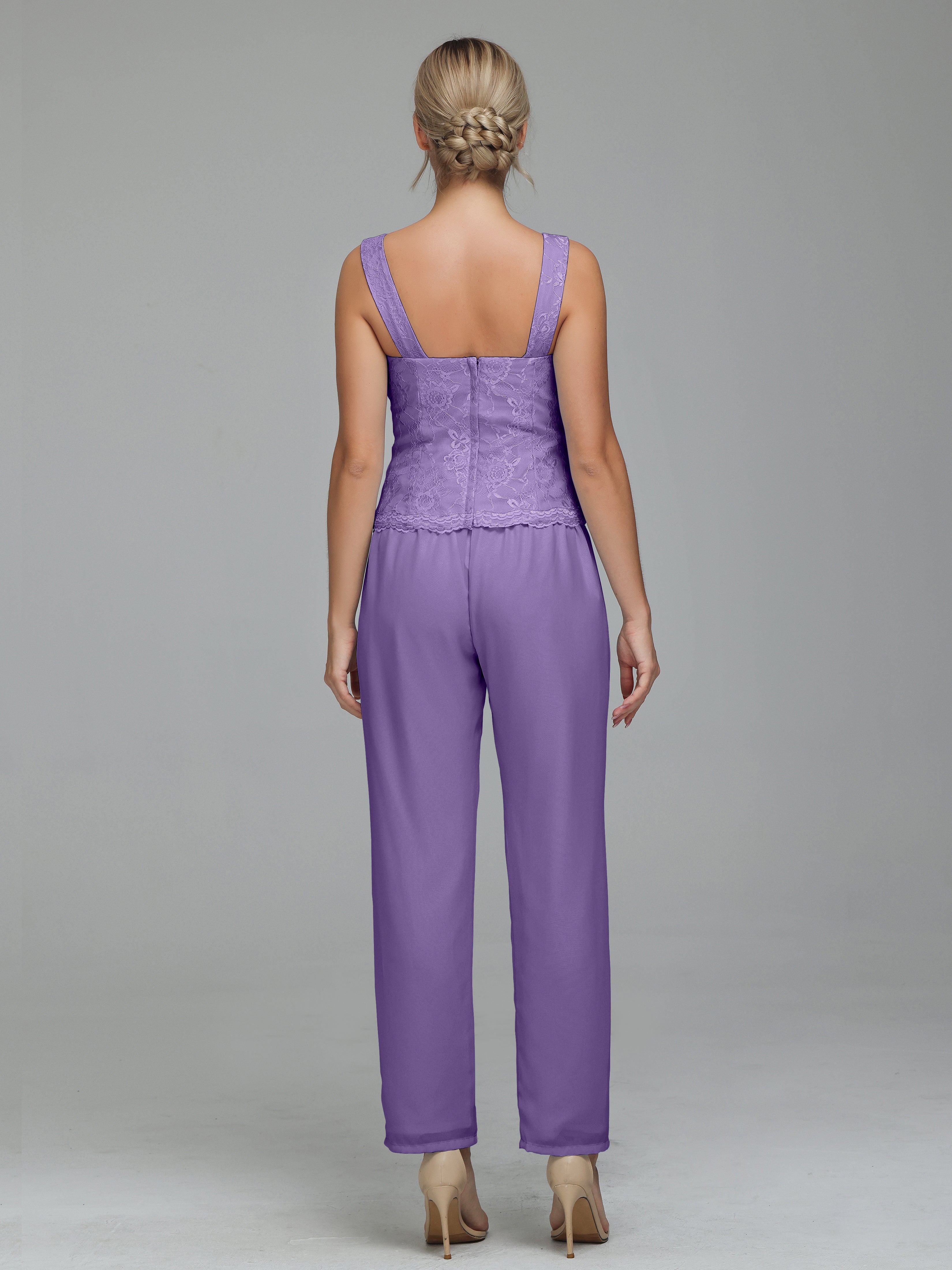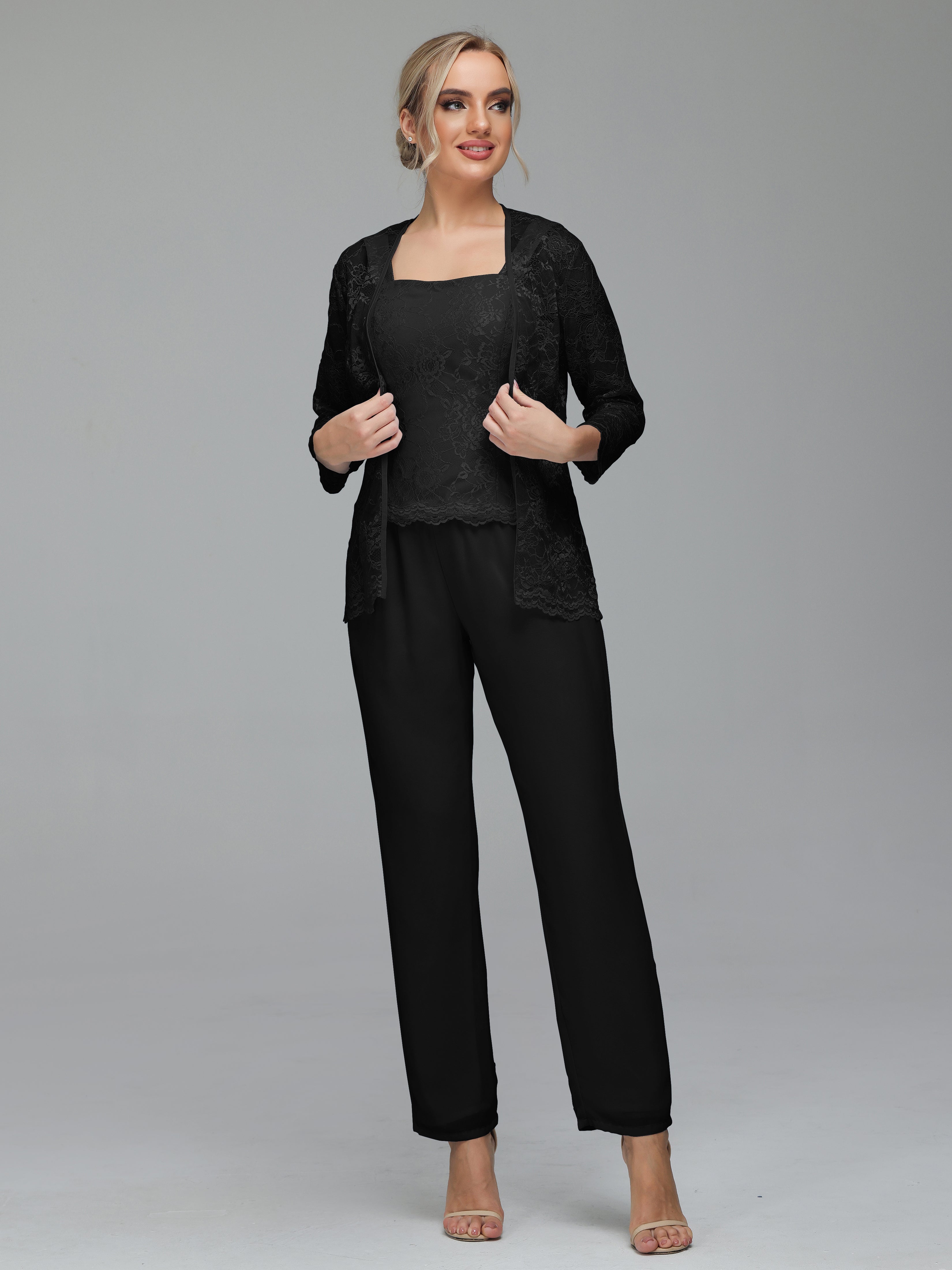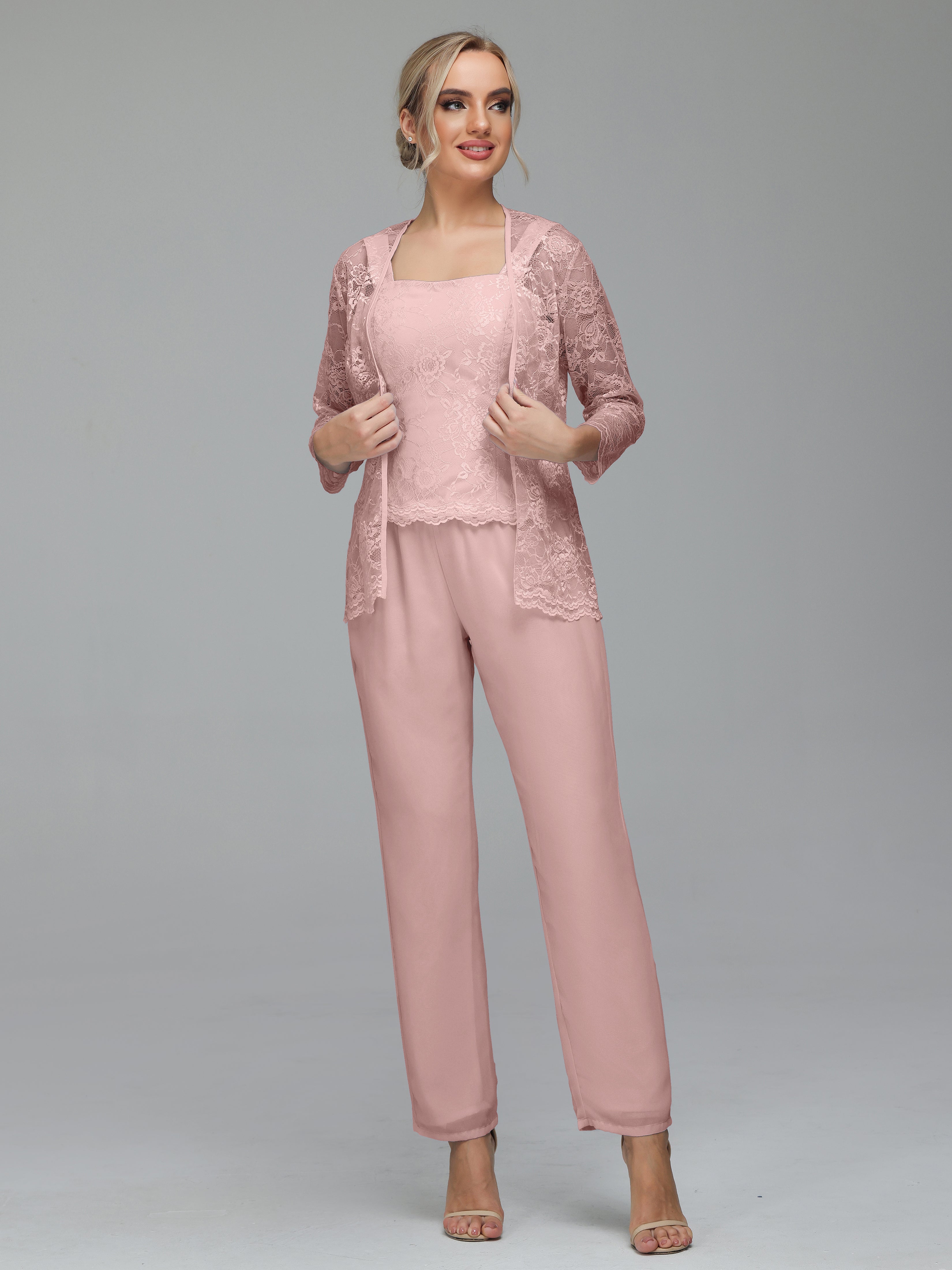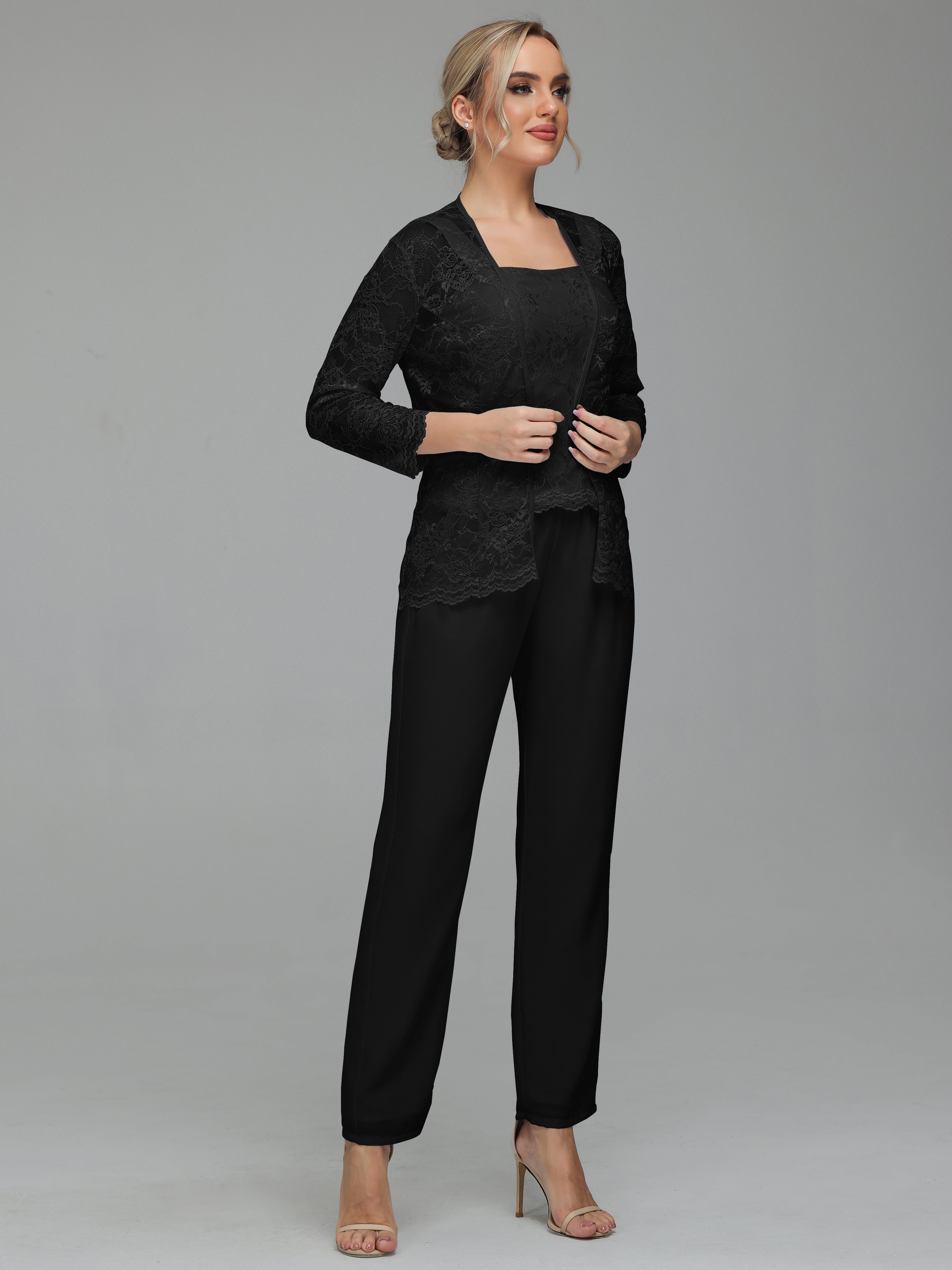 Graceful 3 Pieces Lace Chiffon Mother of Bride Dress Pant Suits