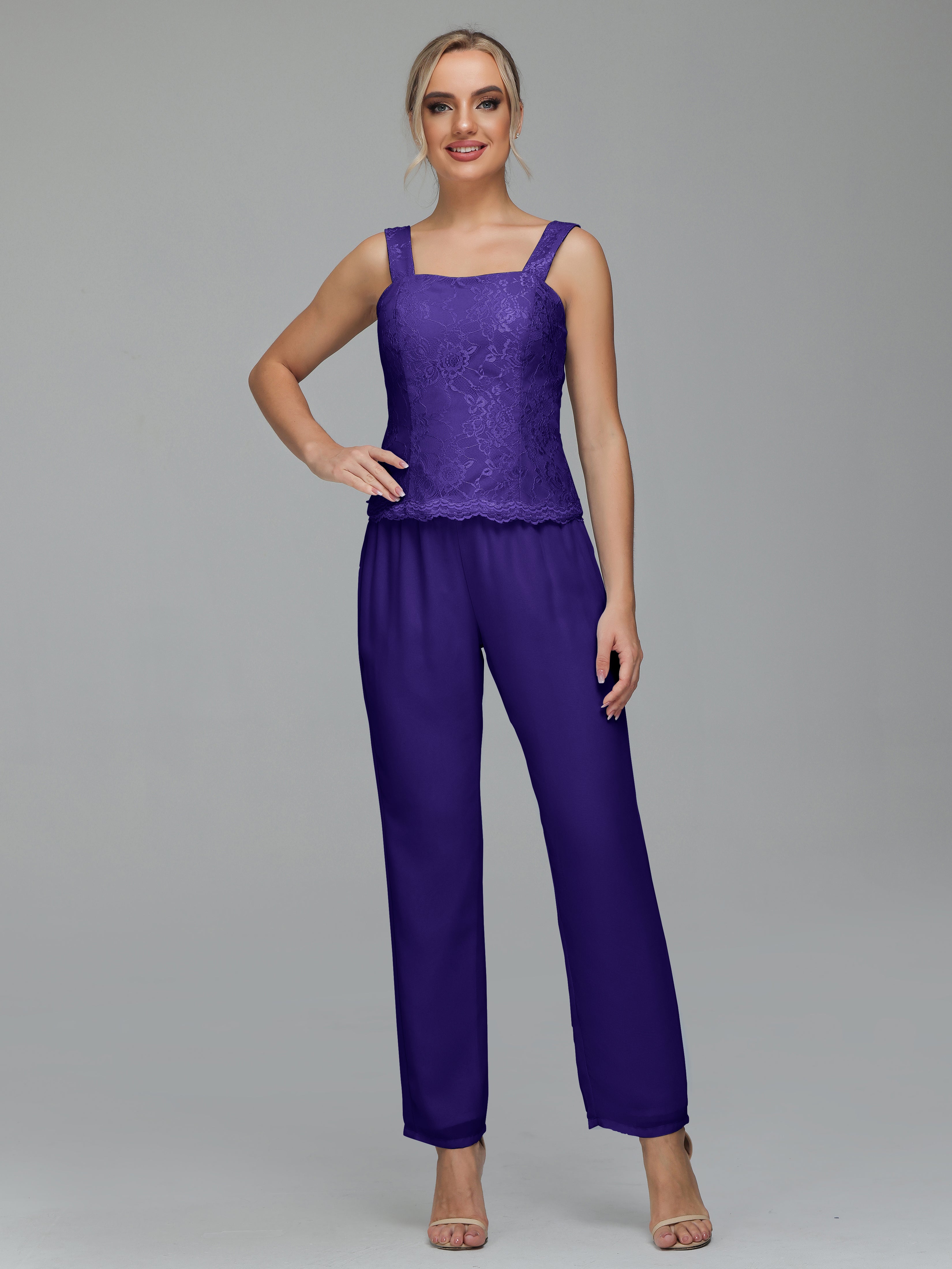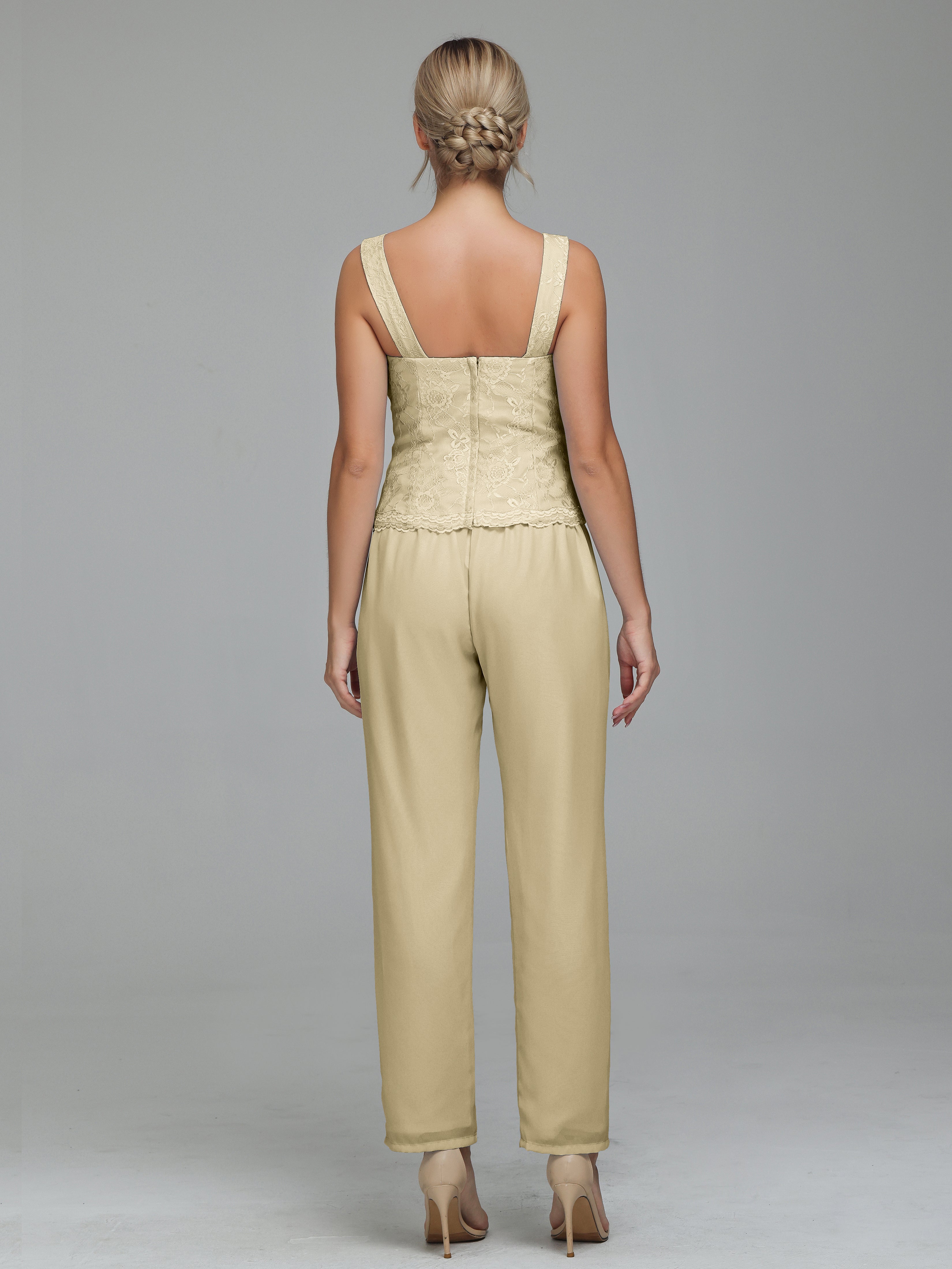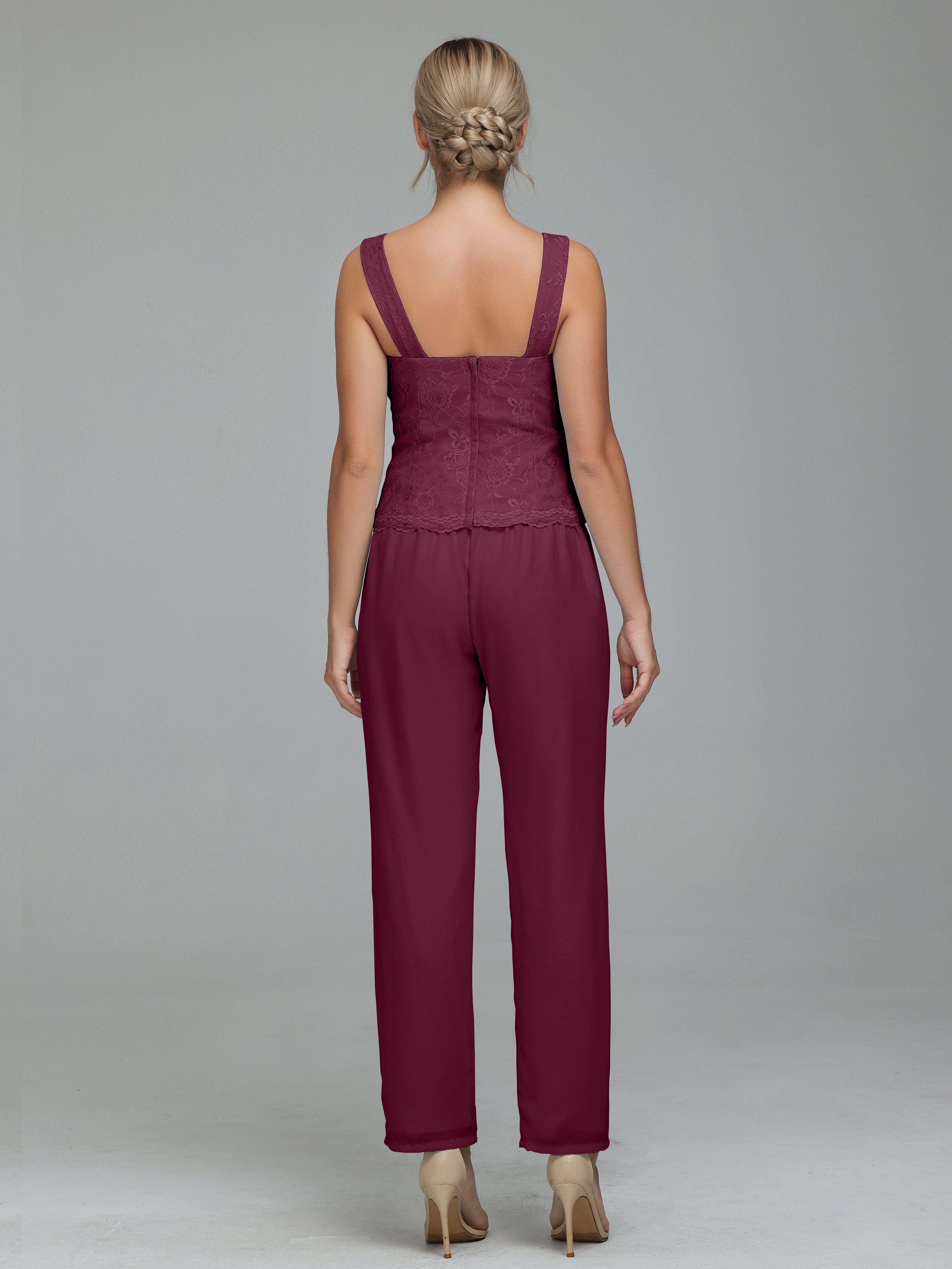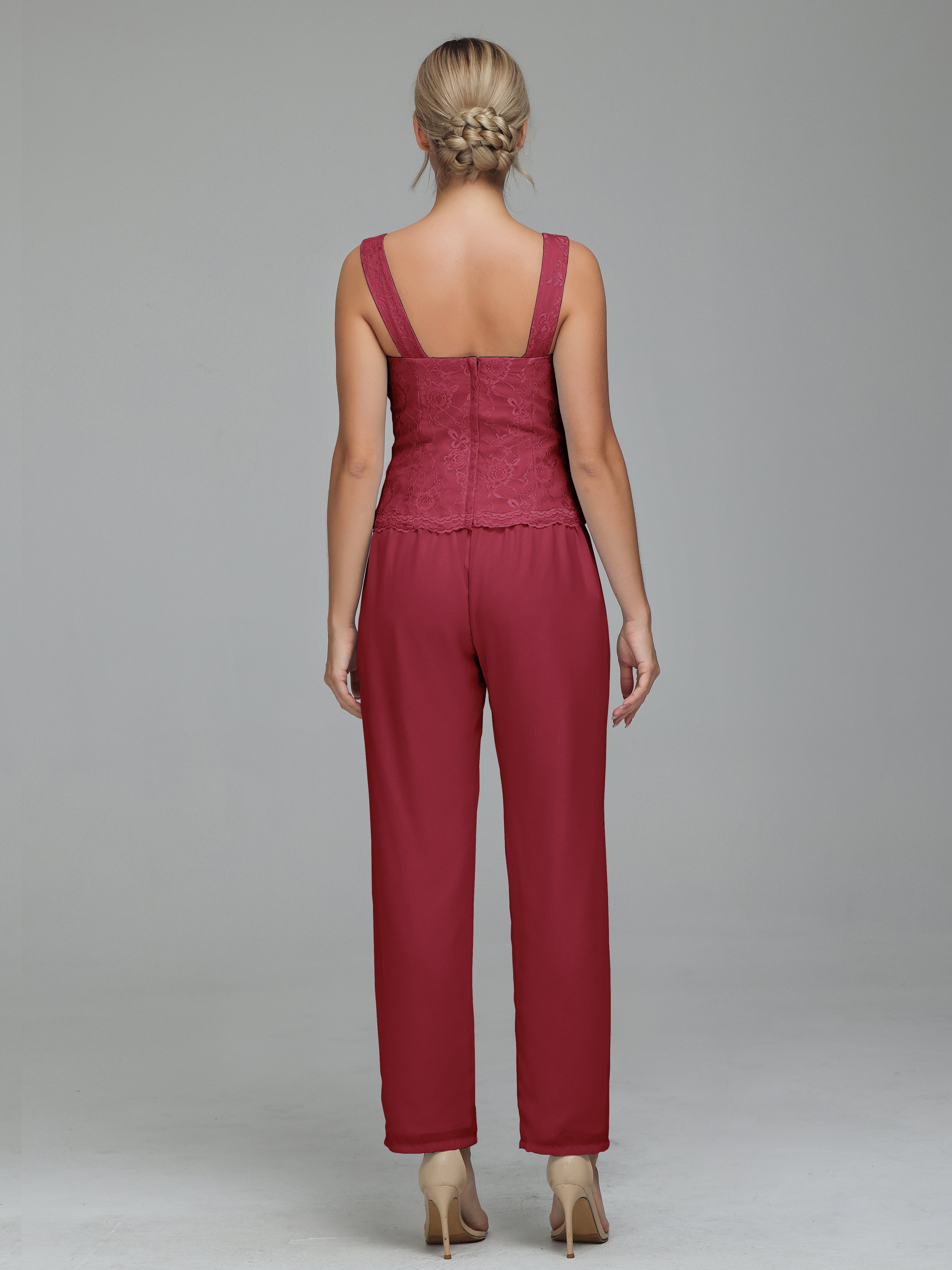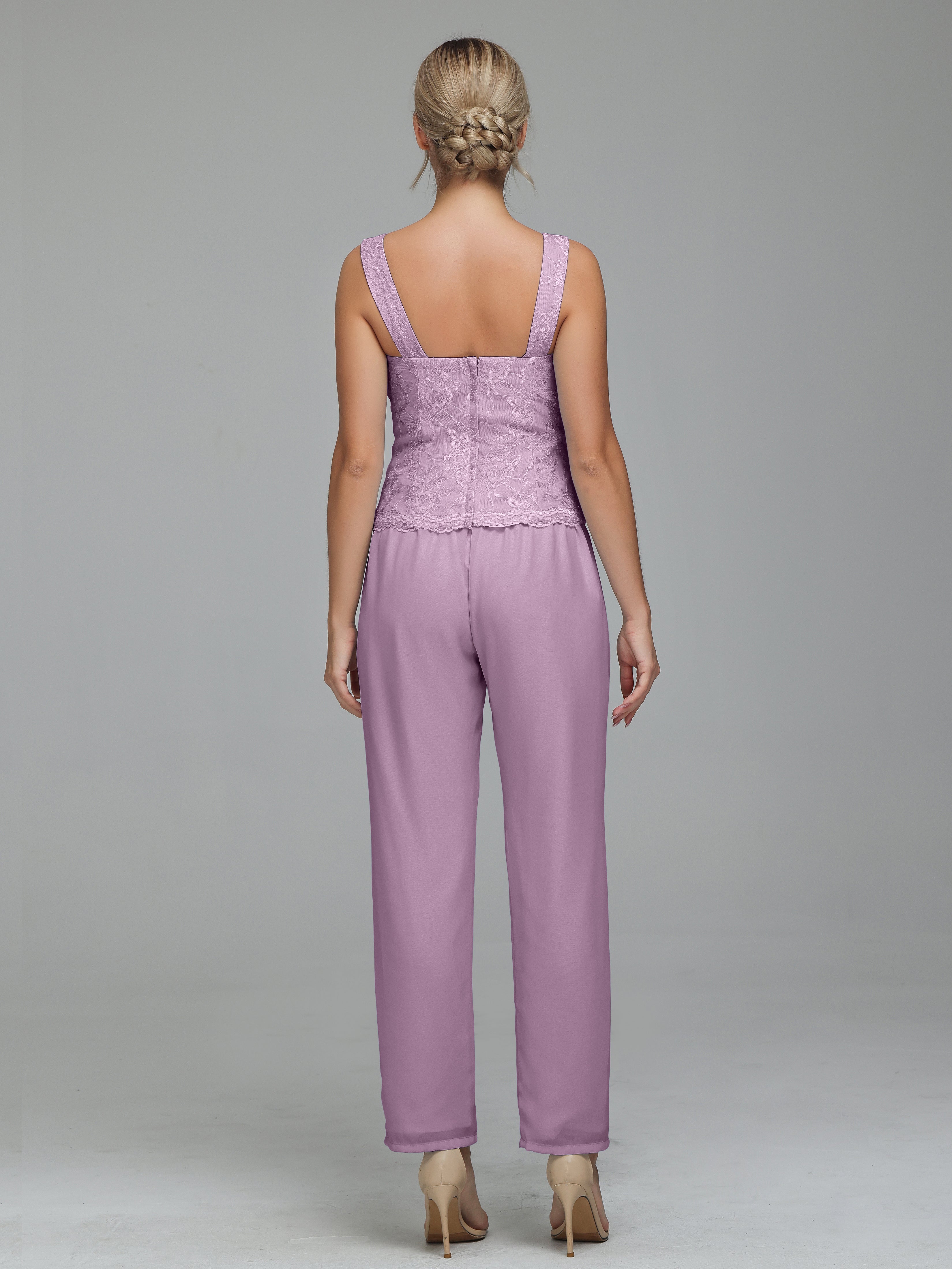 Graceful 3 Pieces Lace Chiffon Mother of Bride Dress Pant Suits