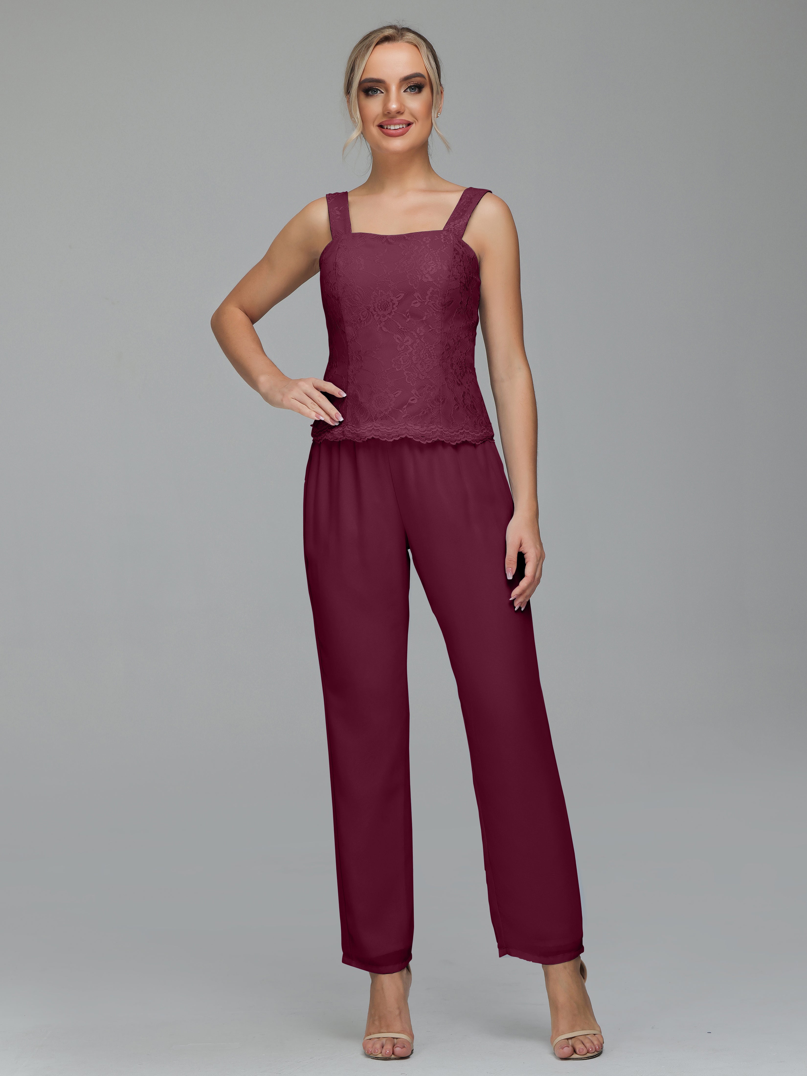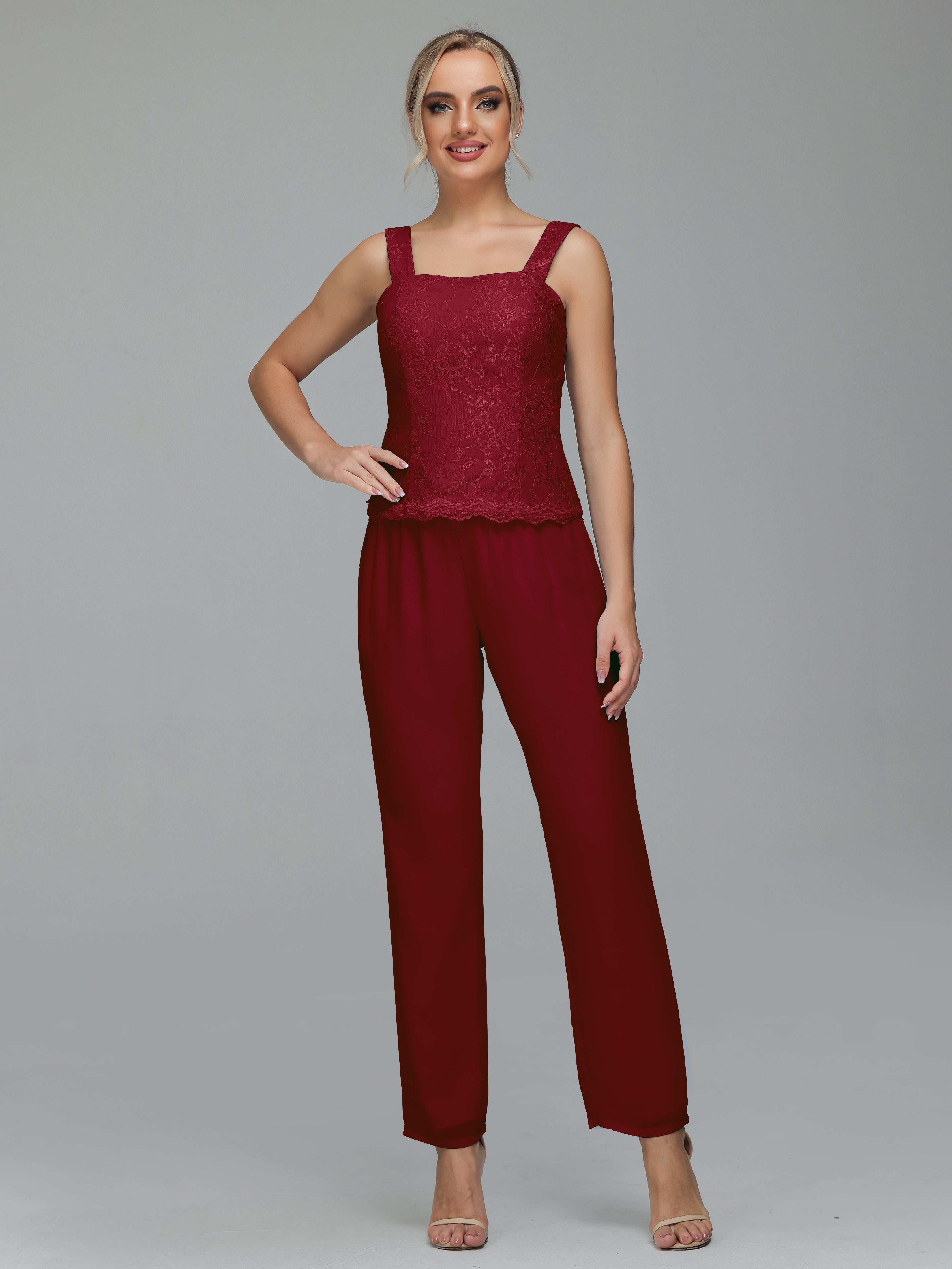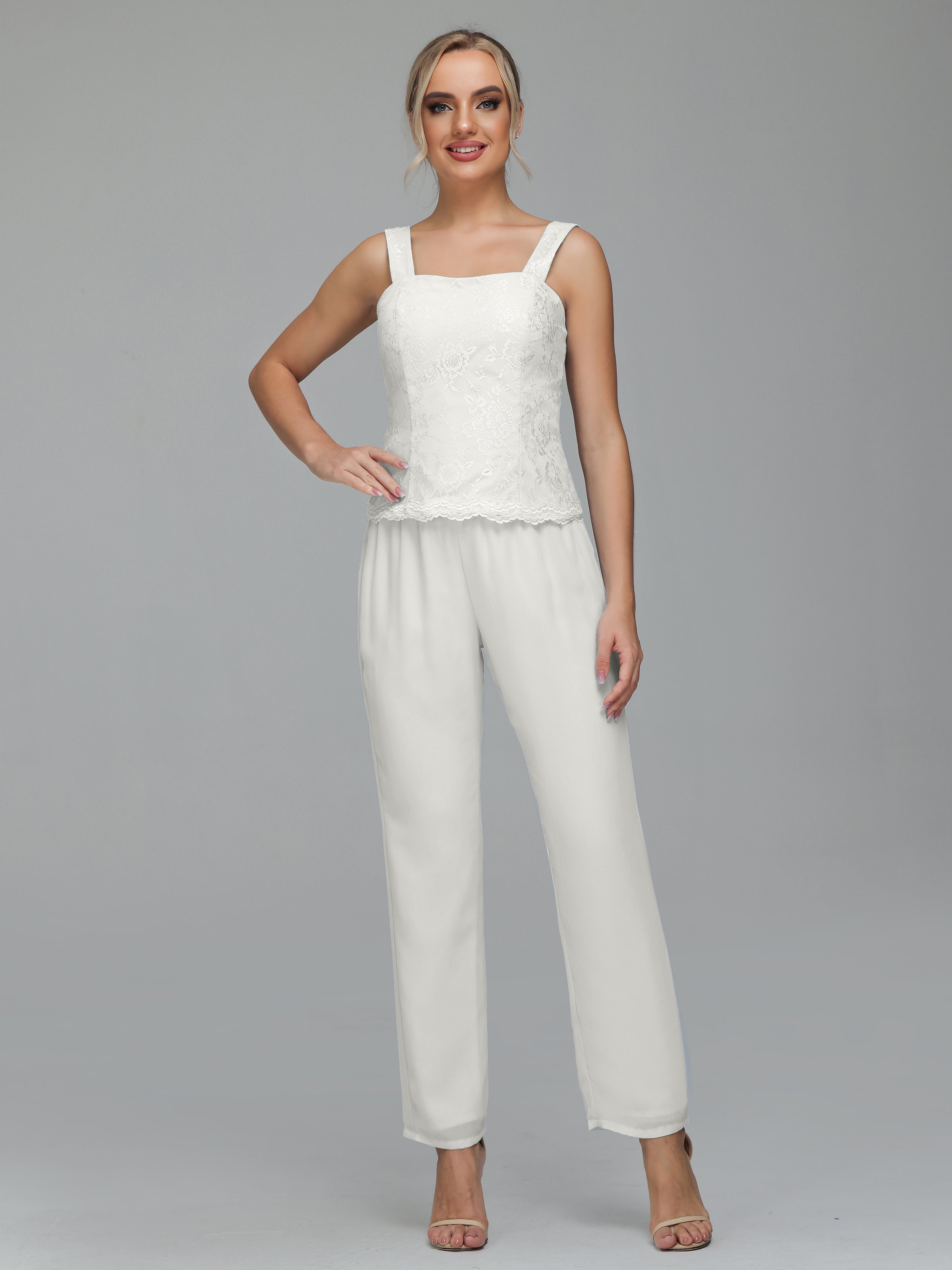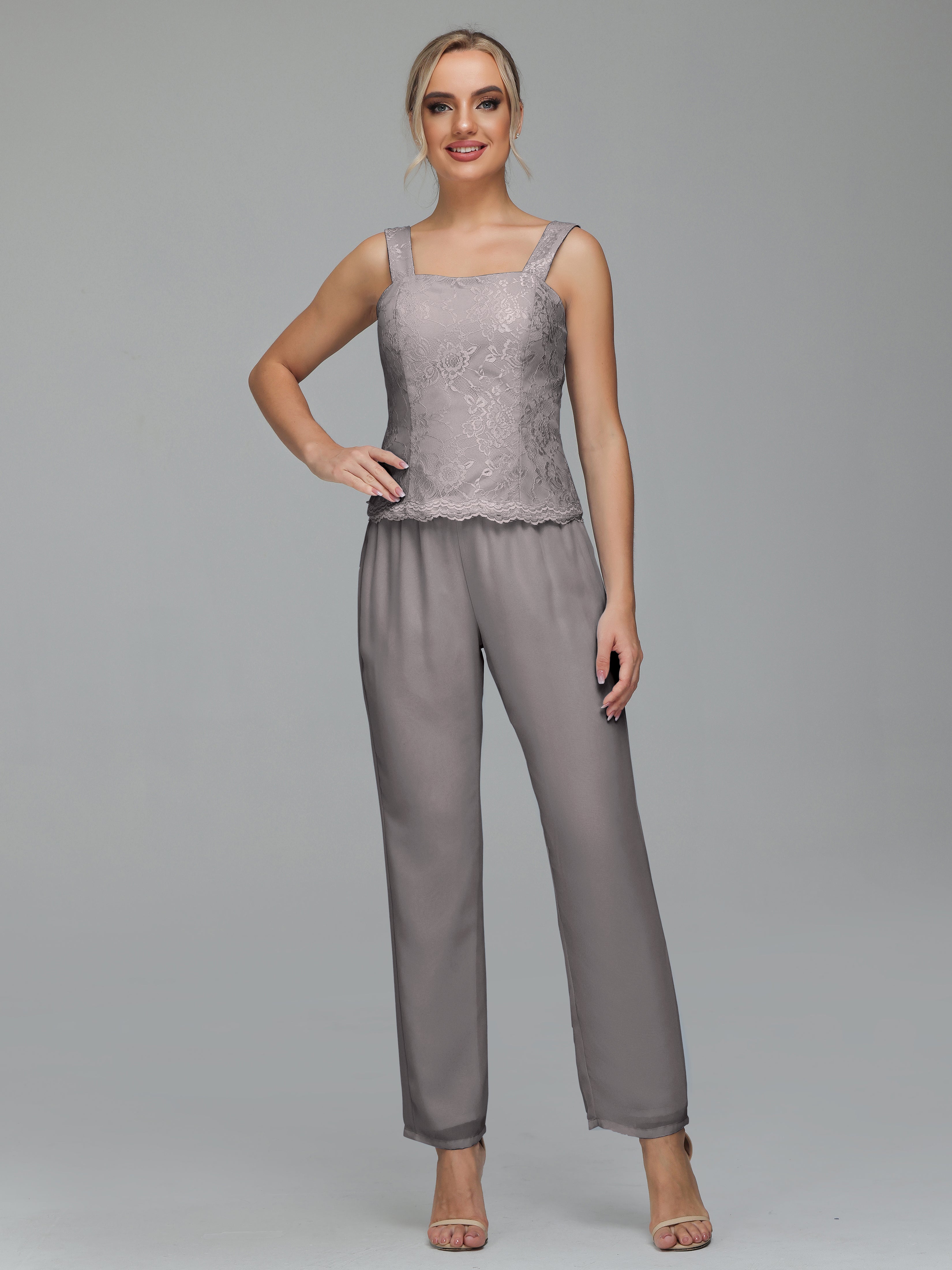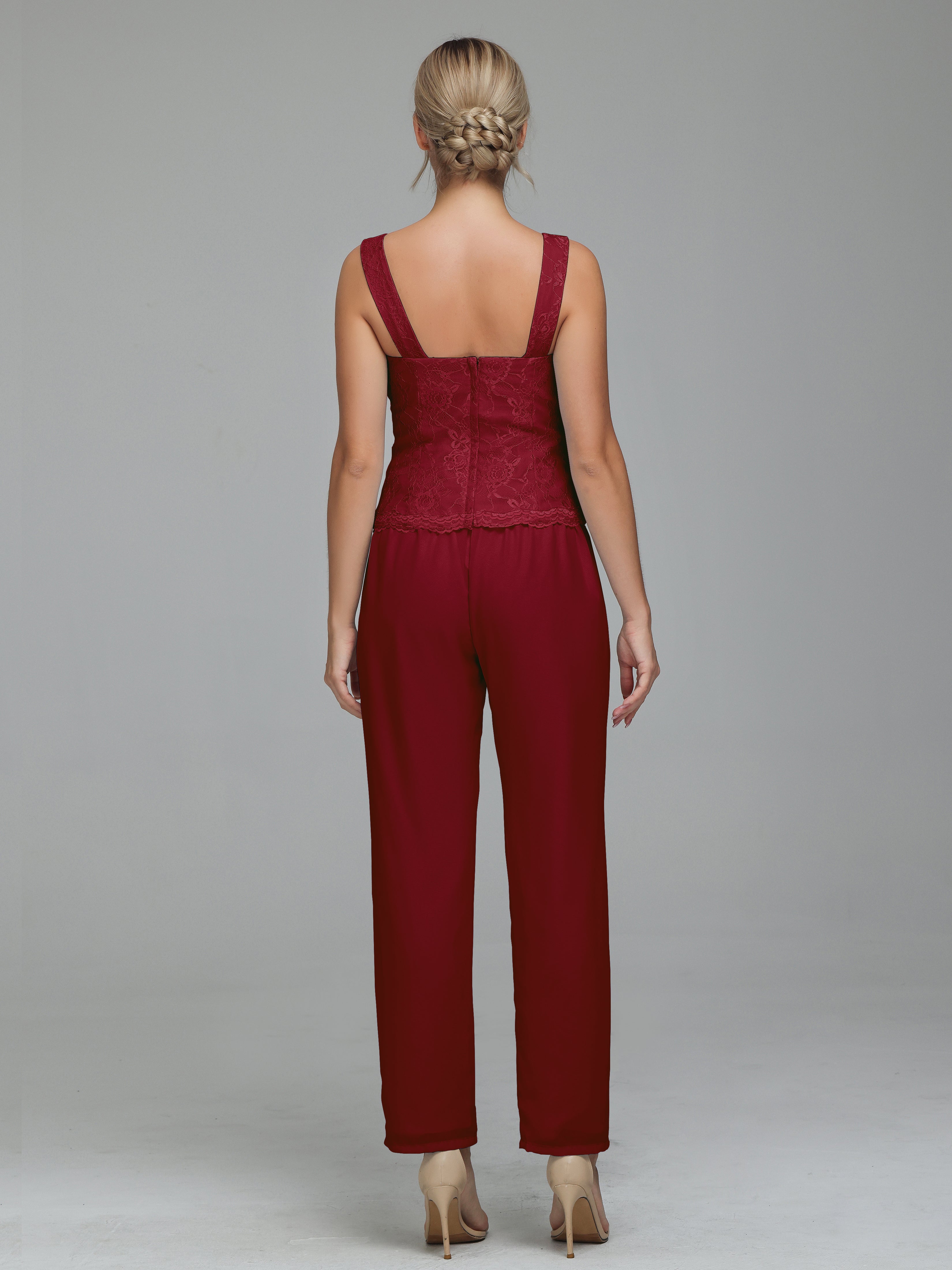 Graceful 3 Pieces Lace Chiffon Mother of Bride Dress Pant Suits