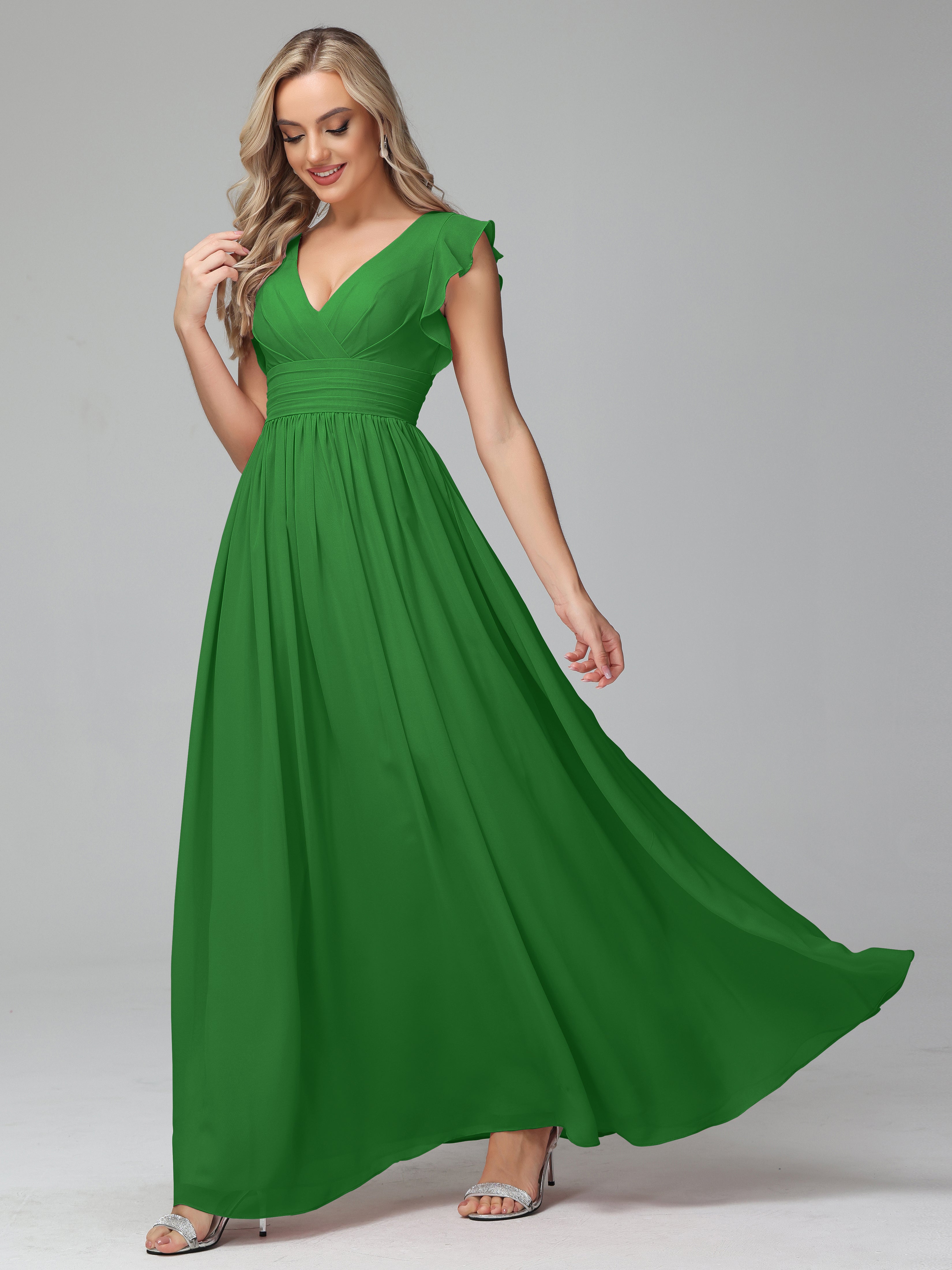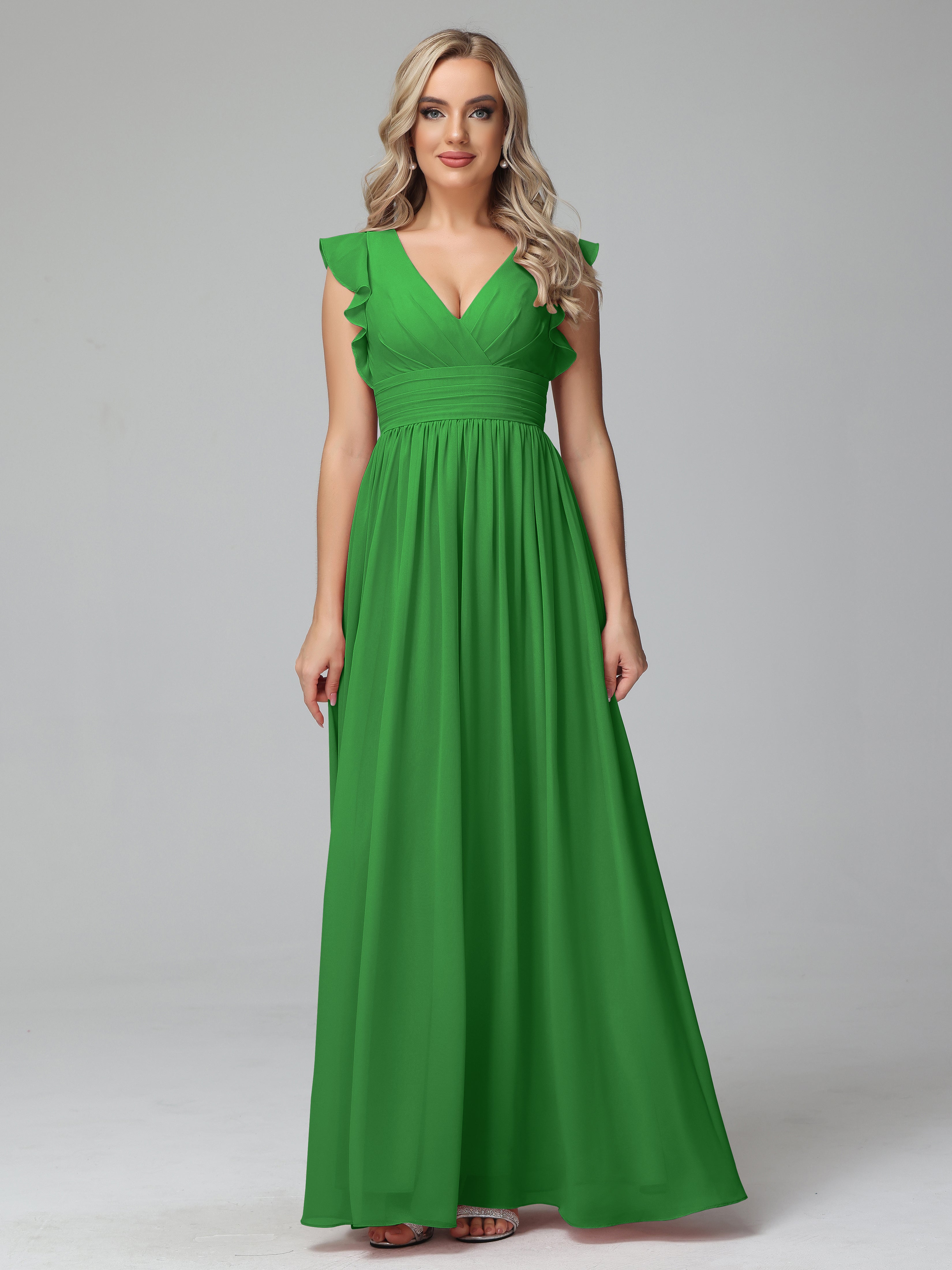 Green Bridesmaid Dresses Uk Bonnie V-Neck Chiffon Bridesmaid Dresses With Ruffle Sleeves