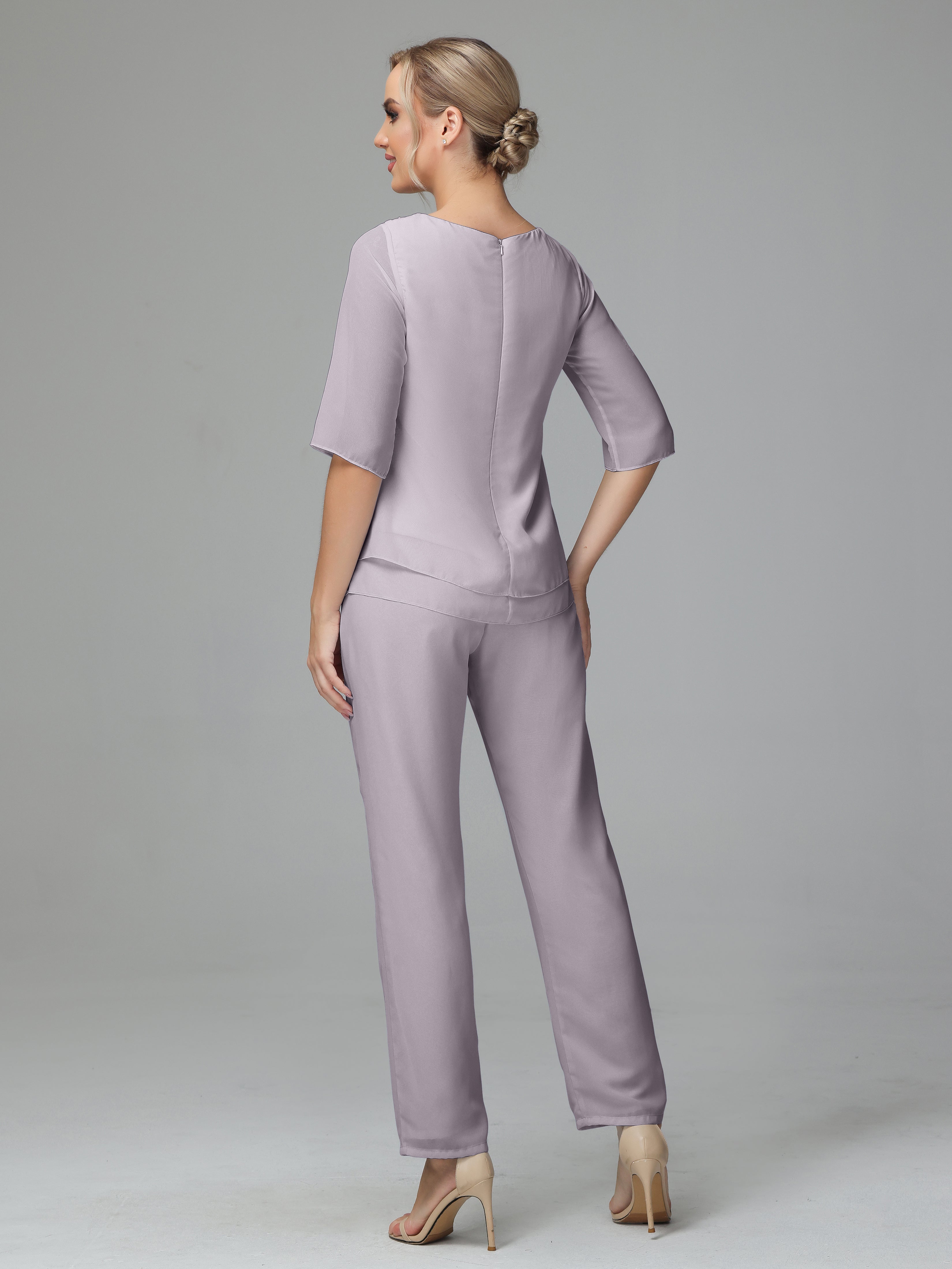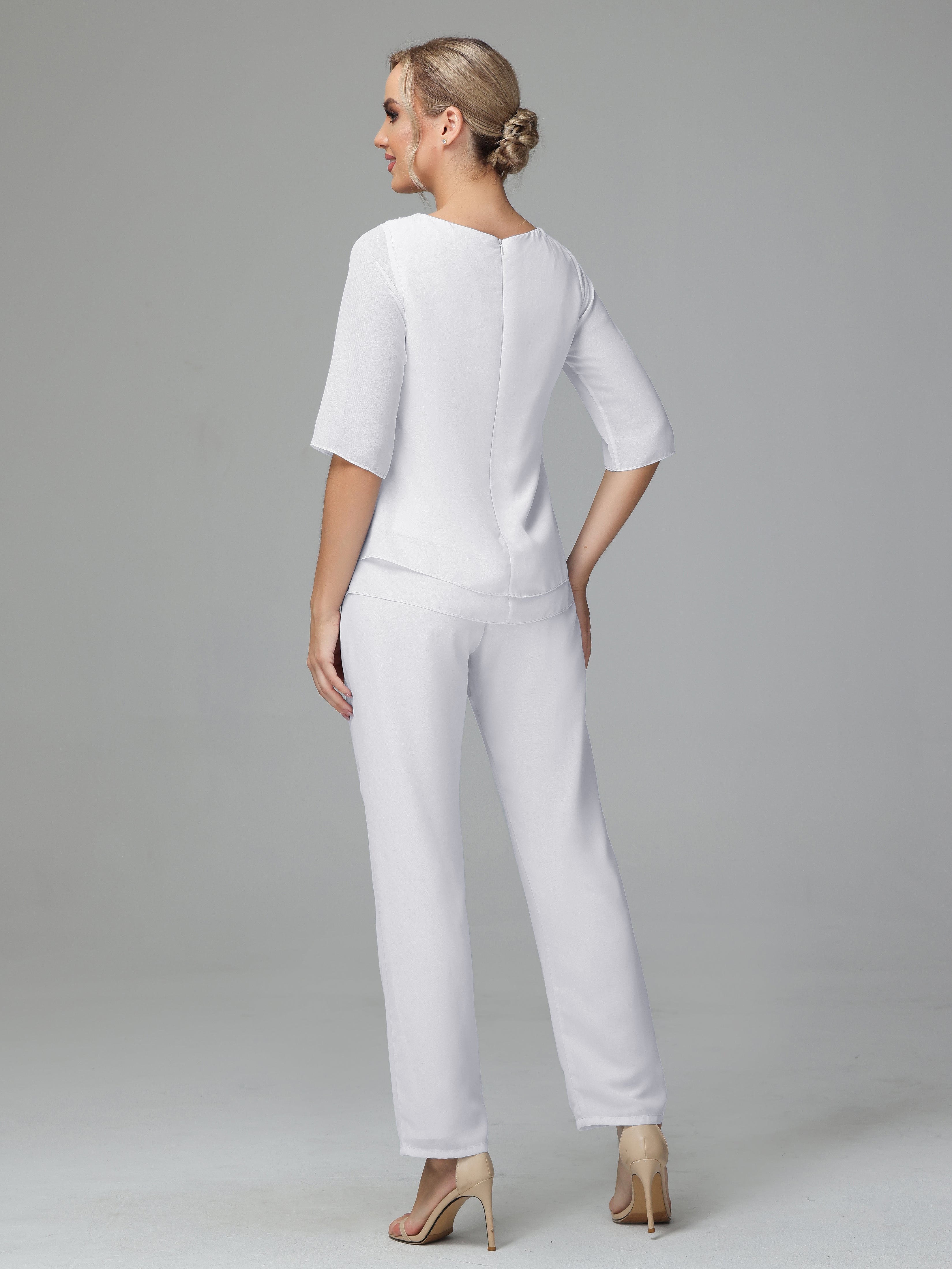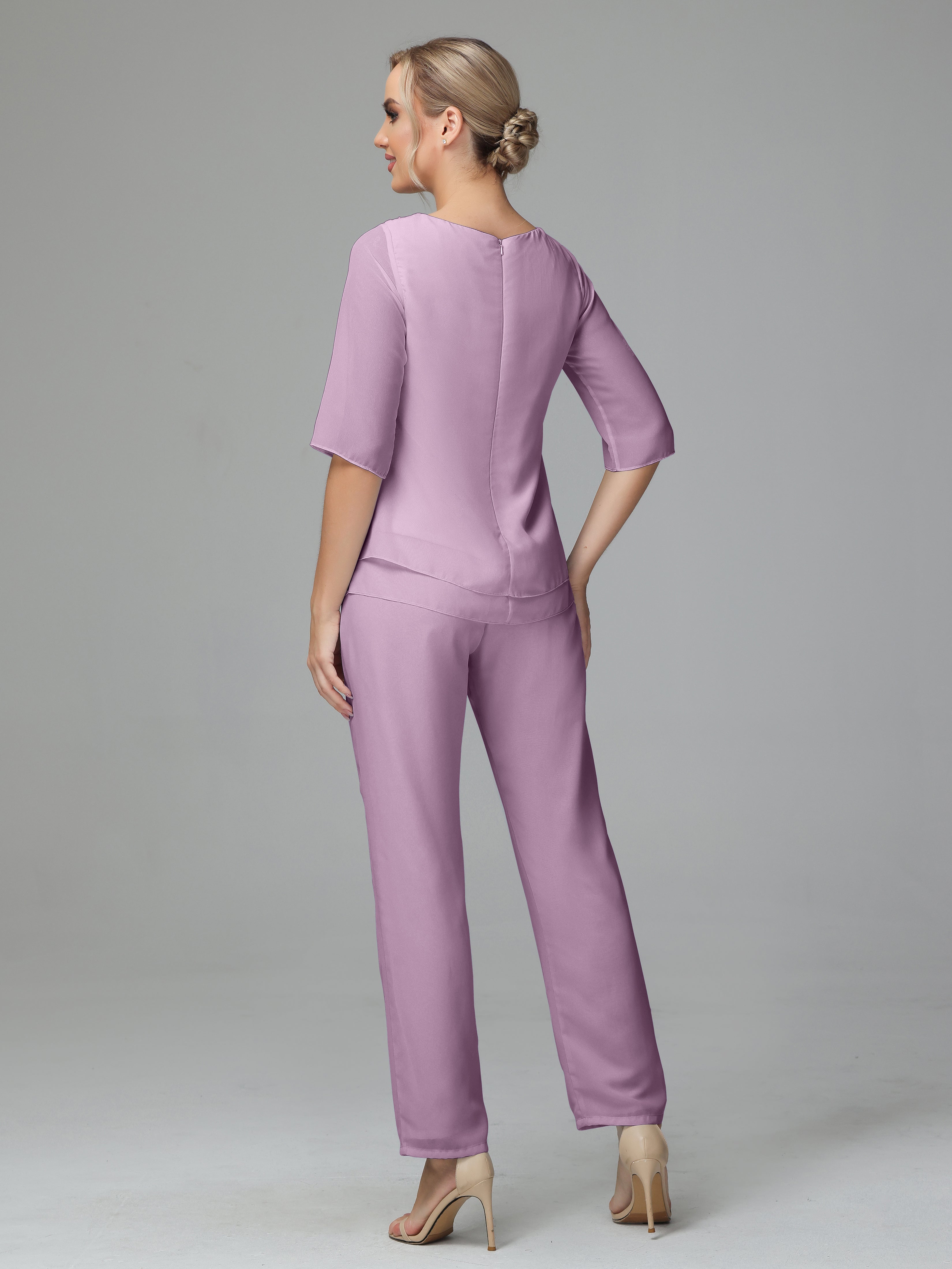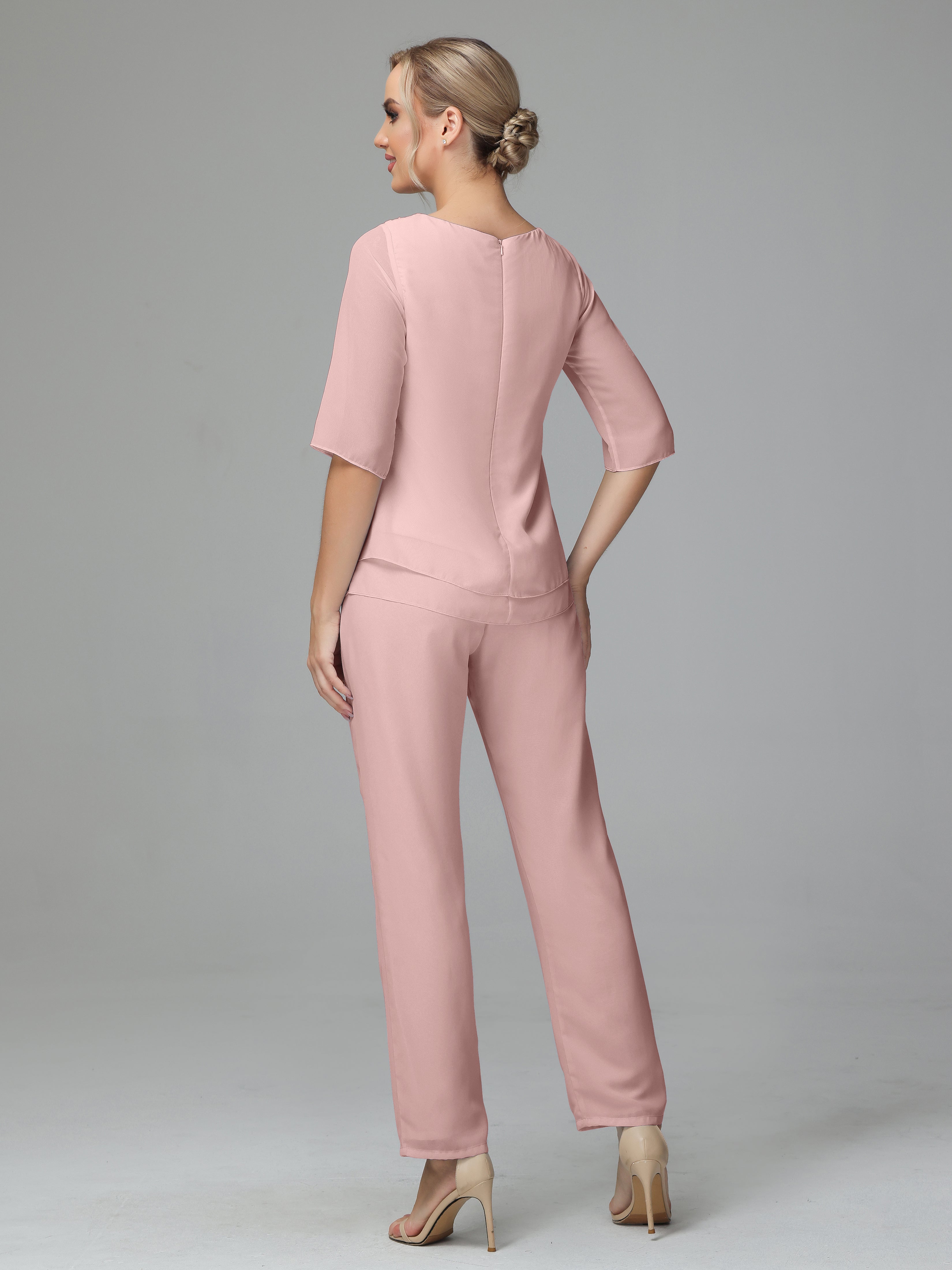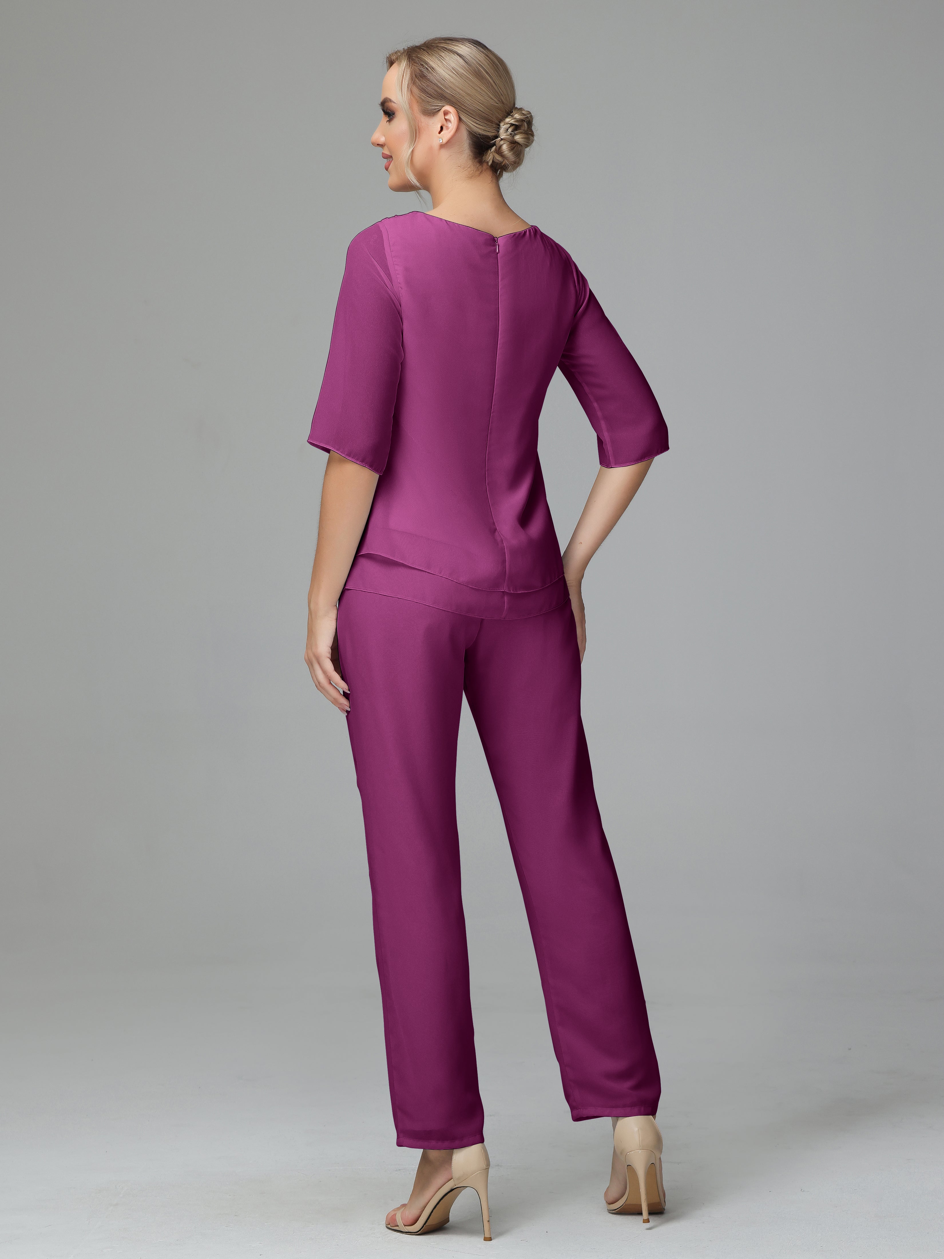Half Sleeves 2 Pieces Mother Of The Bride Dress Pants Suits