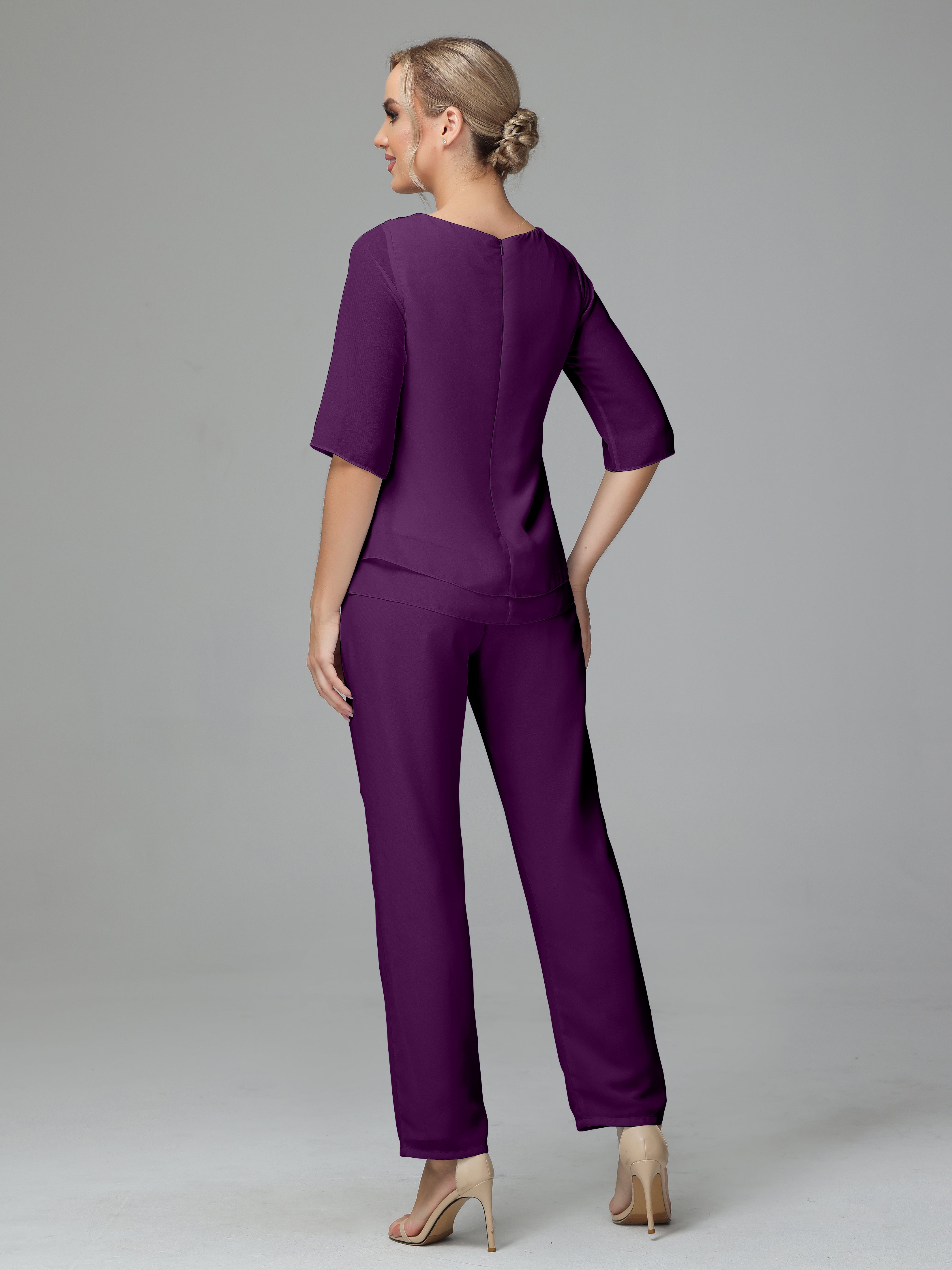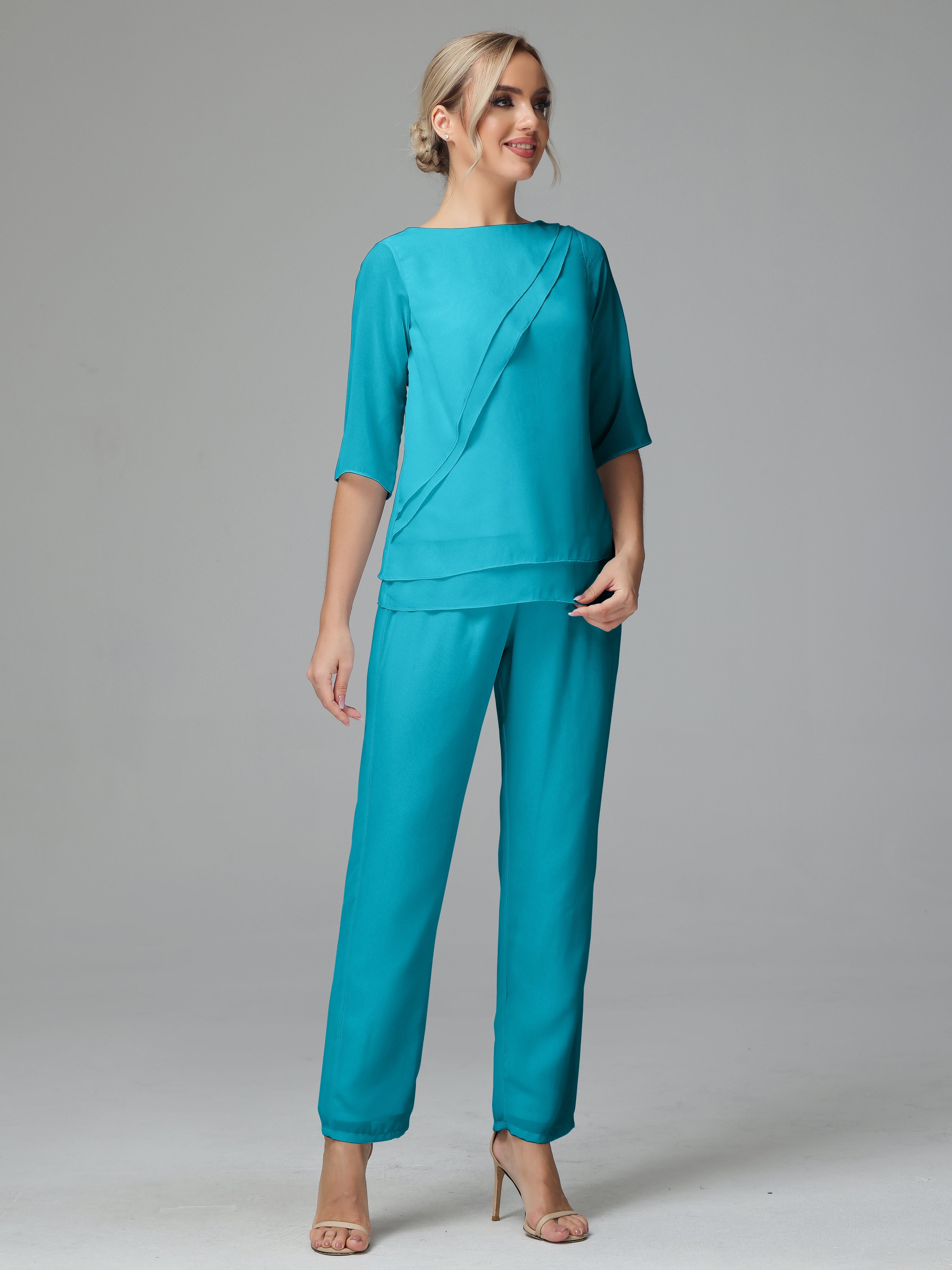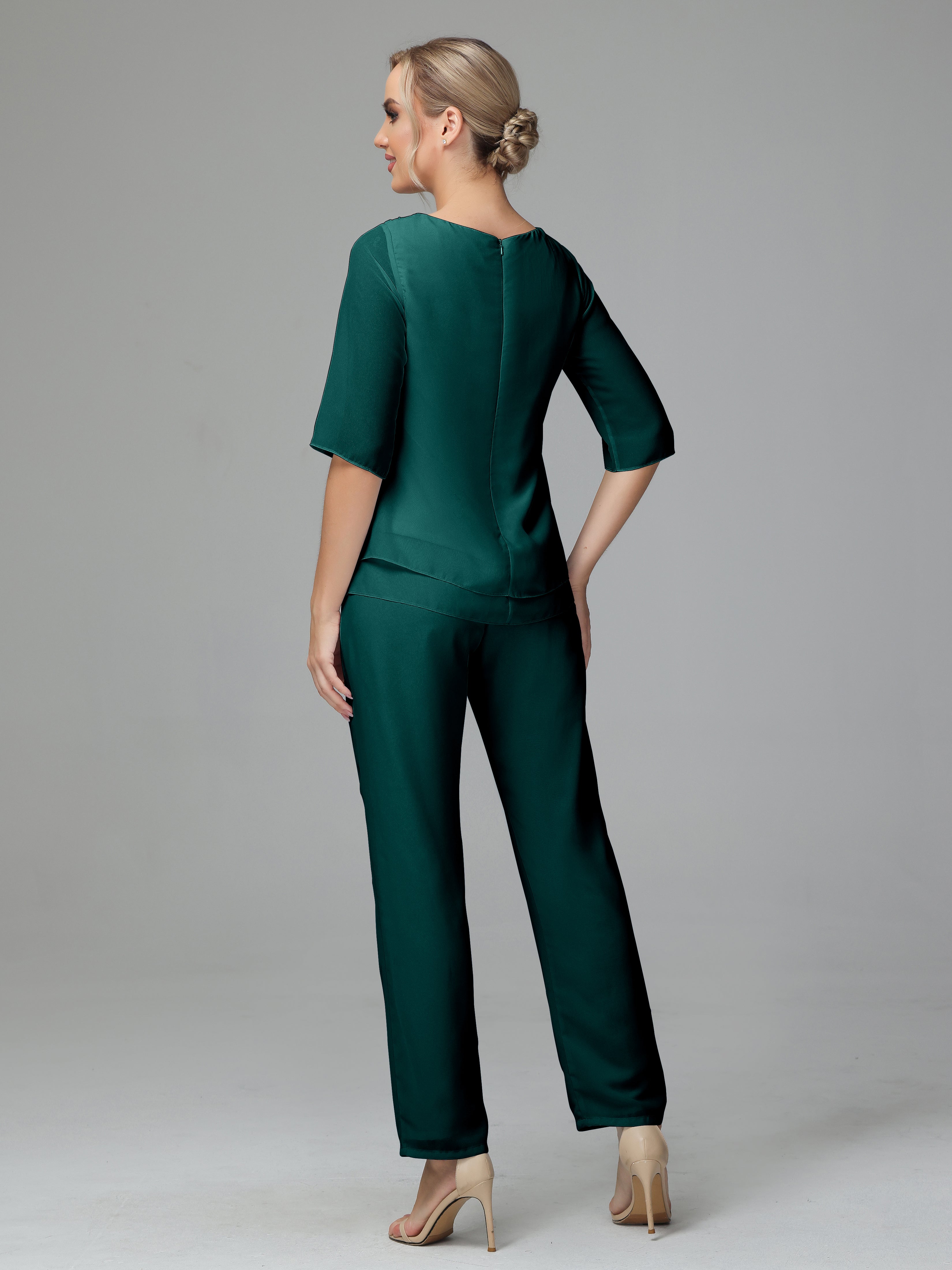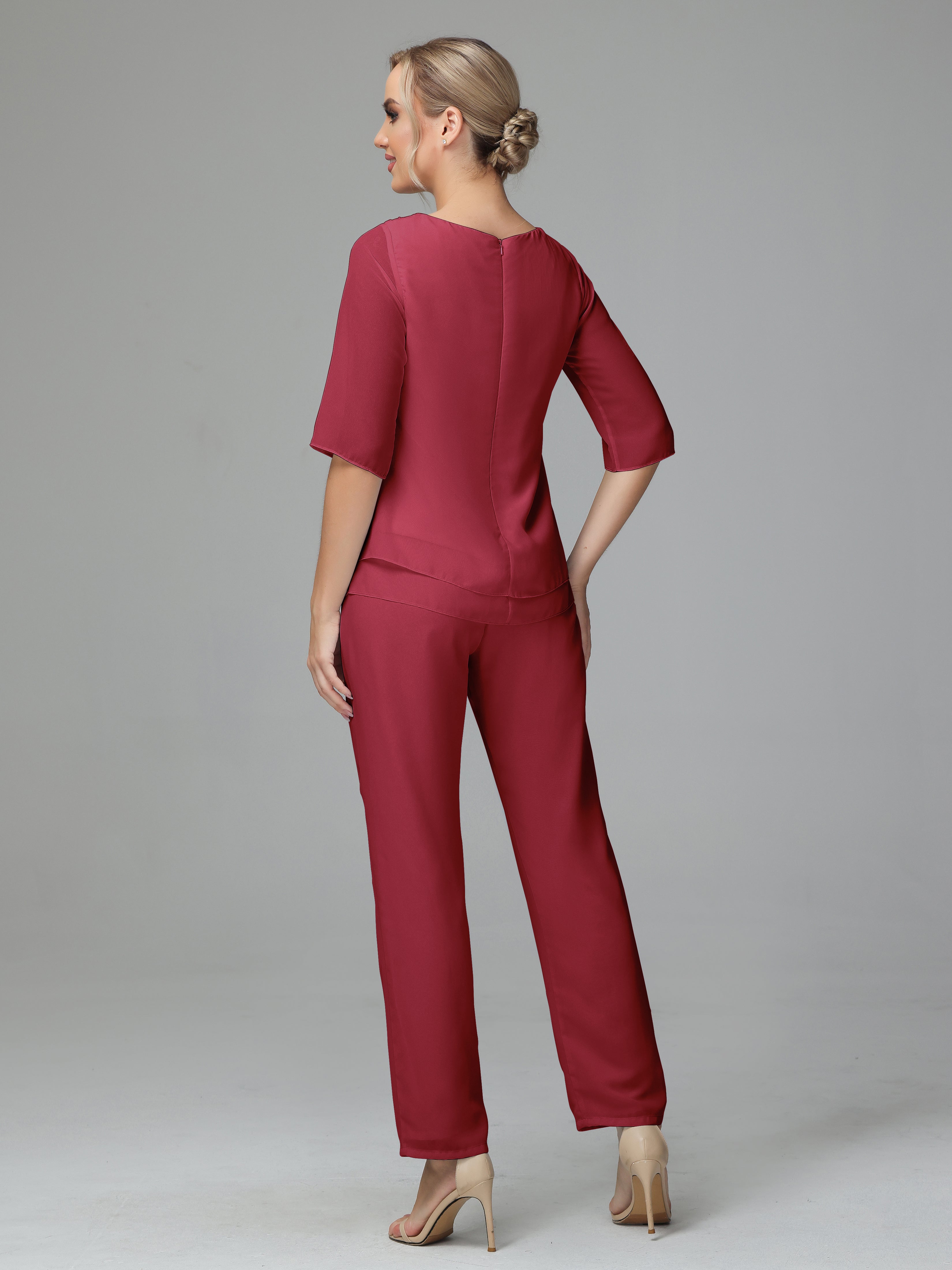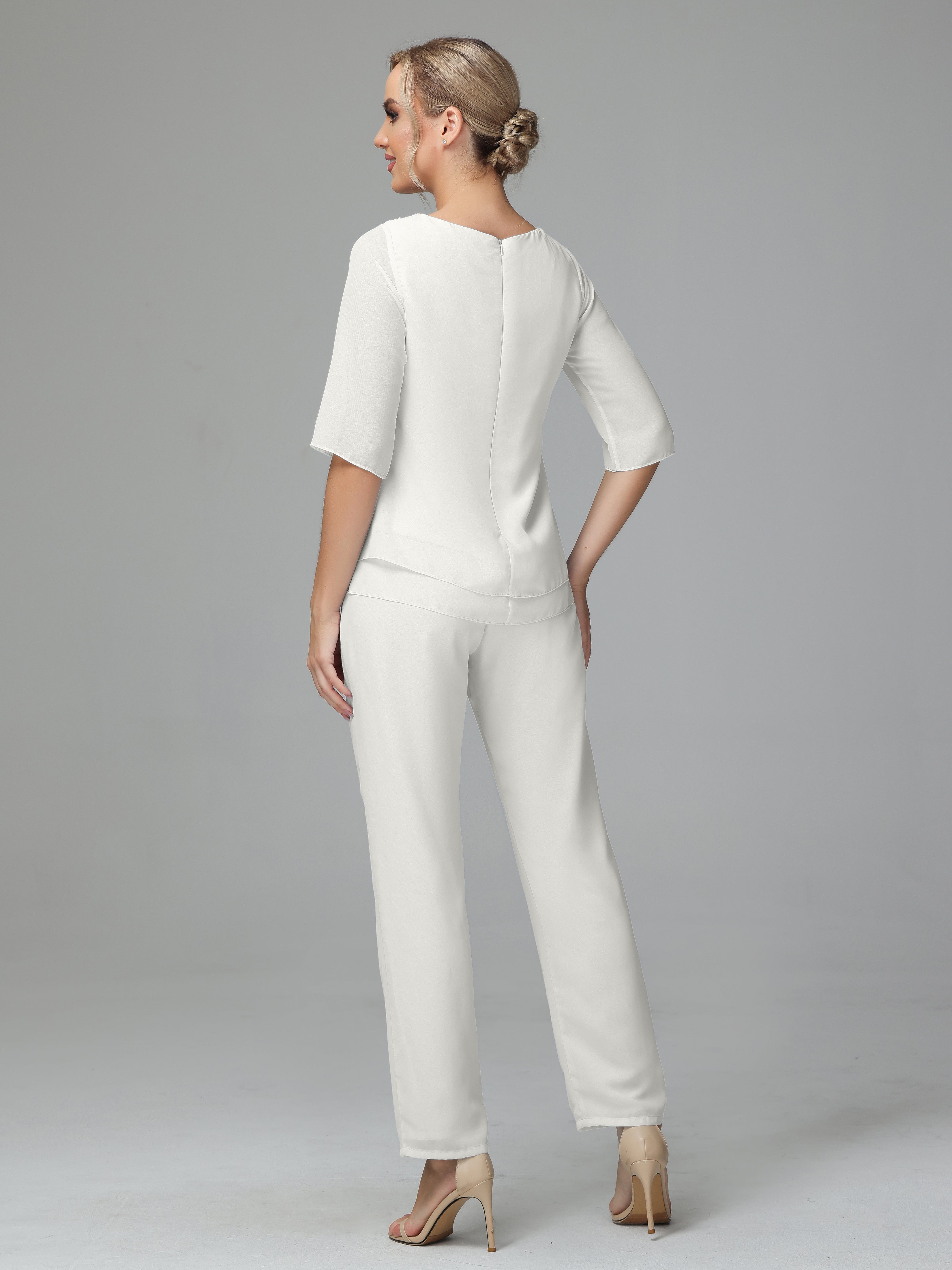 Half Sleeves 2 Pieces Mother Of The Bride Dress Pants Suits