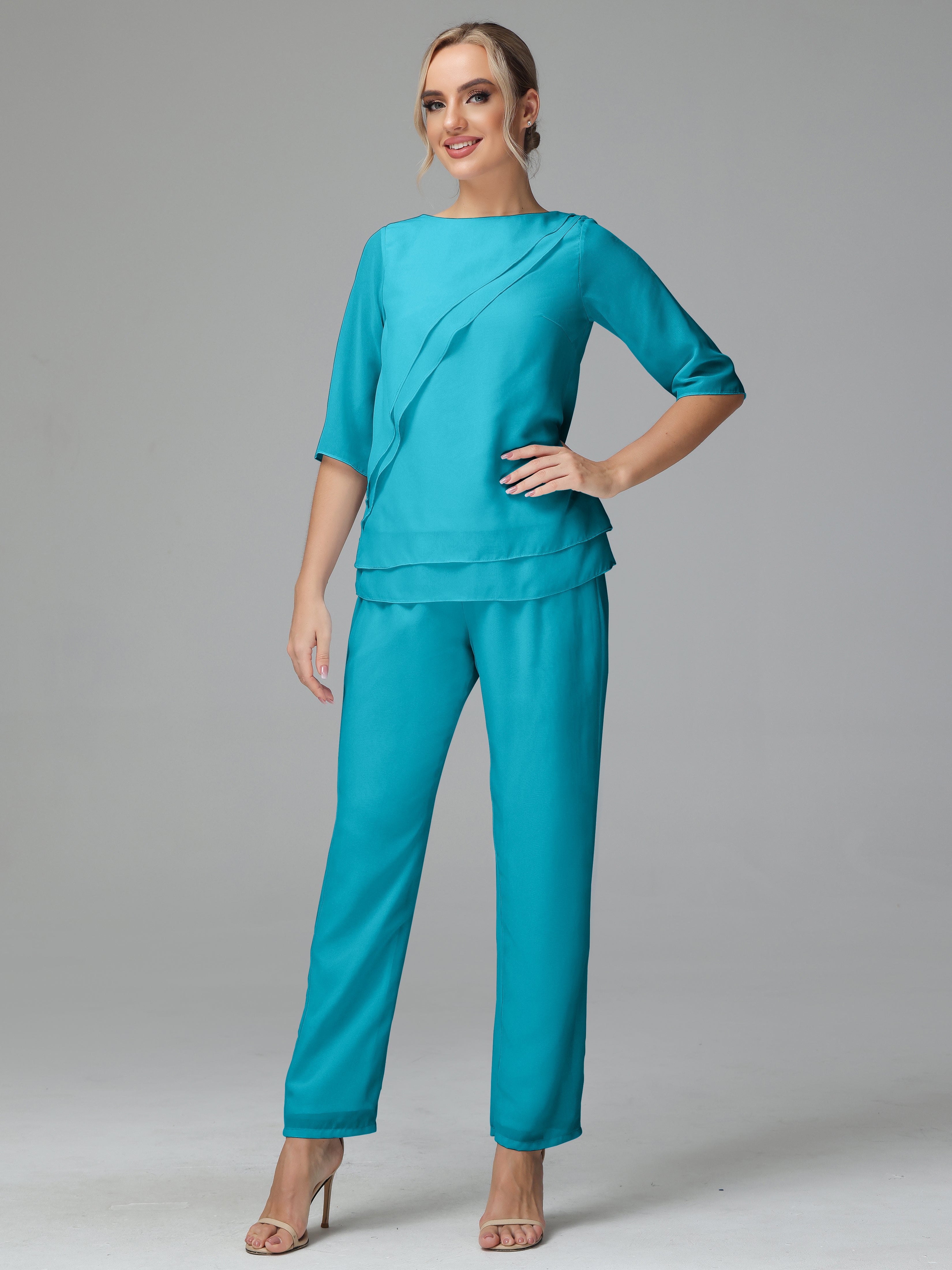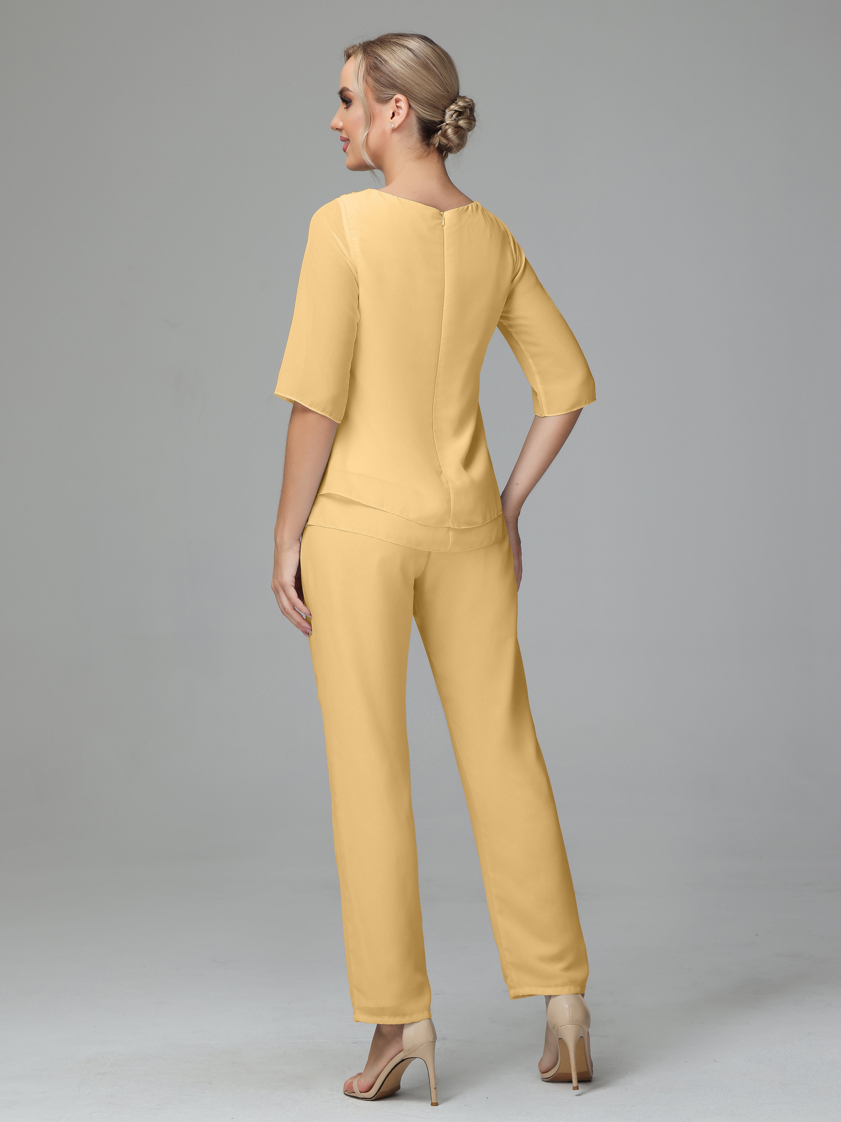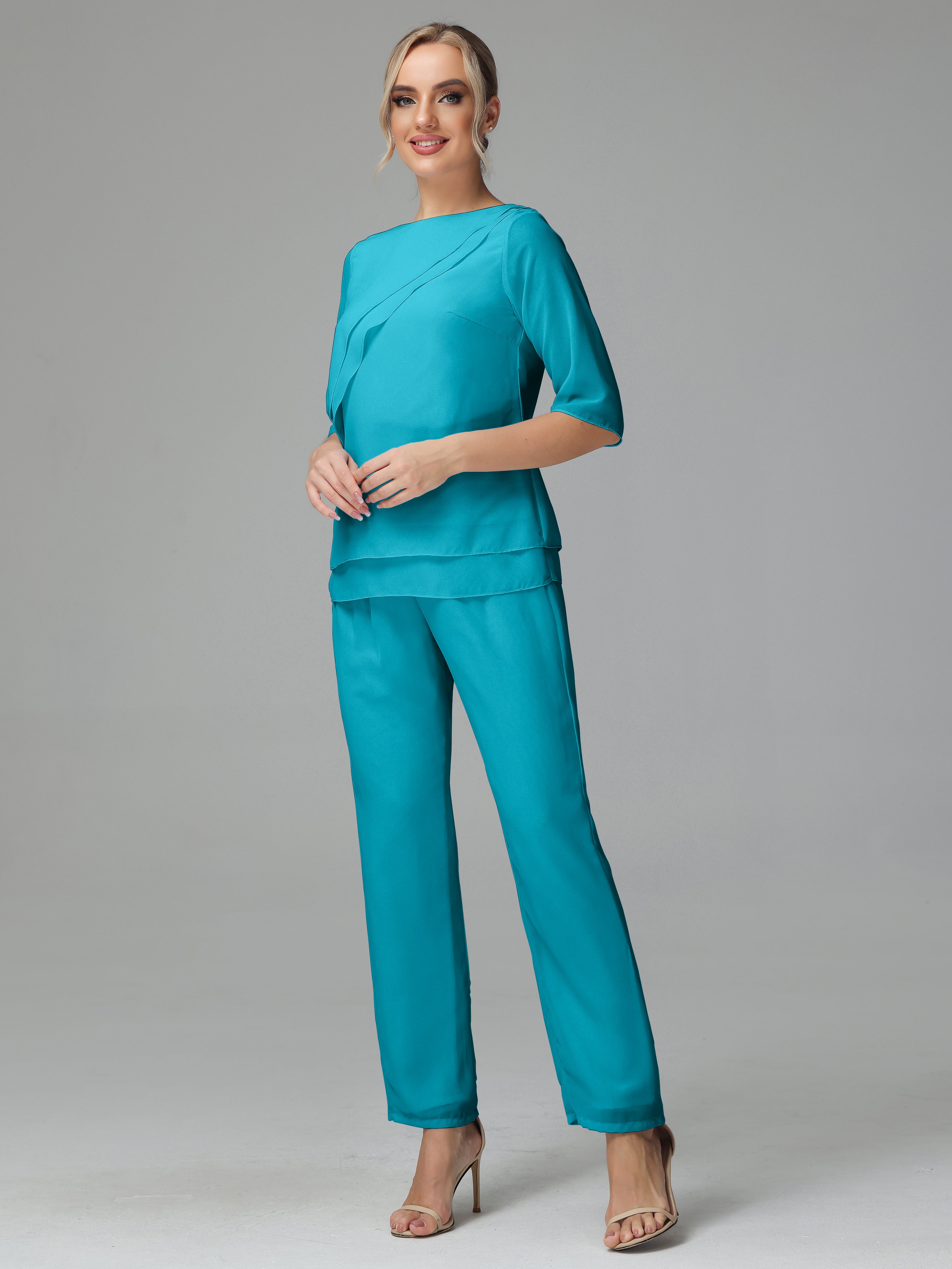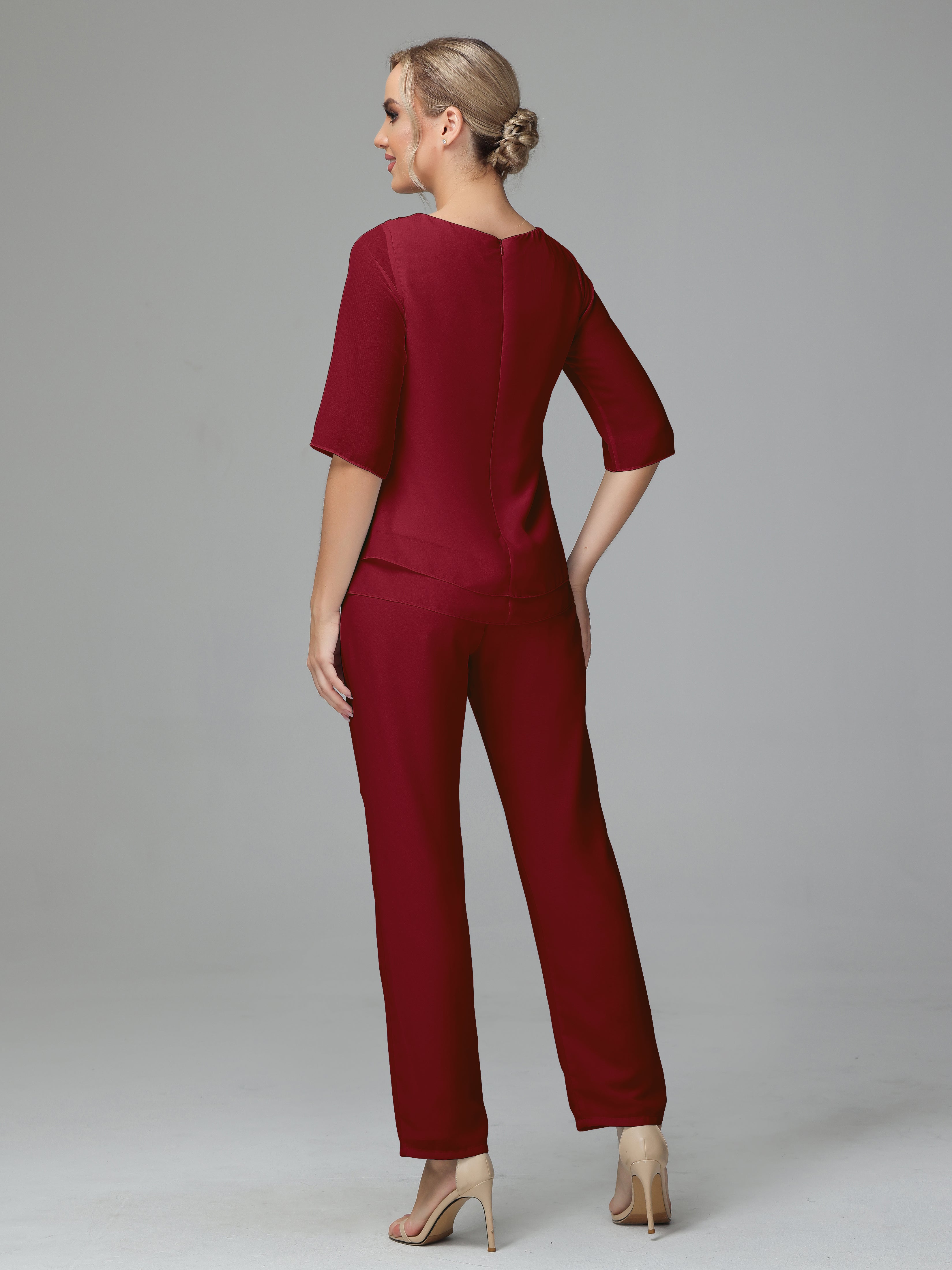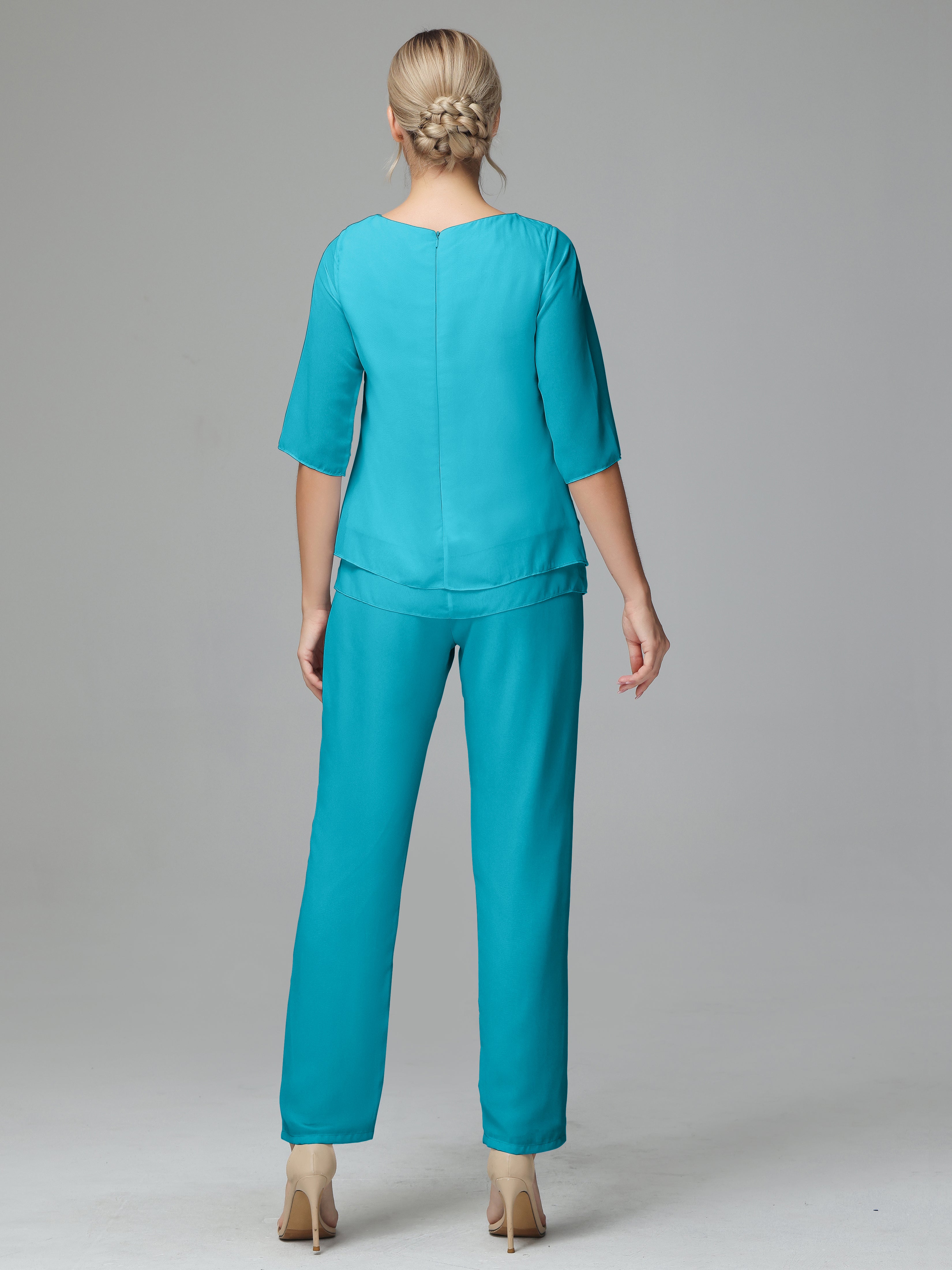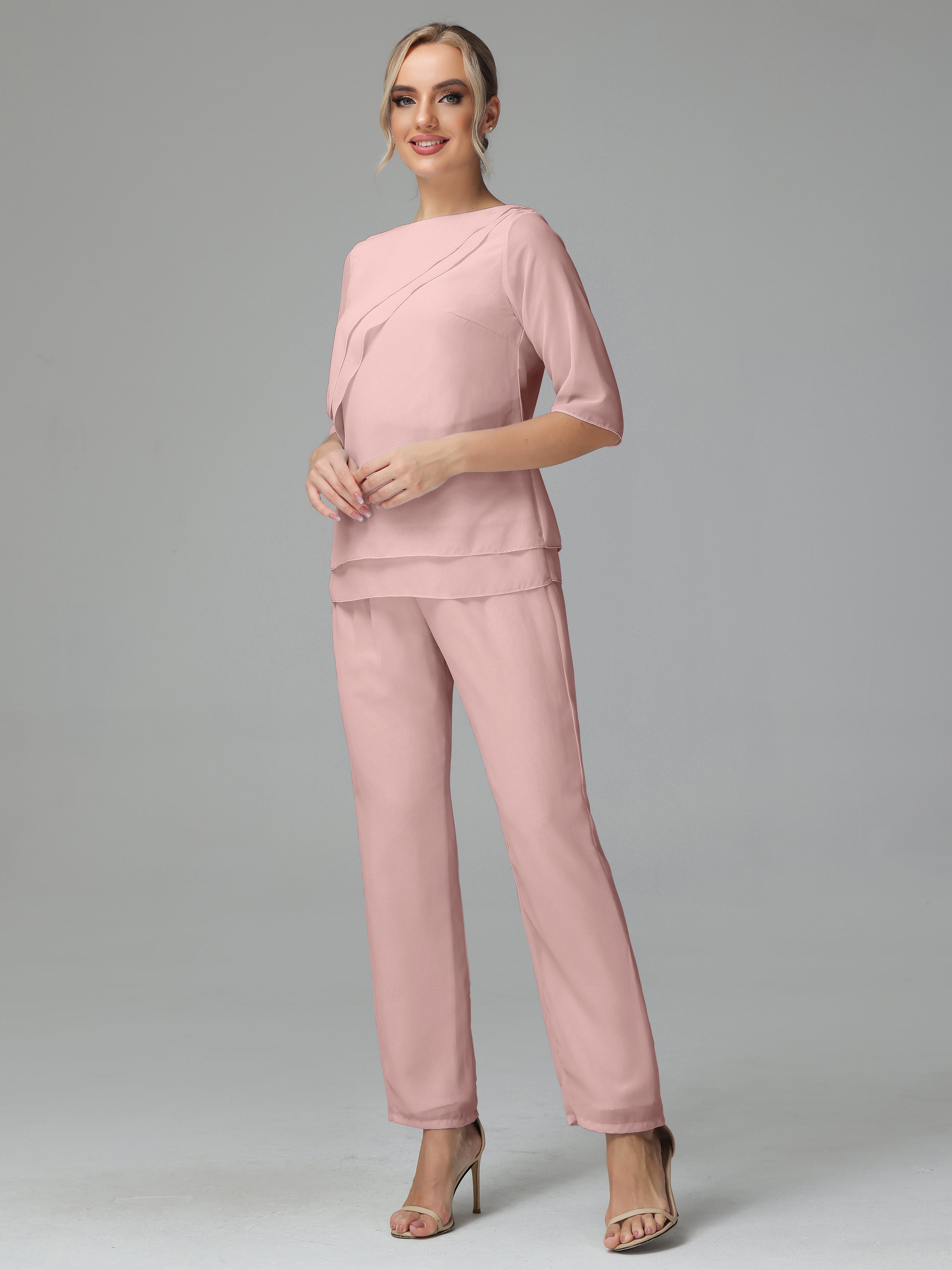 Half Sleeves 2 Pieces Mother Of The Bride Dress Pants Suits