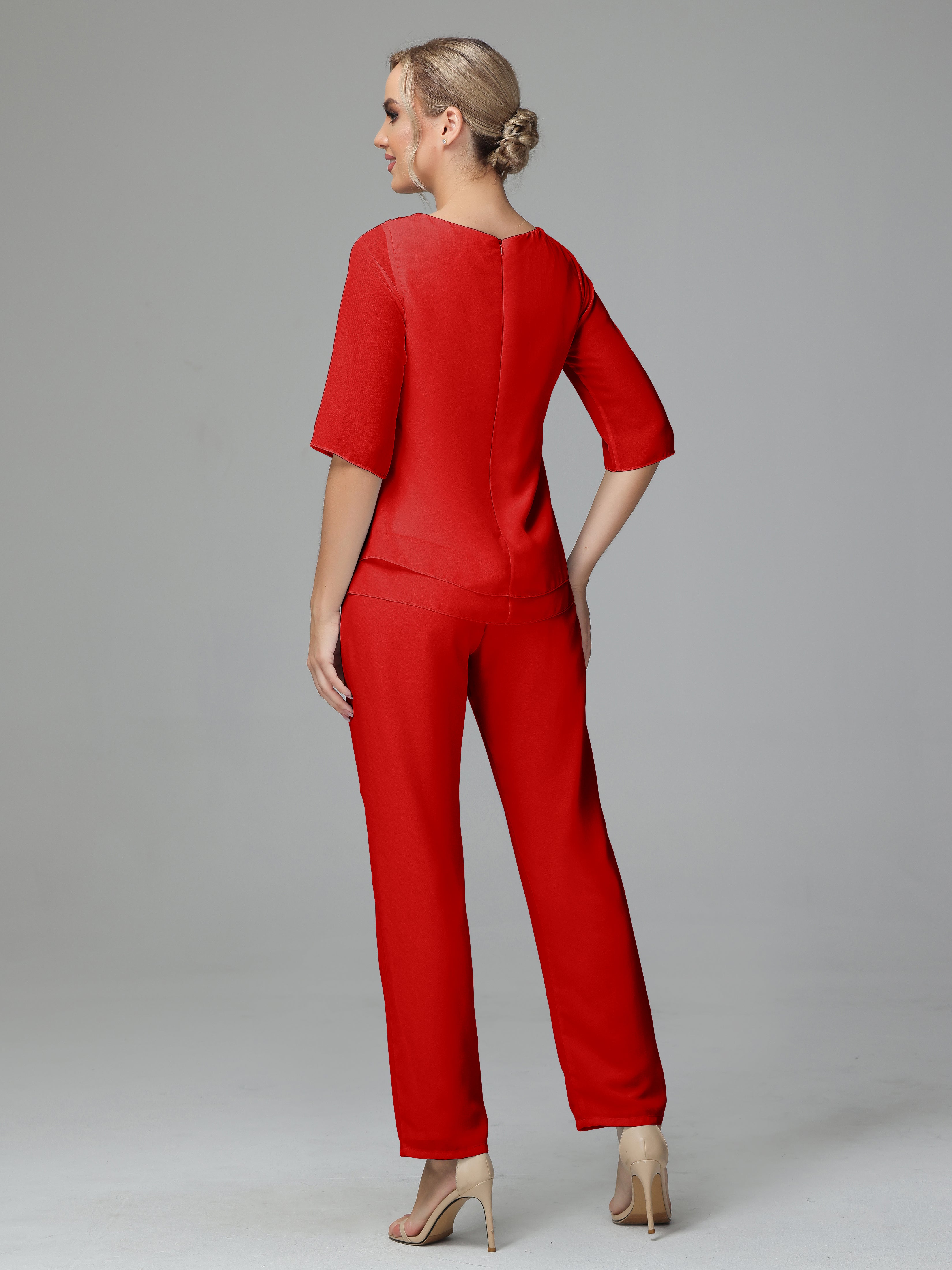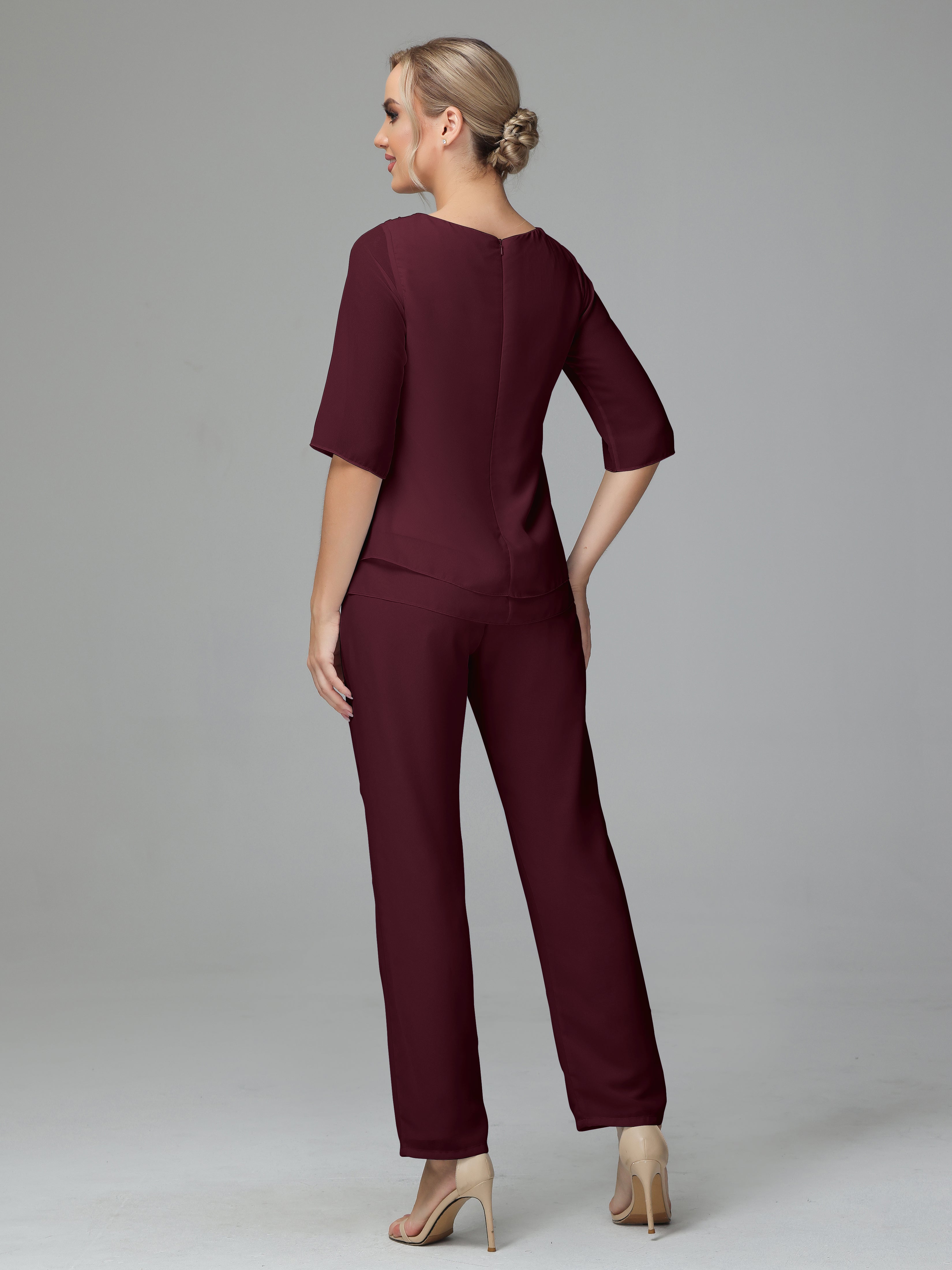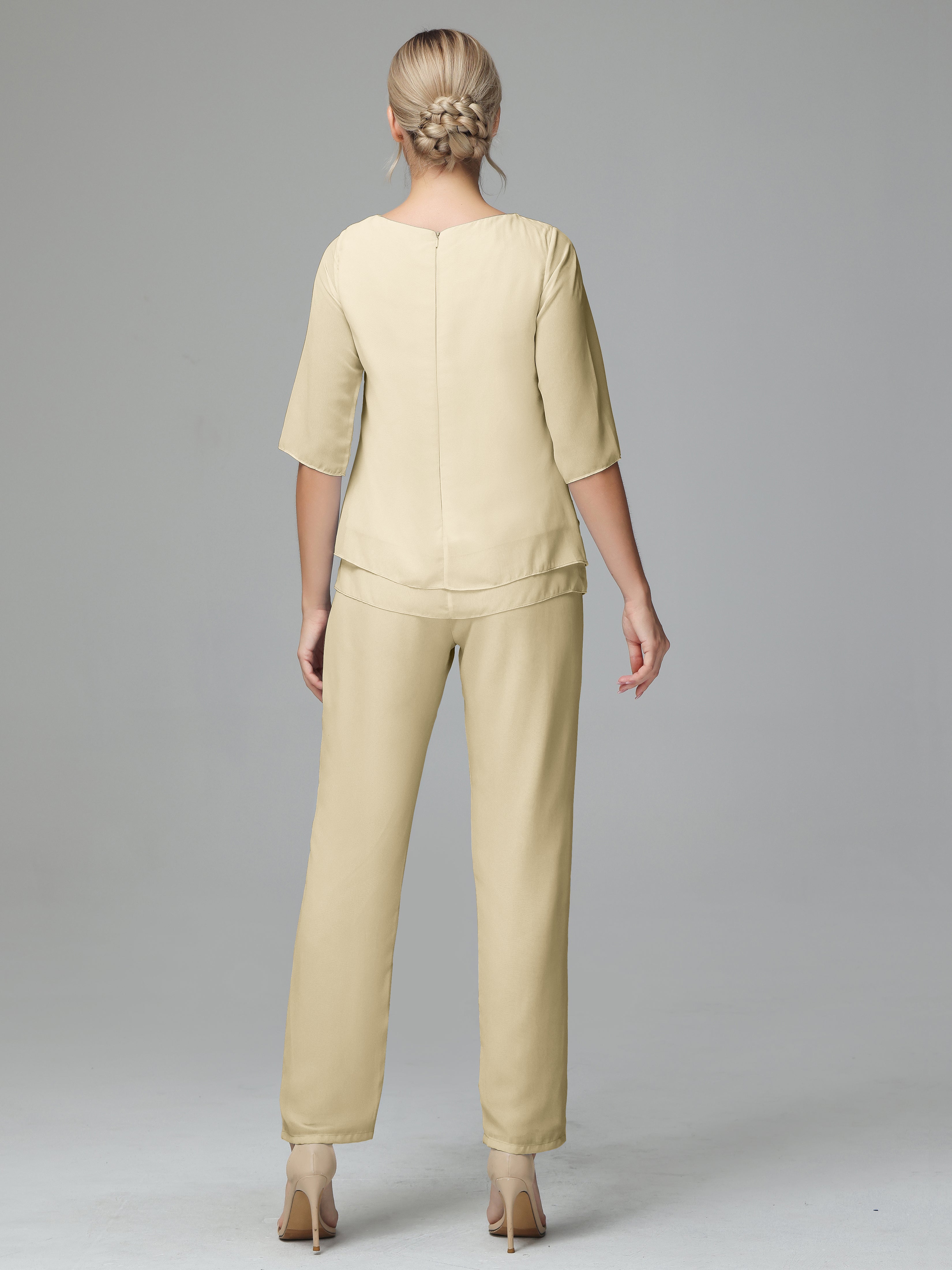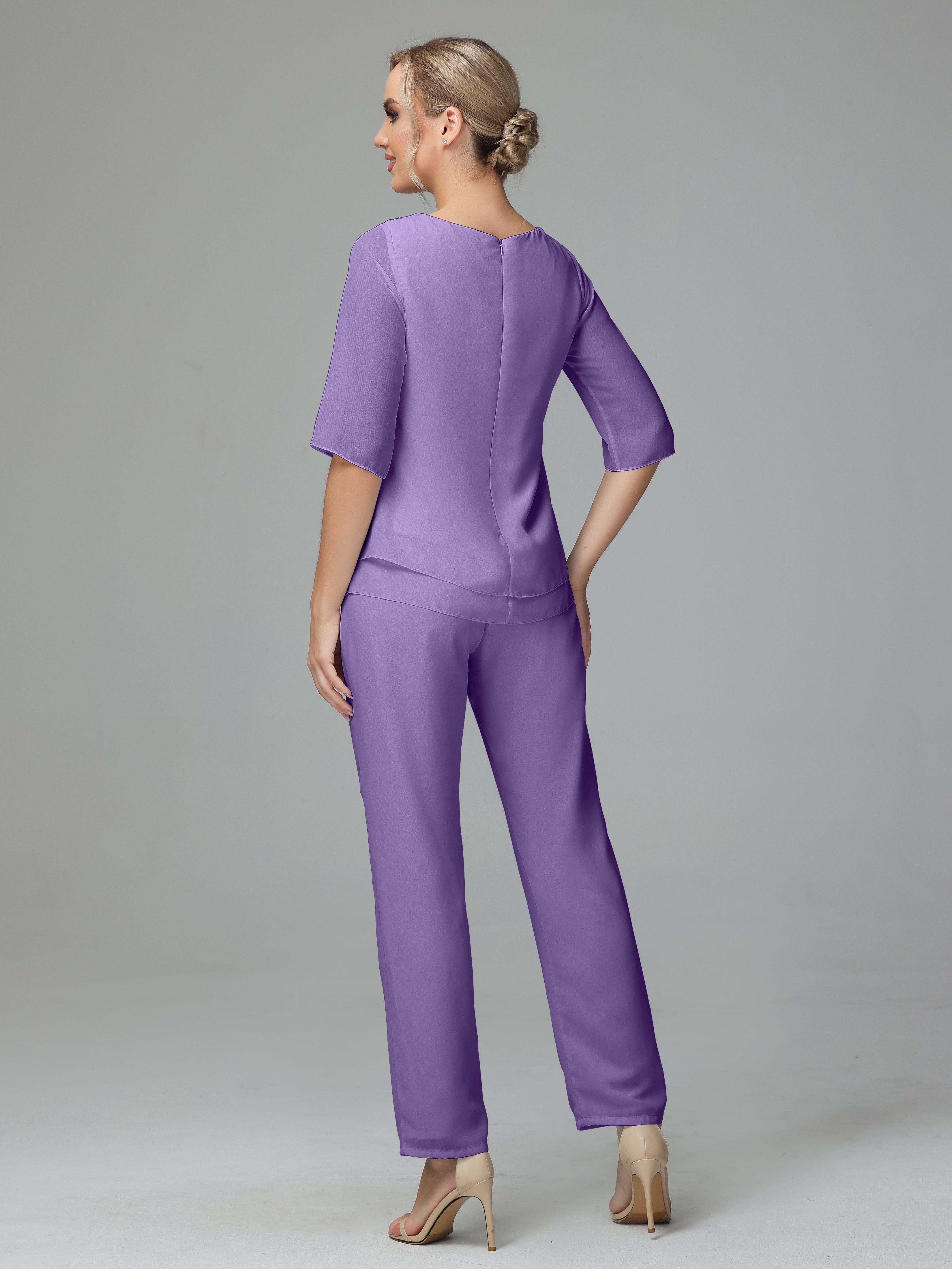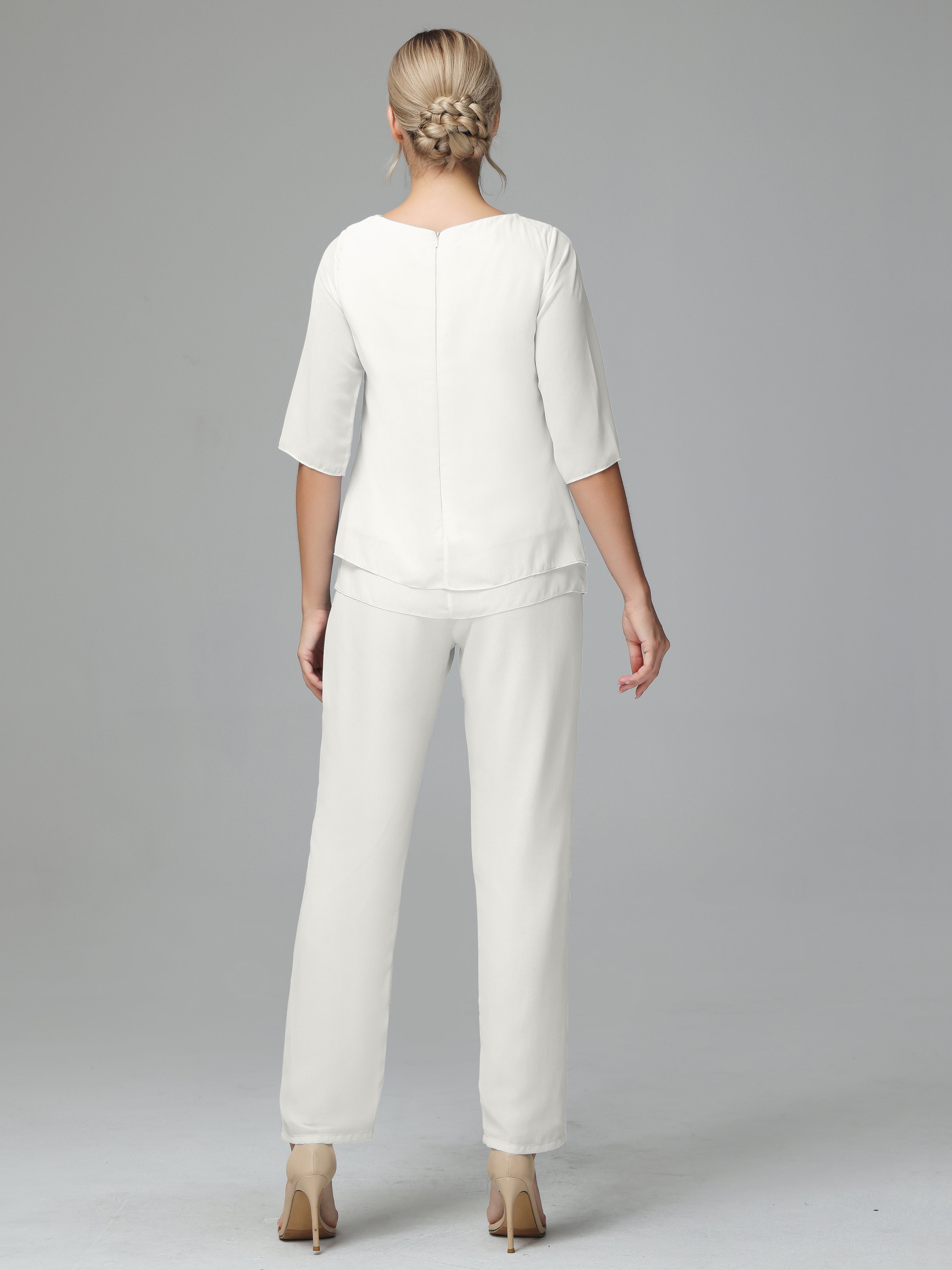 Half Sleeves 2 Pieces Mother Of The Bride Dress Pants Suits