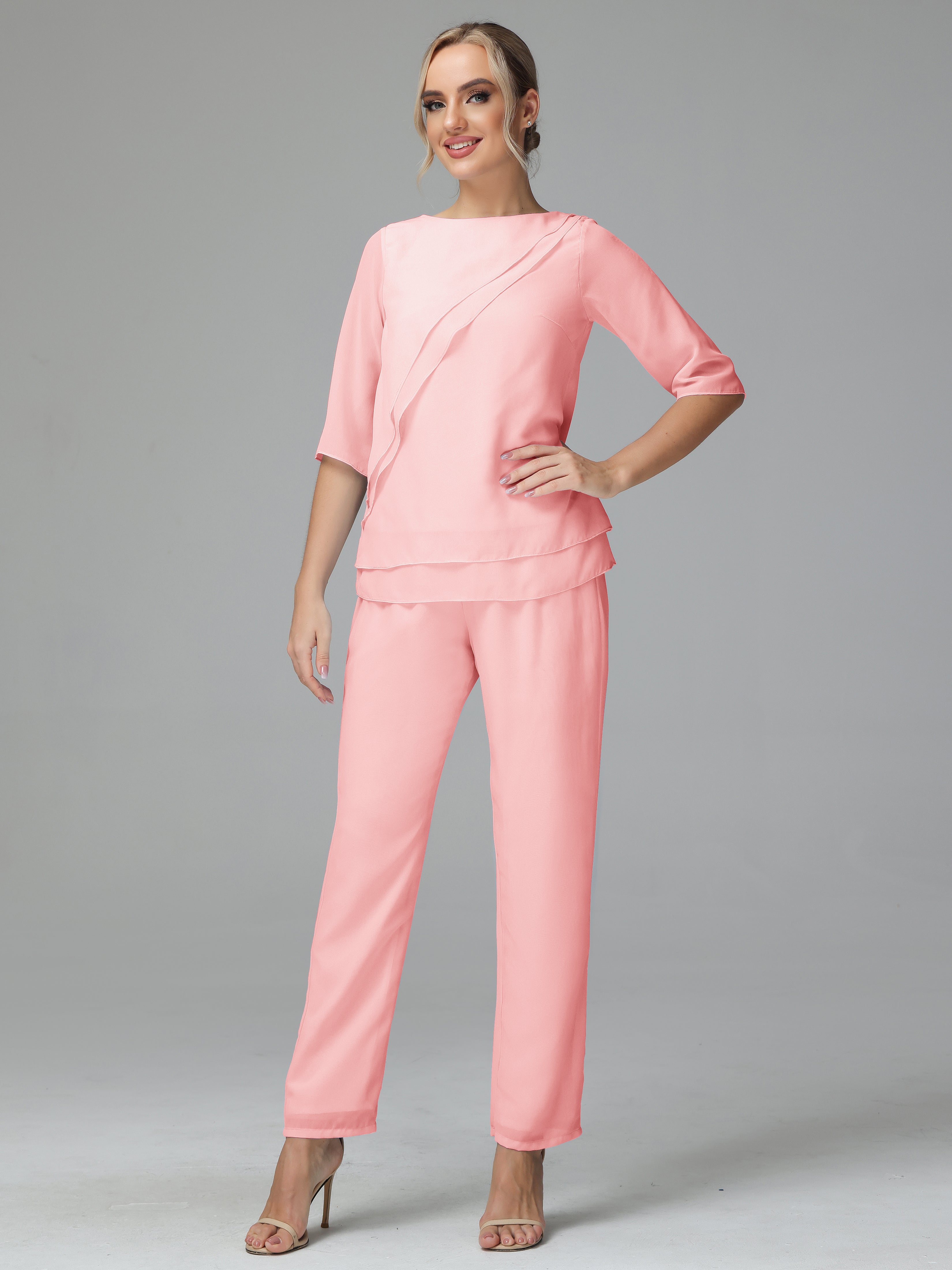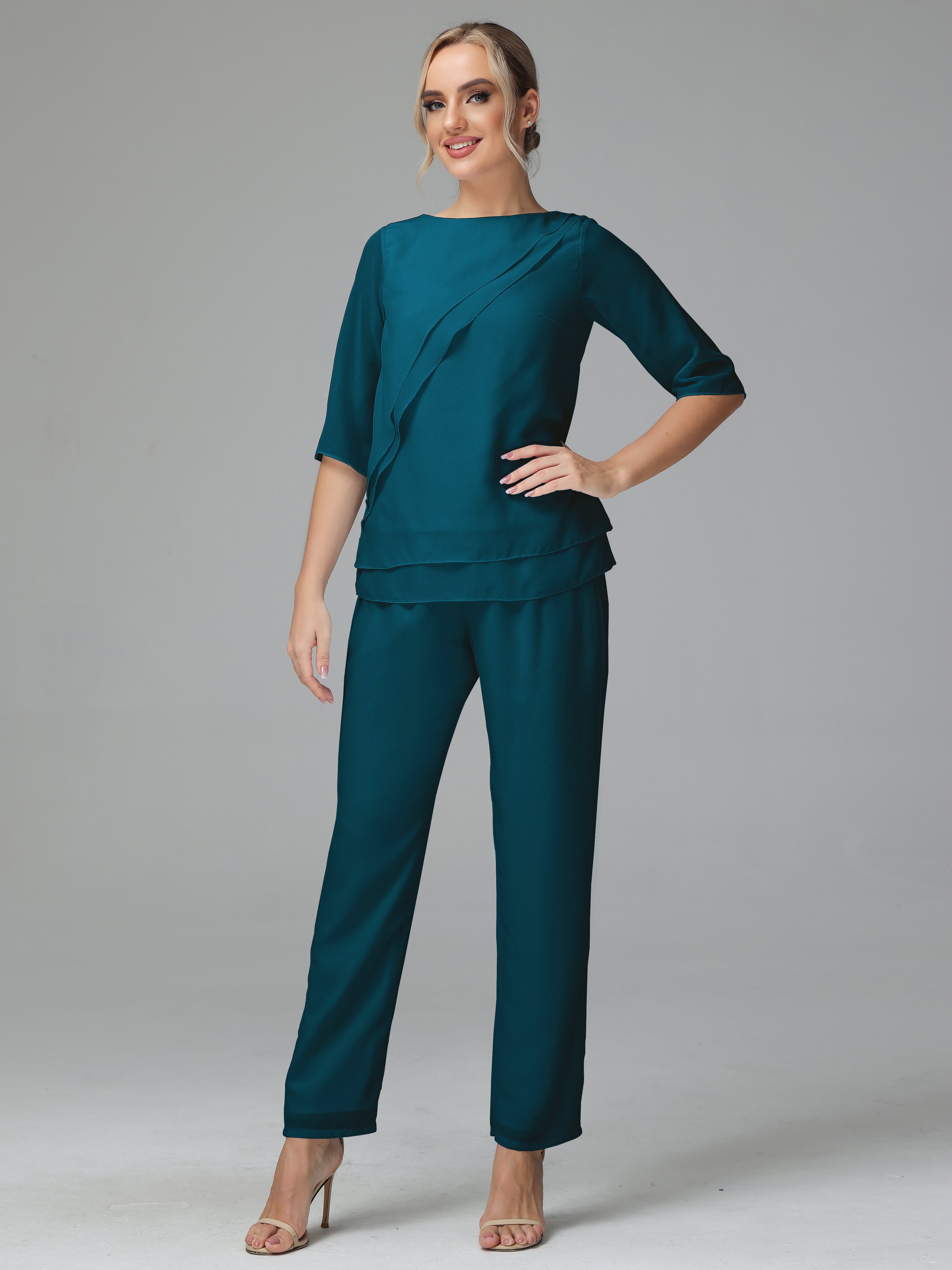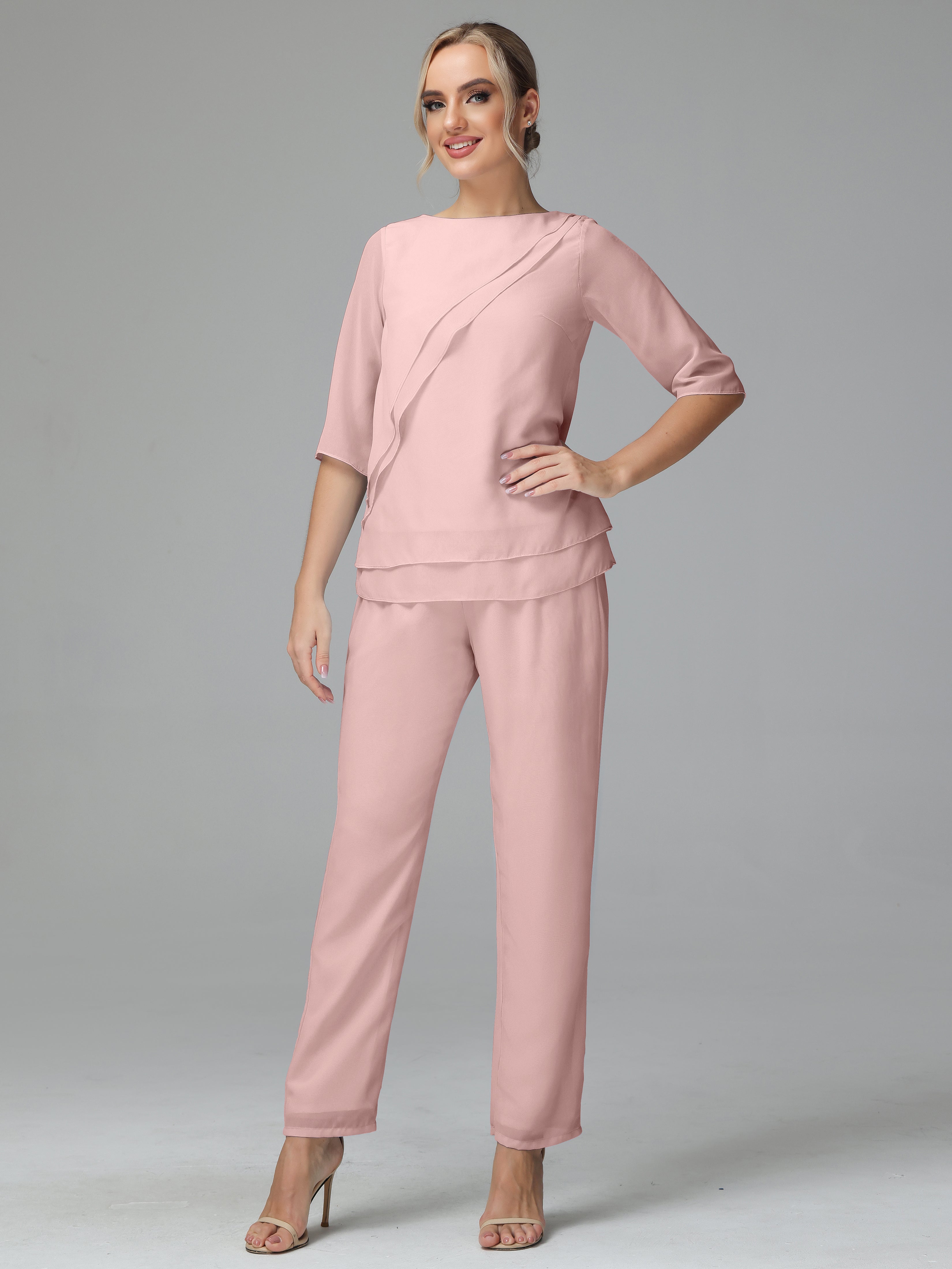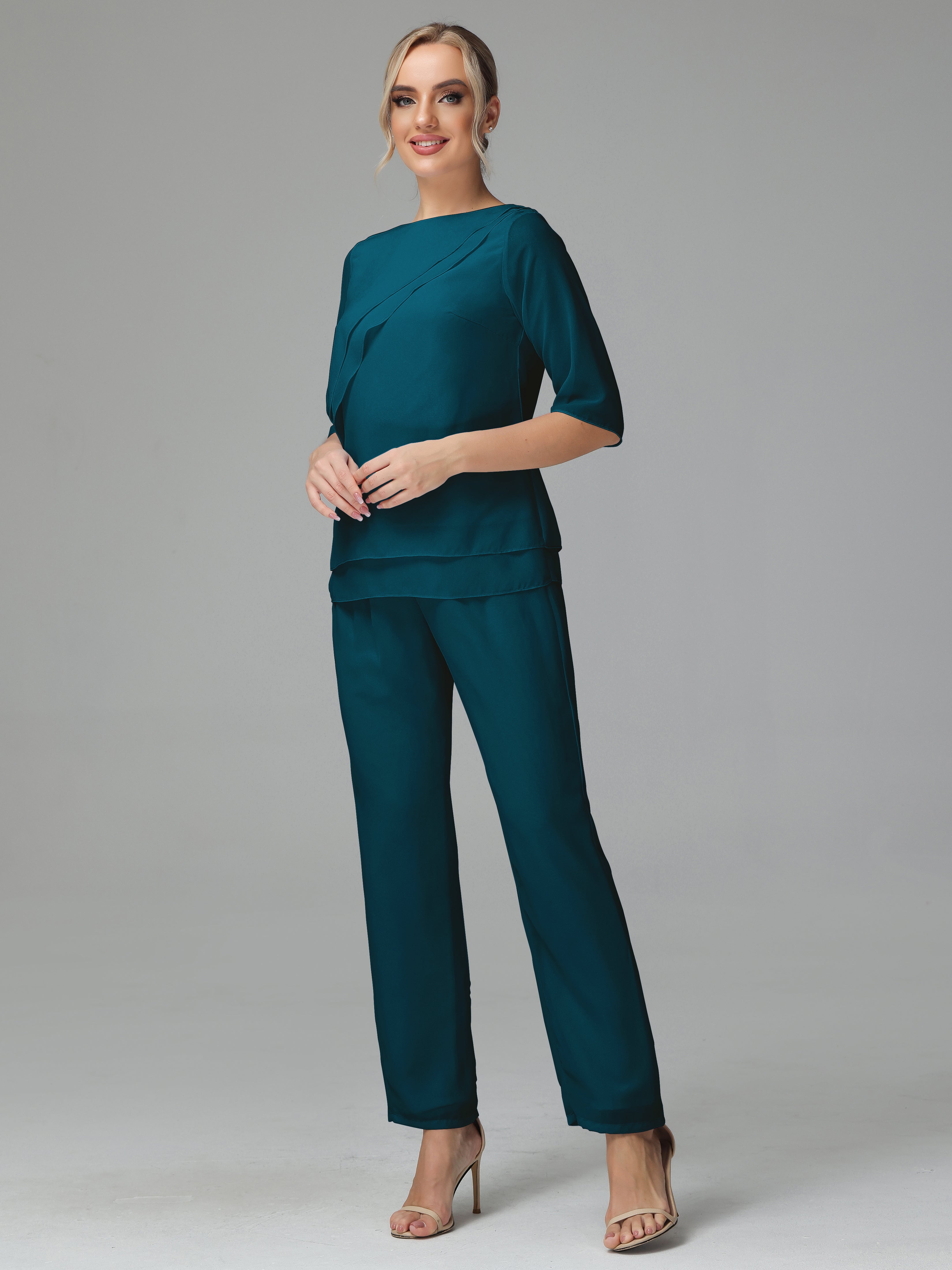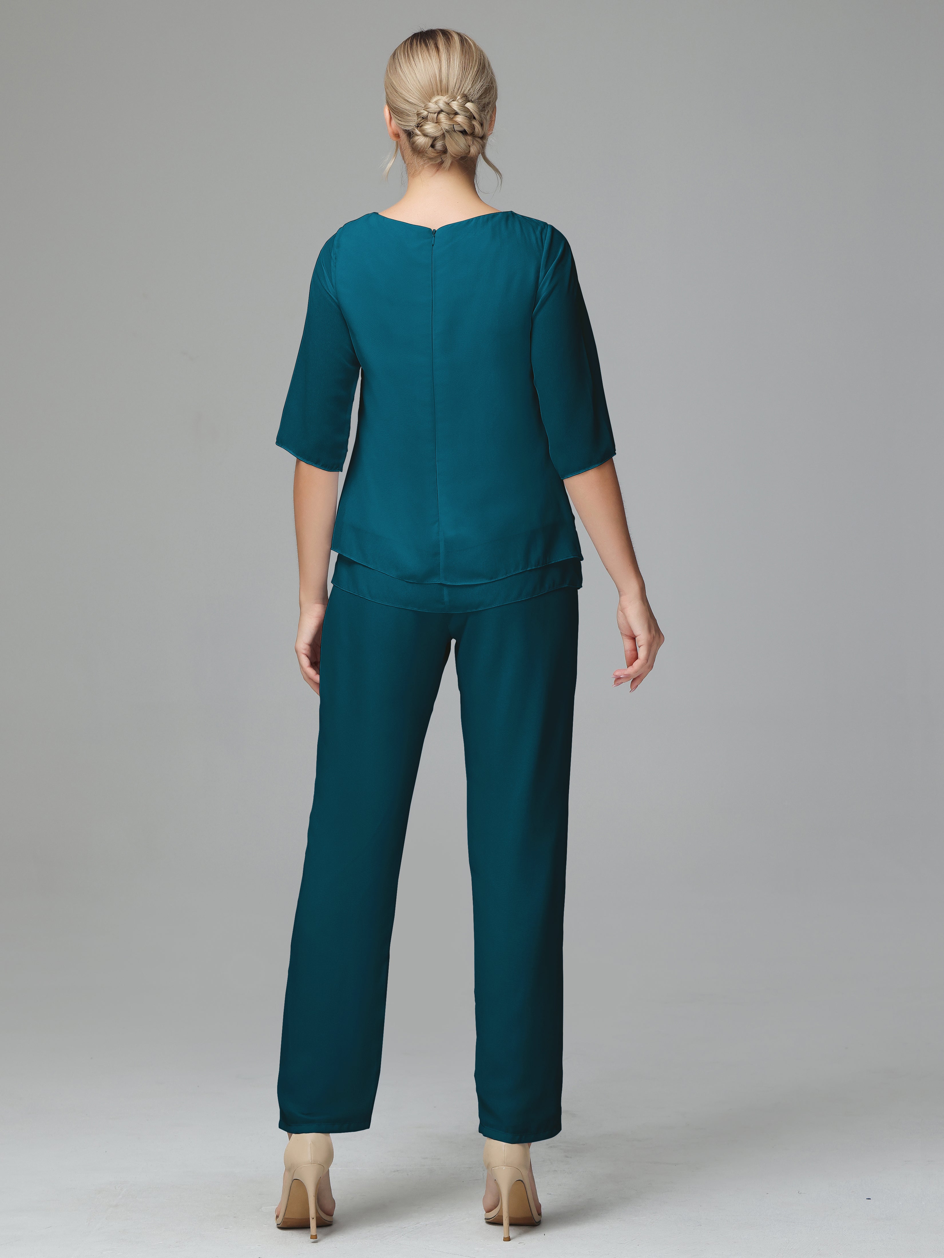 Half Sleeves 2 Pieces Mother Of The Bride Dress Pants Suits