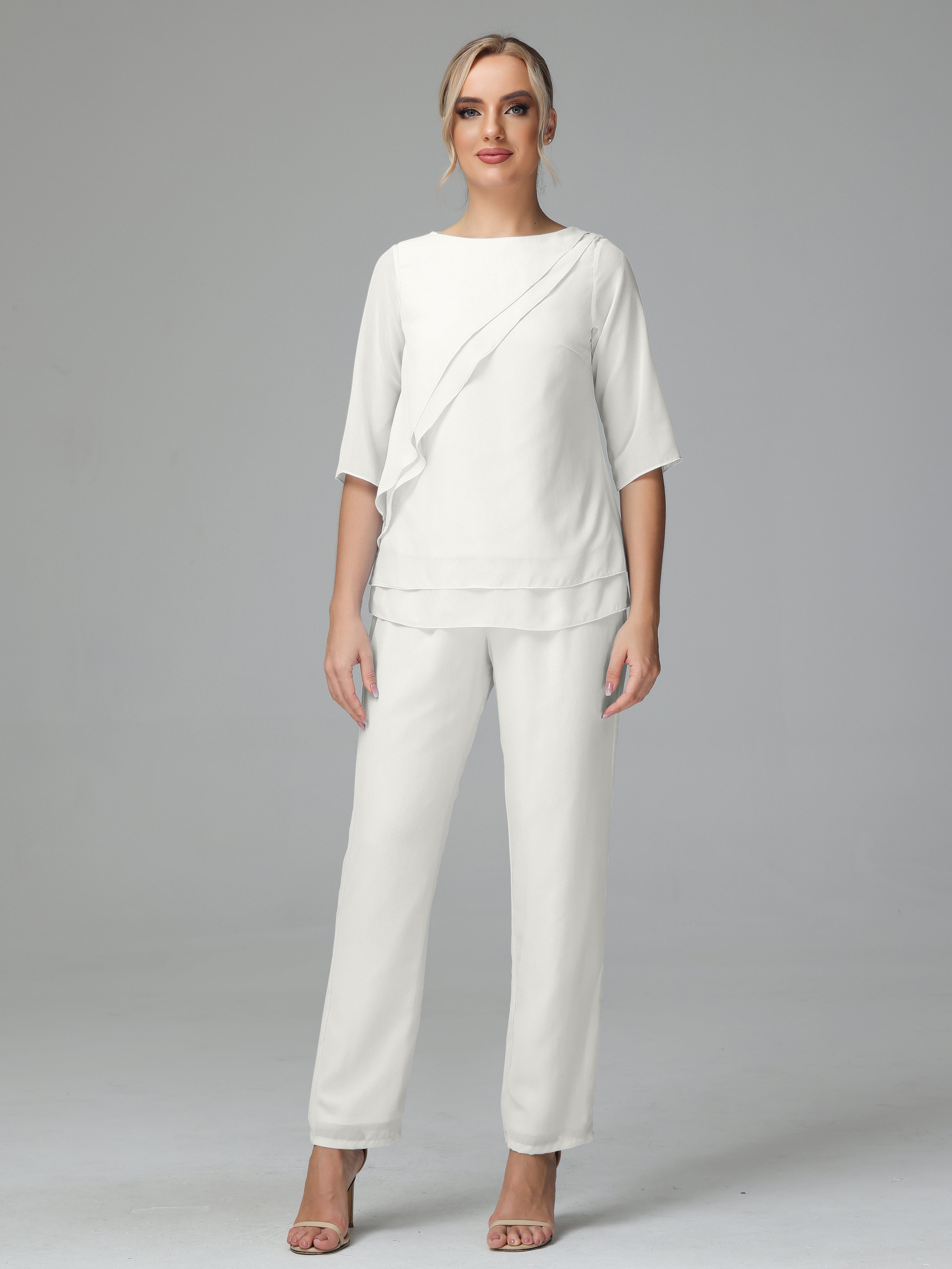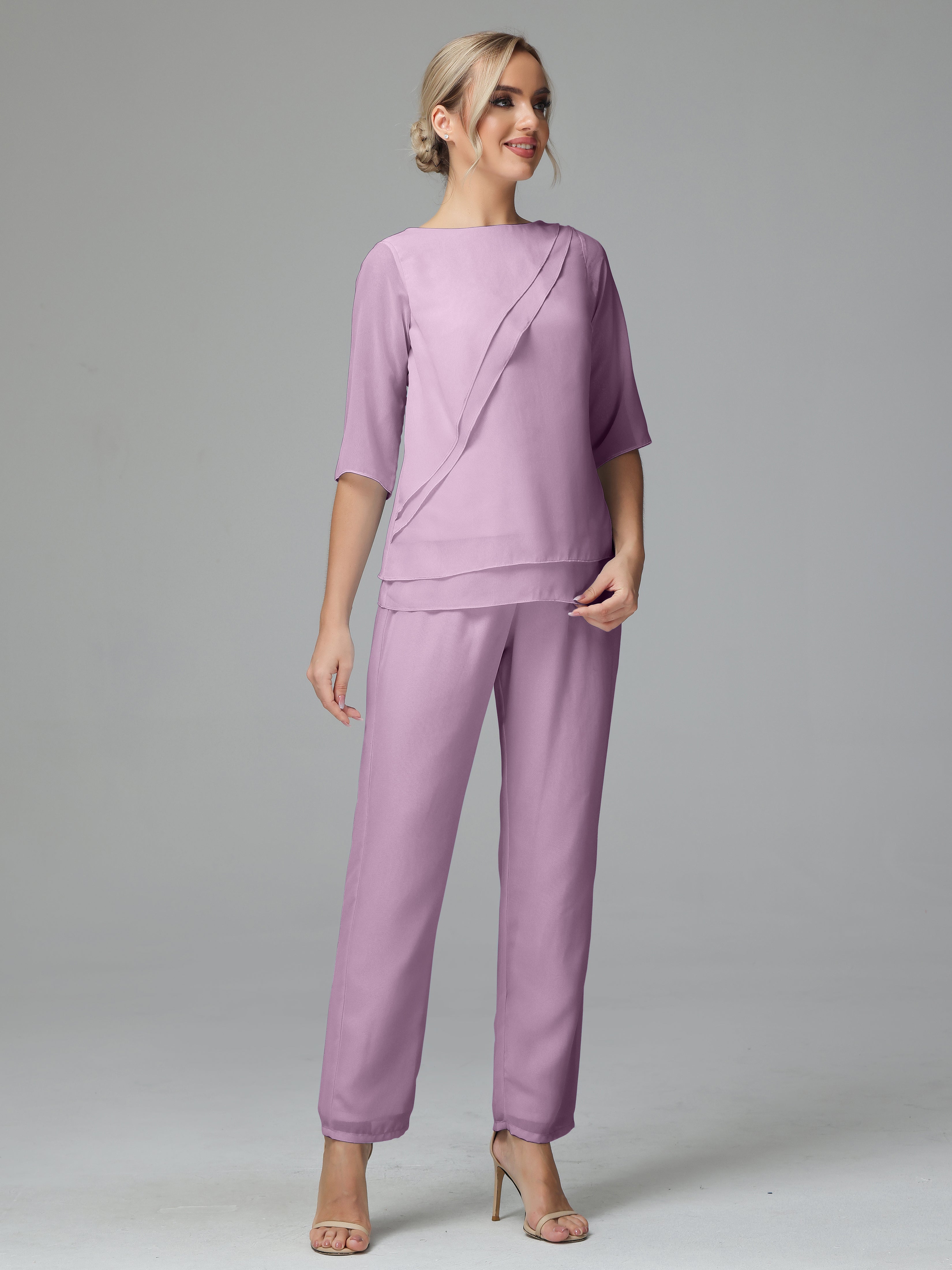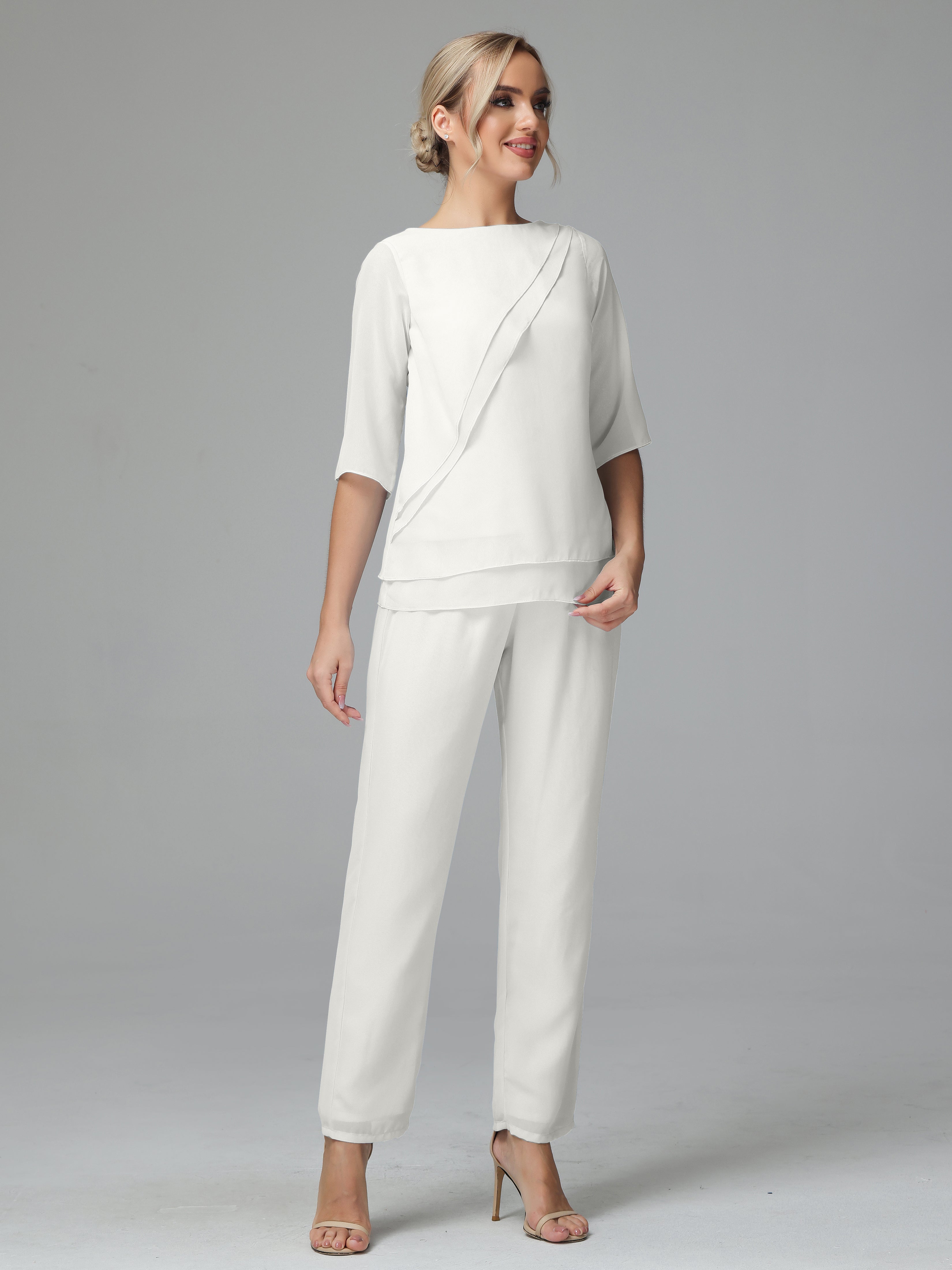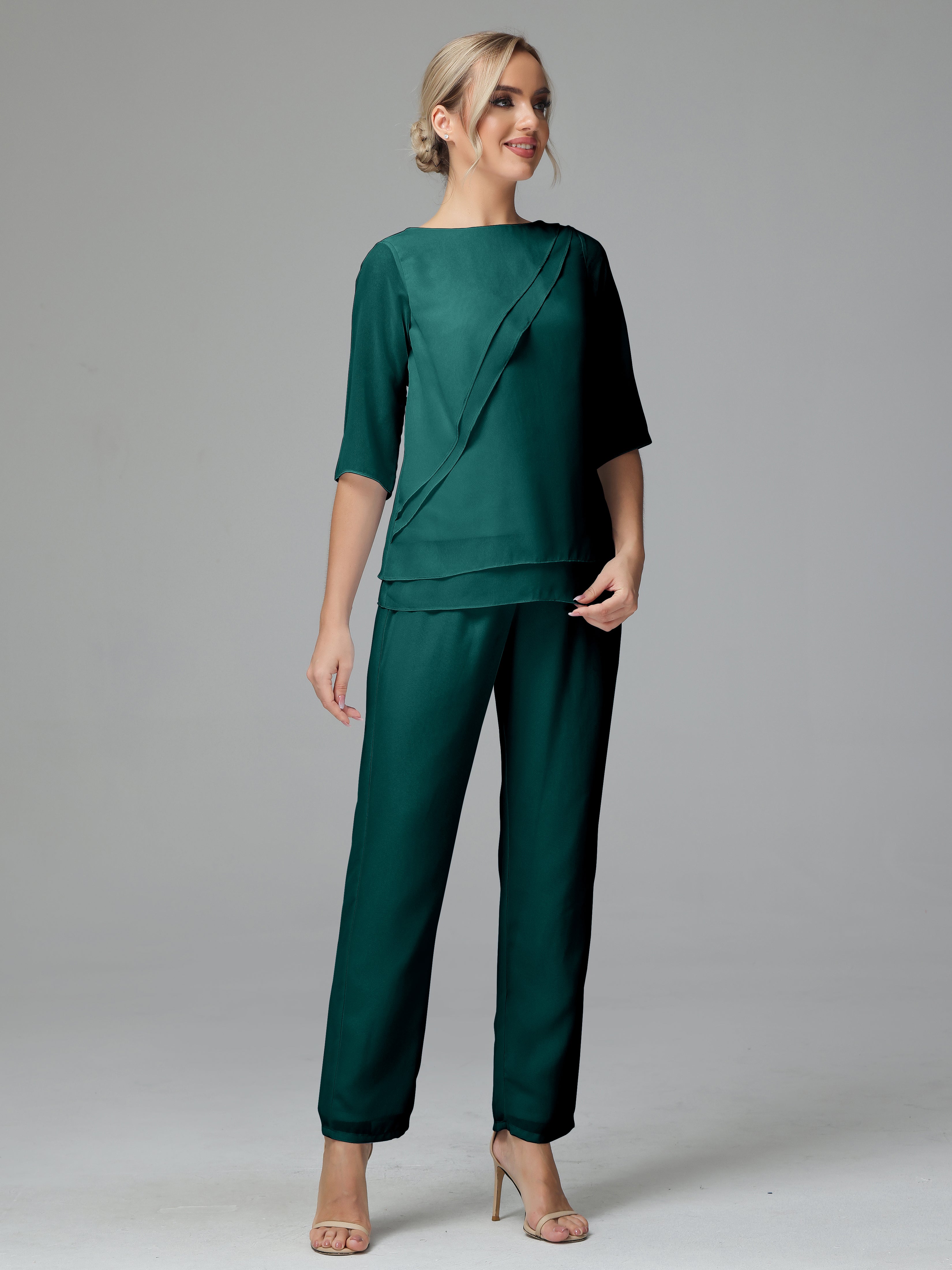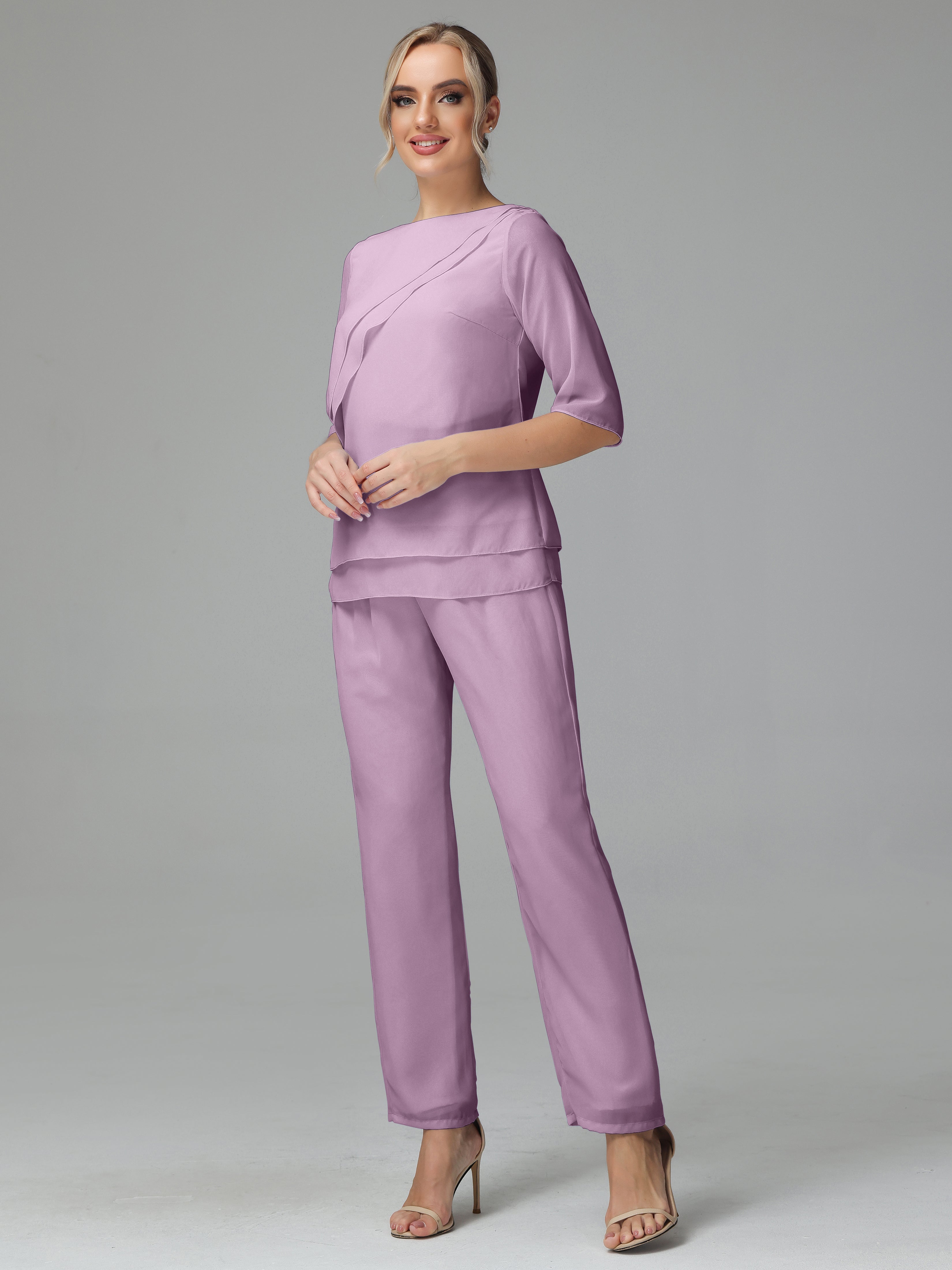 Half Sleeves 2 Pieces Mother Of The Bride Dress Pants Suits