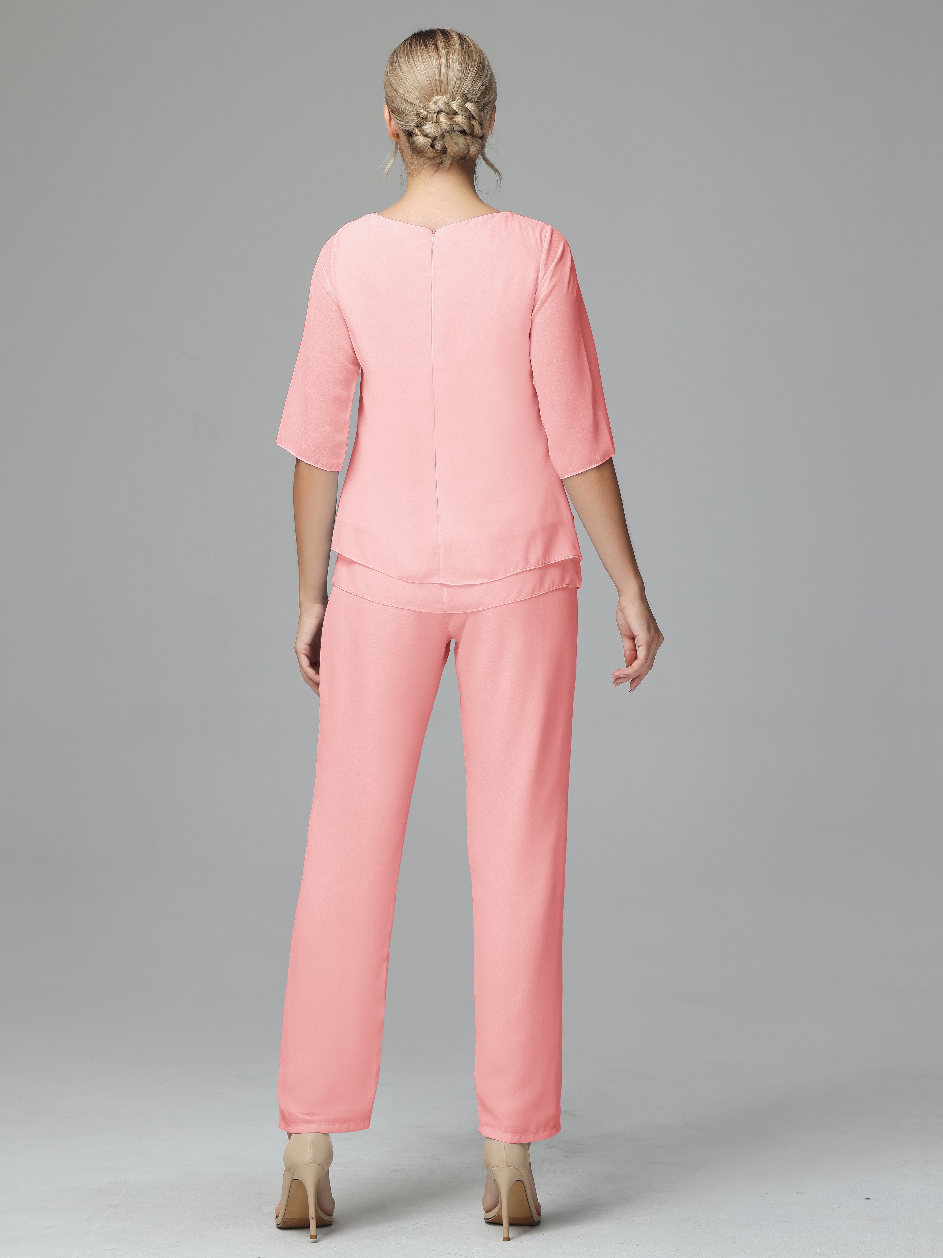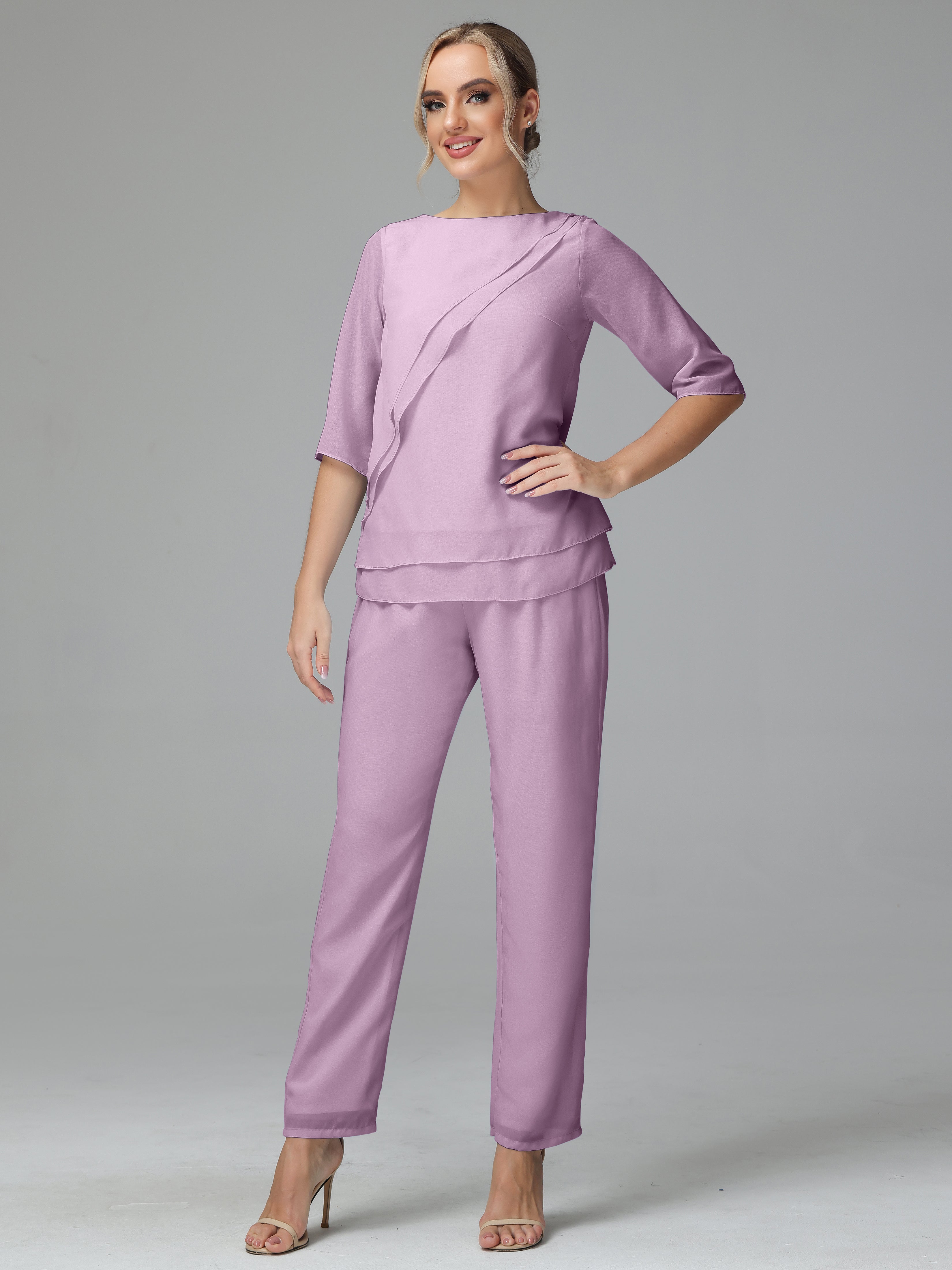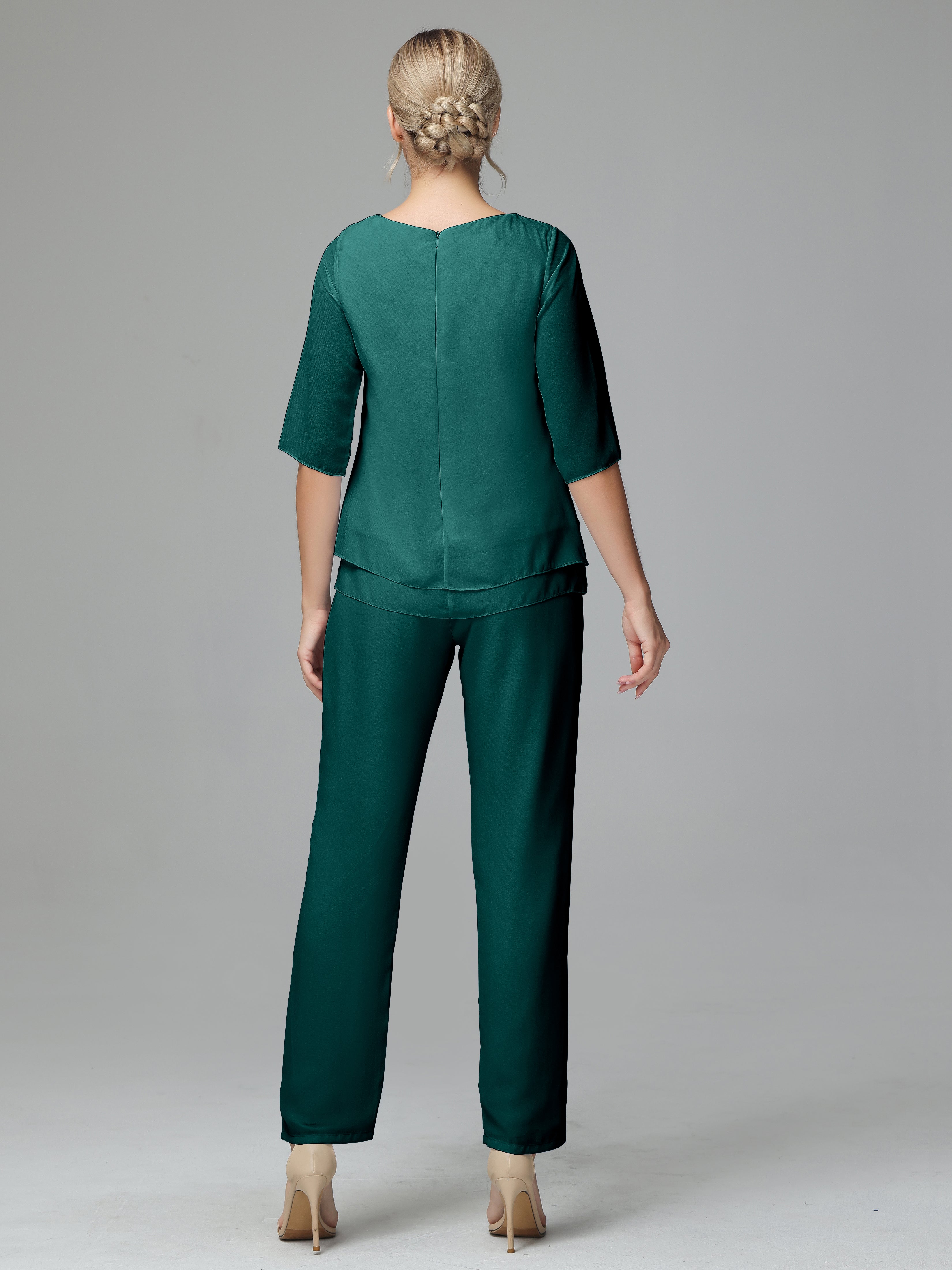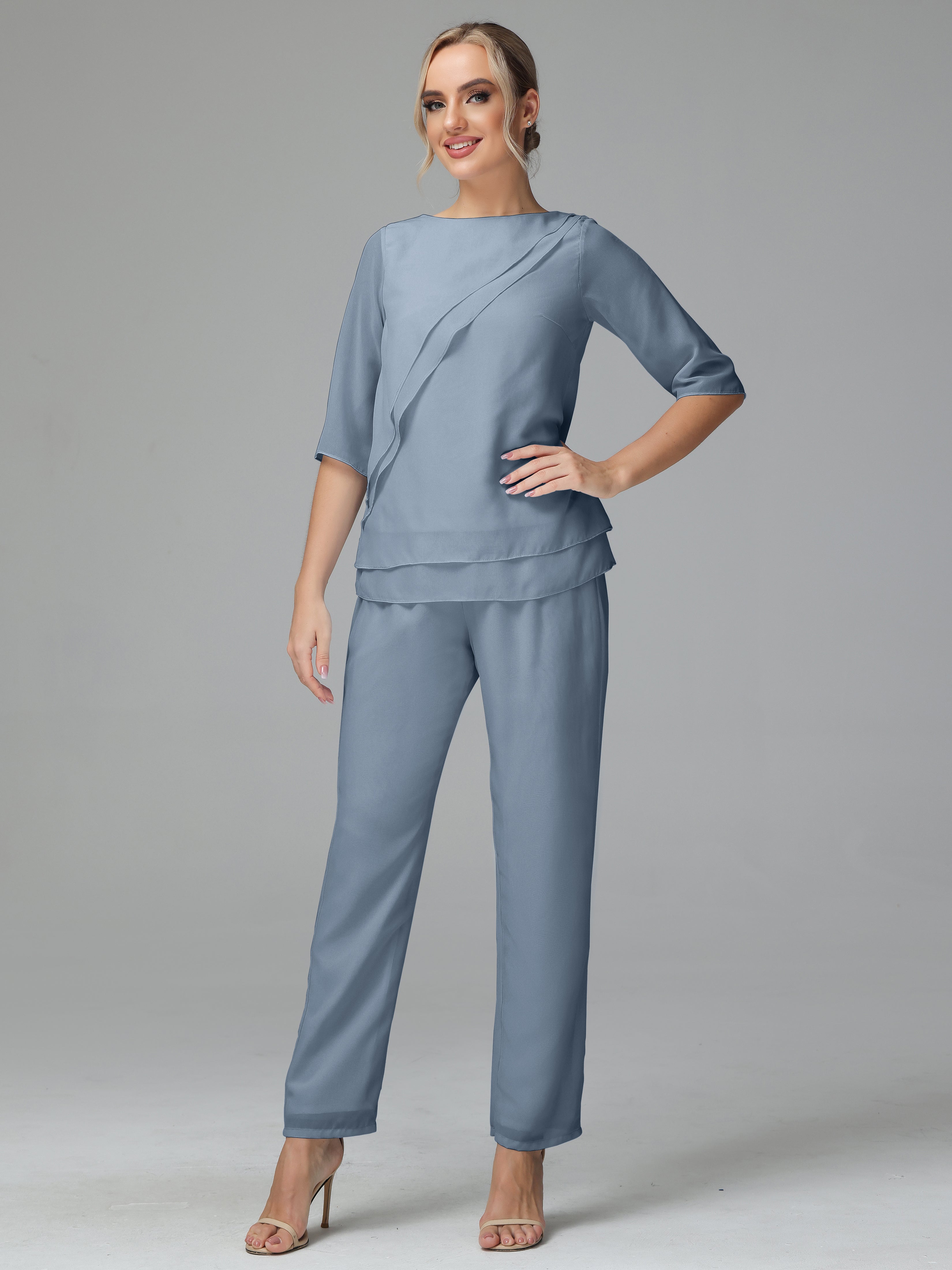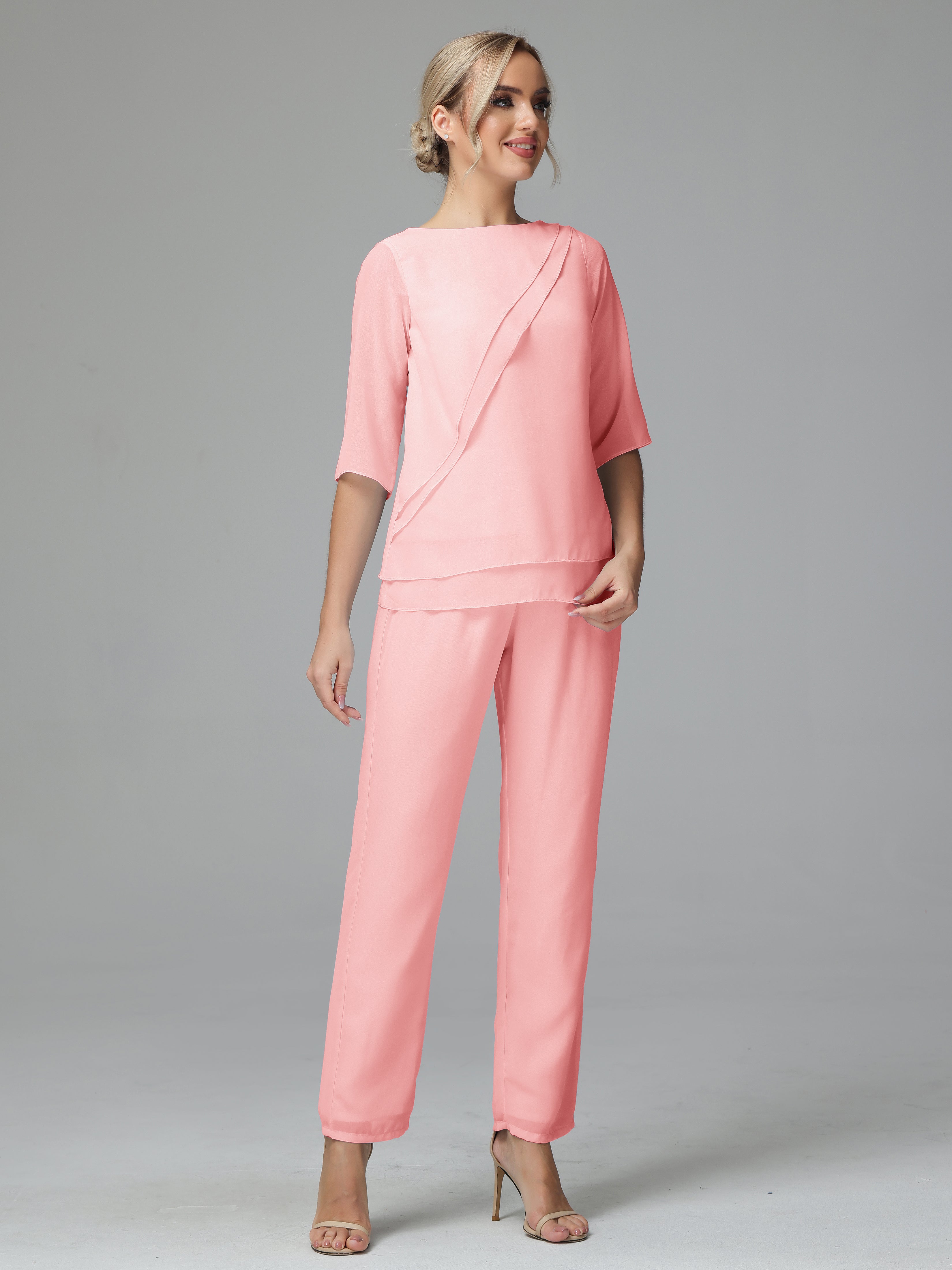 Half Sleeves 2 Pieces Mother Of The Bride Dress Pants Suits