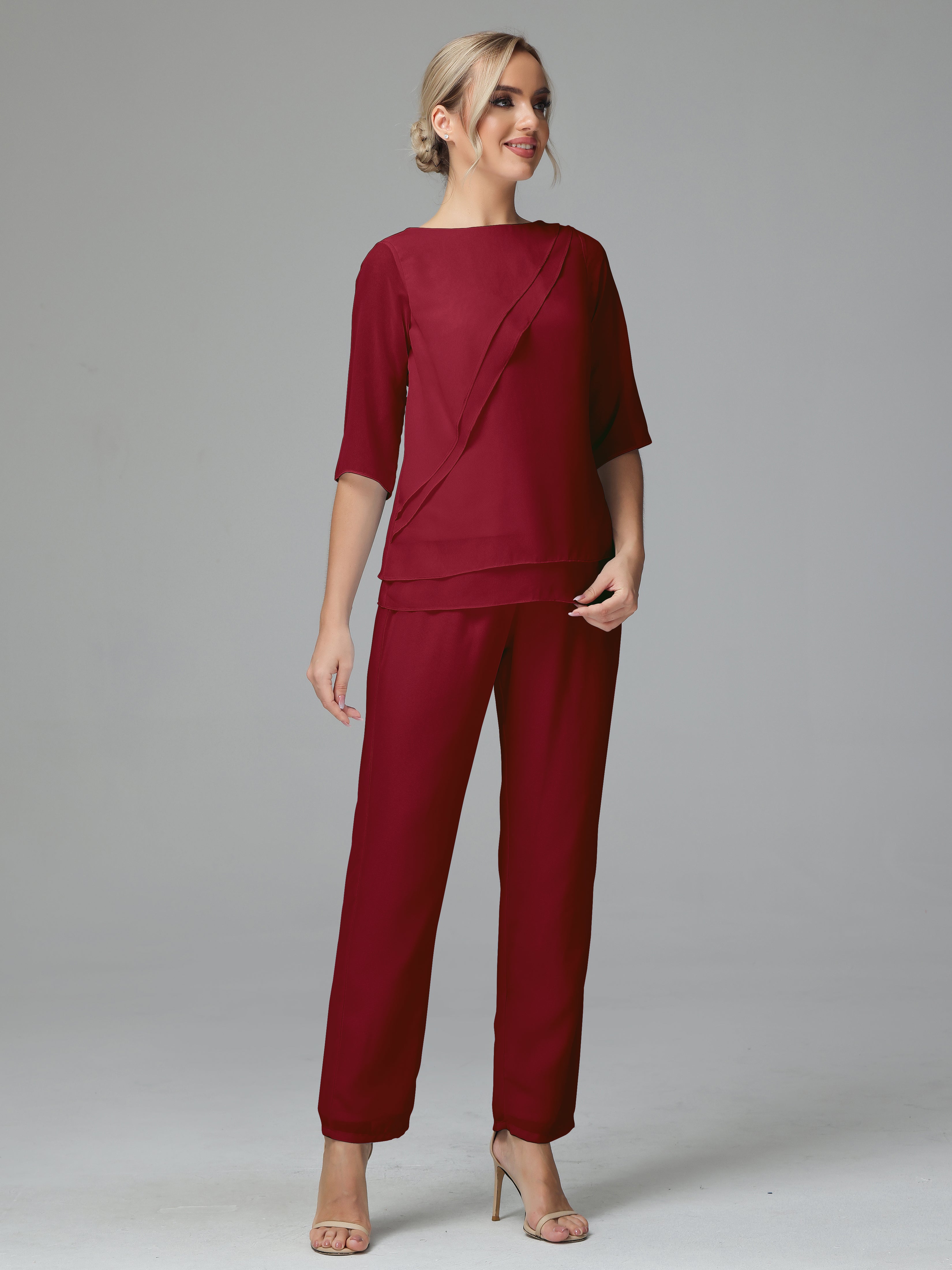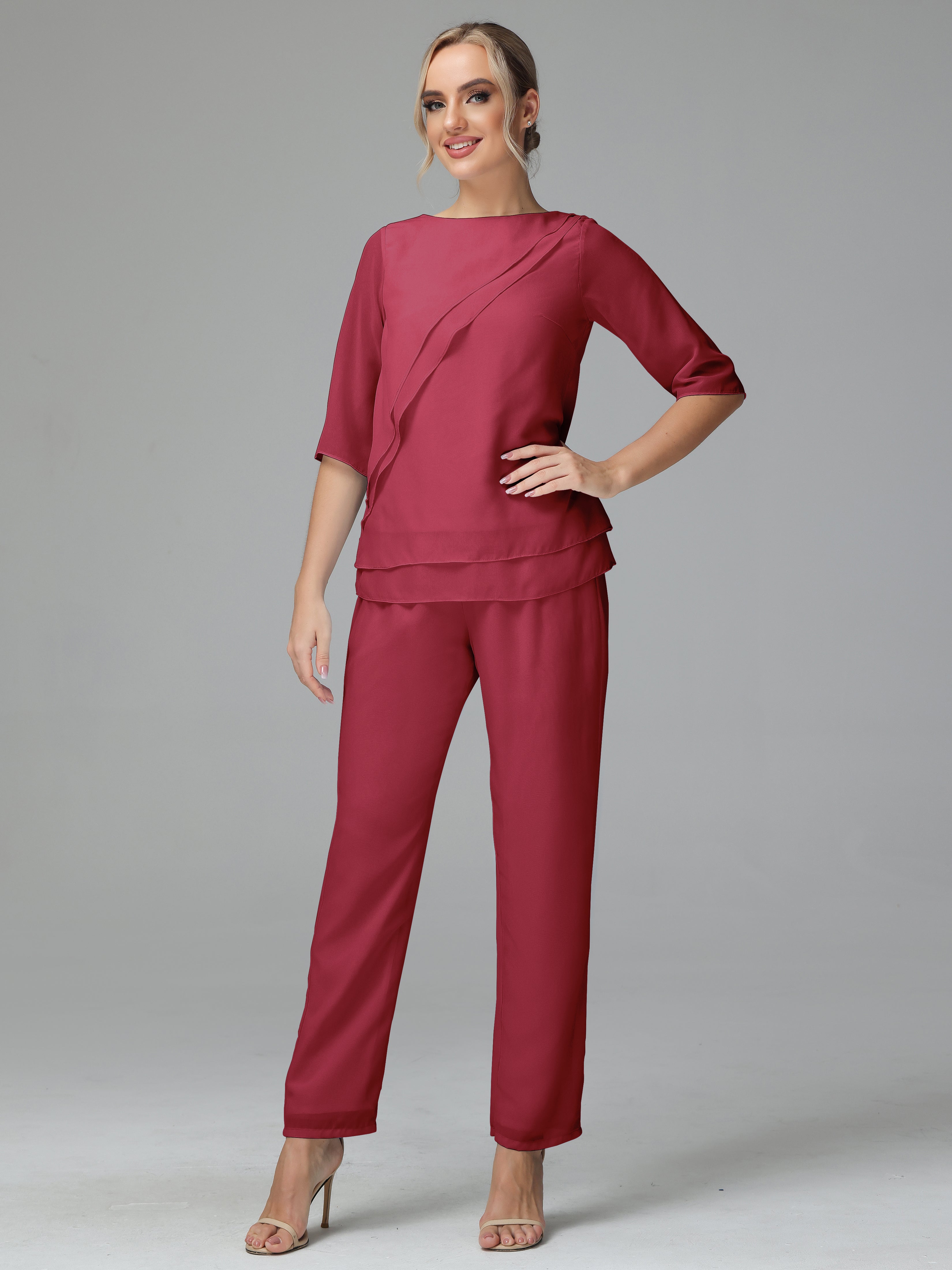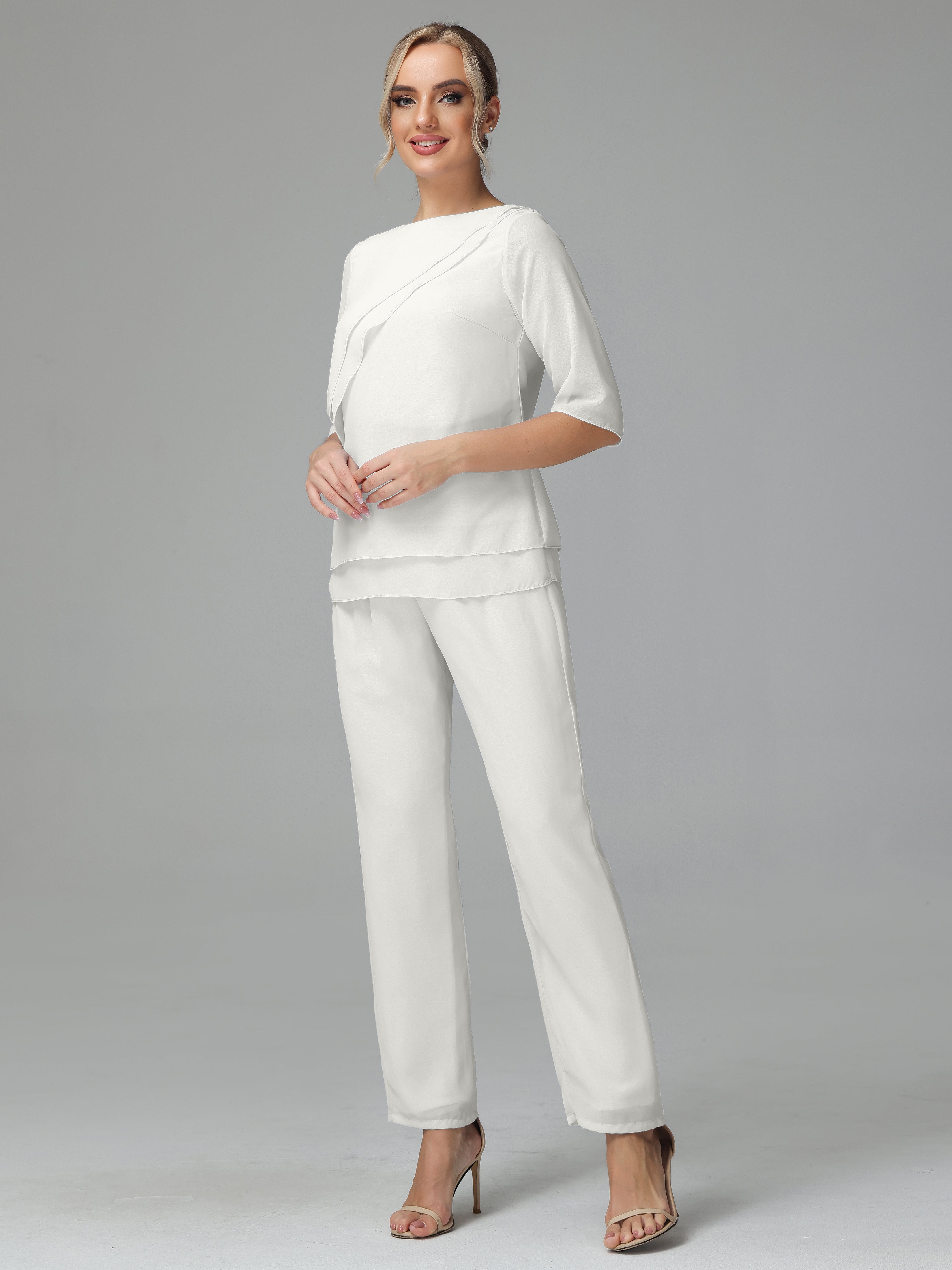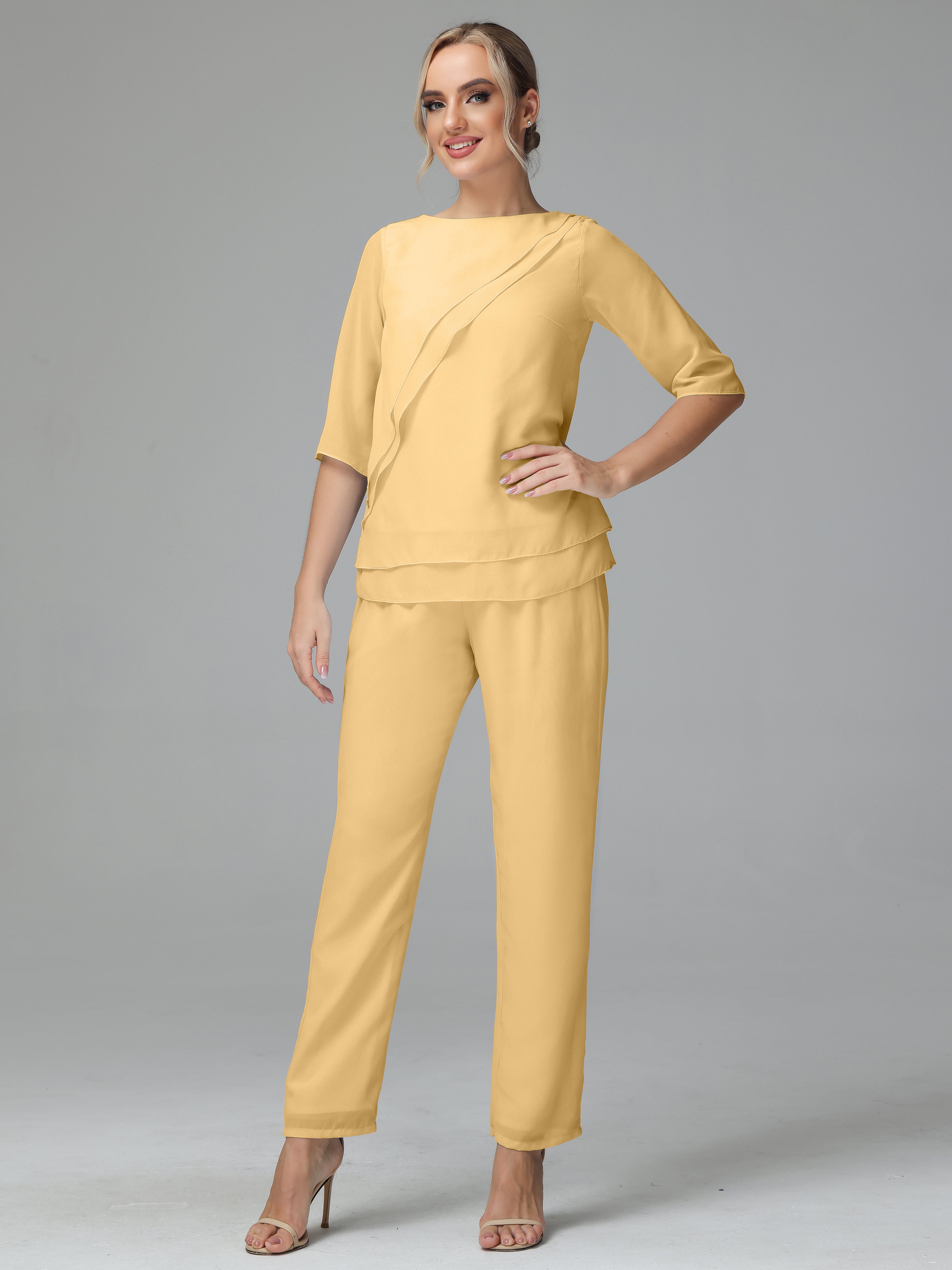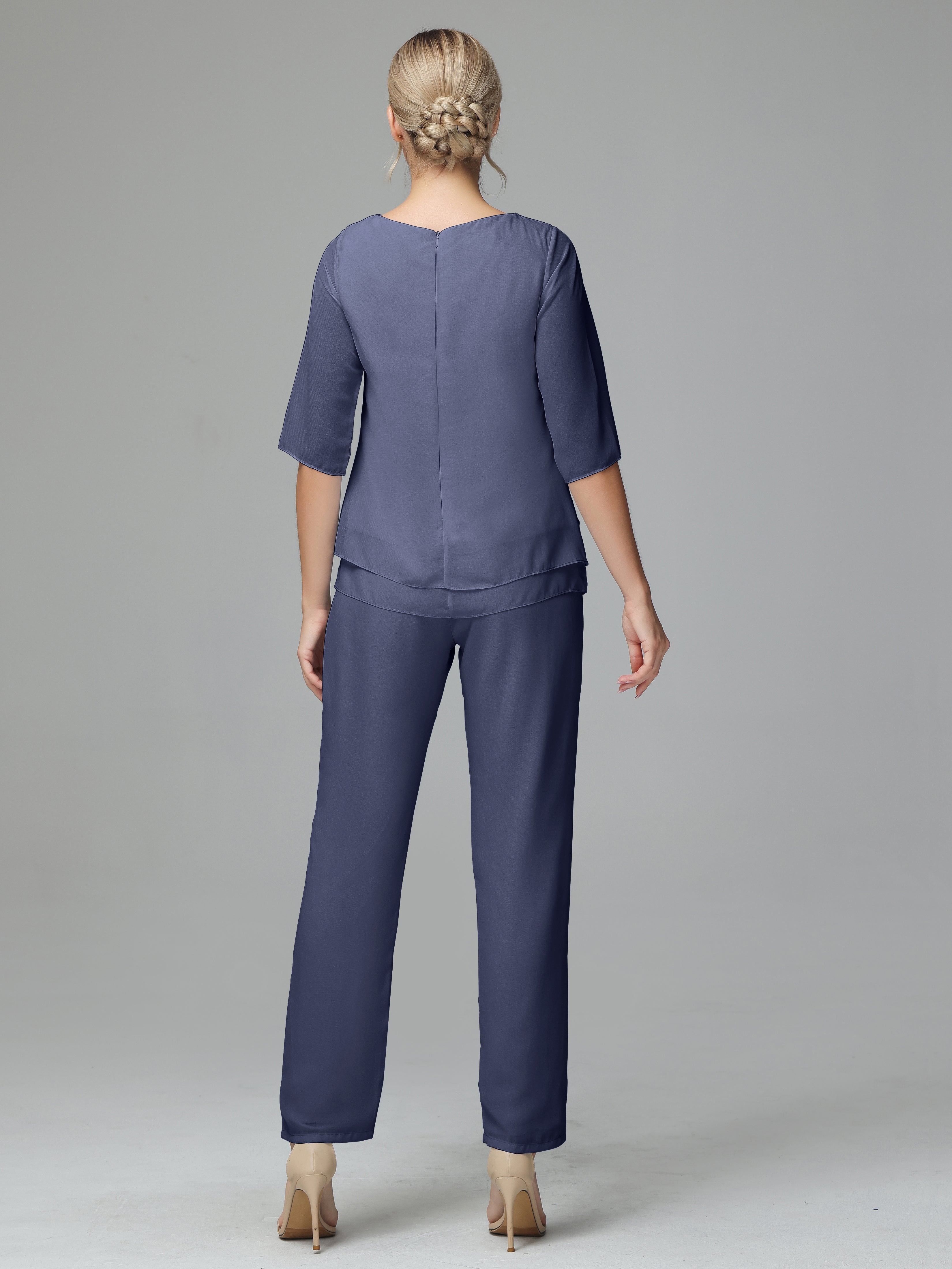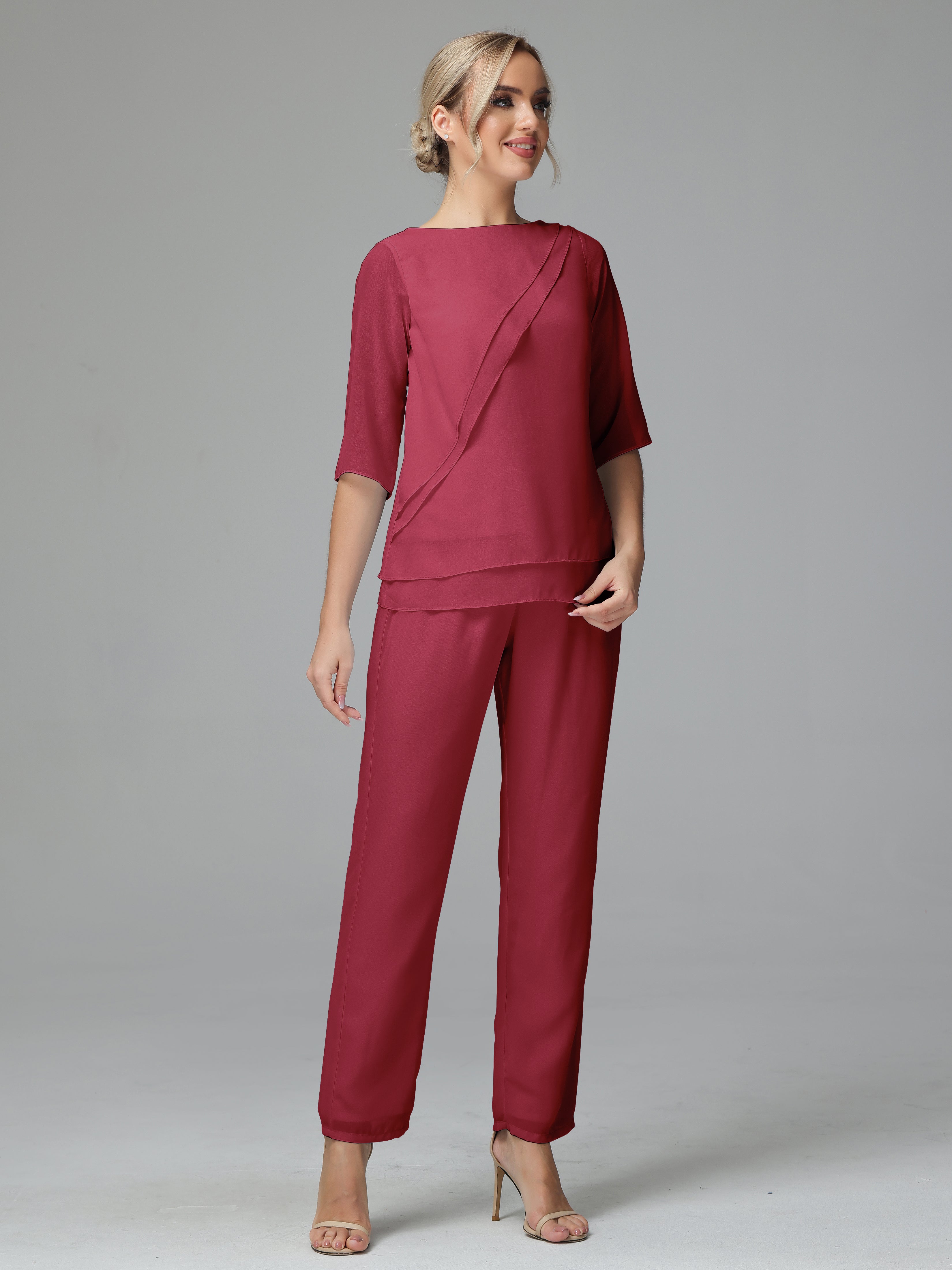 Half Sleeves 2 Pieces Mother Of The Bride Dress Pants Suits