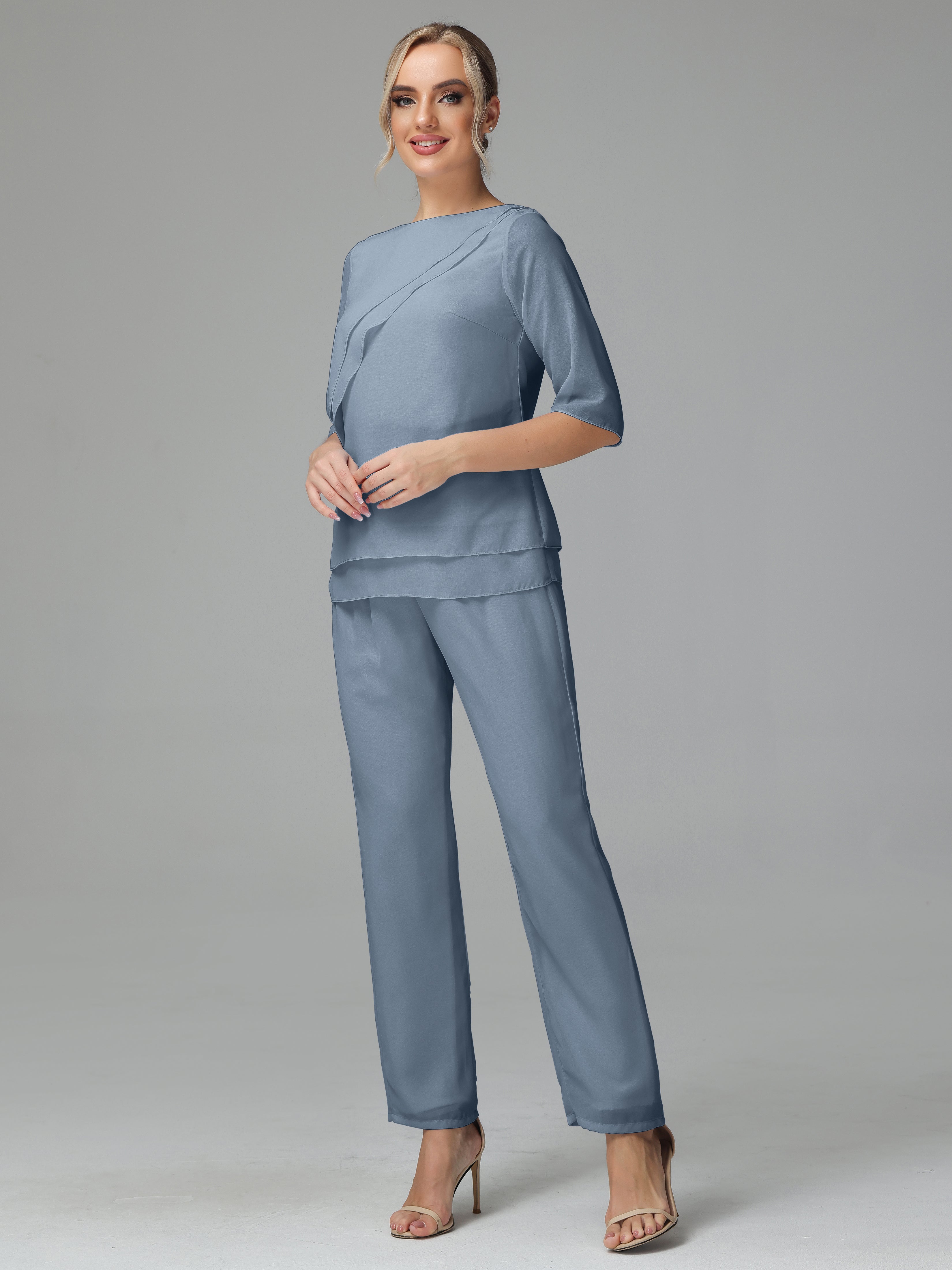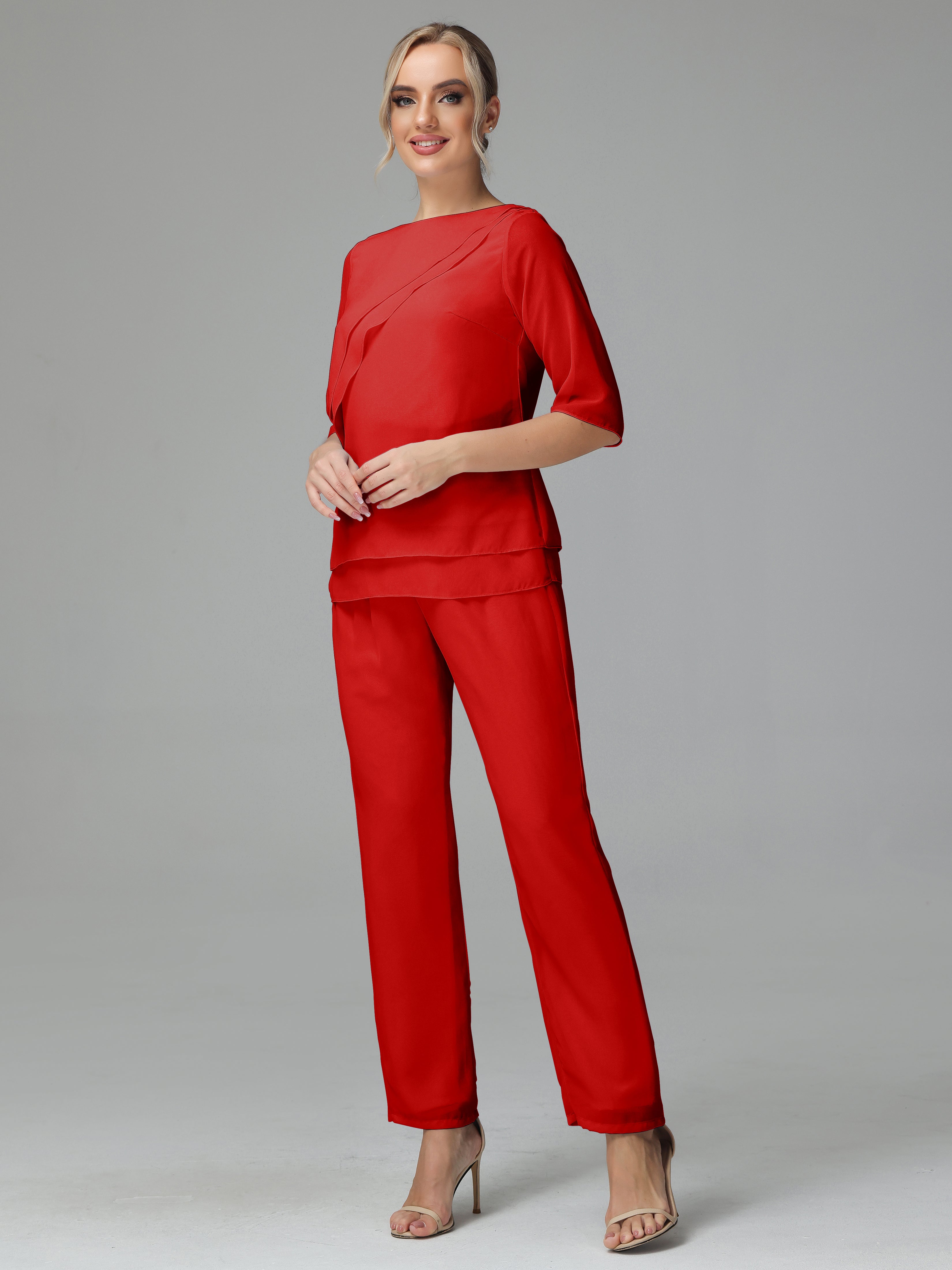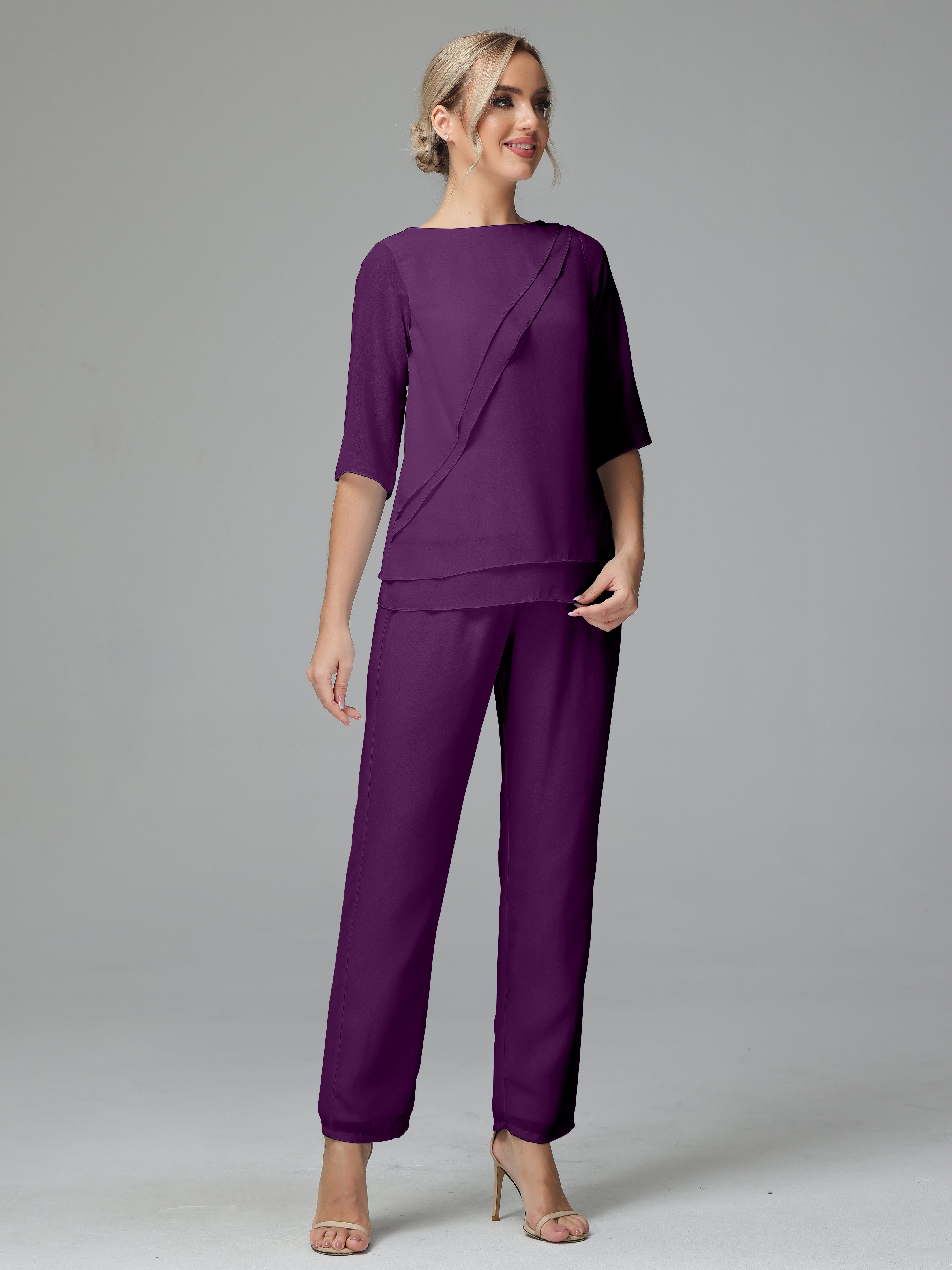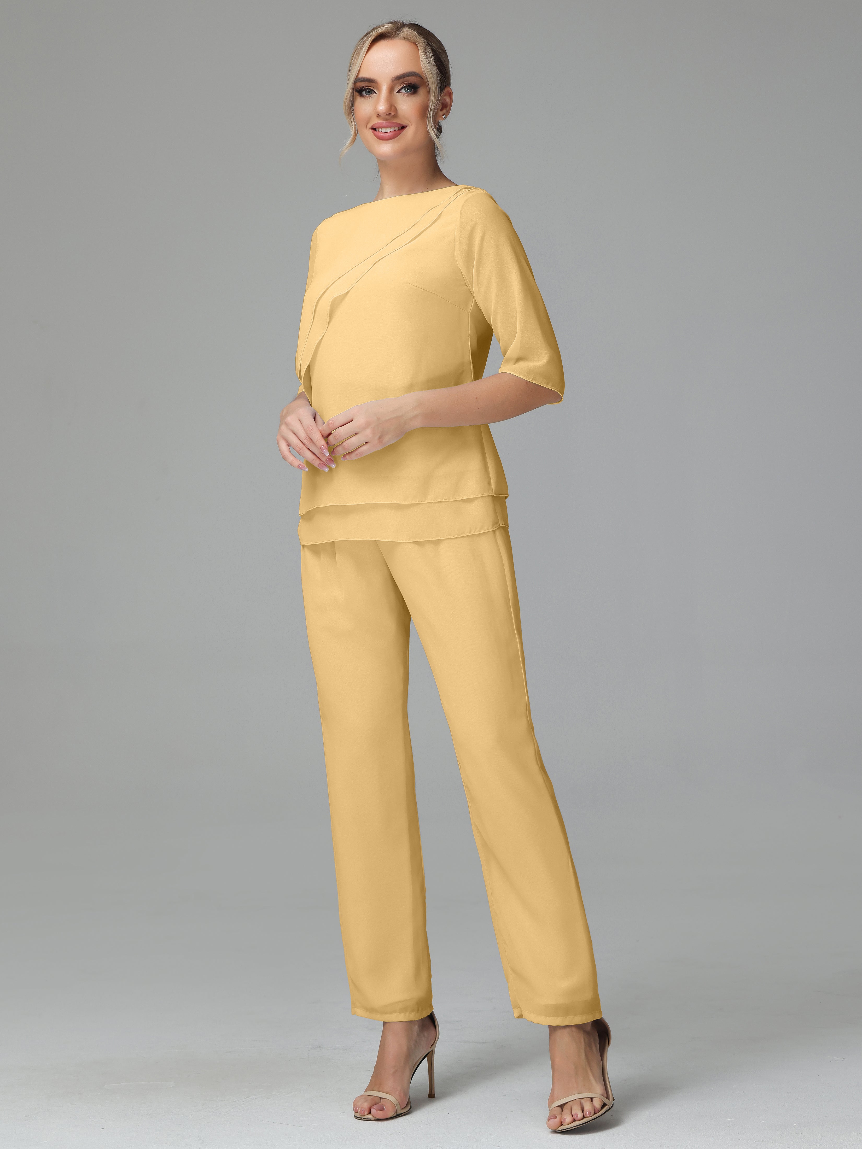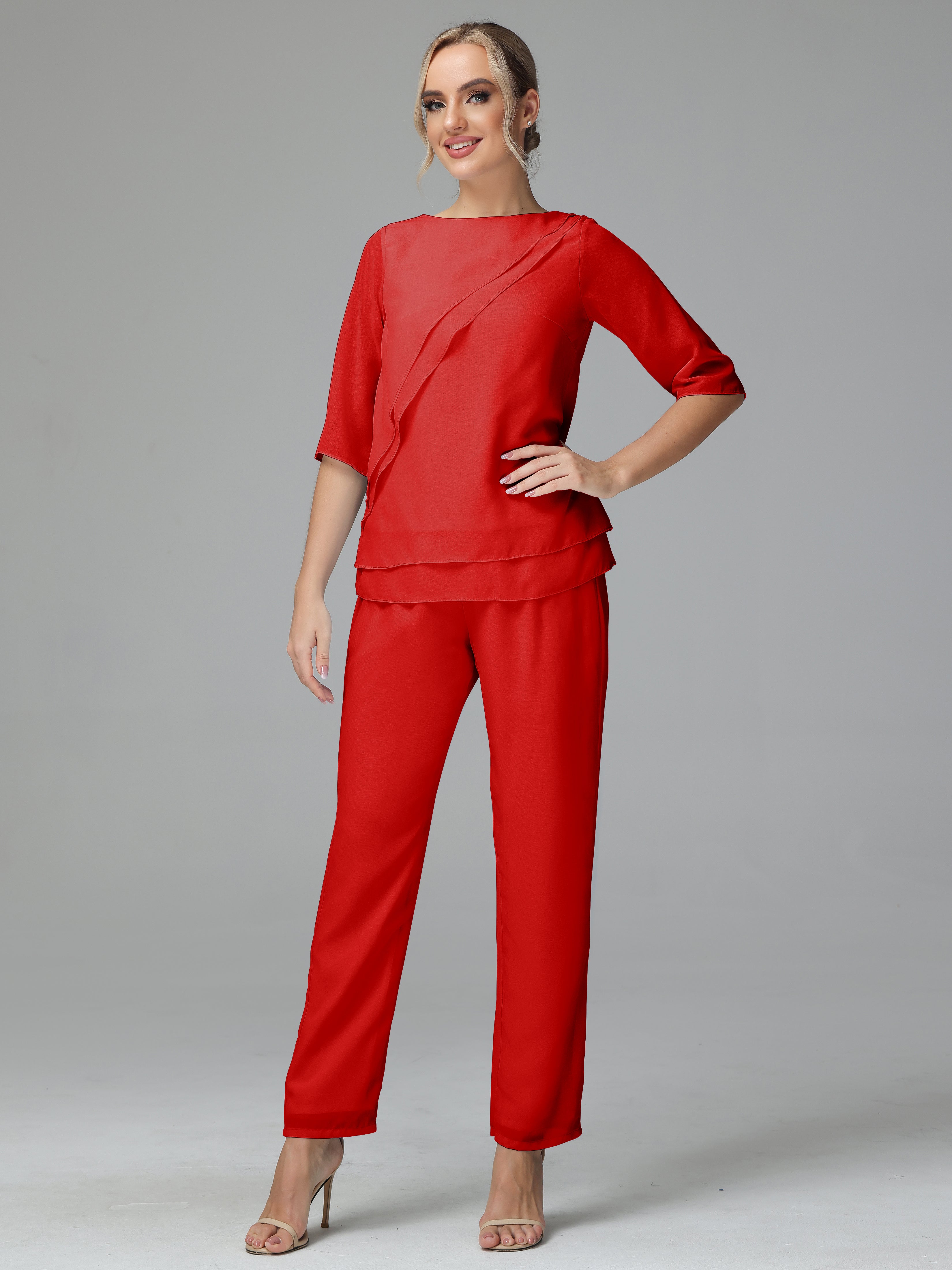 Half Sleeves 2 Pieces Mother Of The Bride Dress Pants Suits