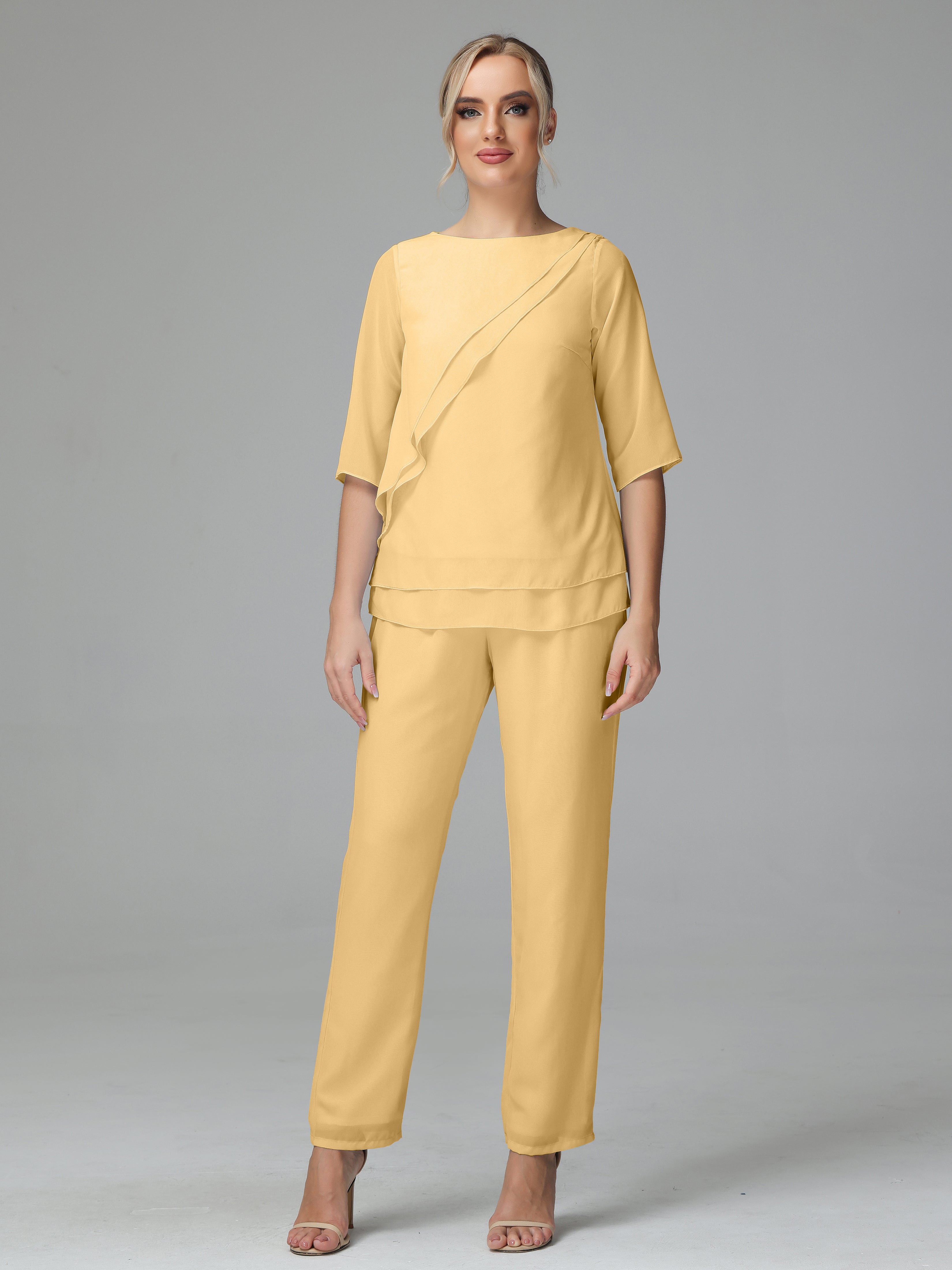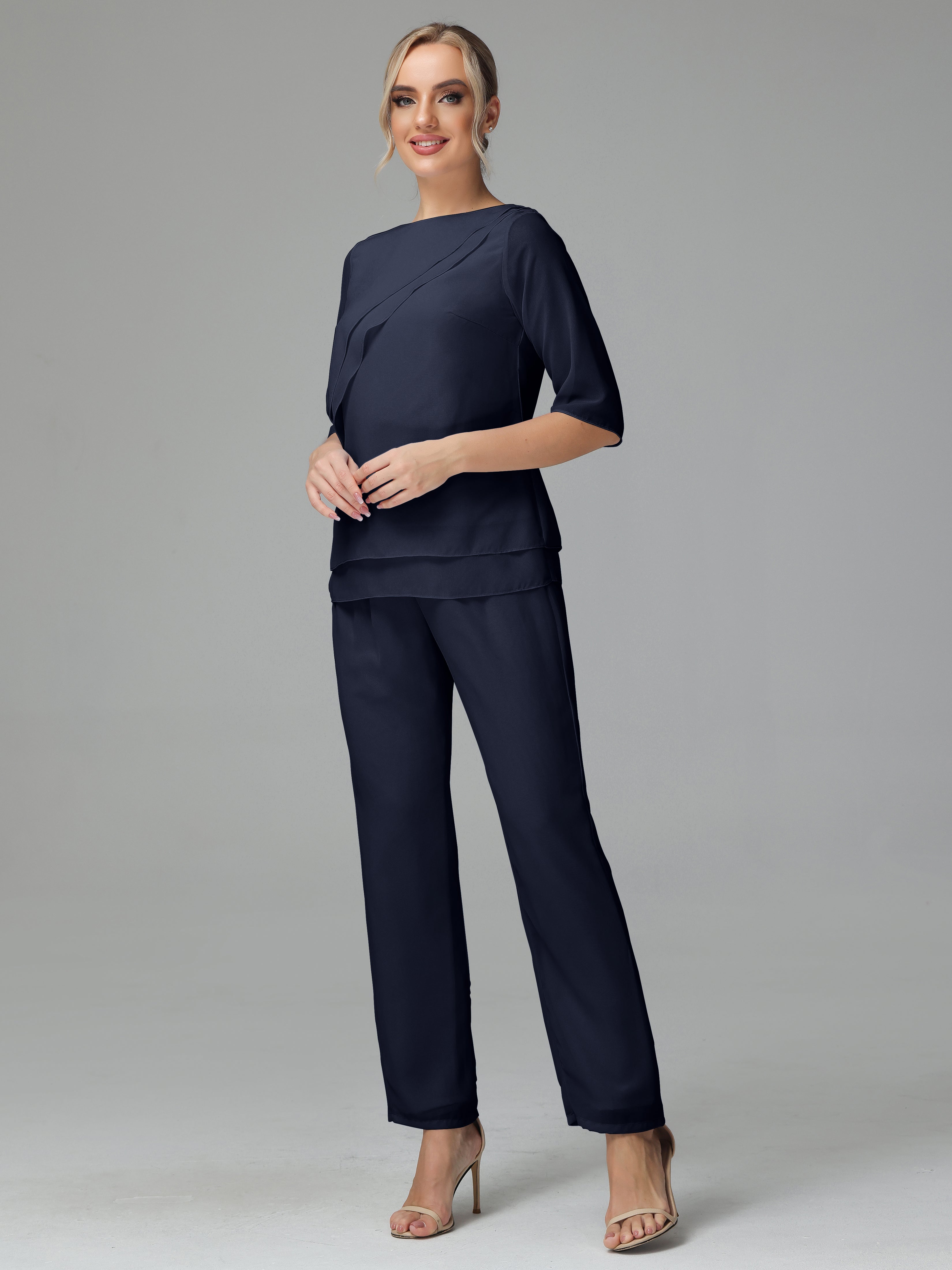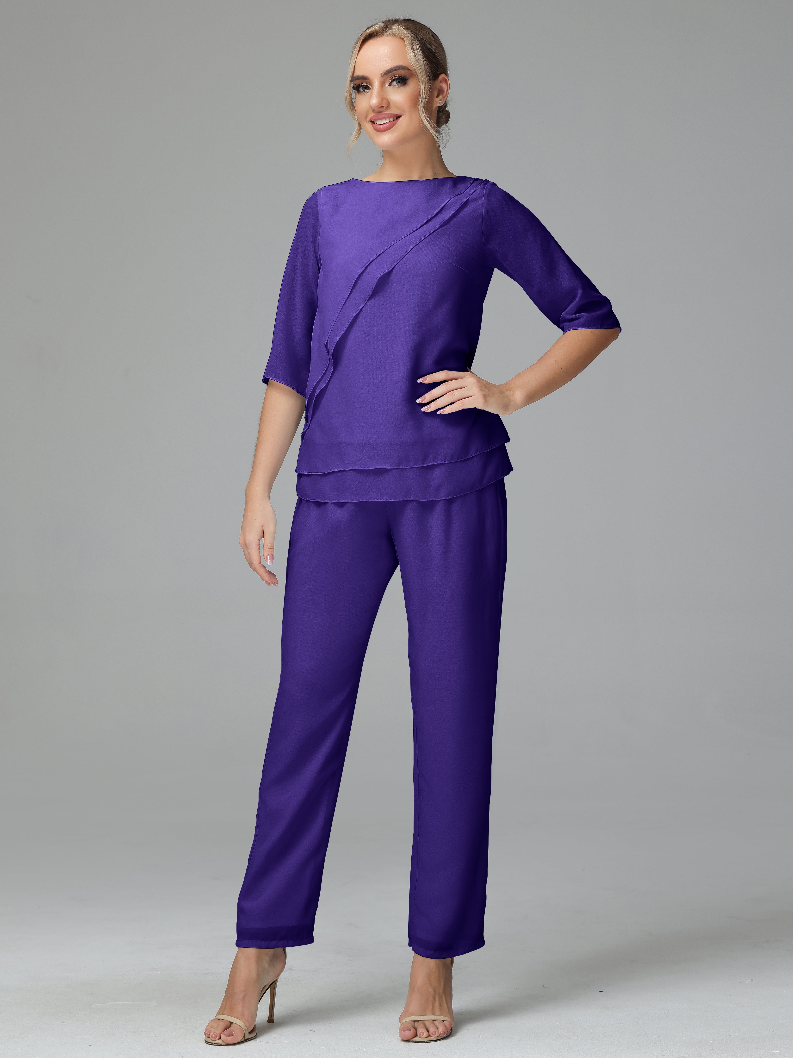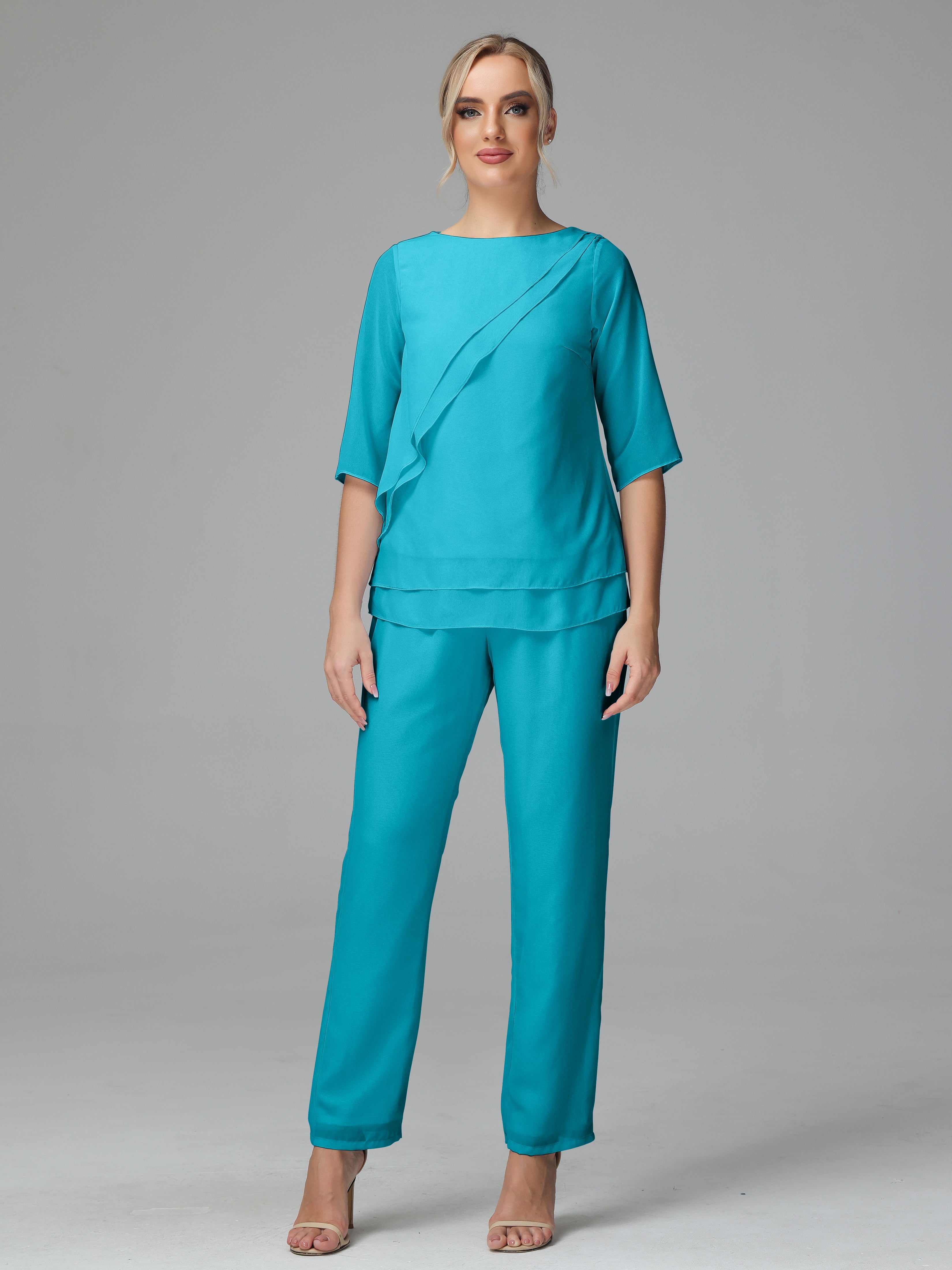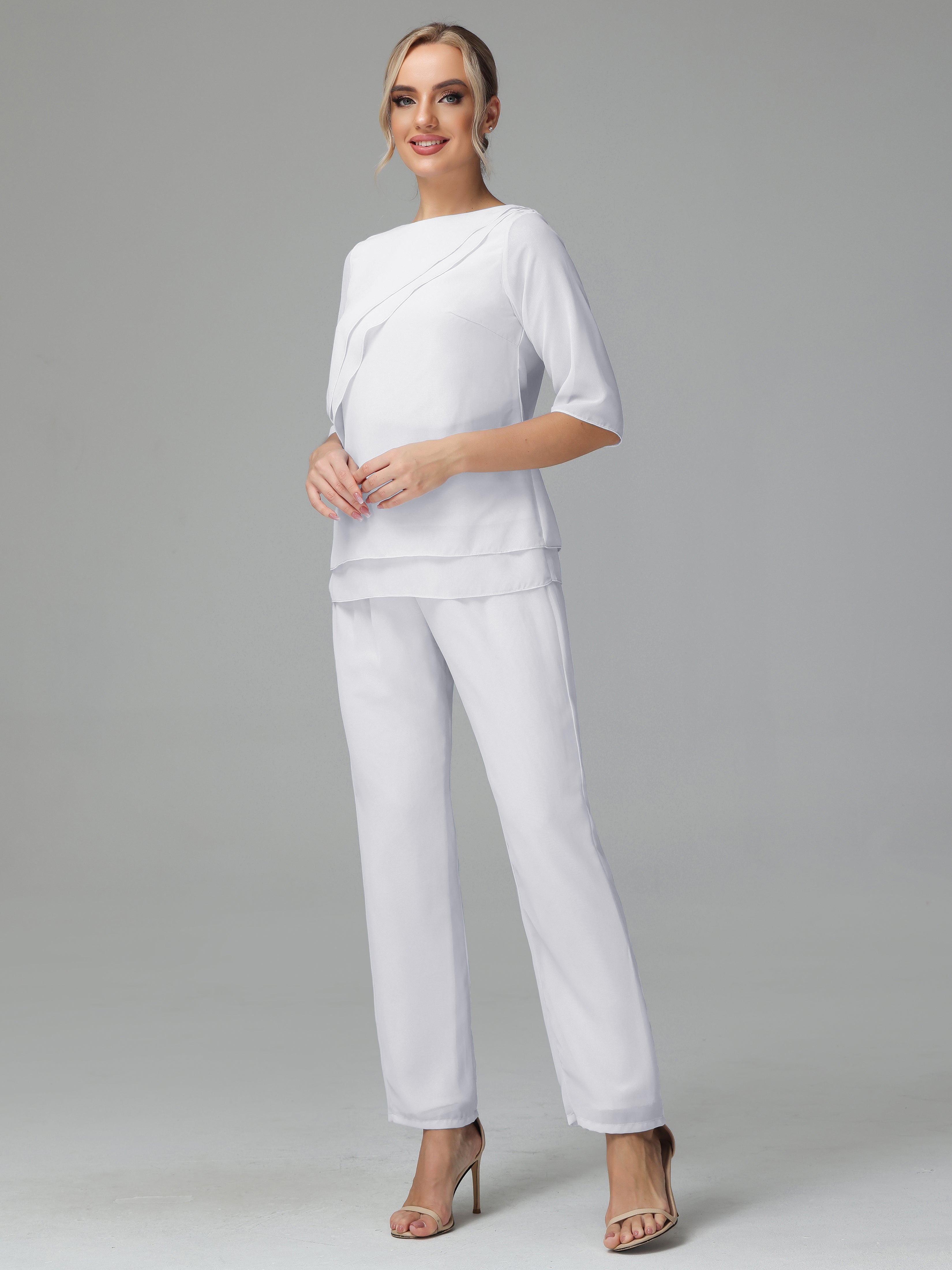 Half Sleeves 2 Pieces Mother Of The Bride Dress Pants Suits