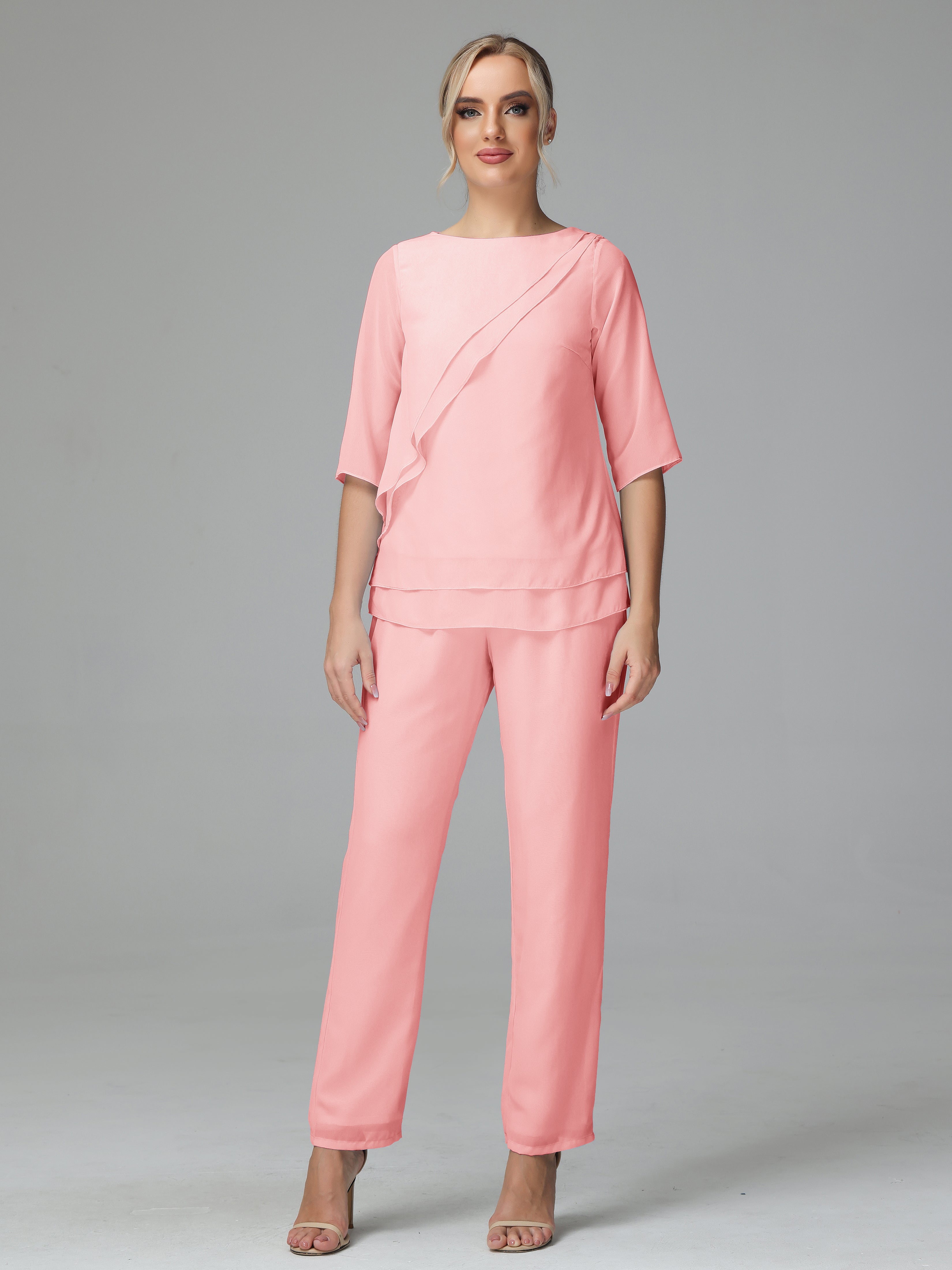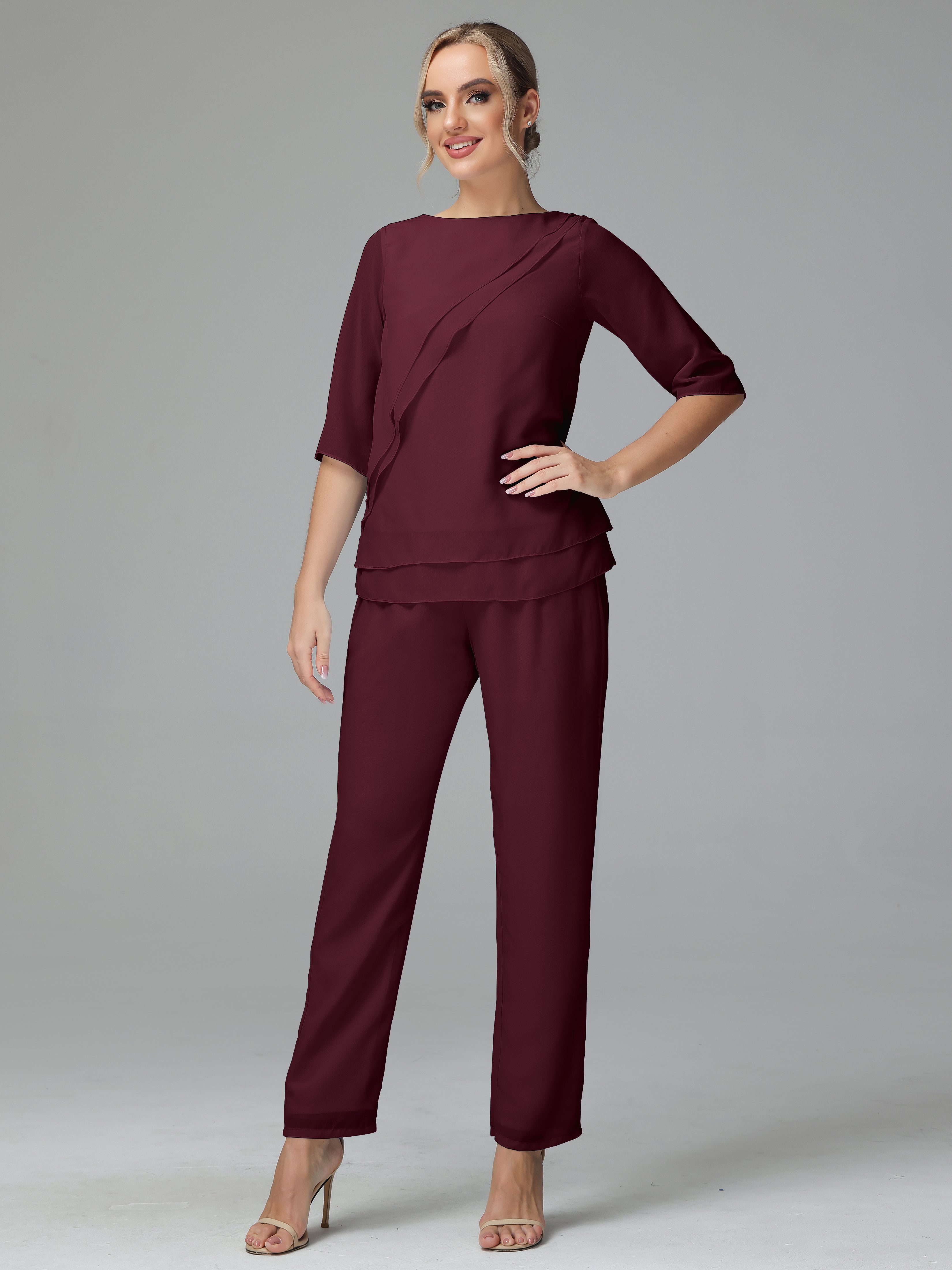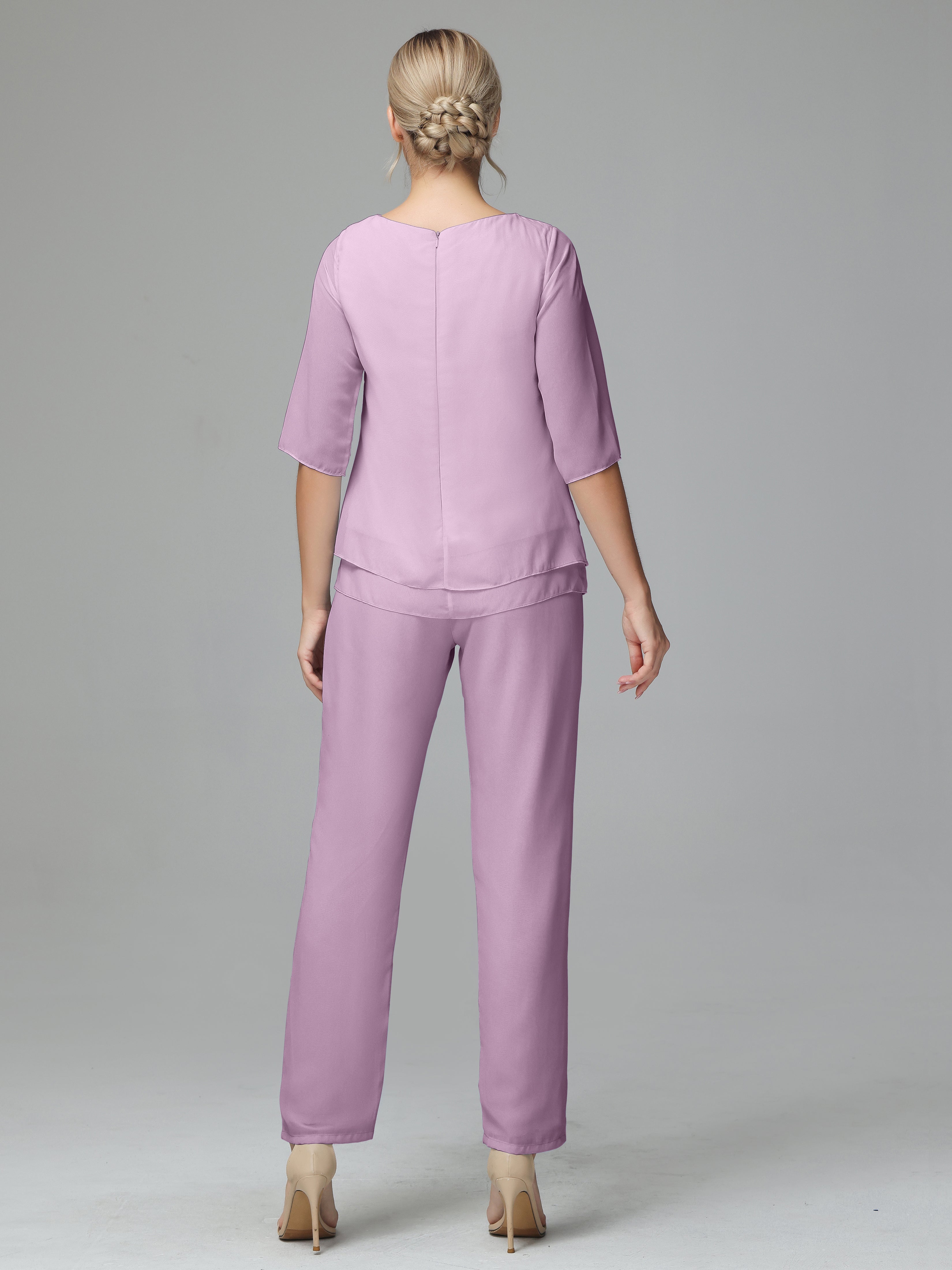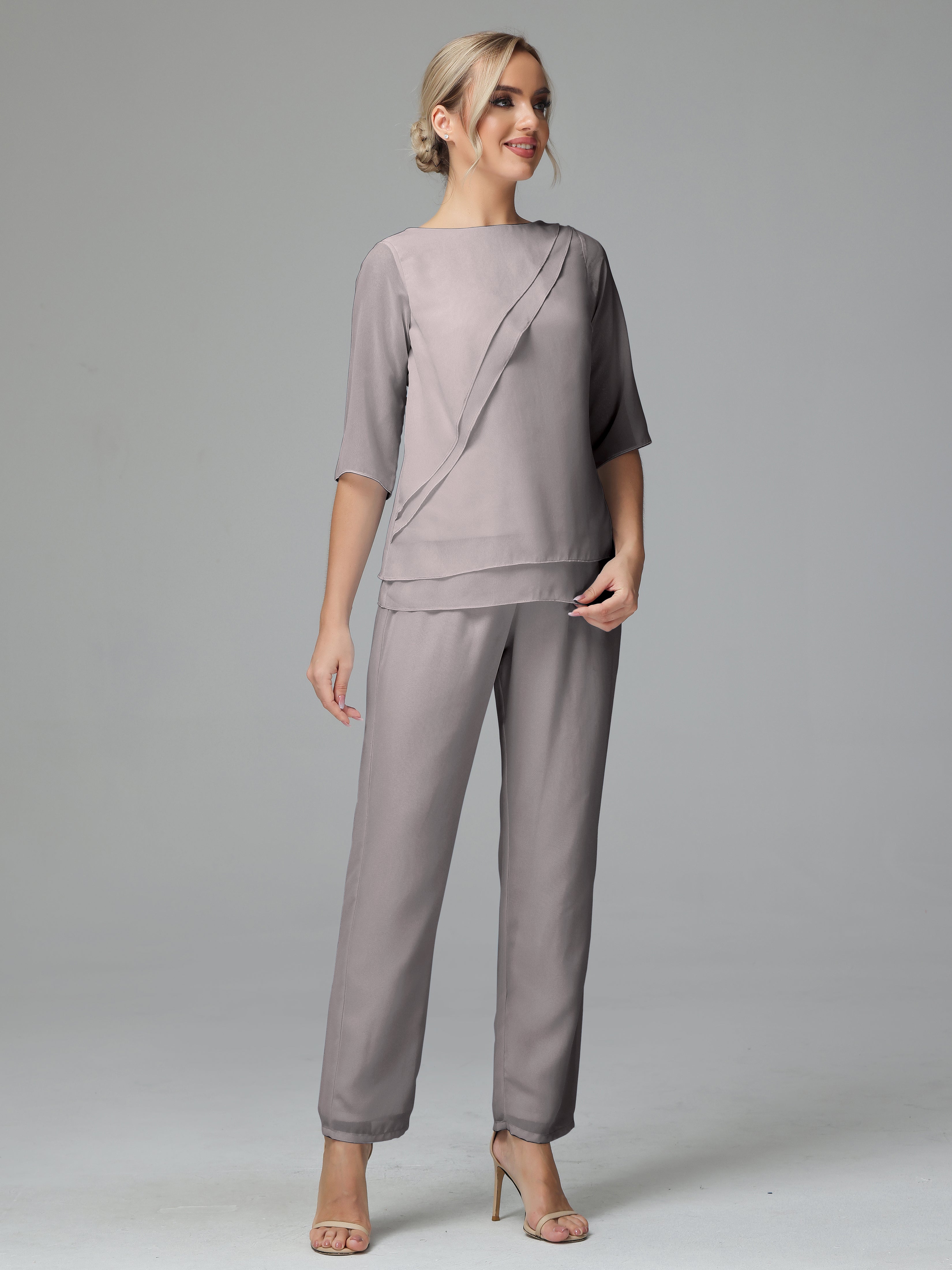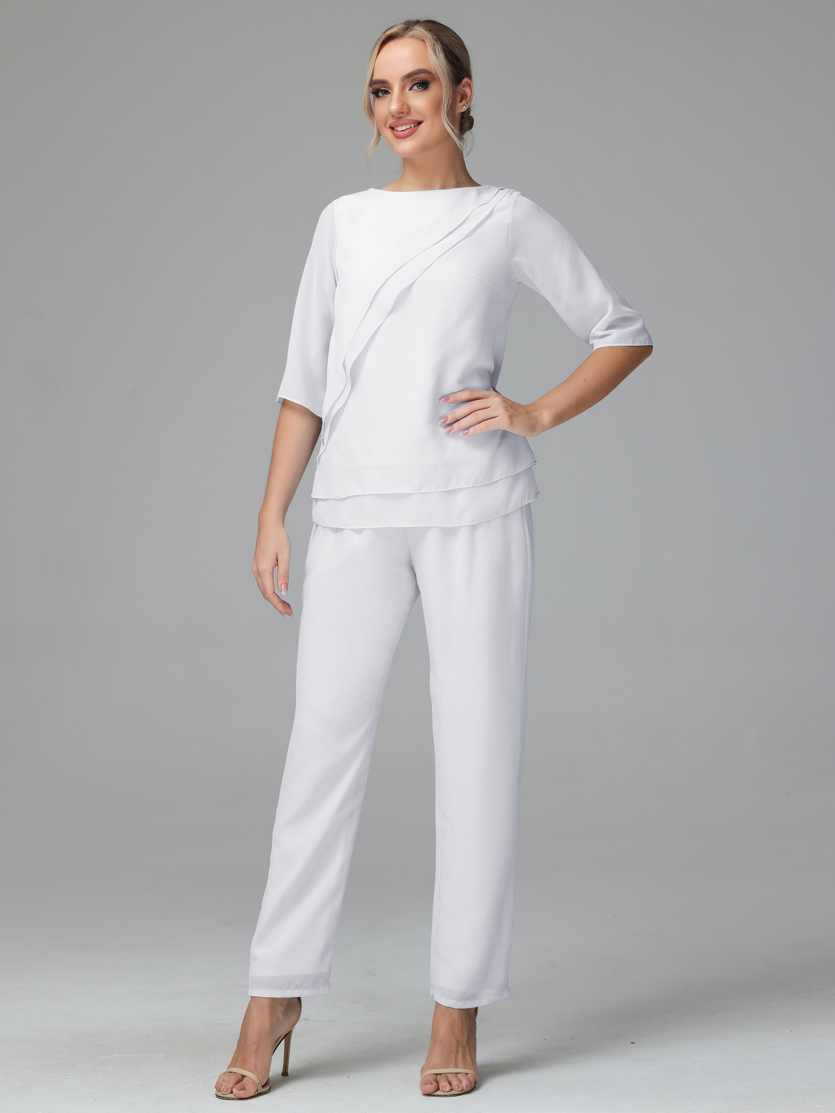 Half Sleeves 2 Pieces Mother Of The Bride Dress Pants Suits