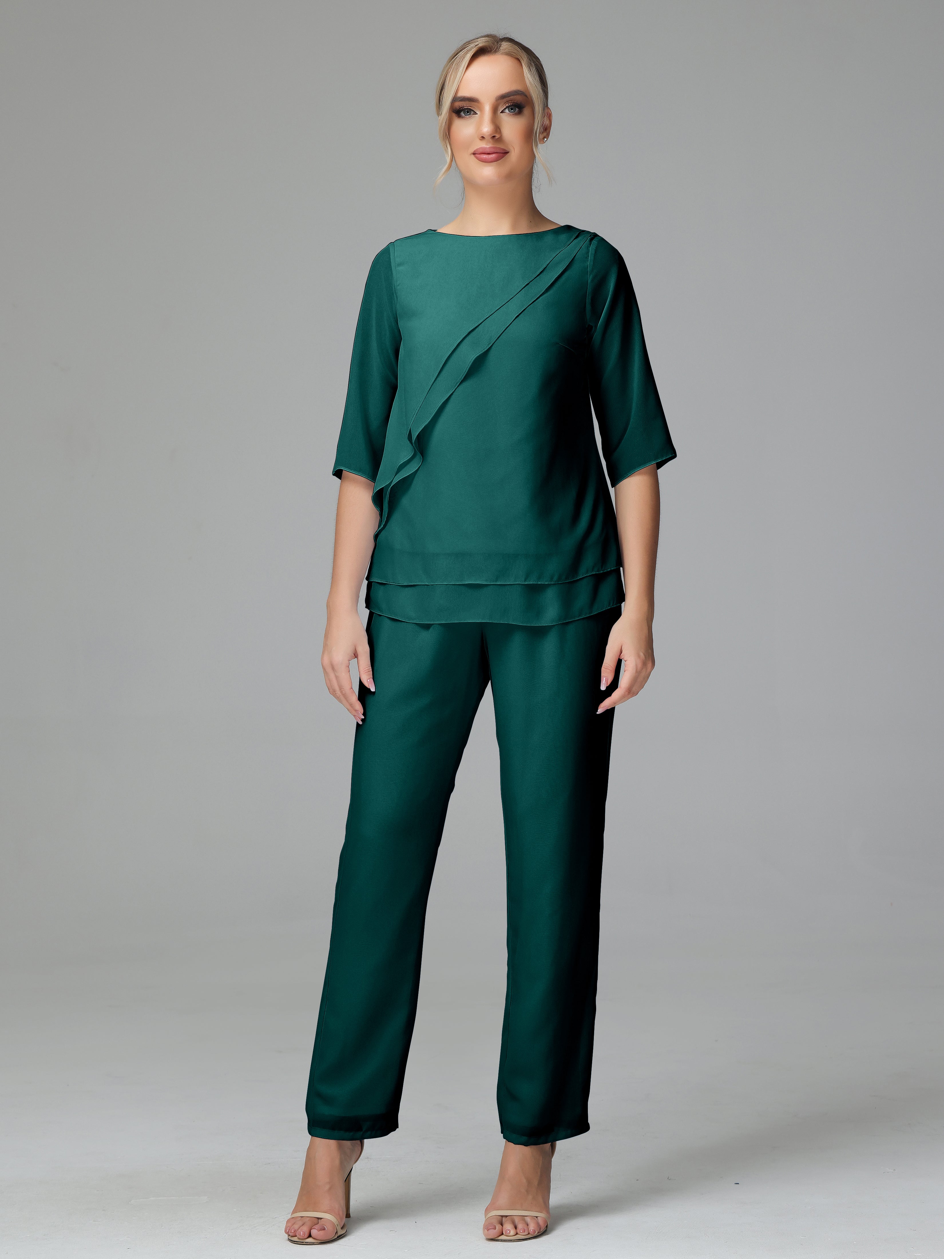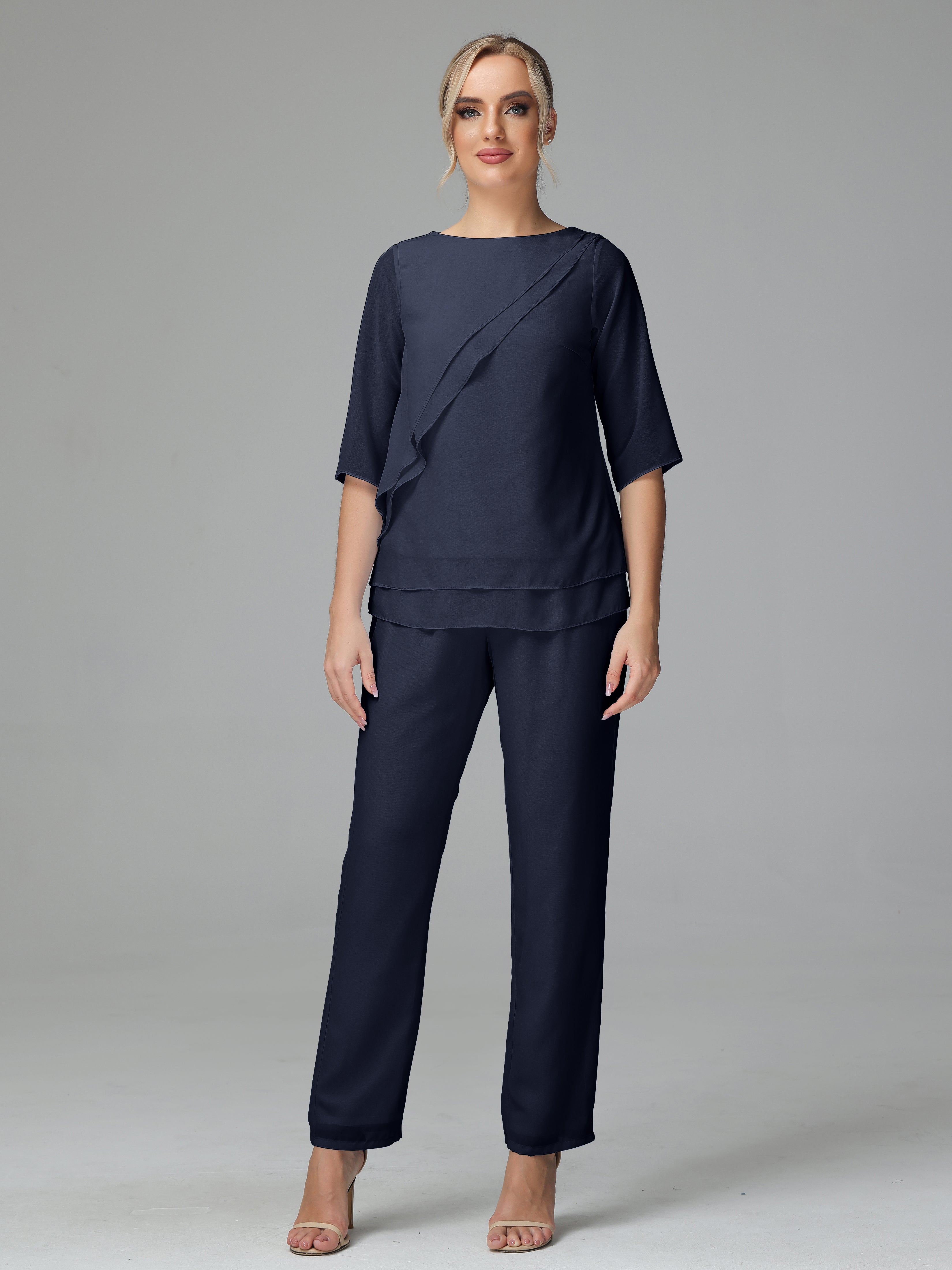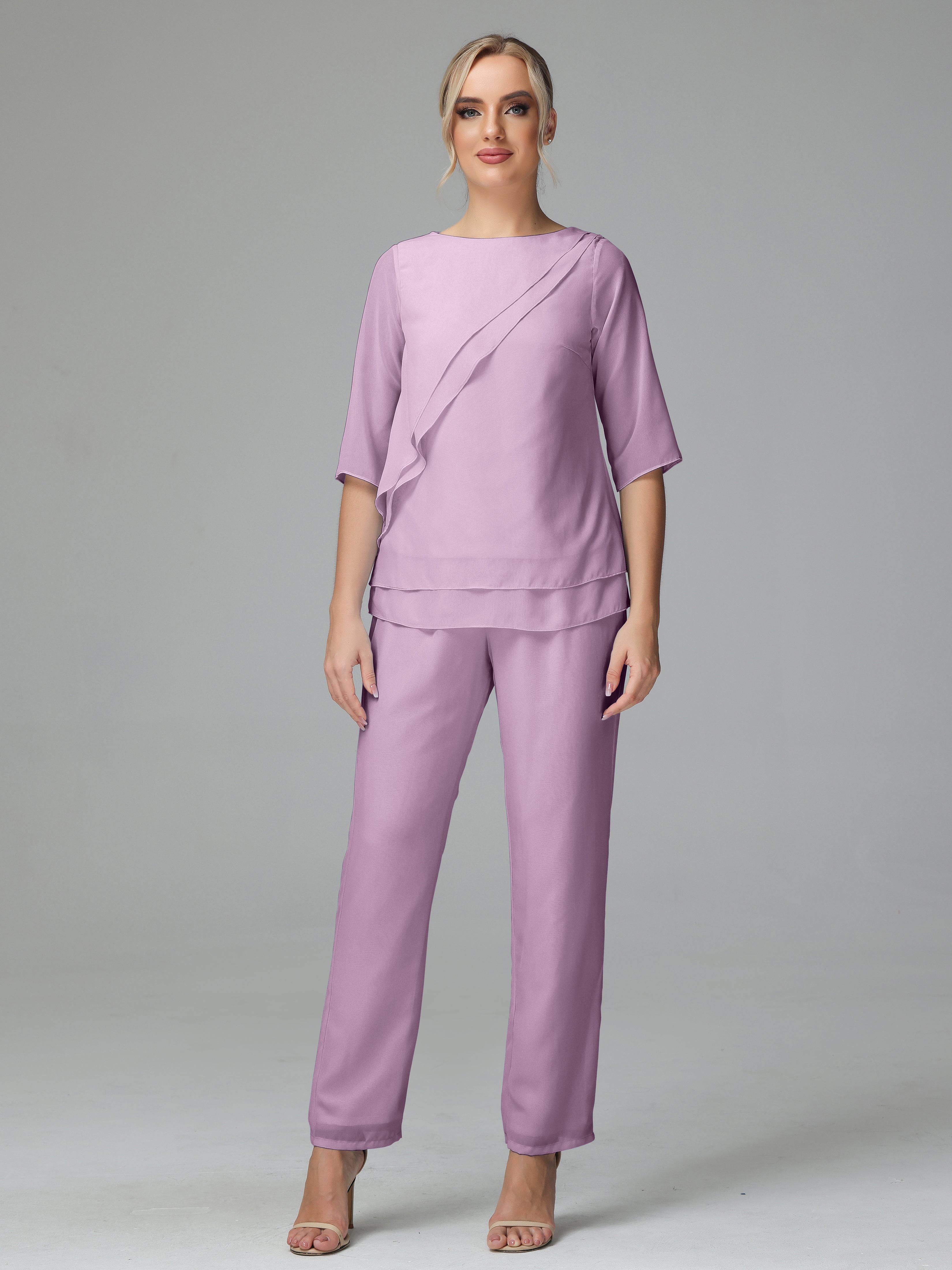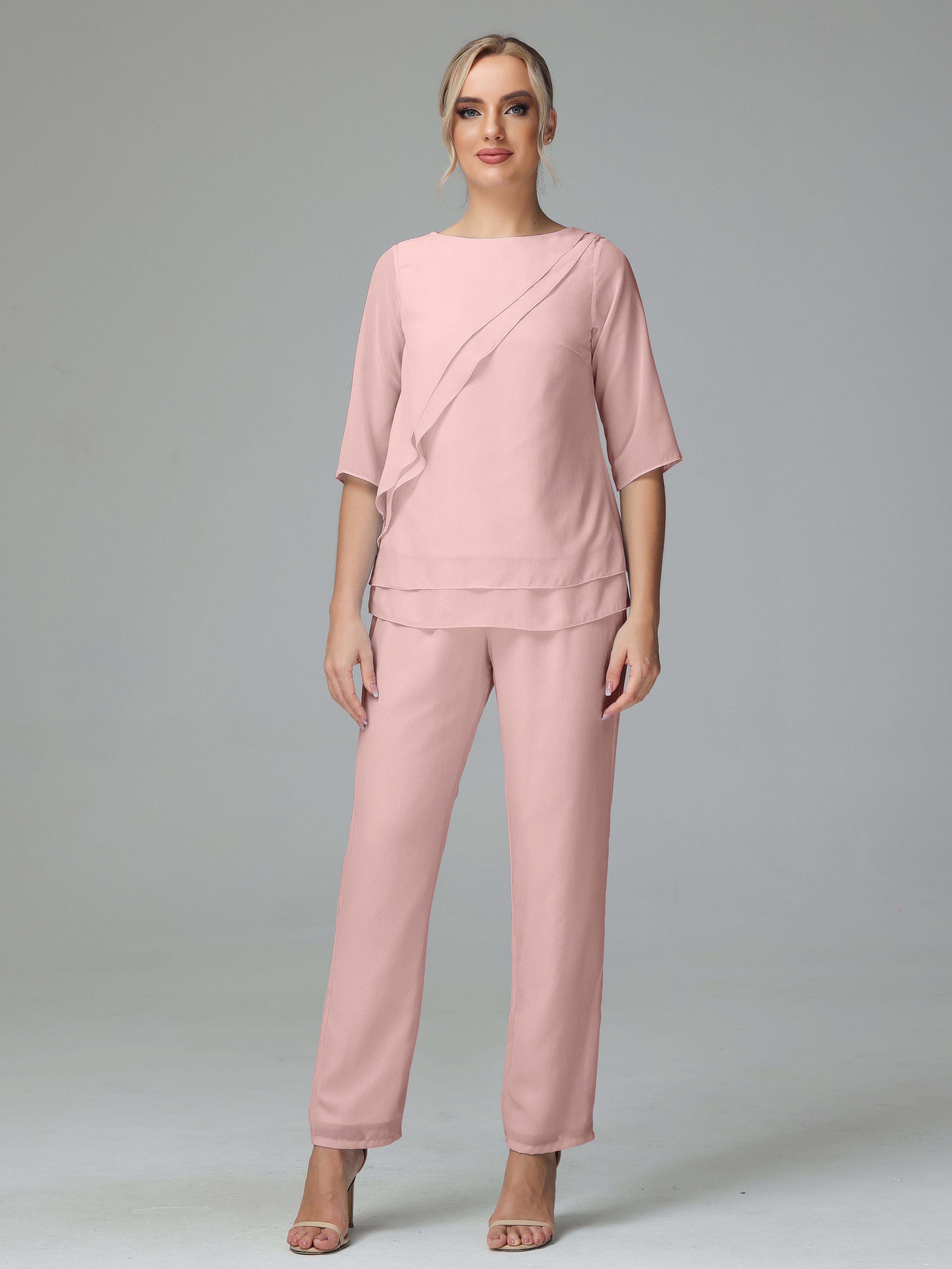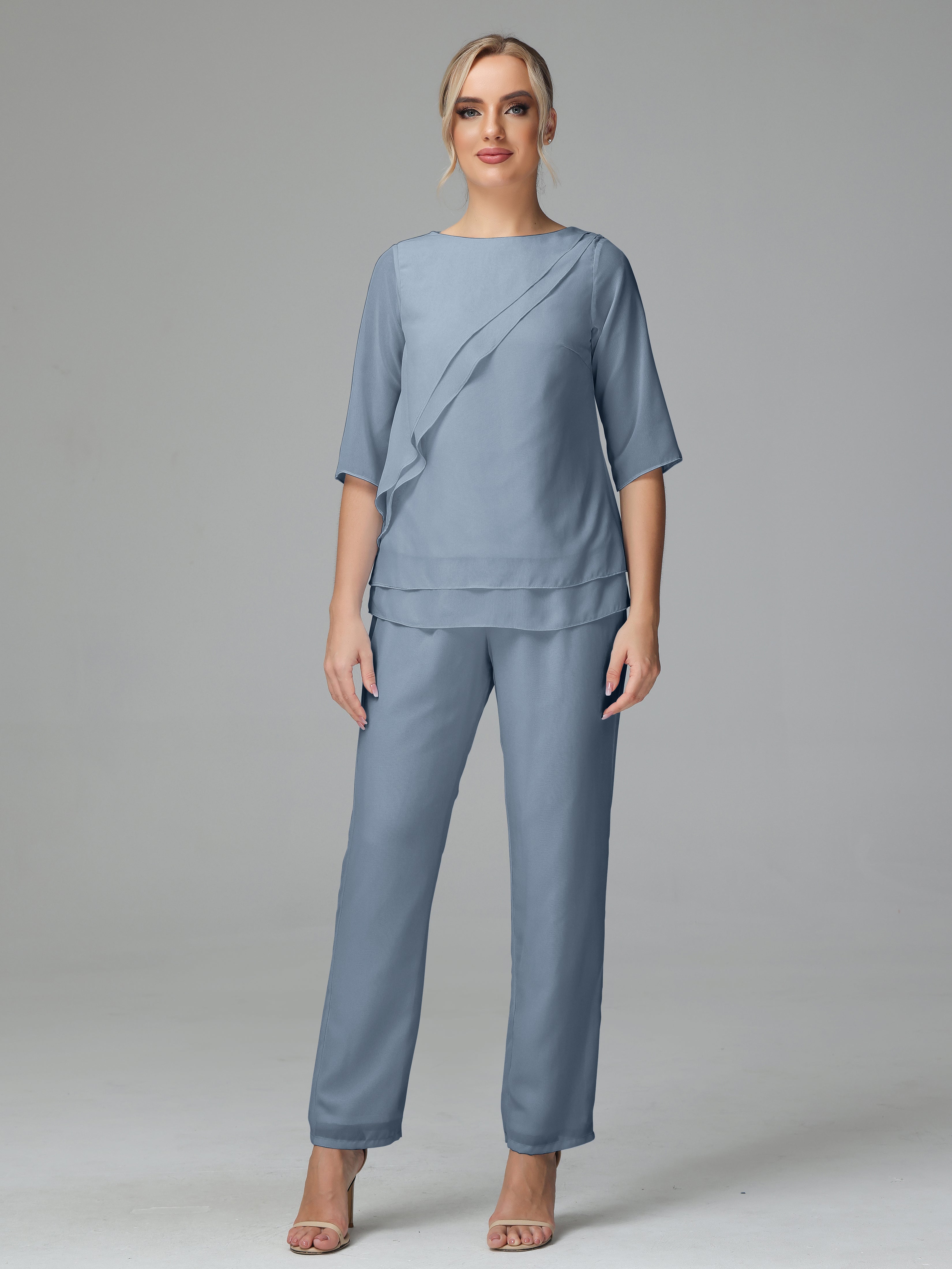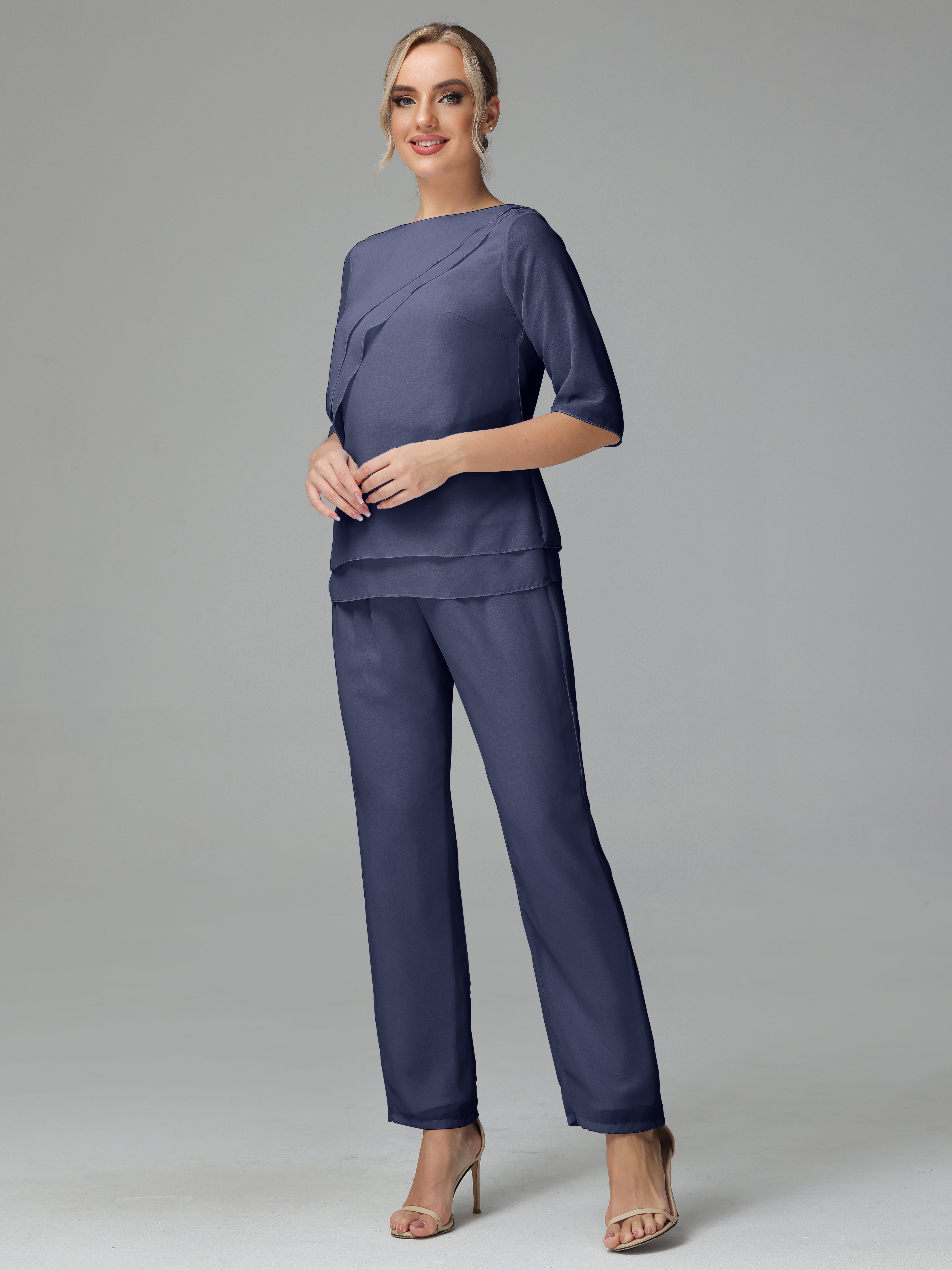 Half Sleeves 2 Pieces Mother Of The Bride Dress Pants Suits