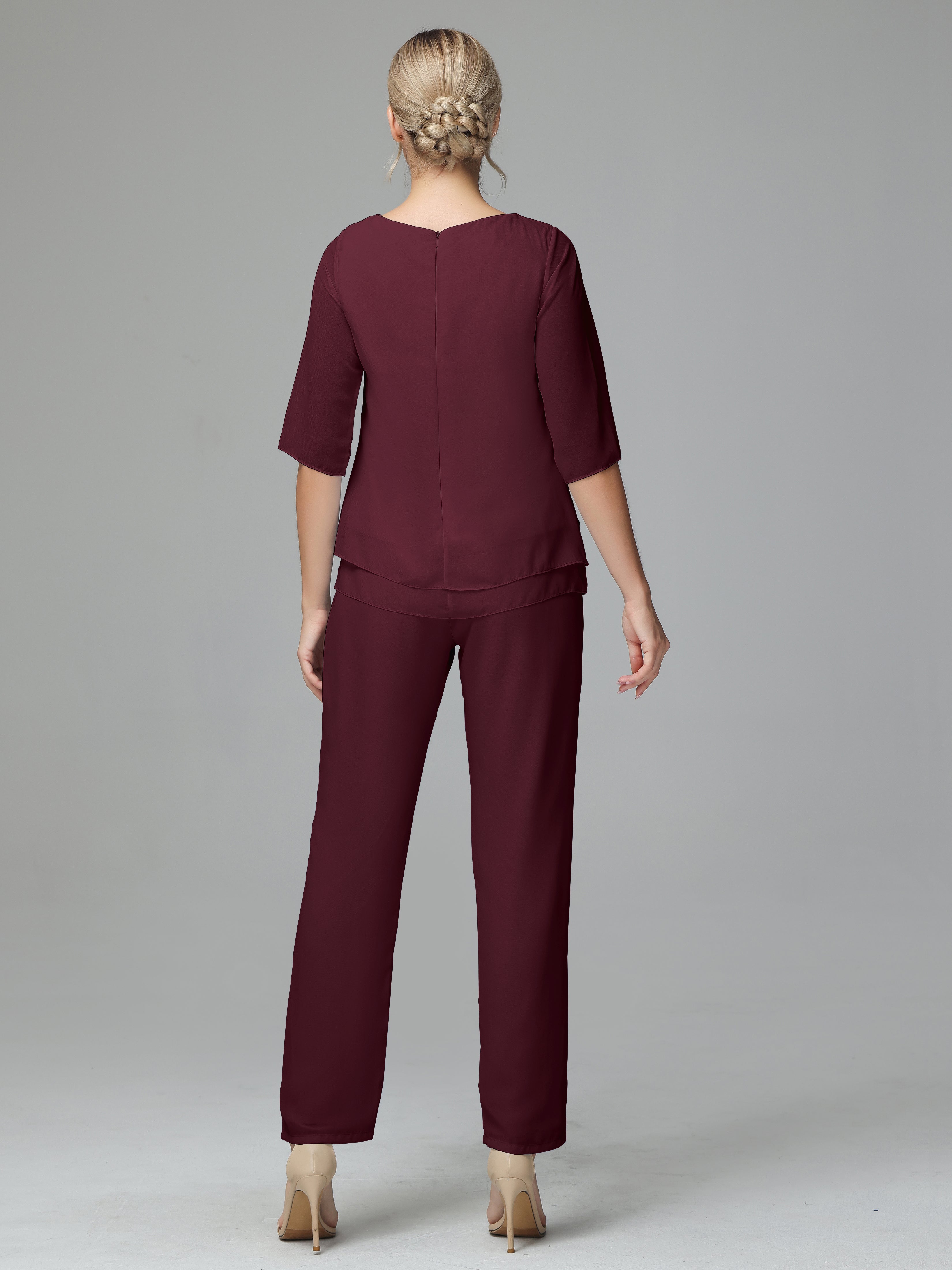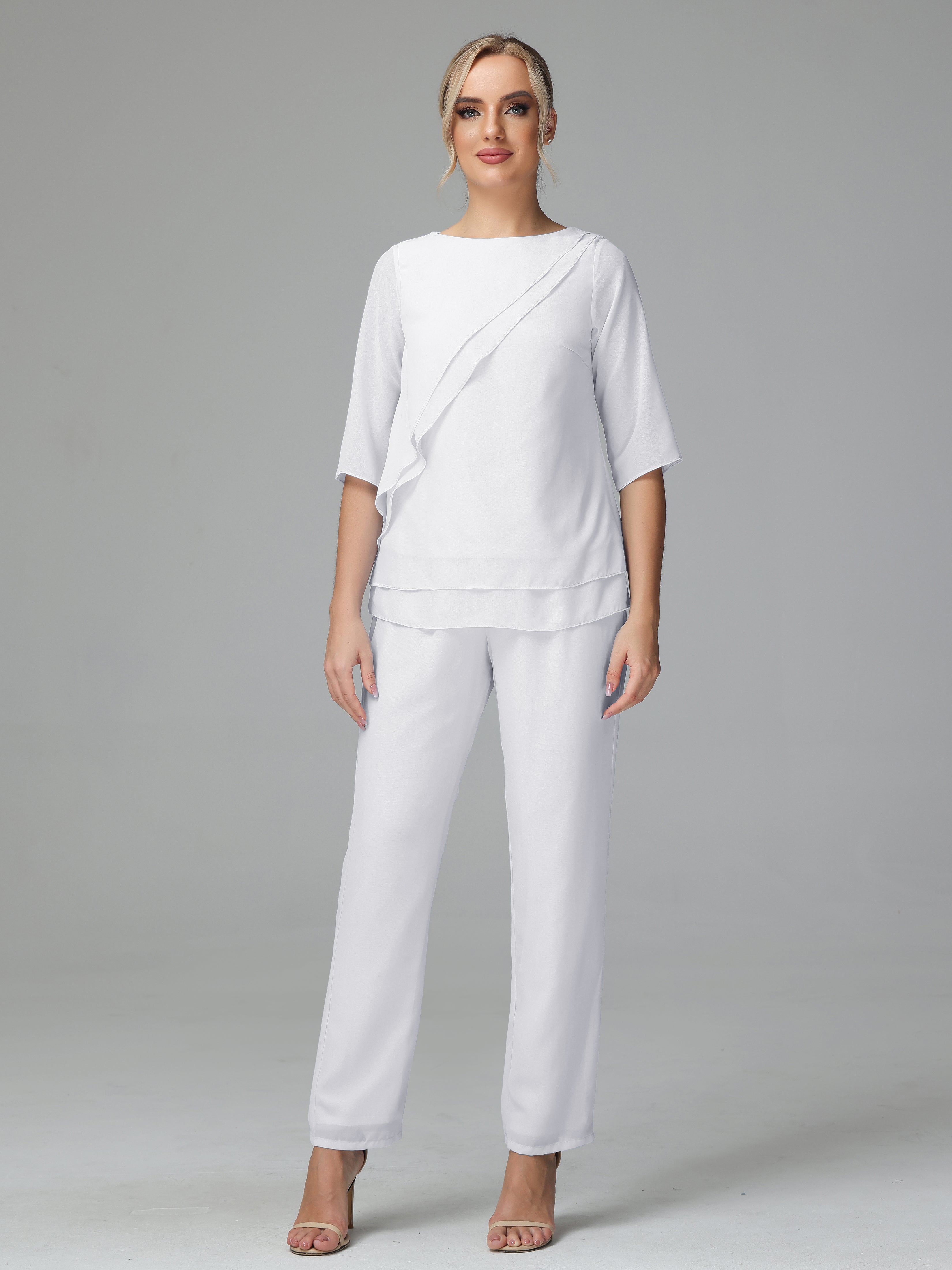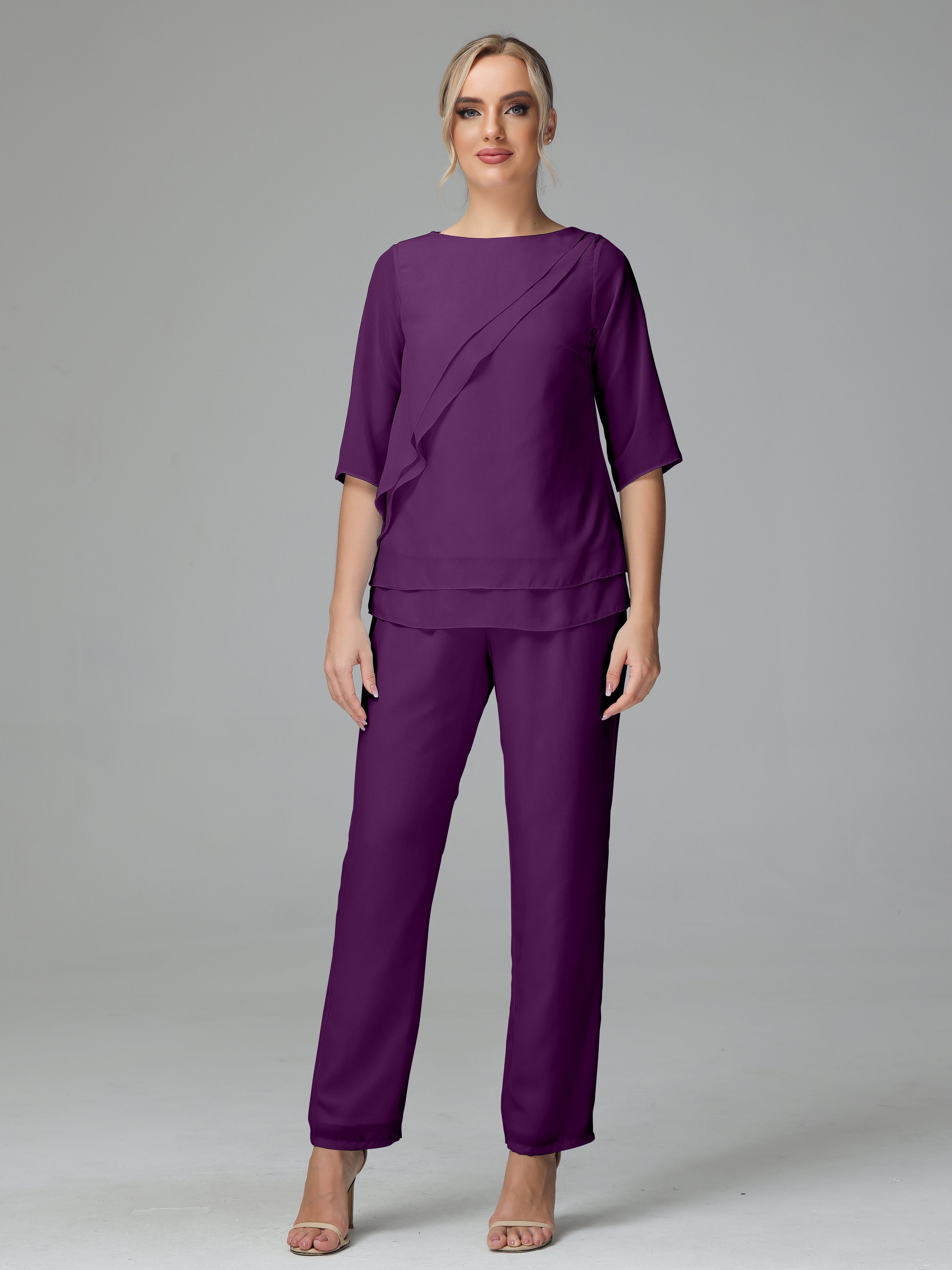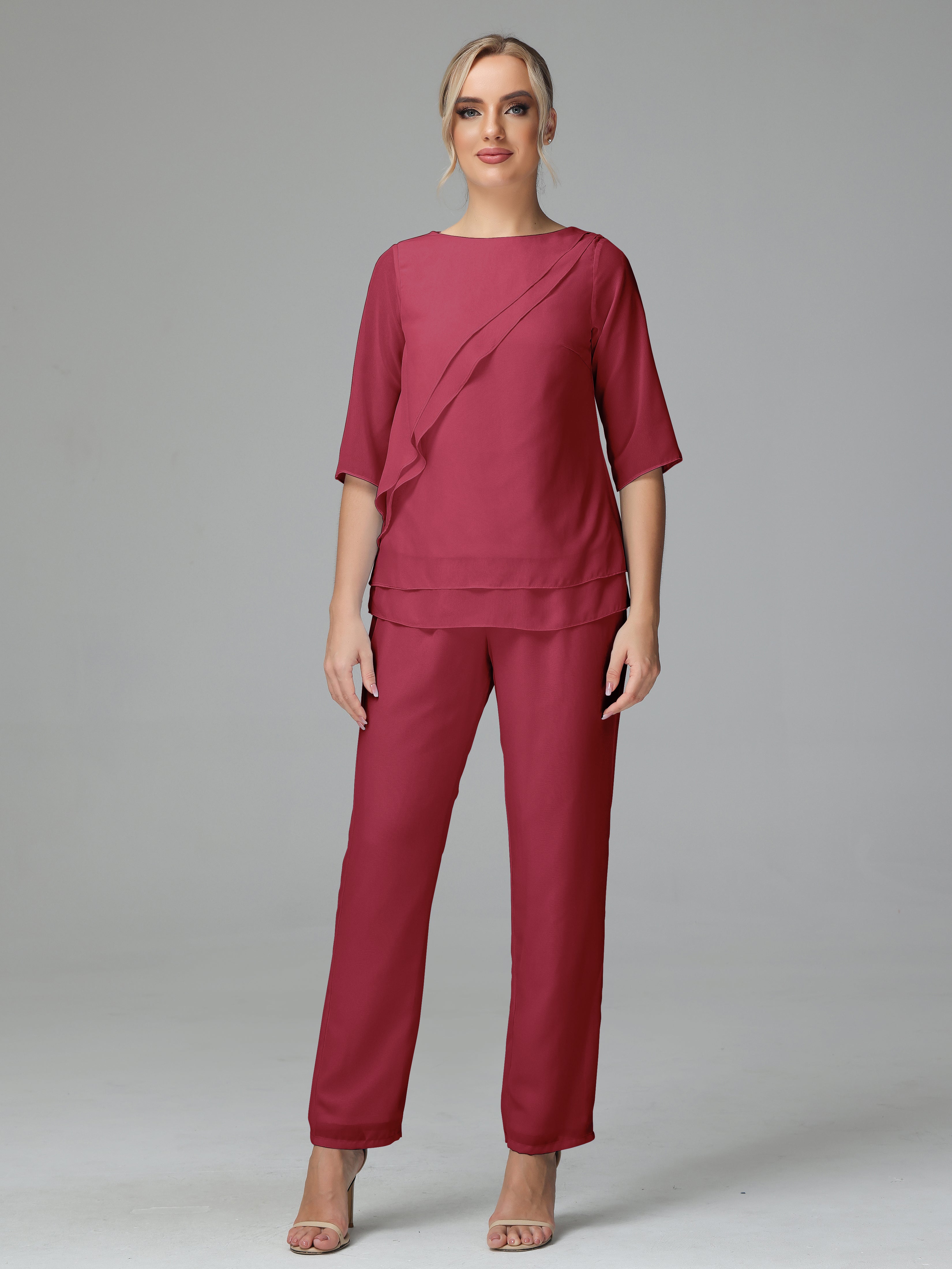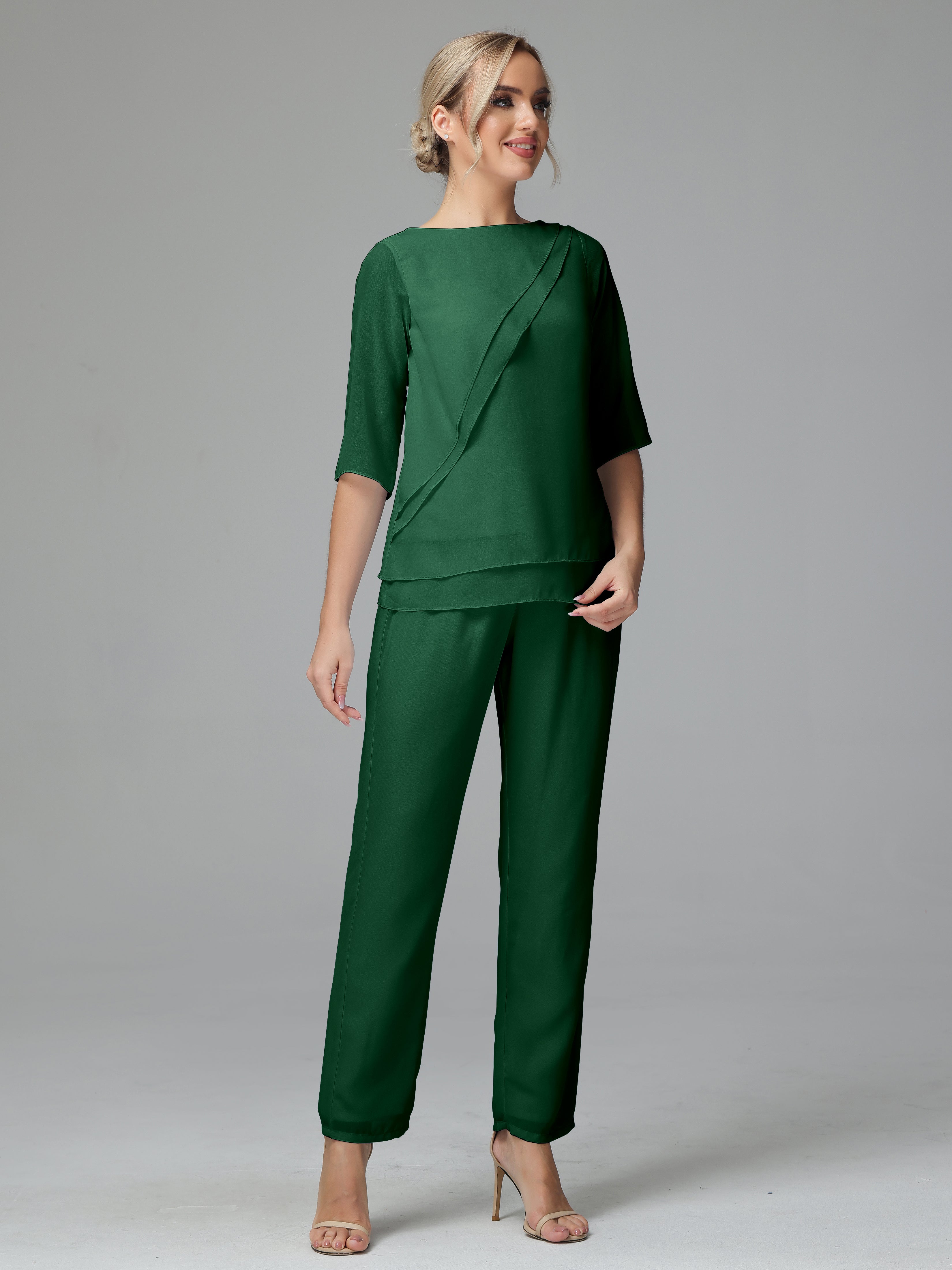 Half Sleeves 2 Pieces Mother Of The Bride Dress Pants Suits