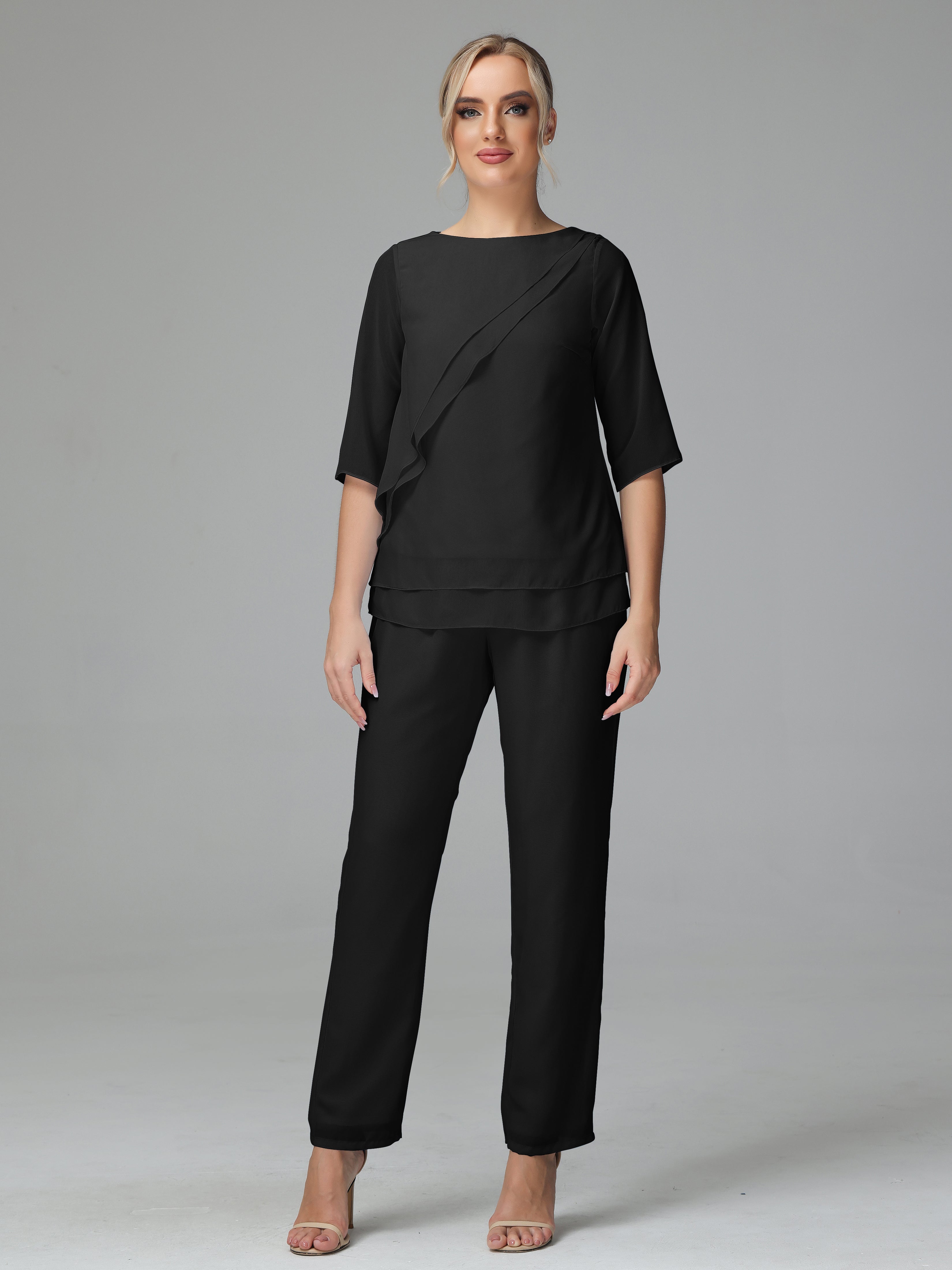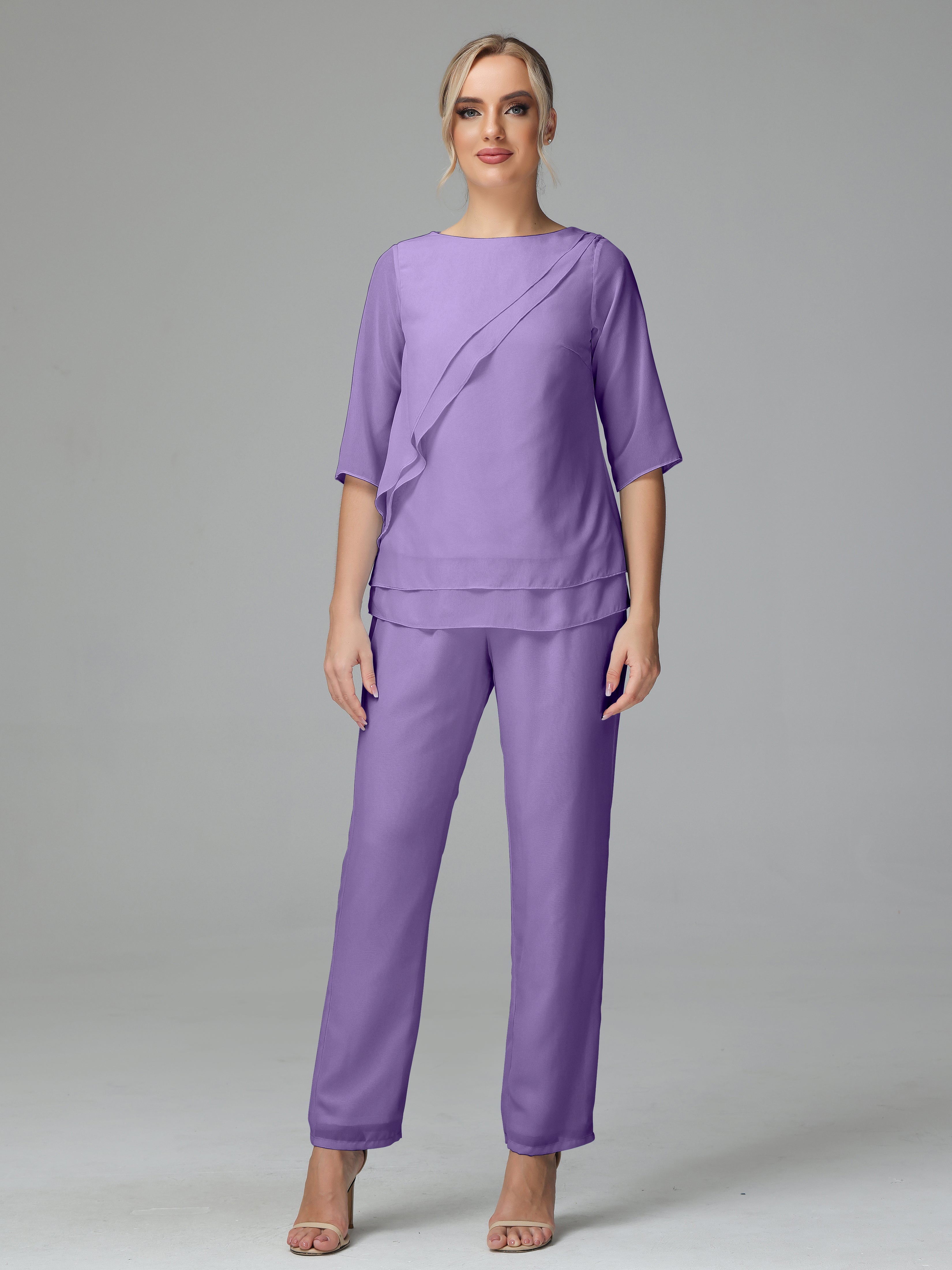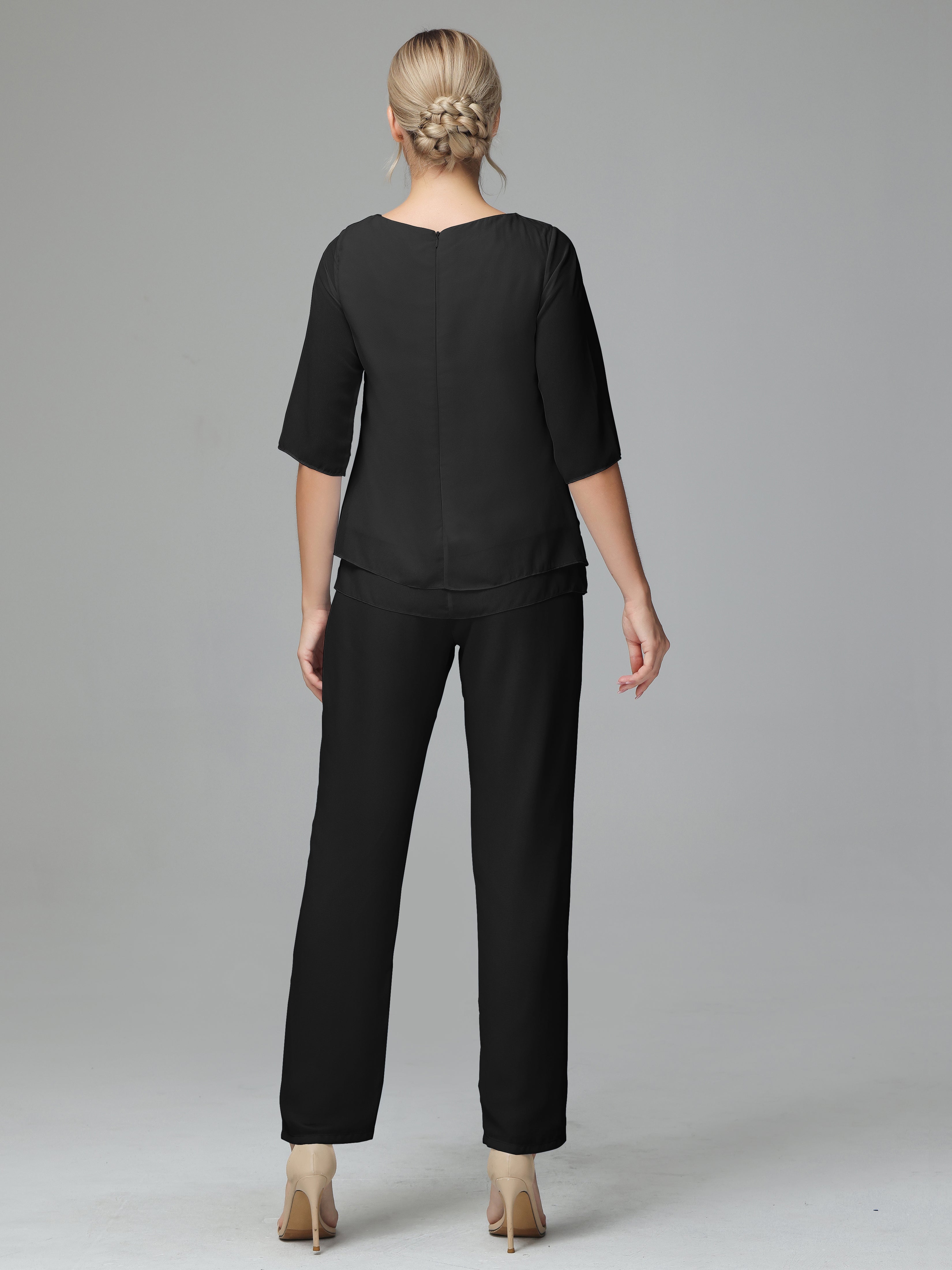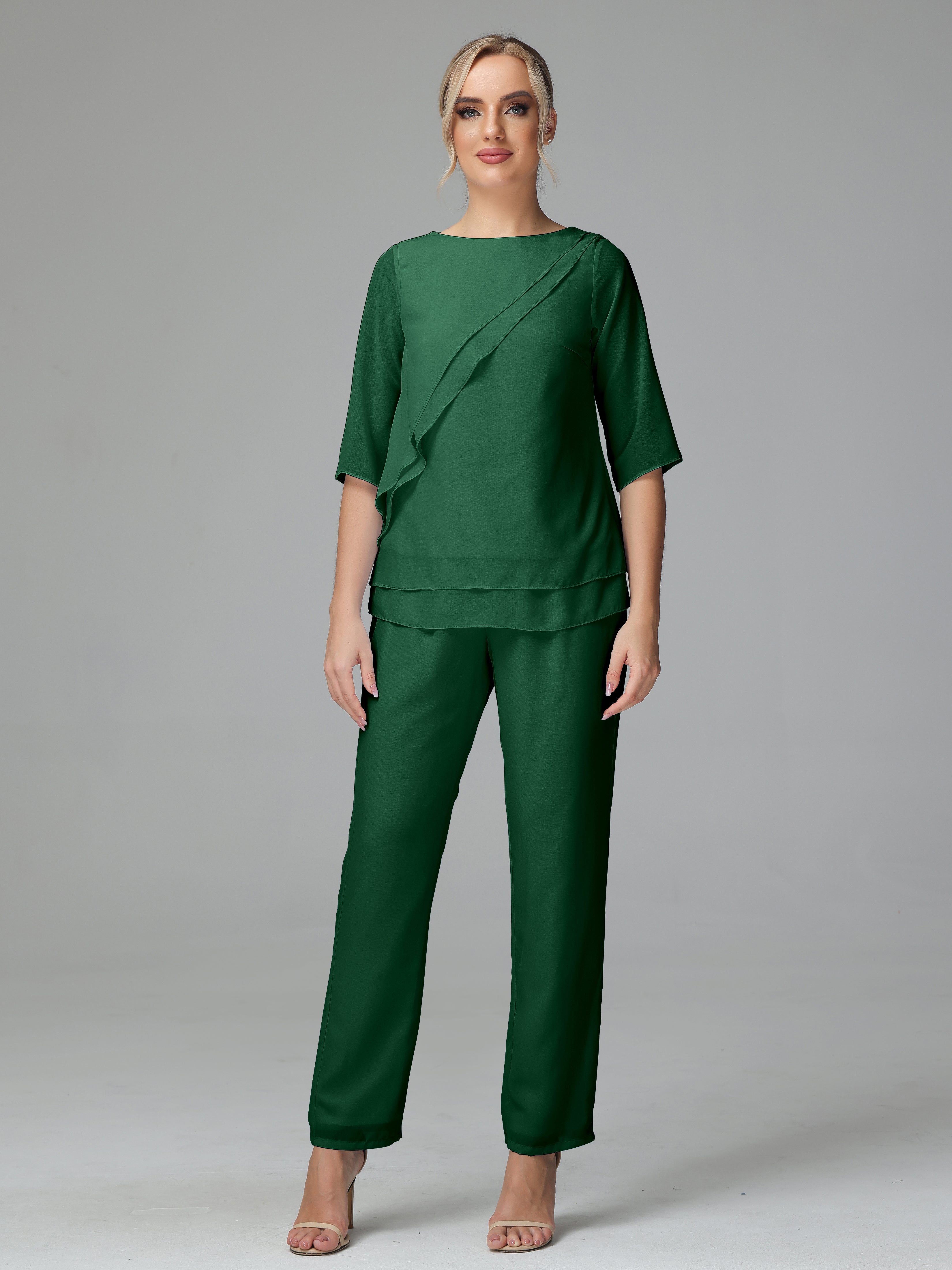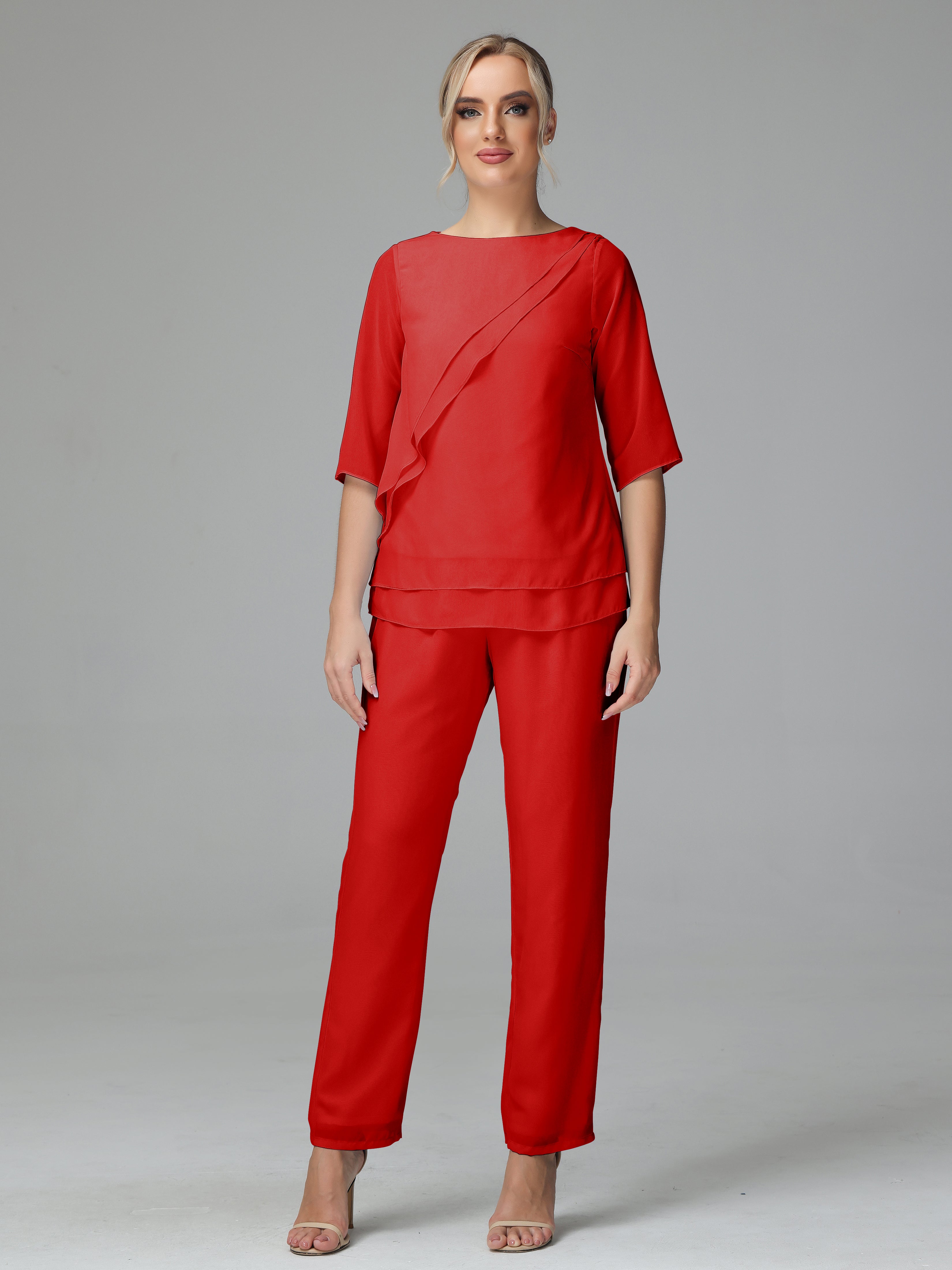 Half Sleeves 2 Pieces Mother Of The Bride Dress Pants Suits