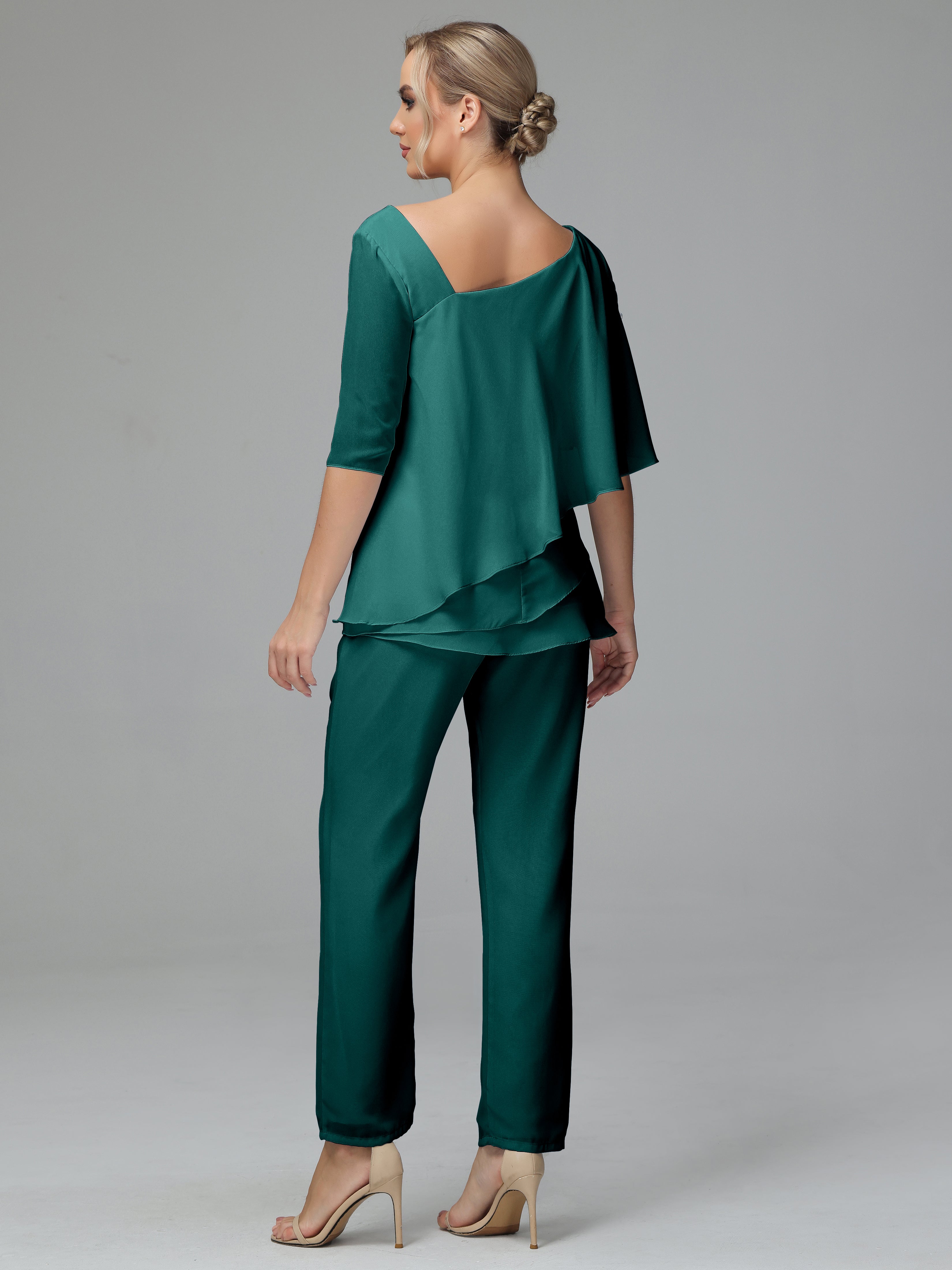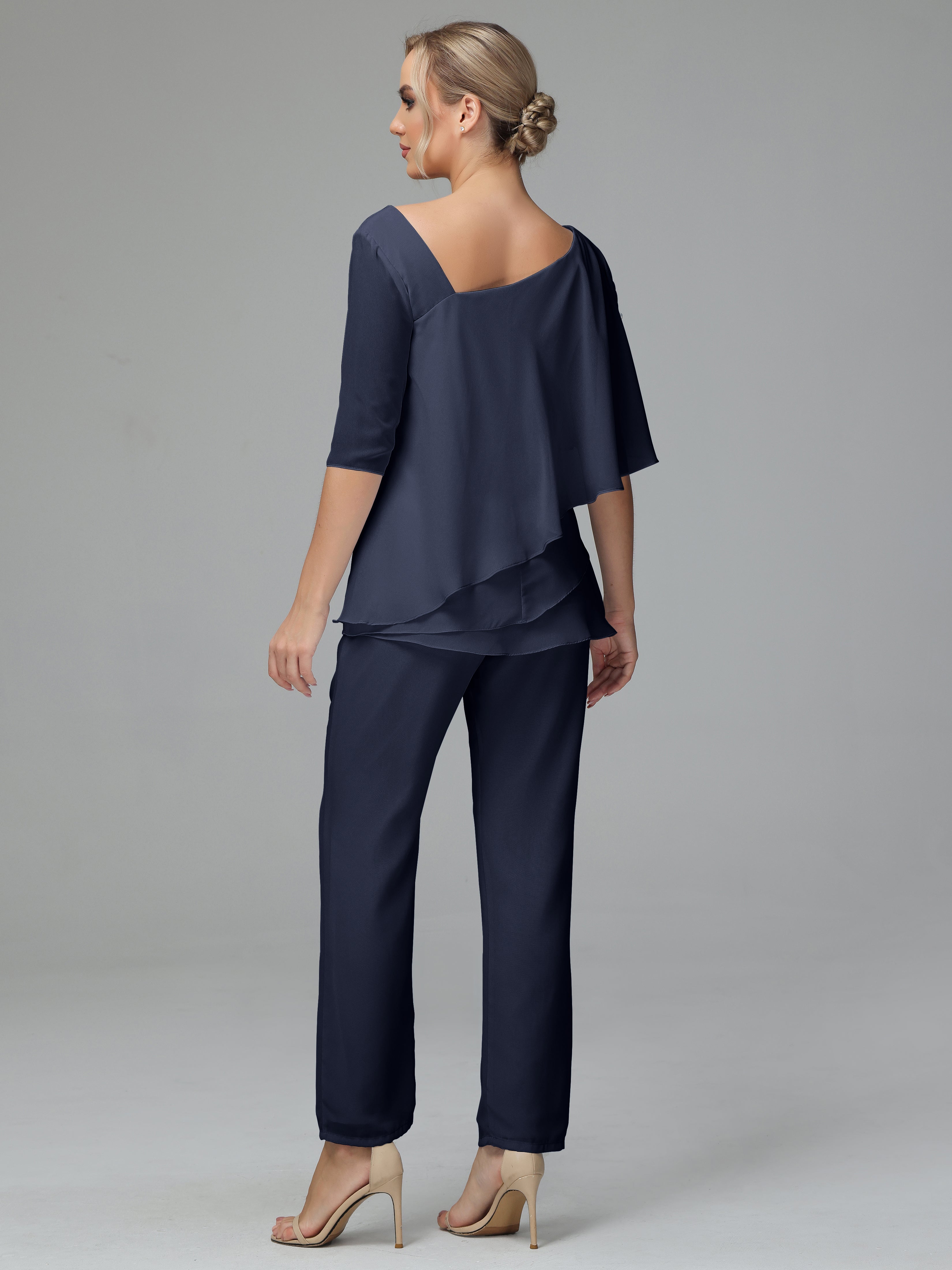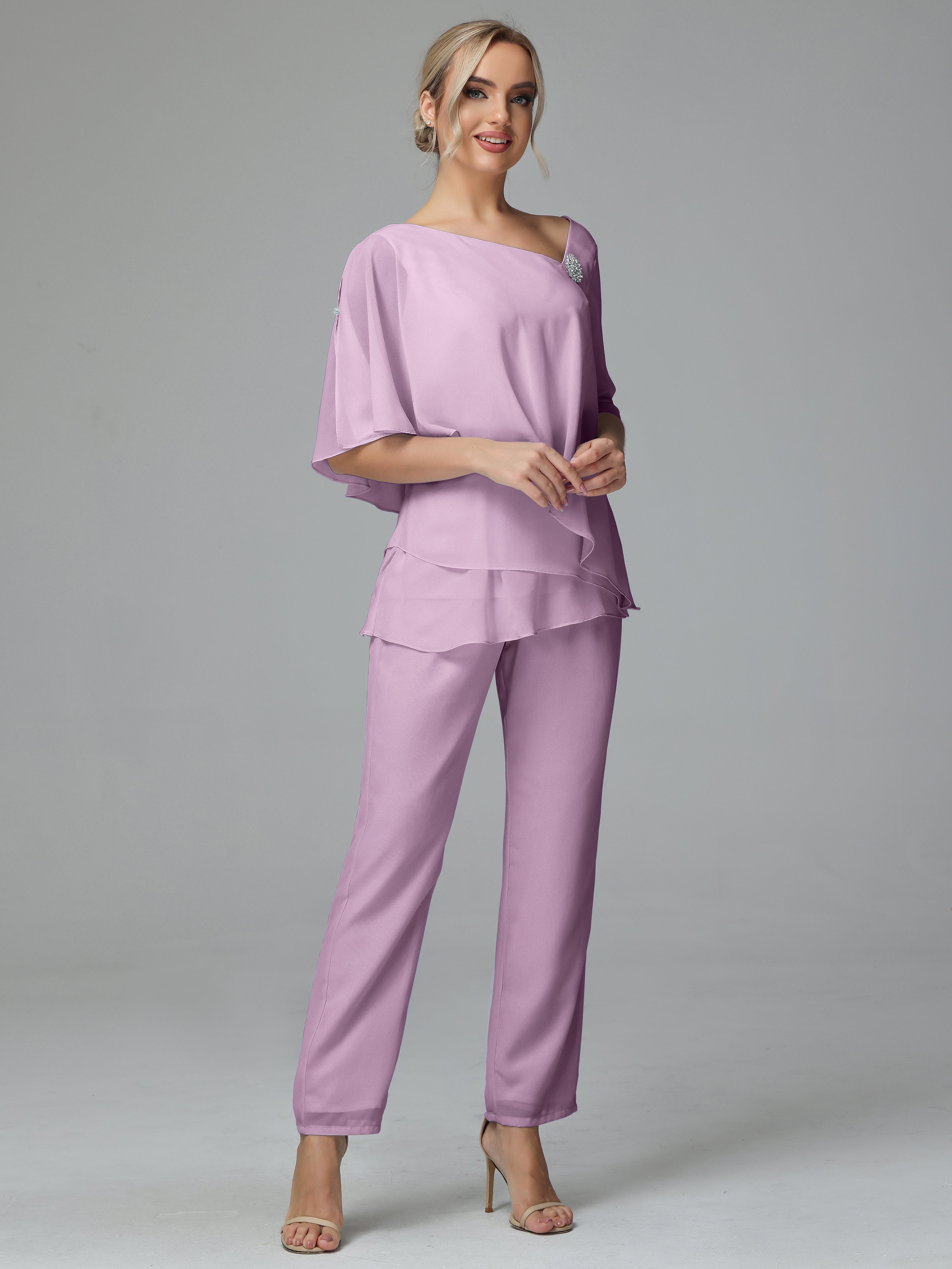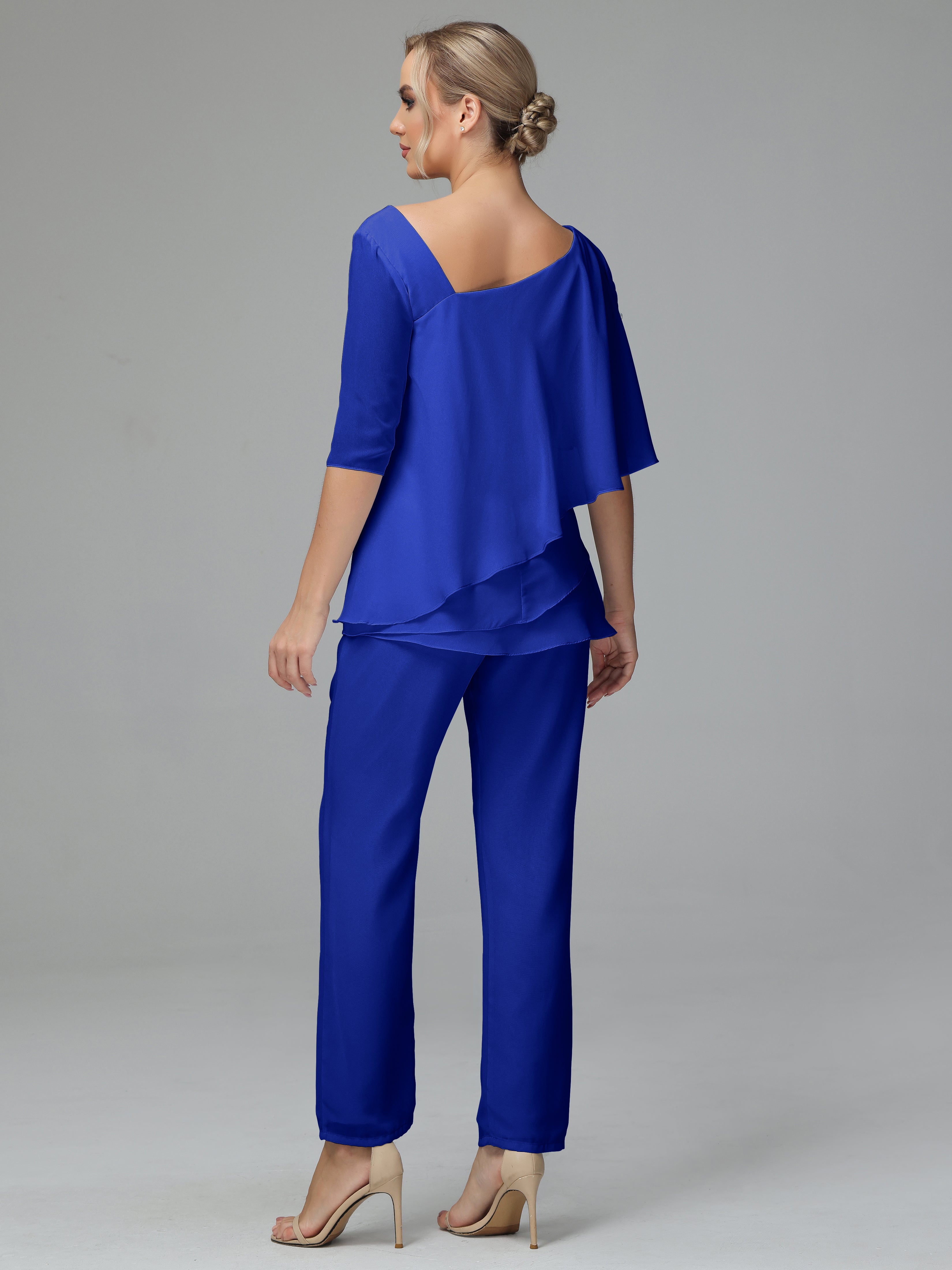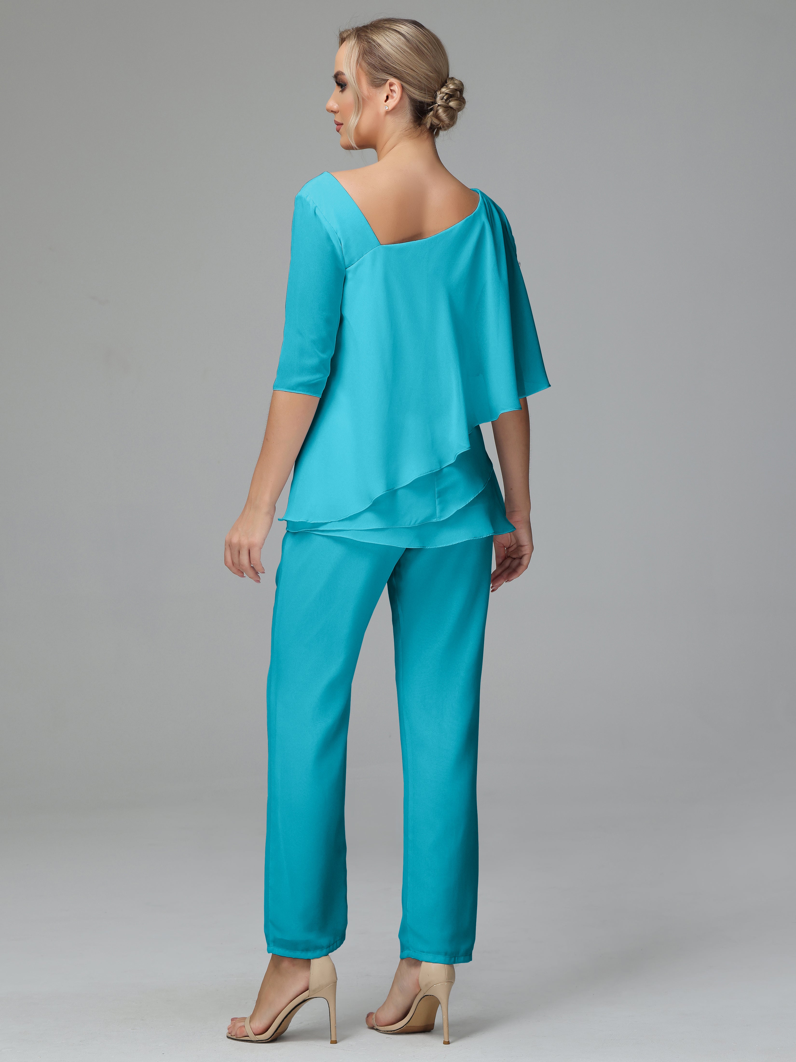 Half Sleeves Chiffon Mother of the Bride Dress Pant Suits With Beading