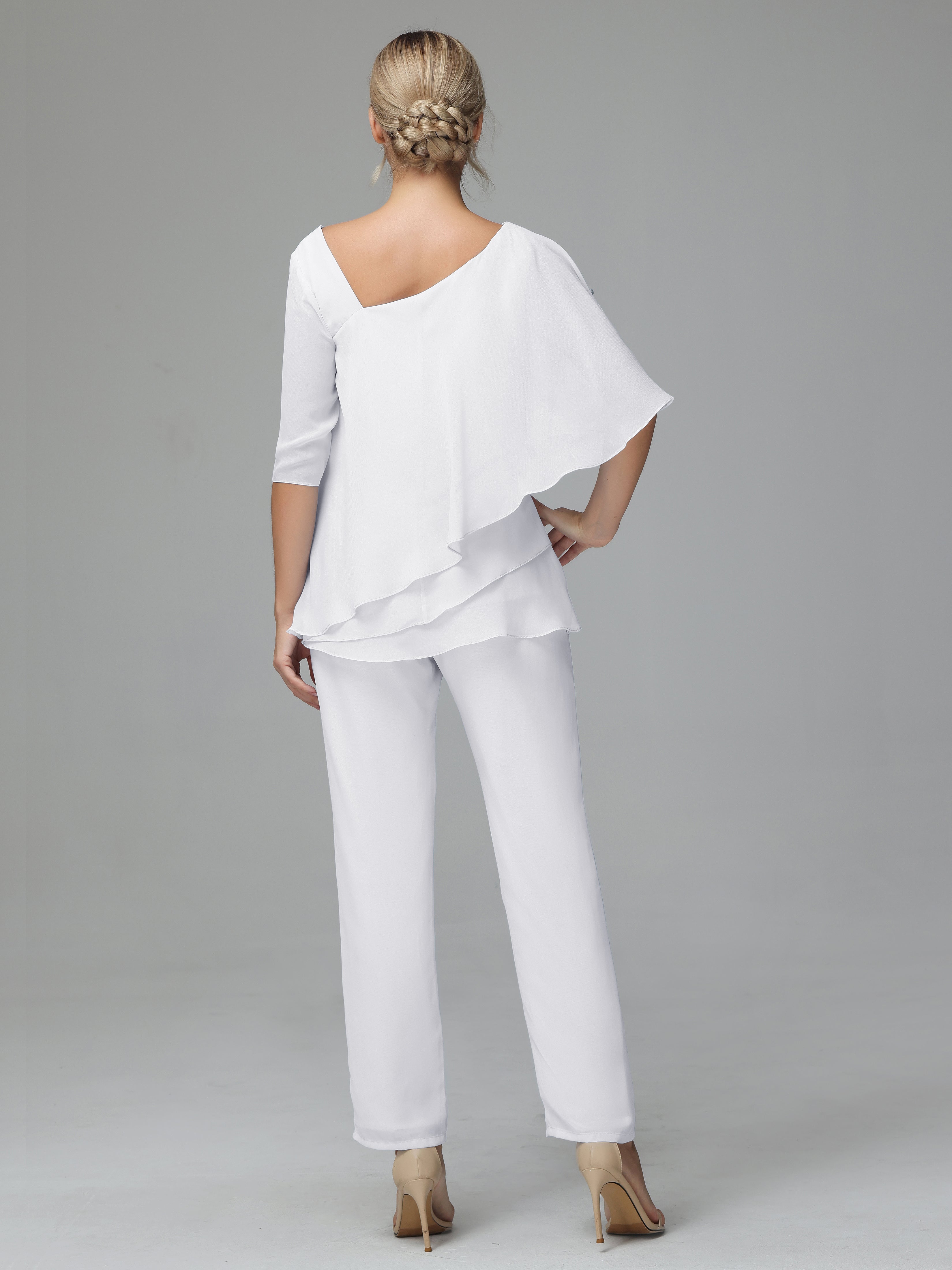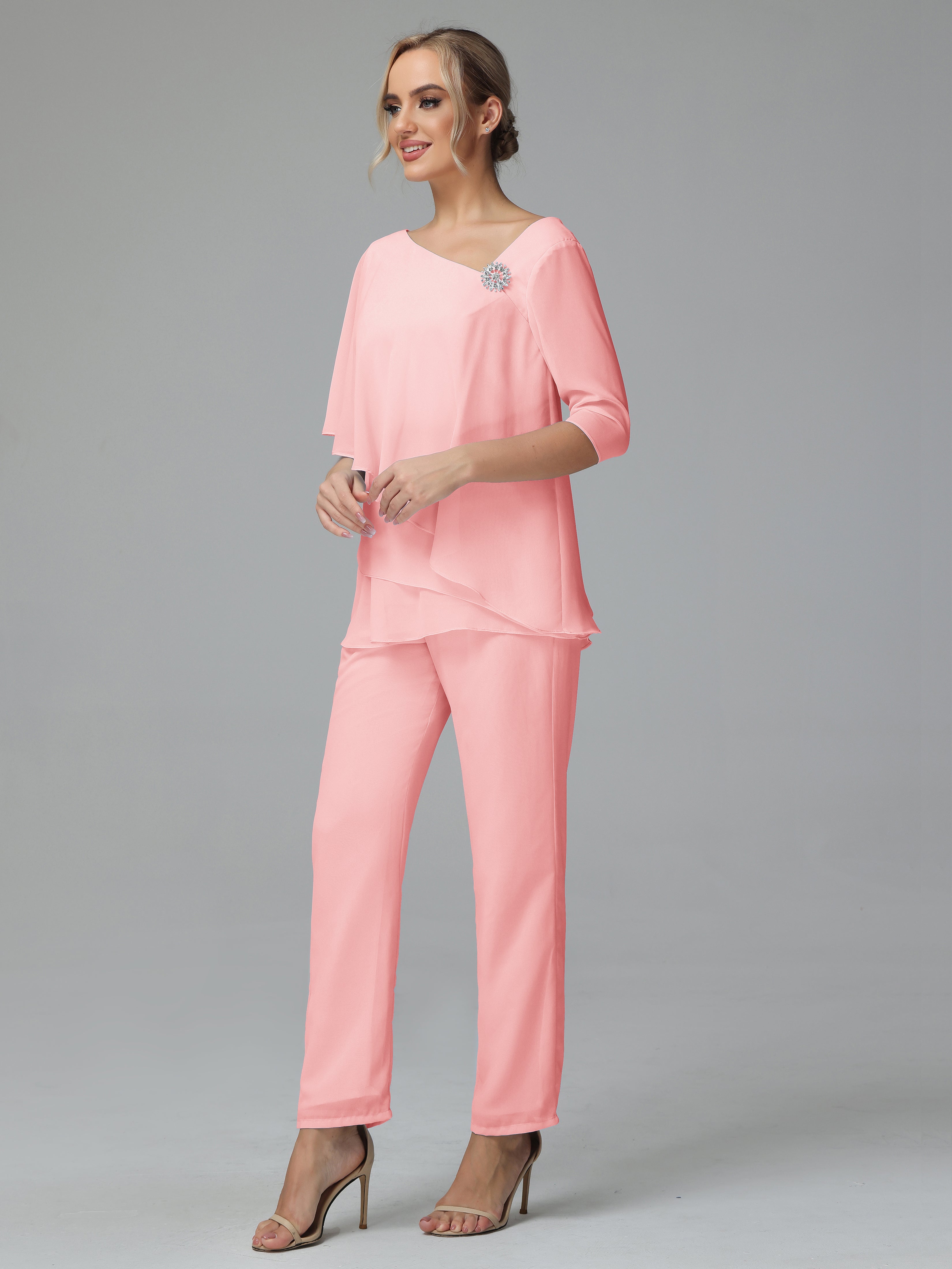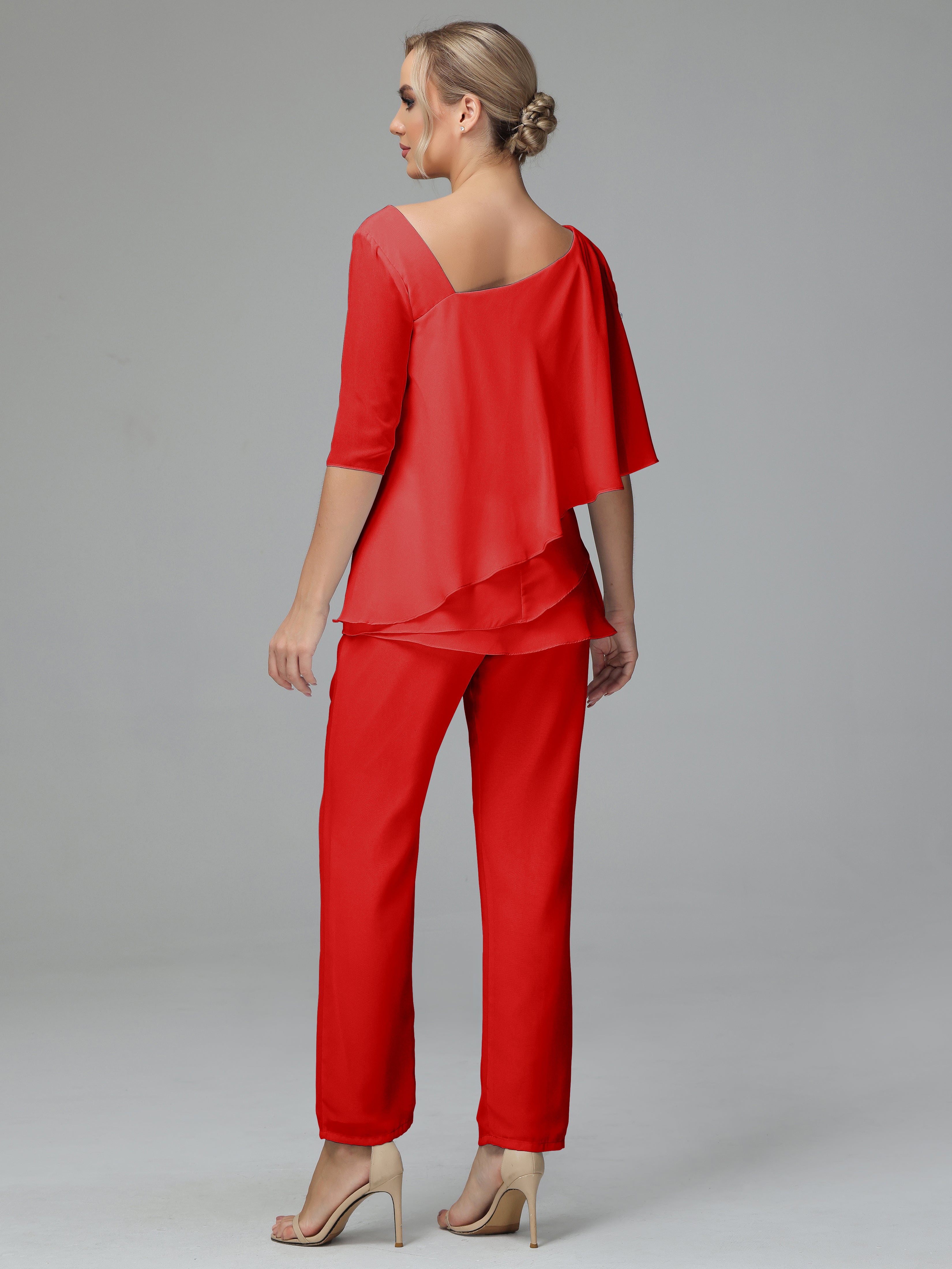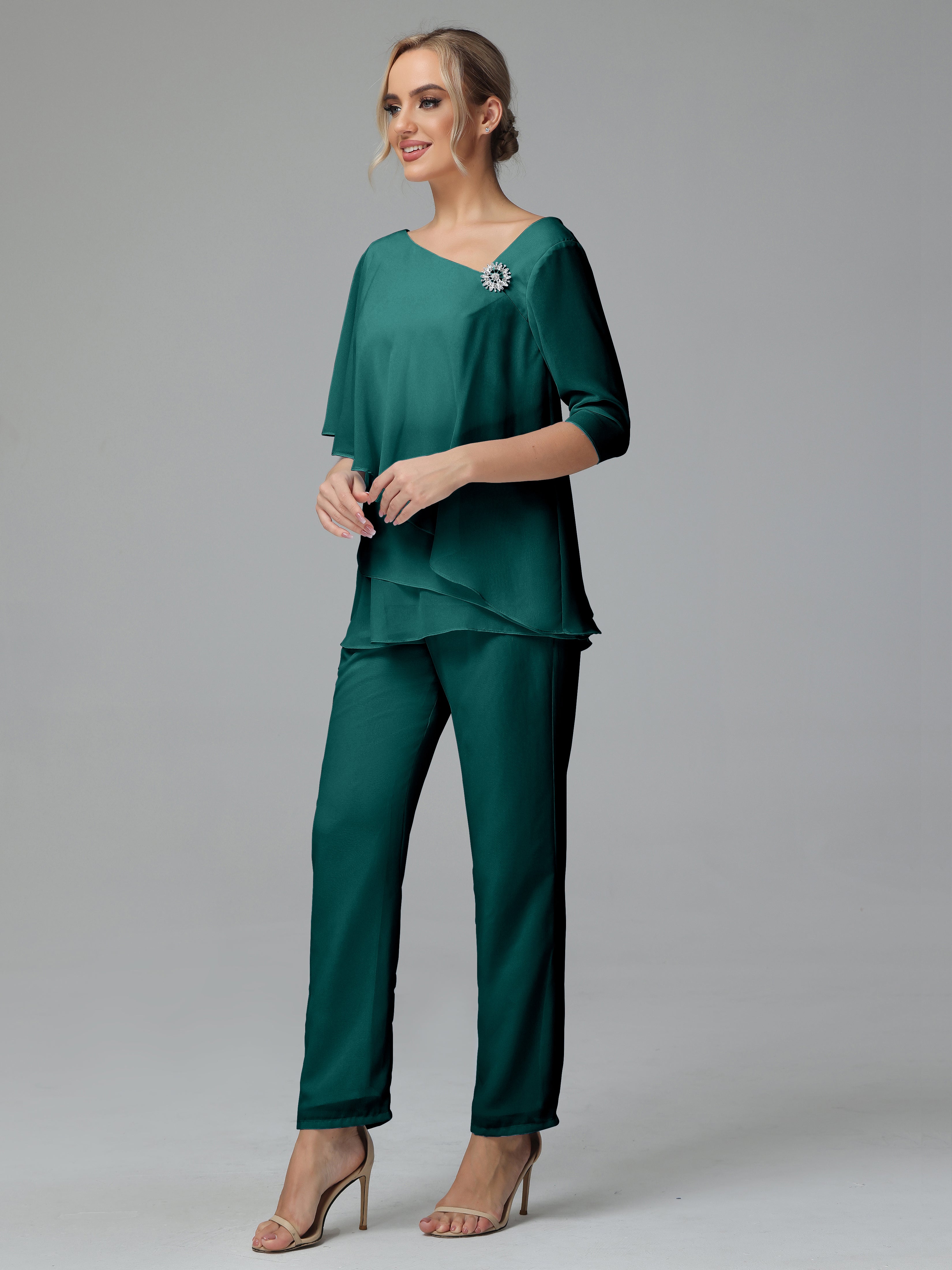 Half Sleeves Chiffon Mother of the Bride Dress Pant Suits With Beading