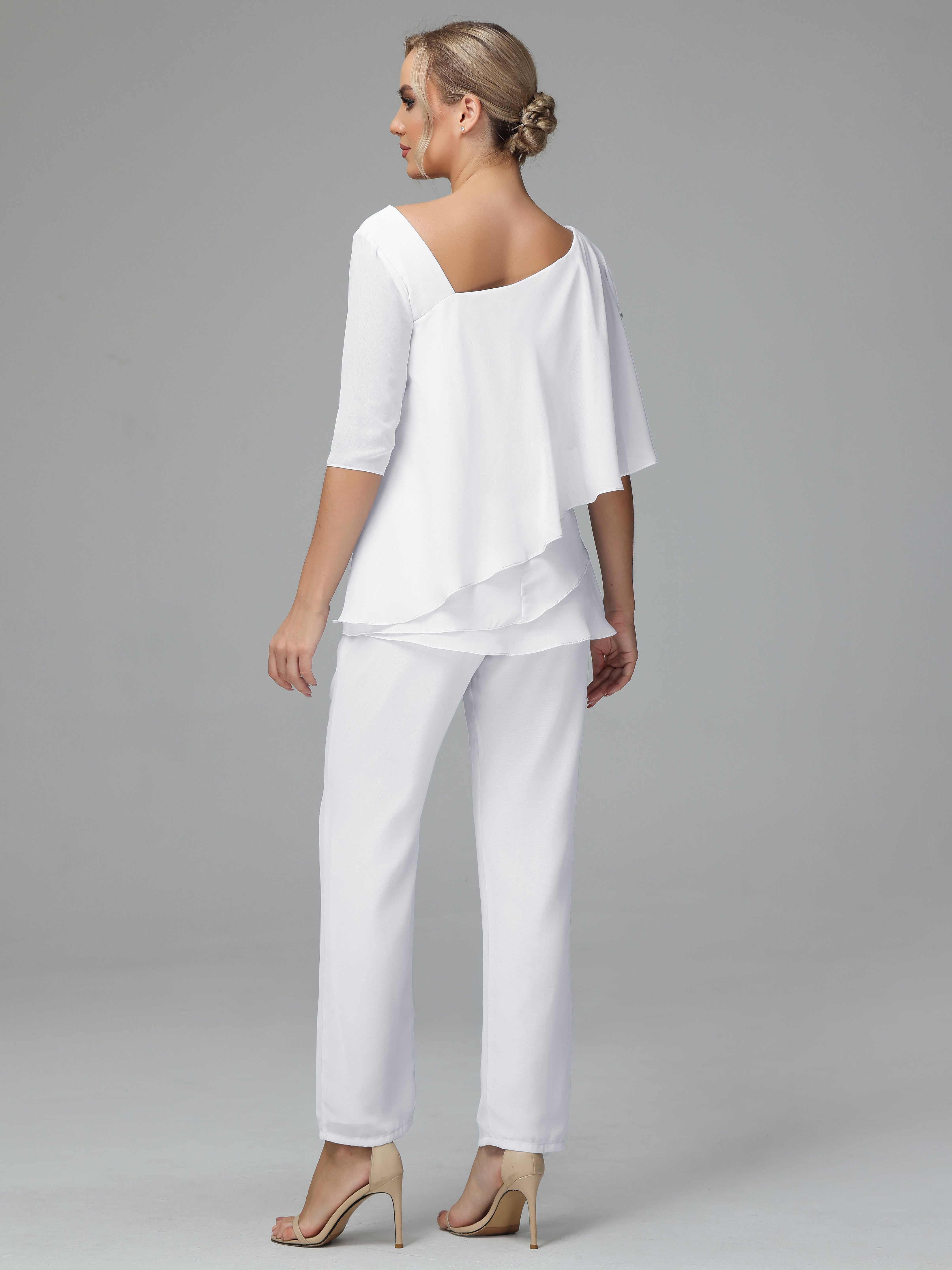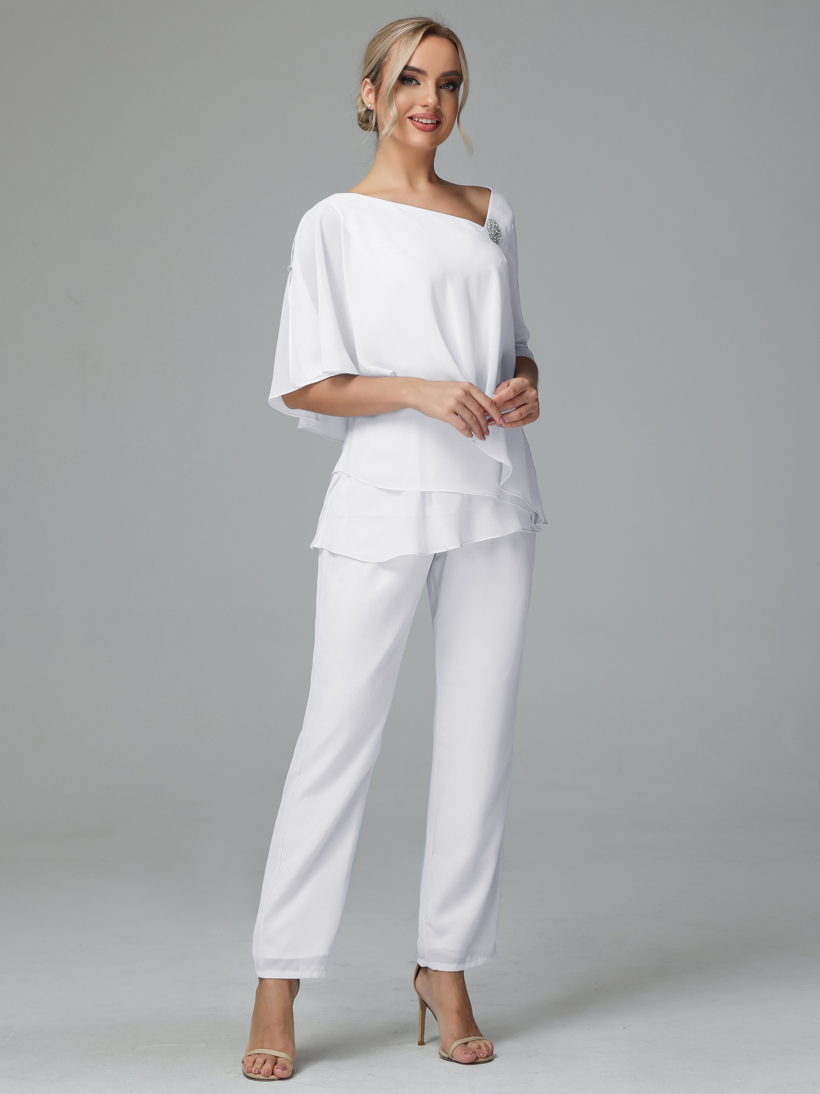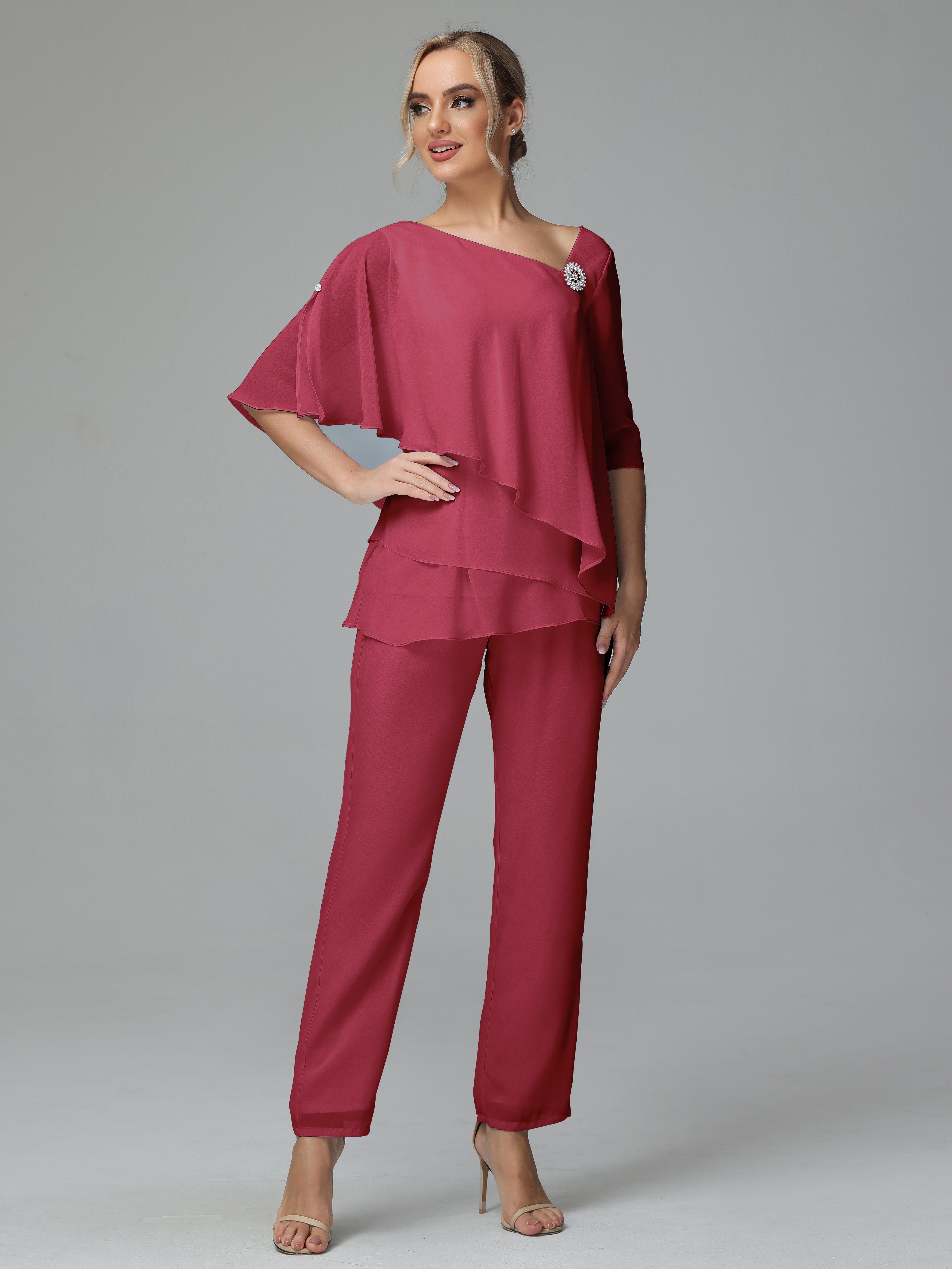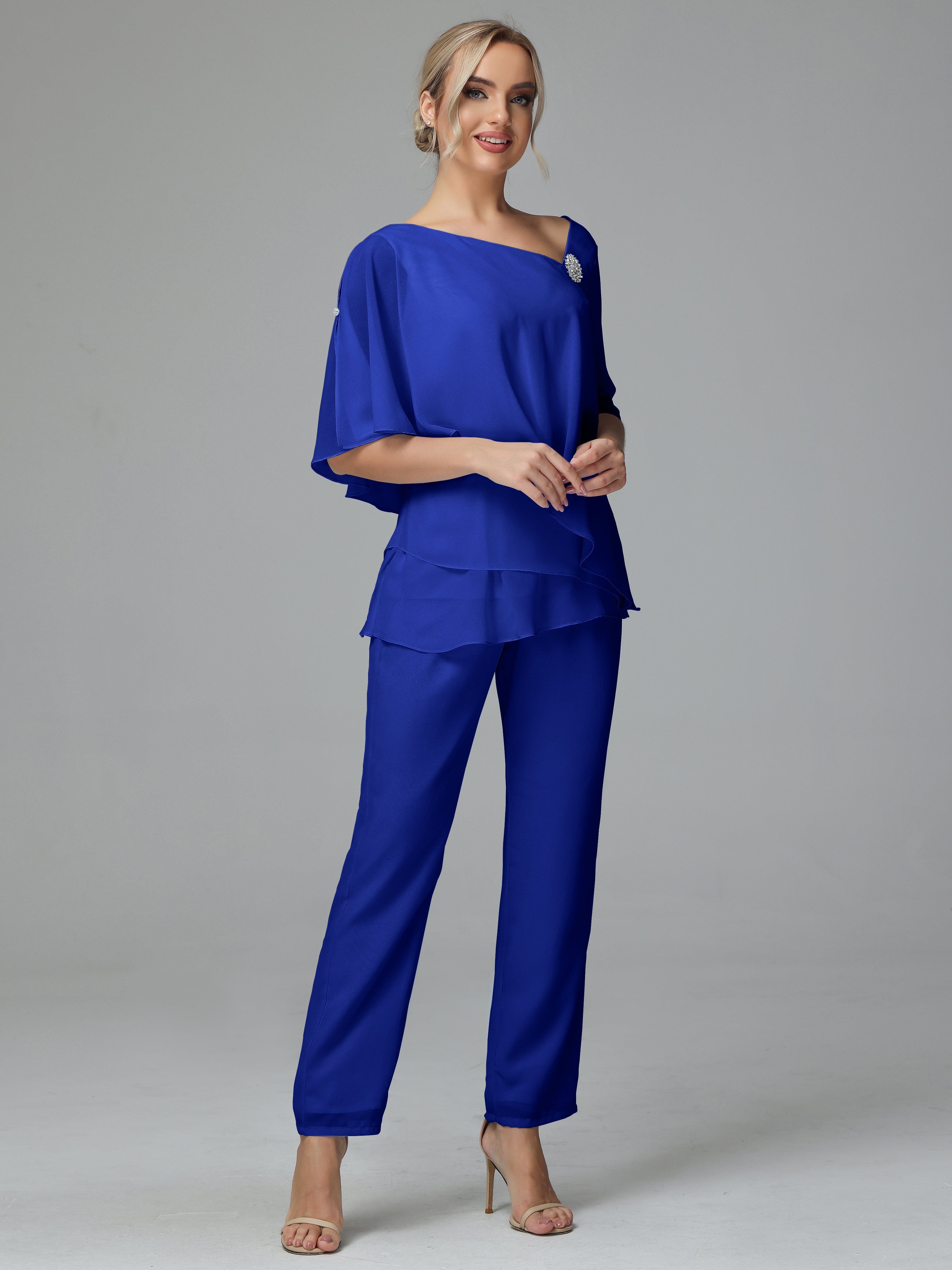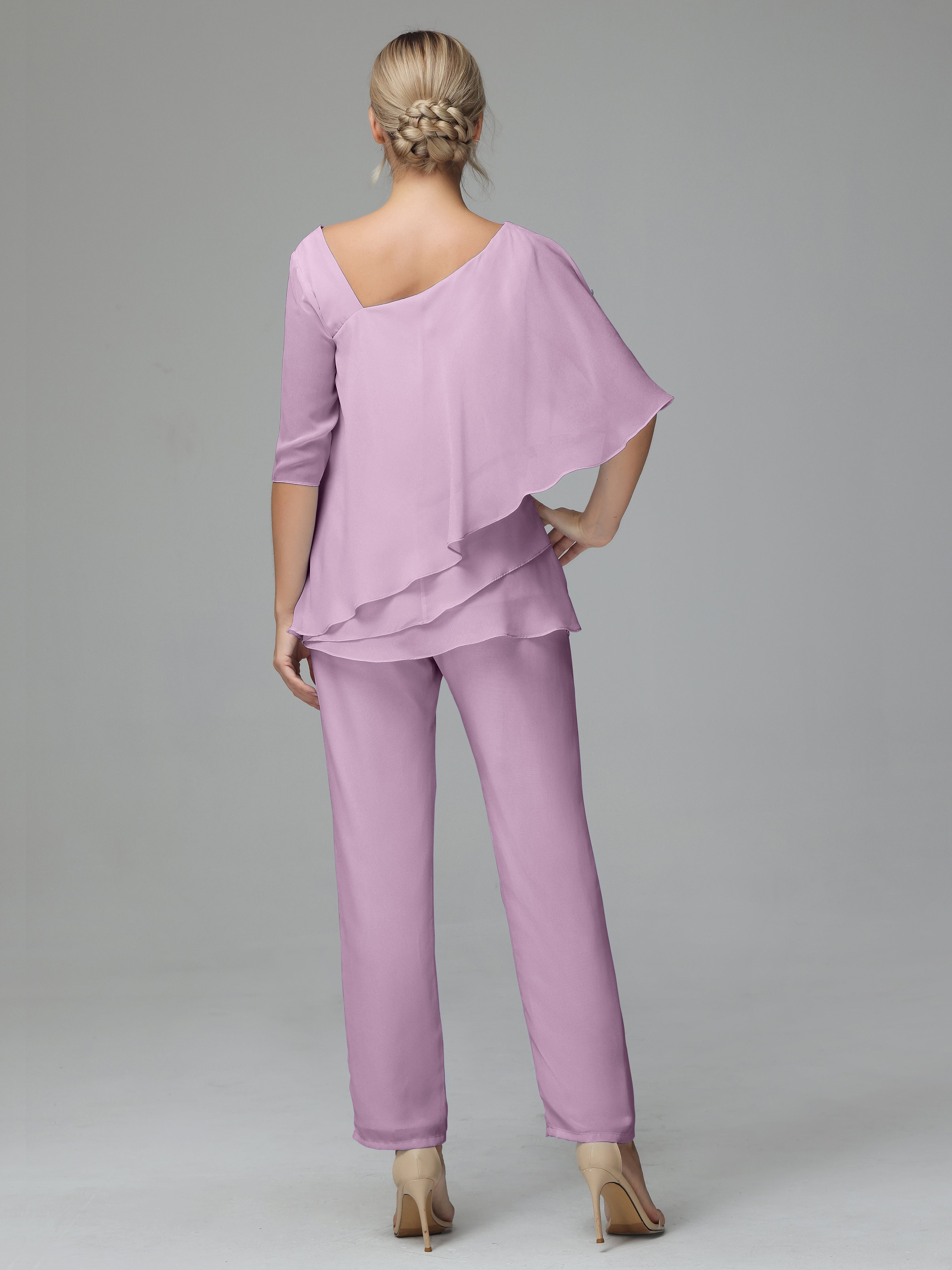 Half Sleeves Chiffon Mother of the Bride Dress Pant Suits With Beading