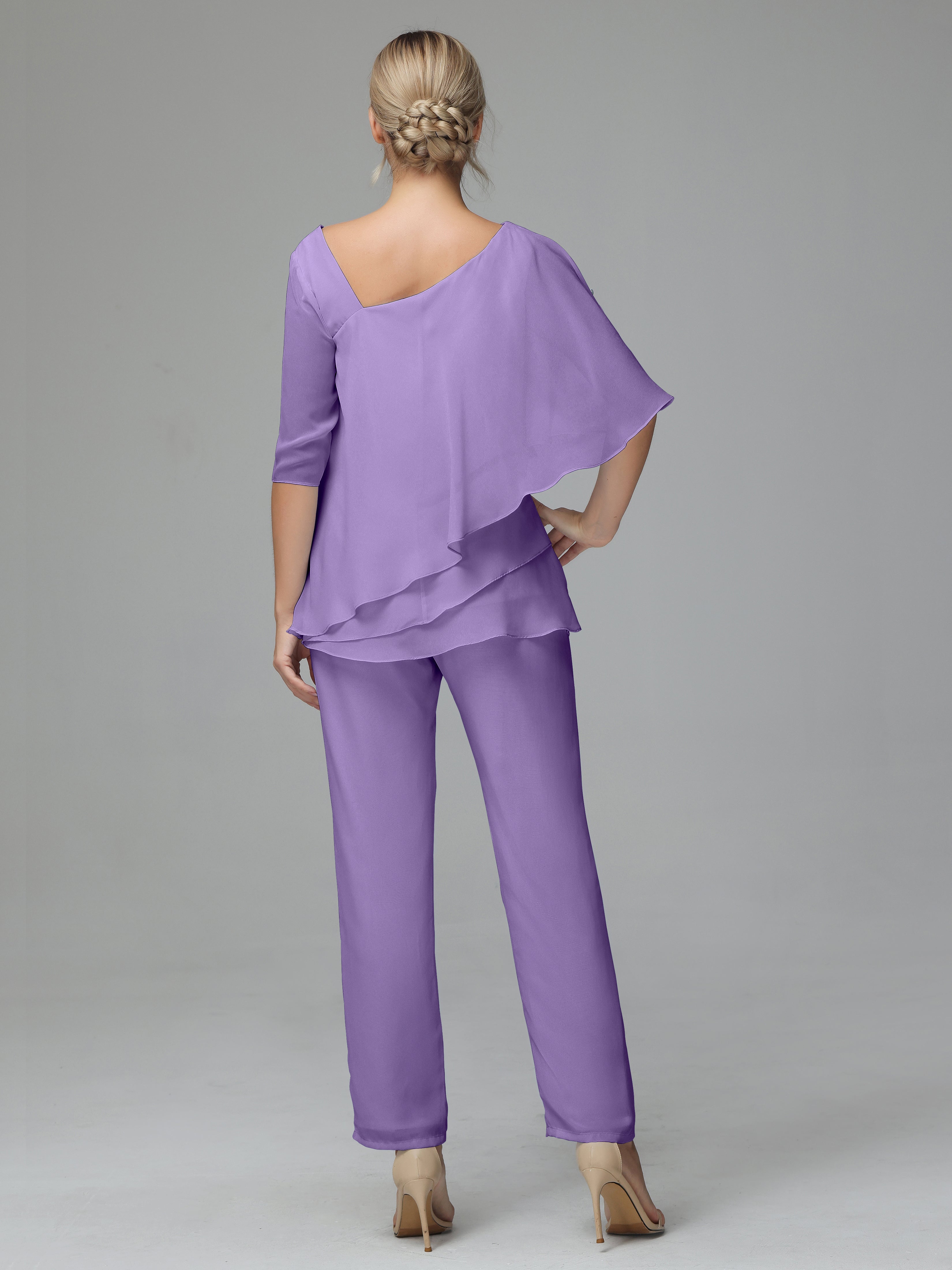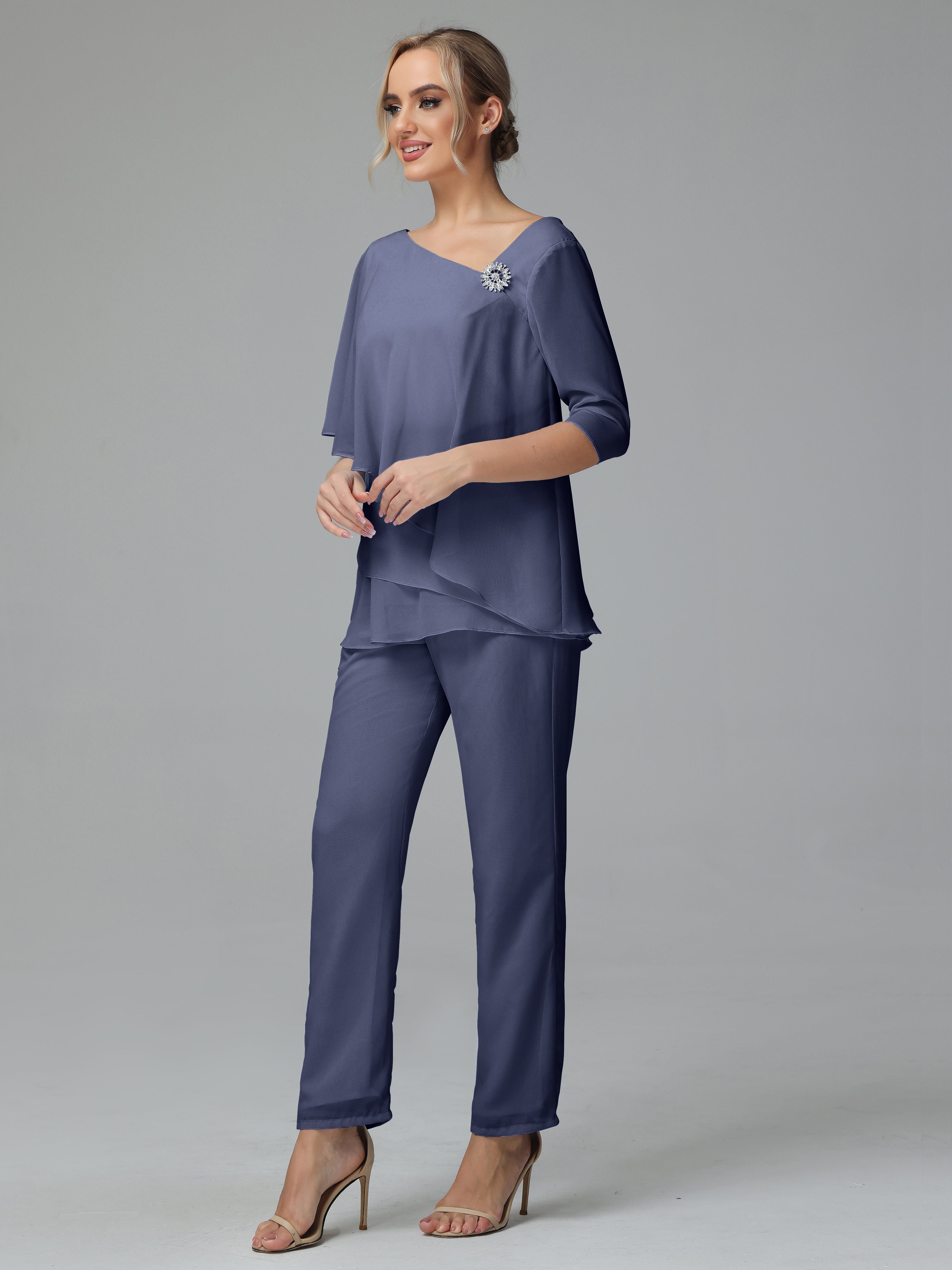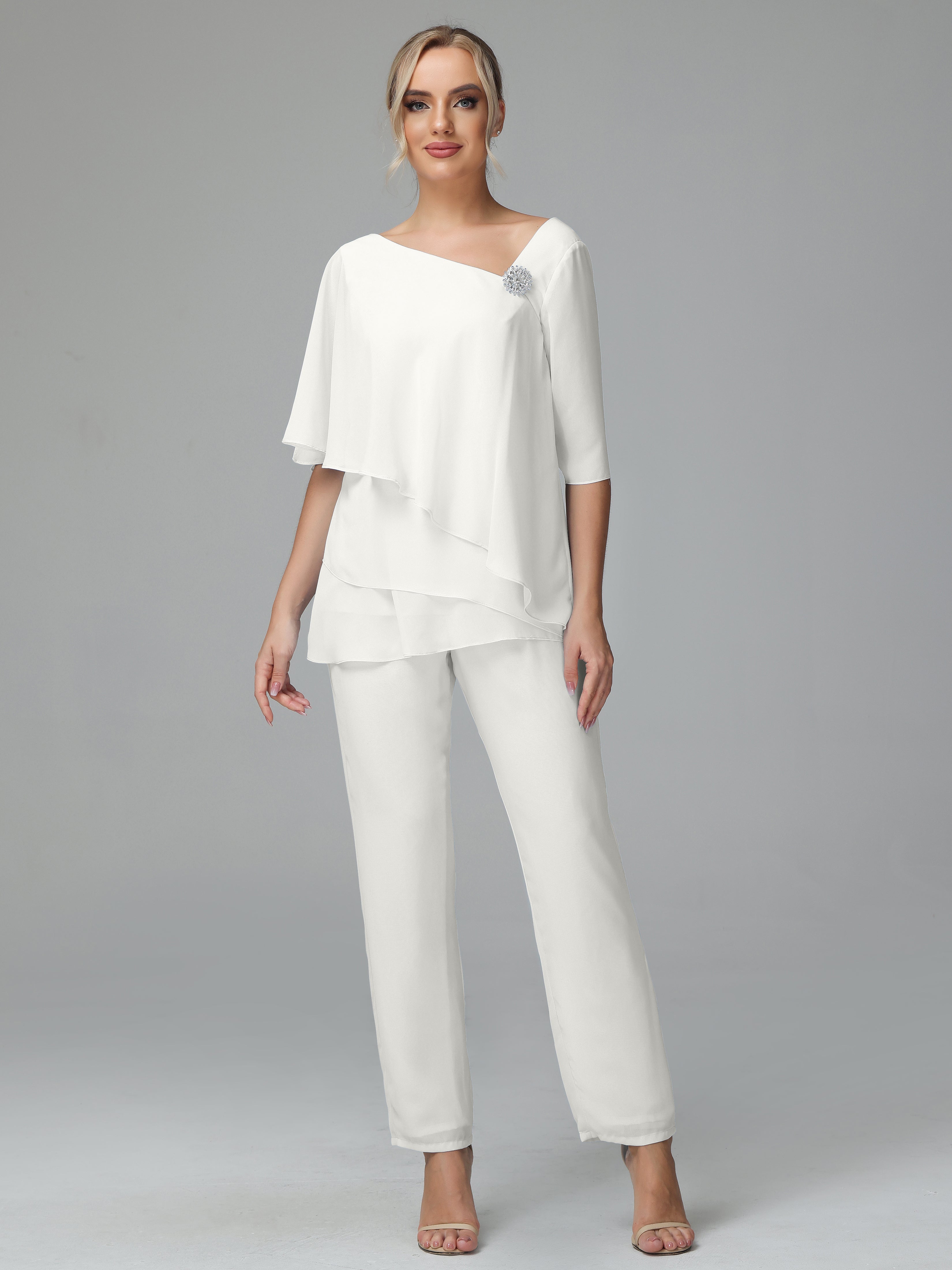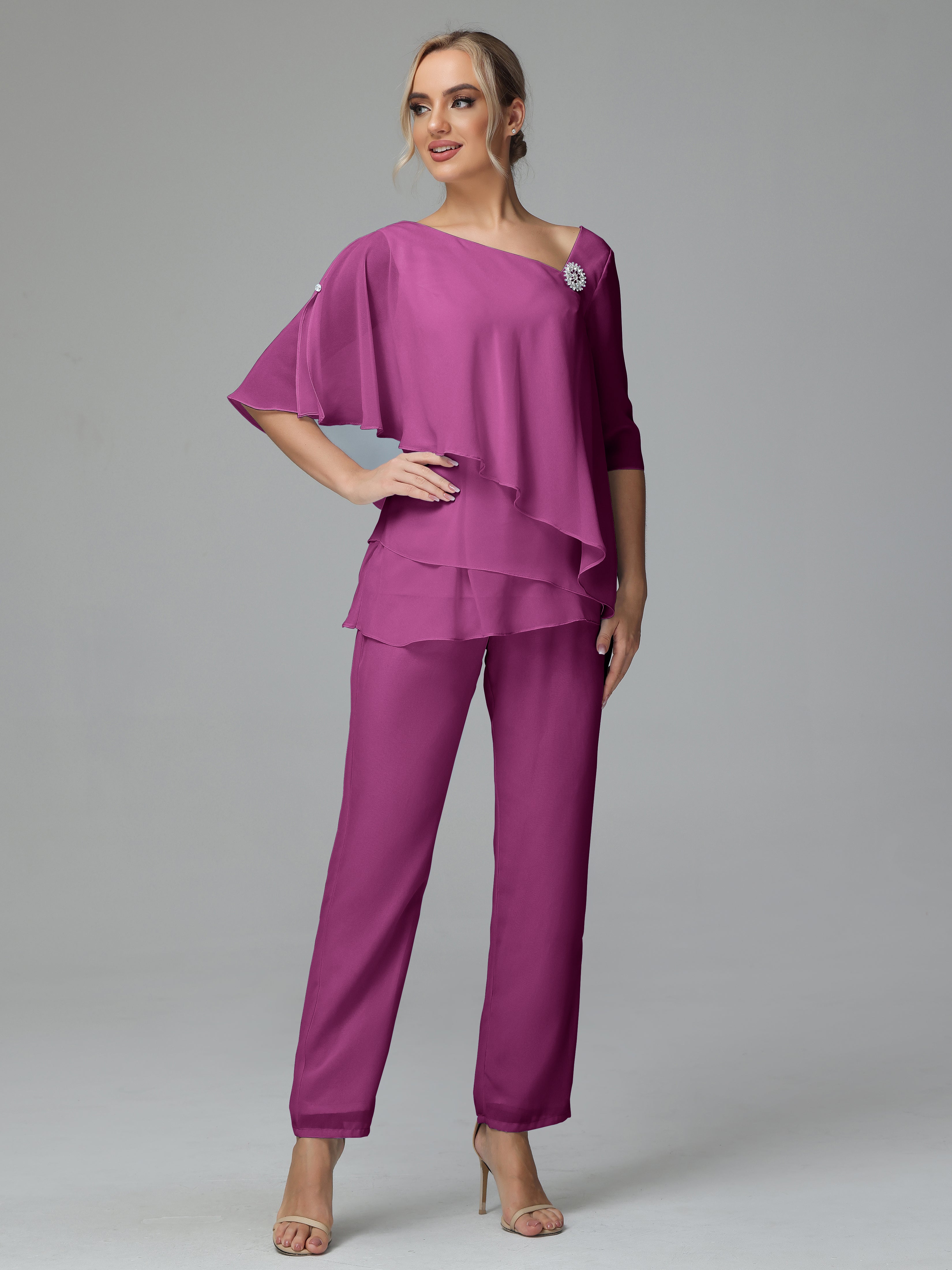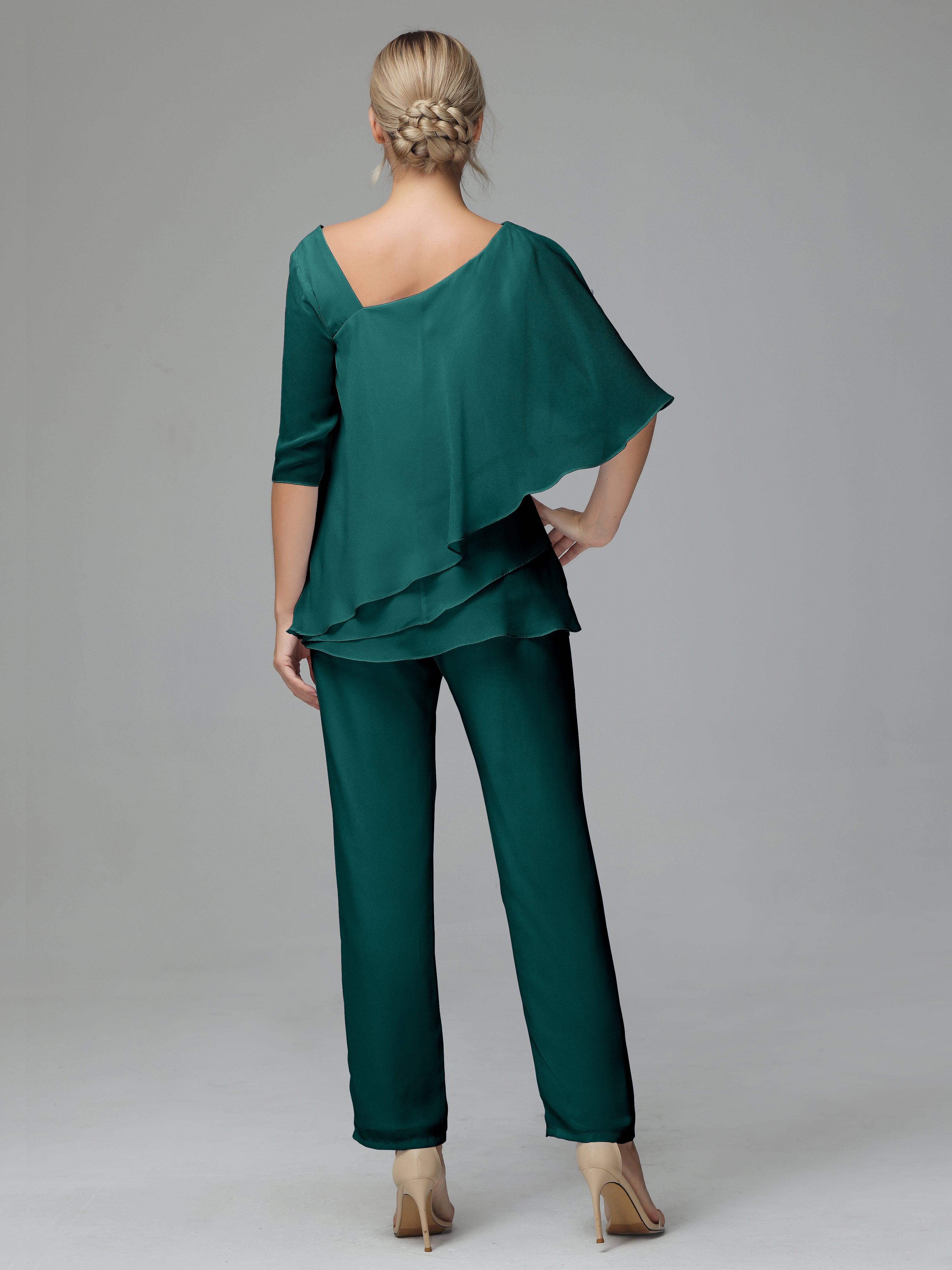 Half Sleeves Chiffon Mother of the Bride Dress Pant Suits With Beading