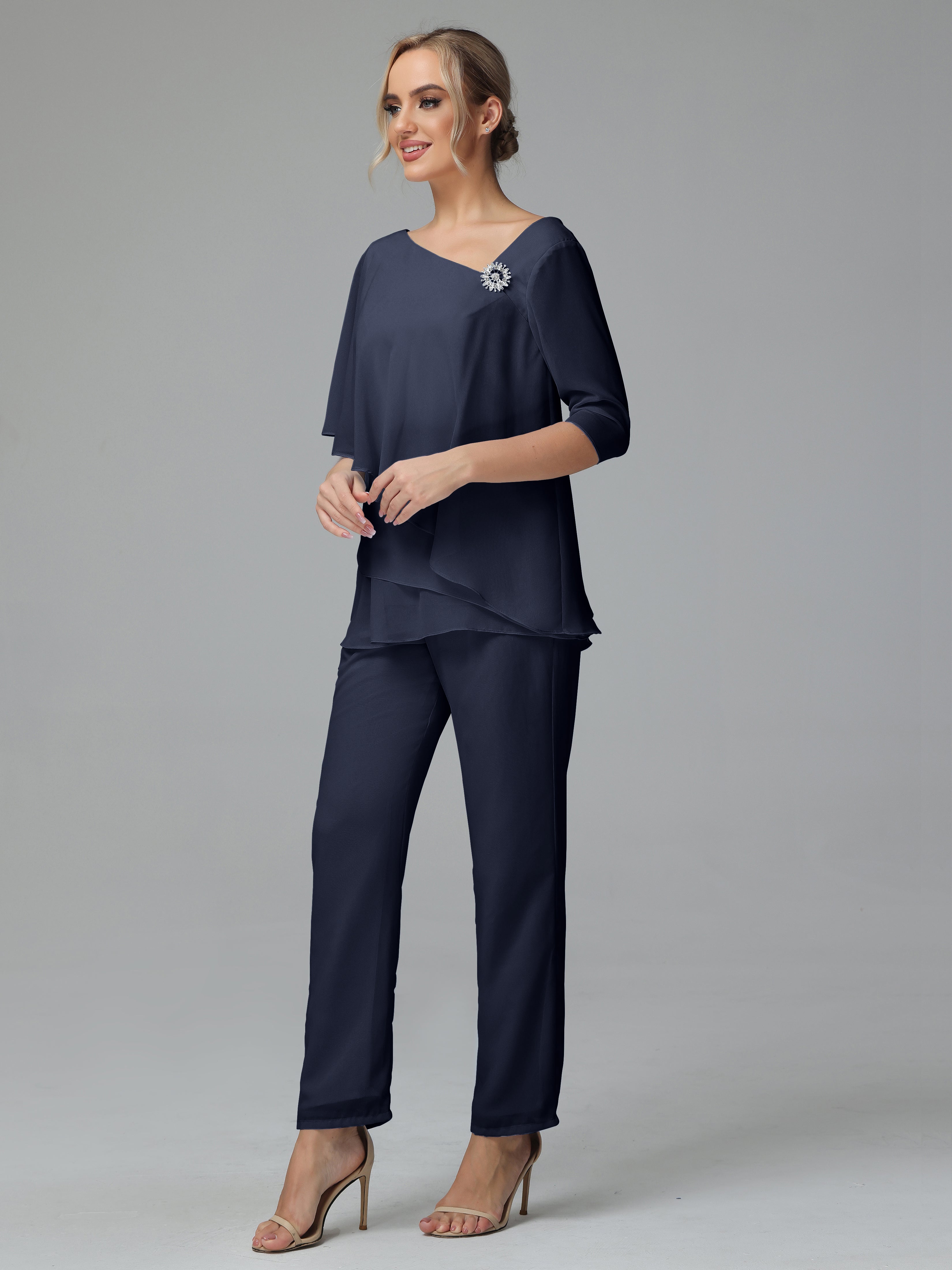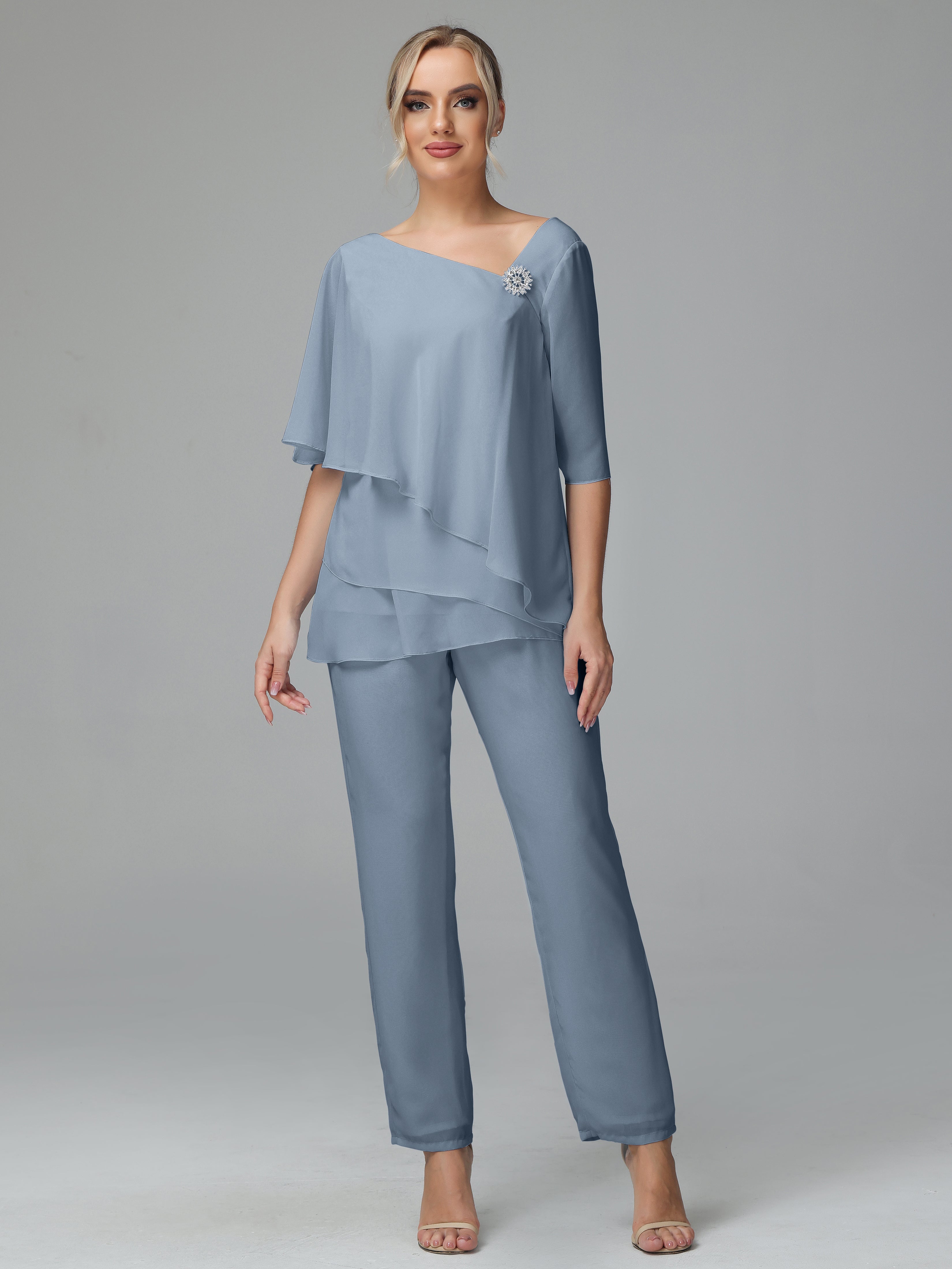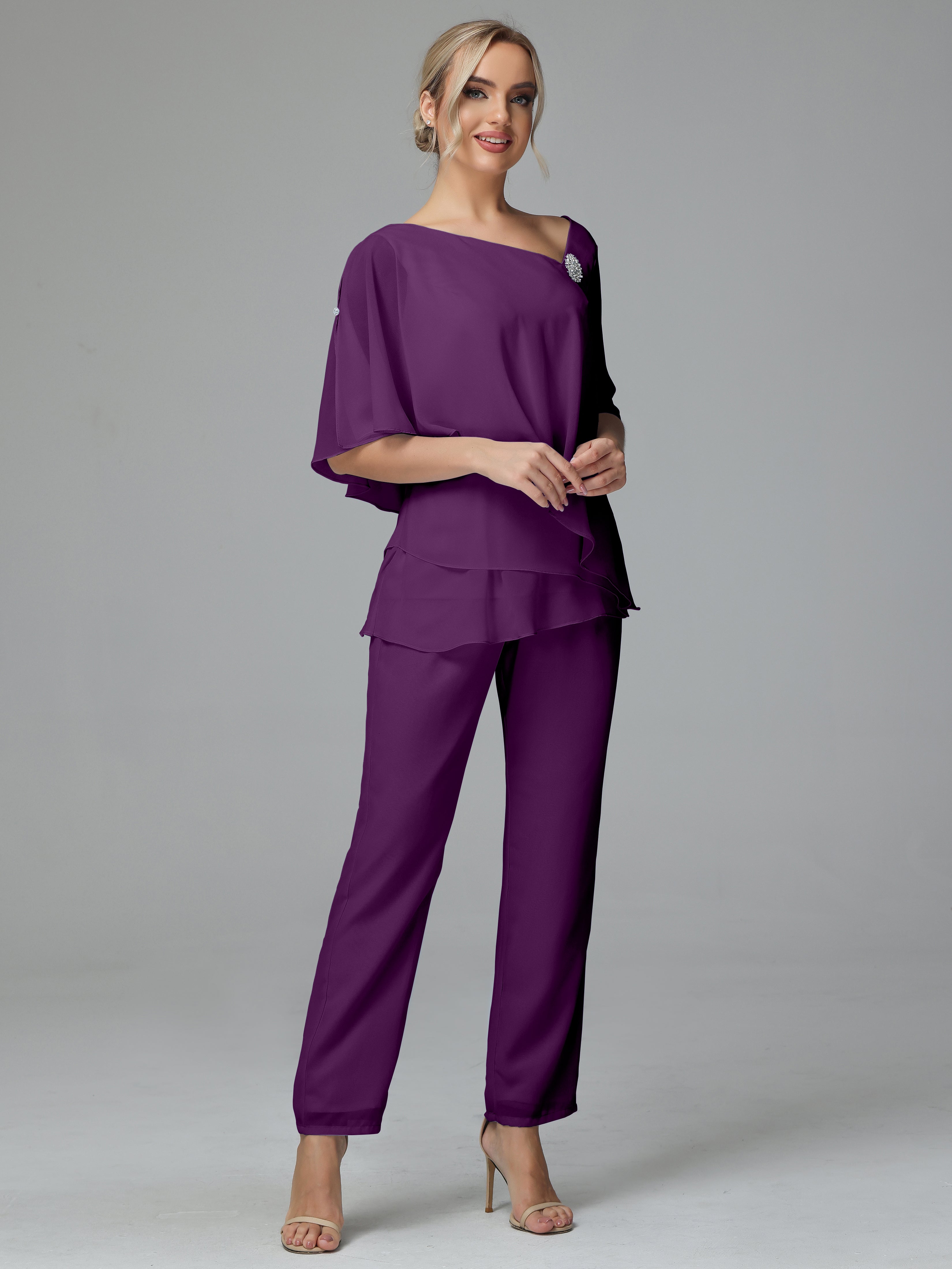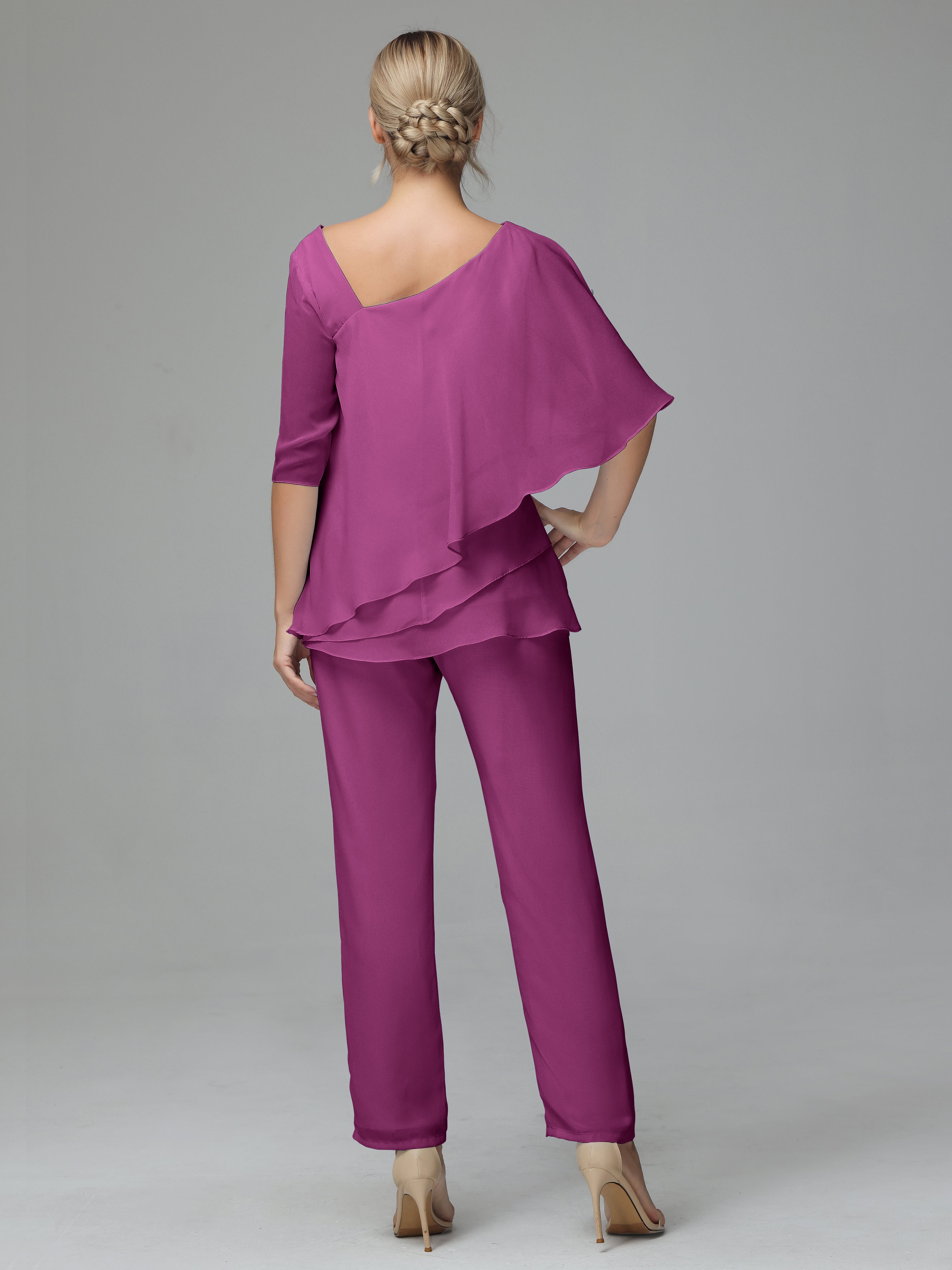 Half Sleeves Chiffon Mother of the Bride Dress Pant Suits With Beading