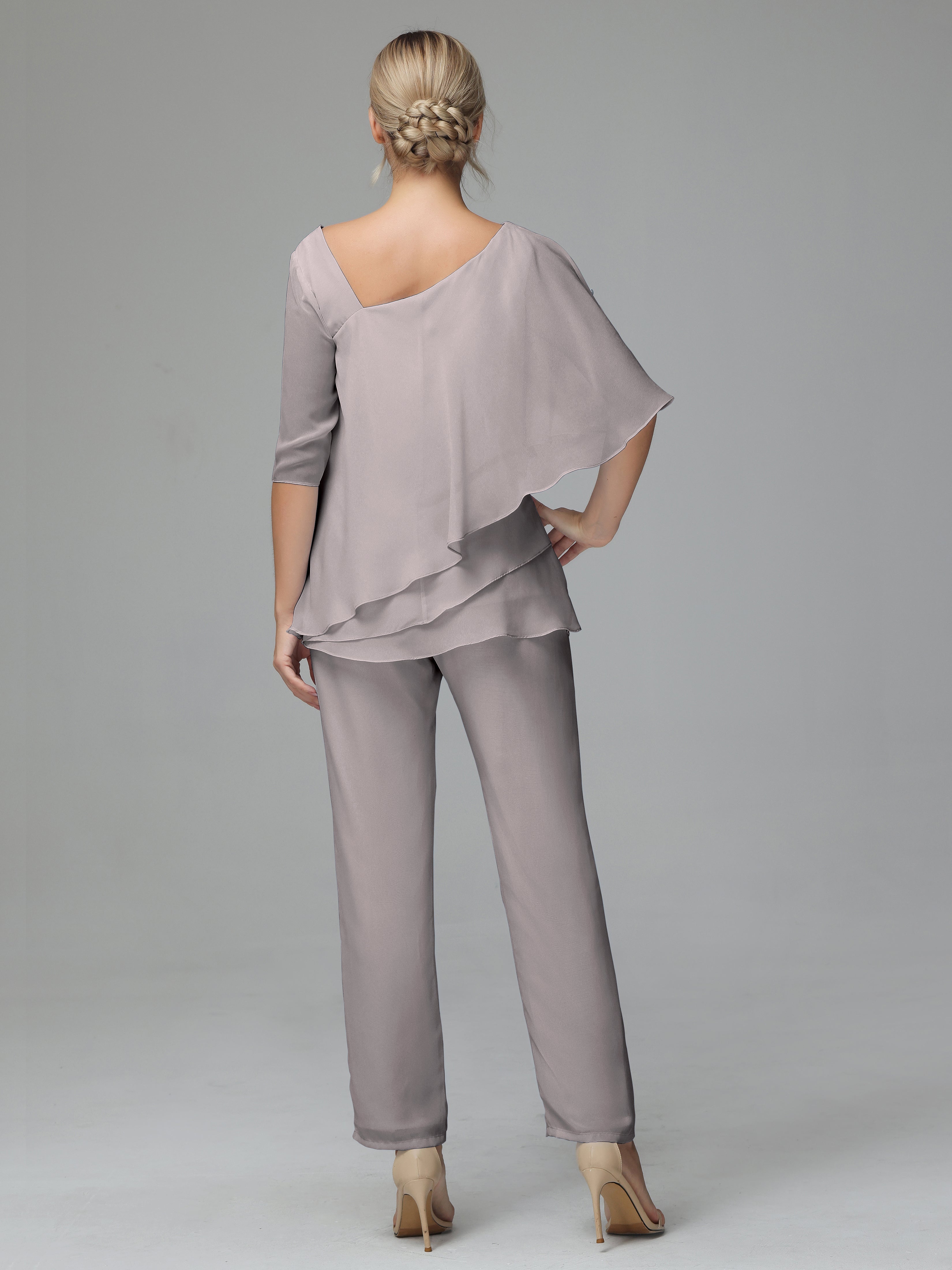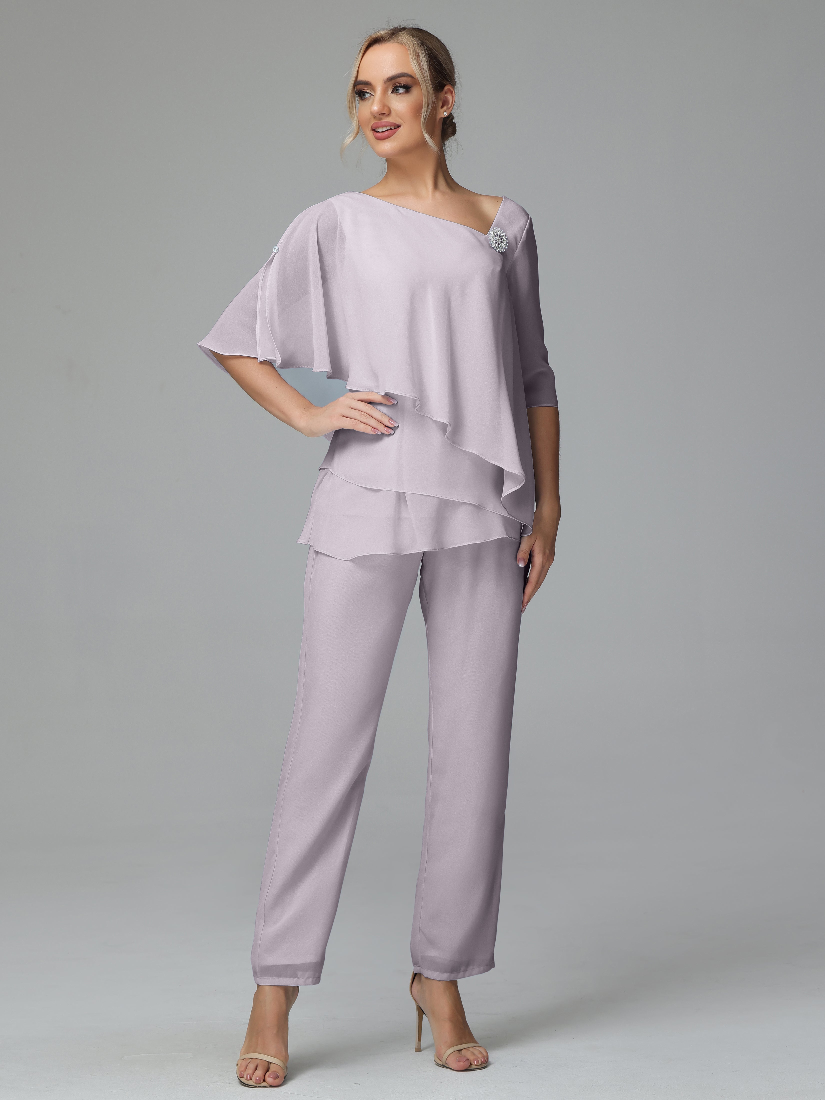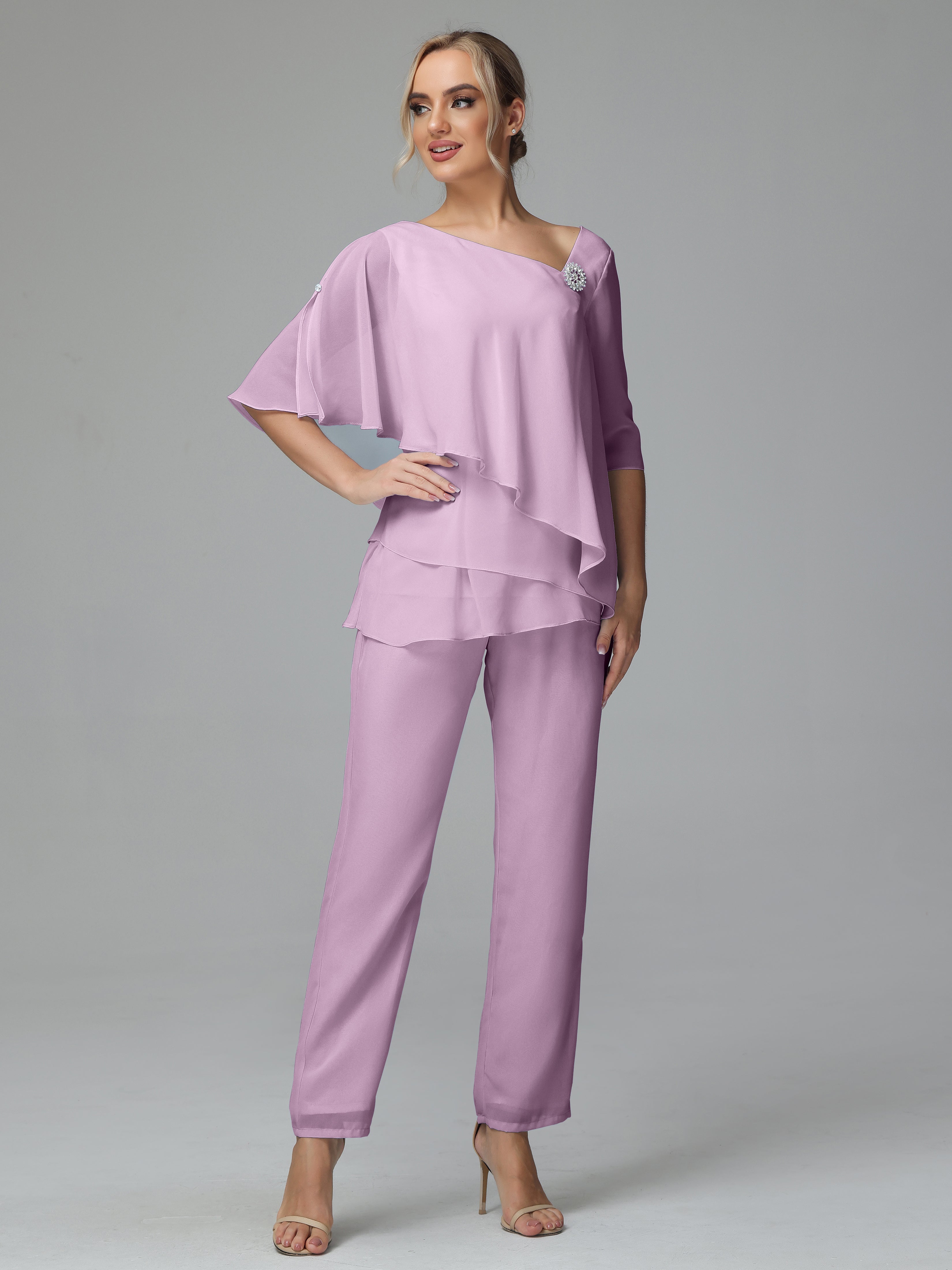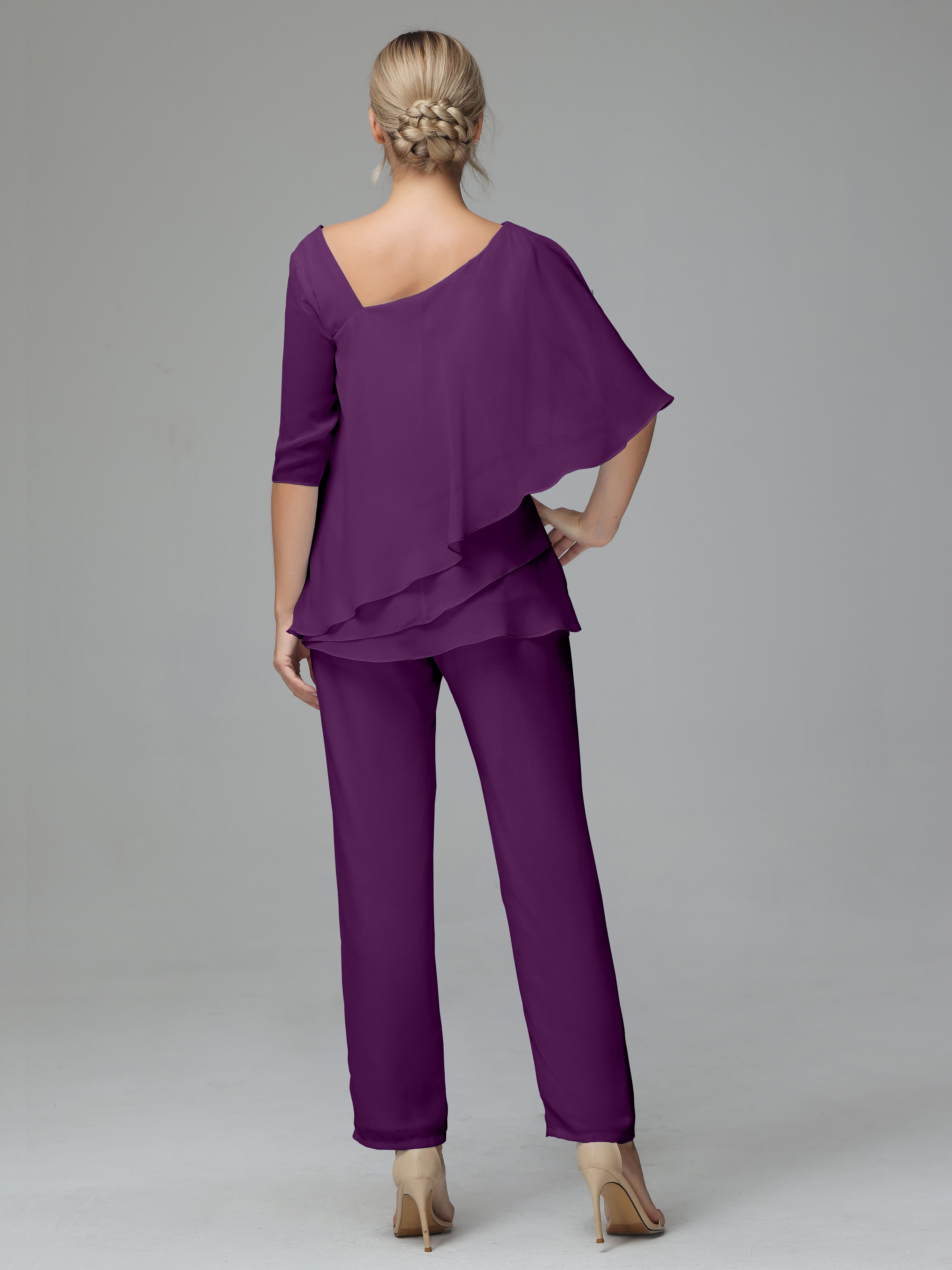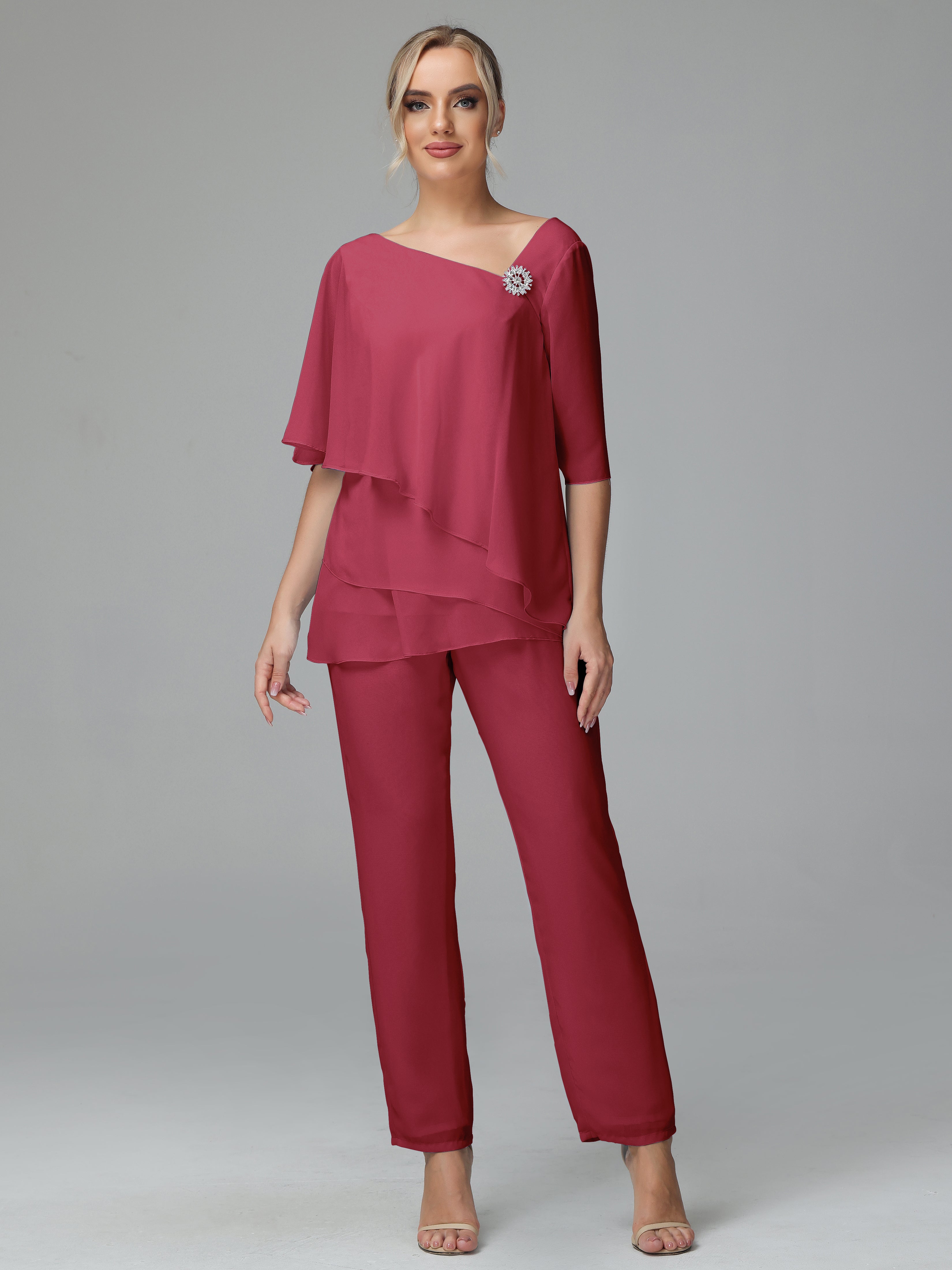 Half Sleeves Chiffon Mother of the Bride Dress Pant Suits With Beading