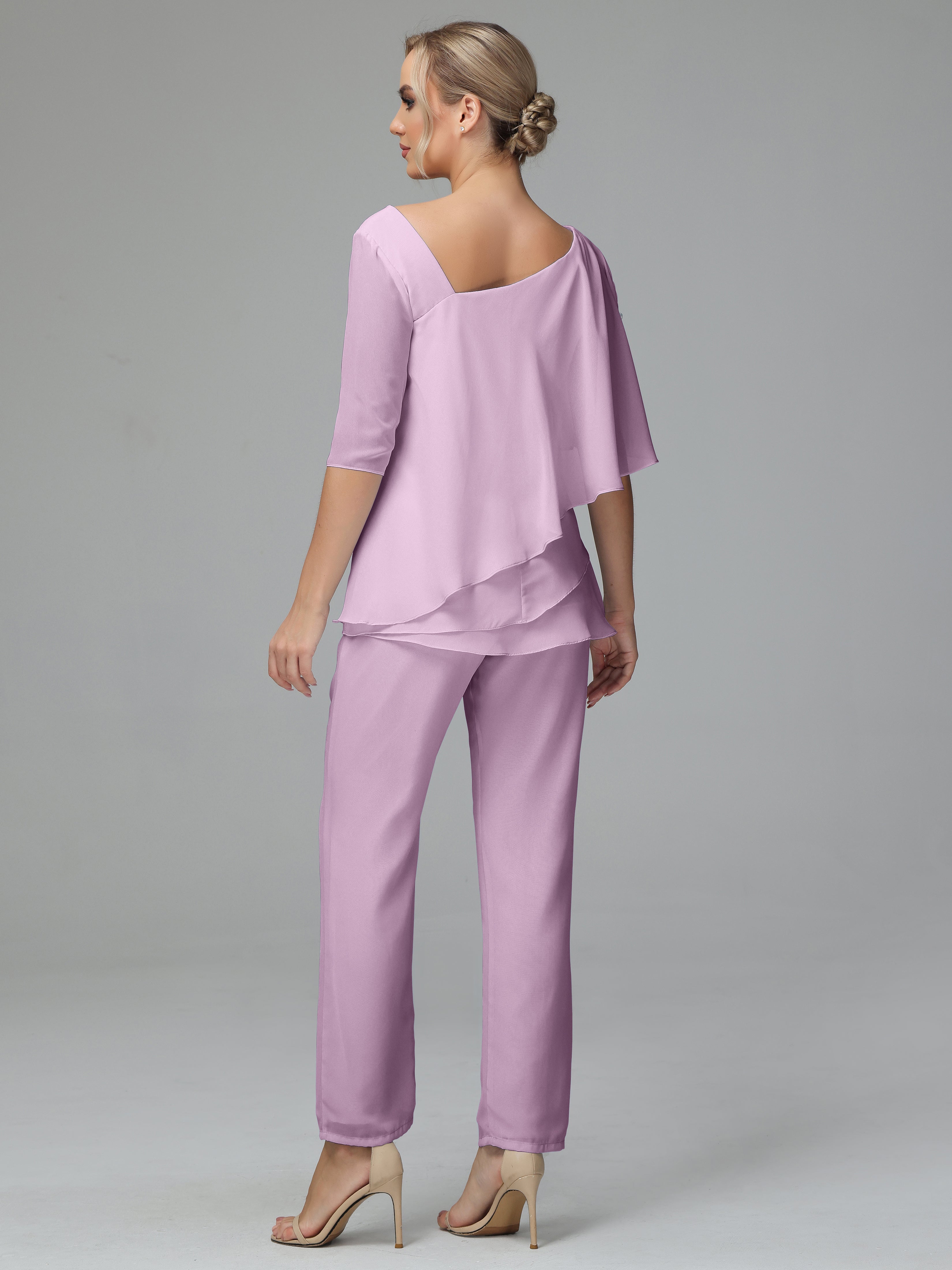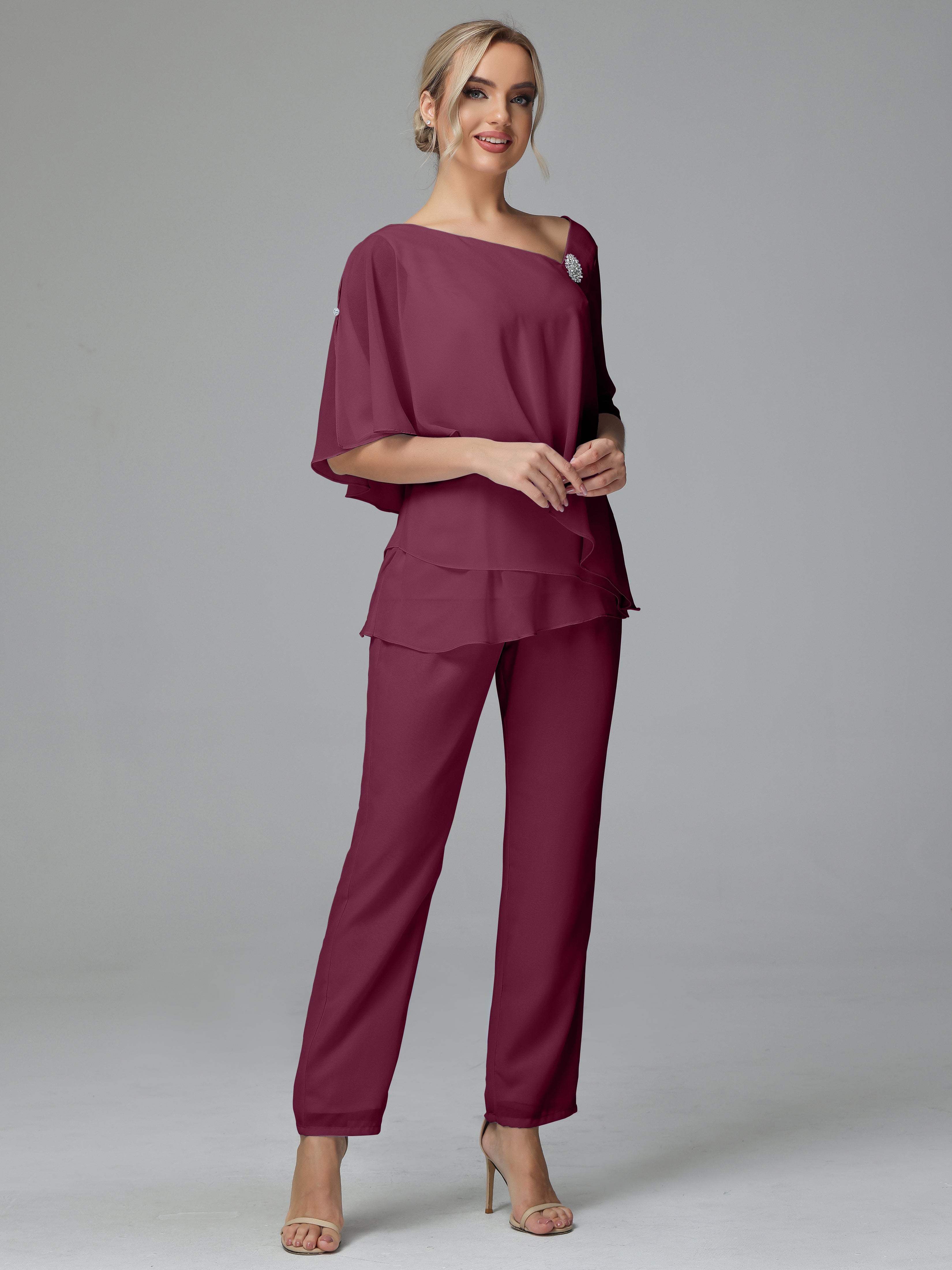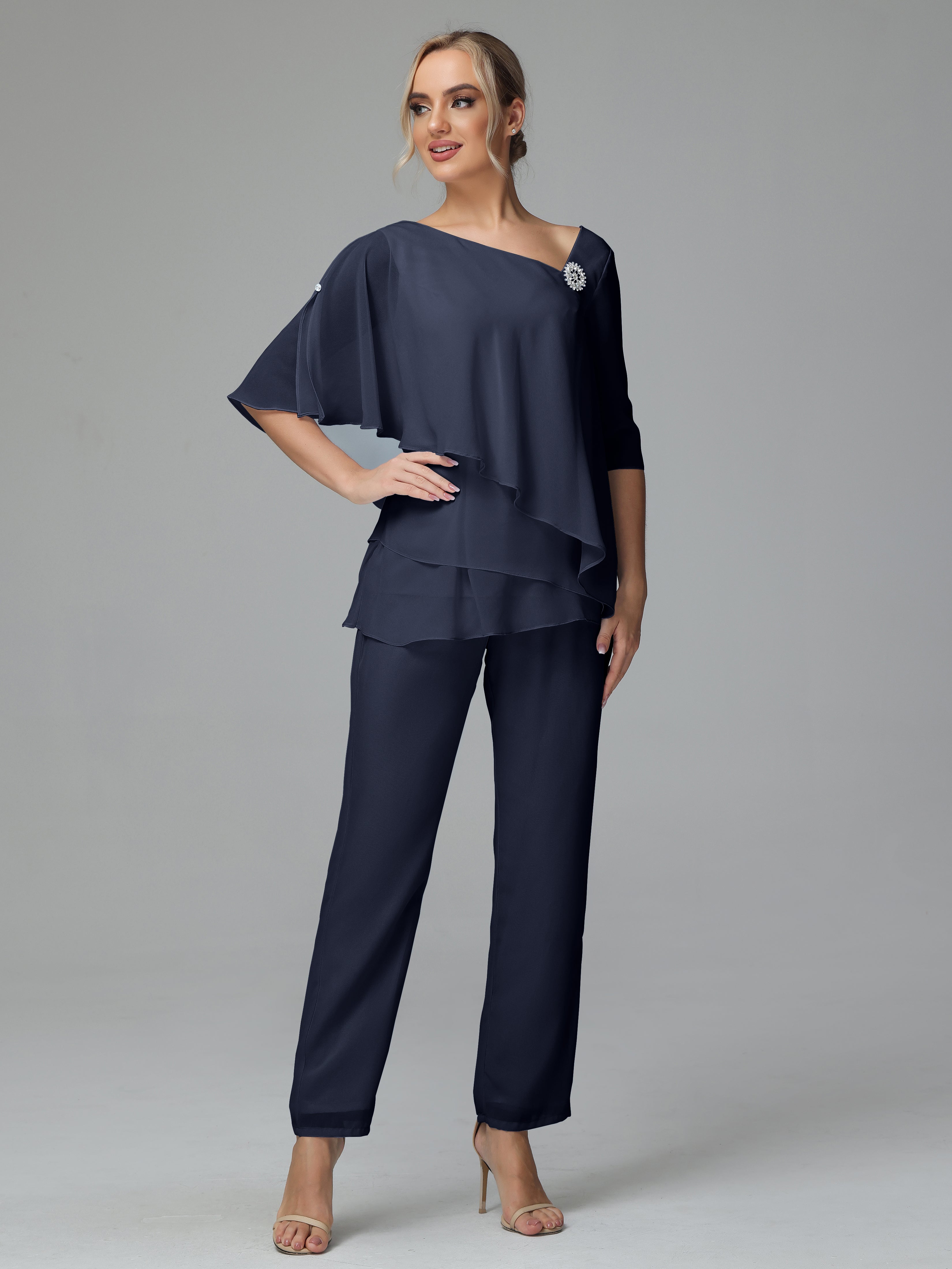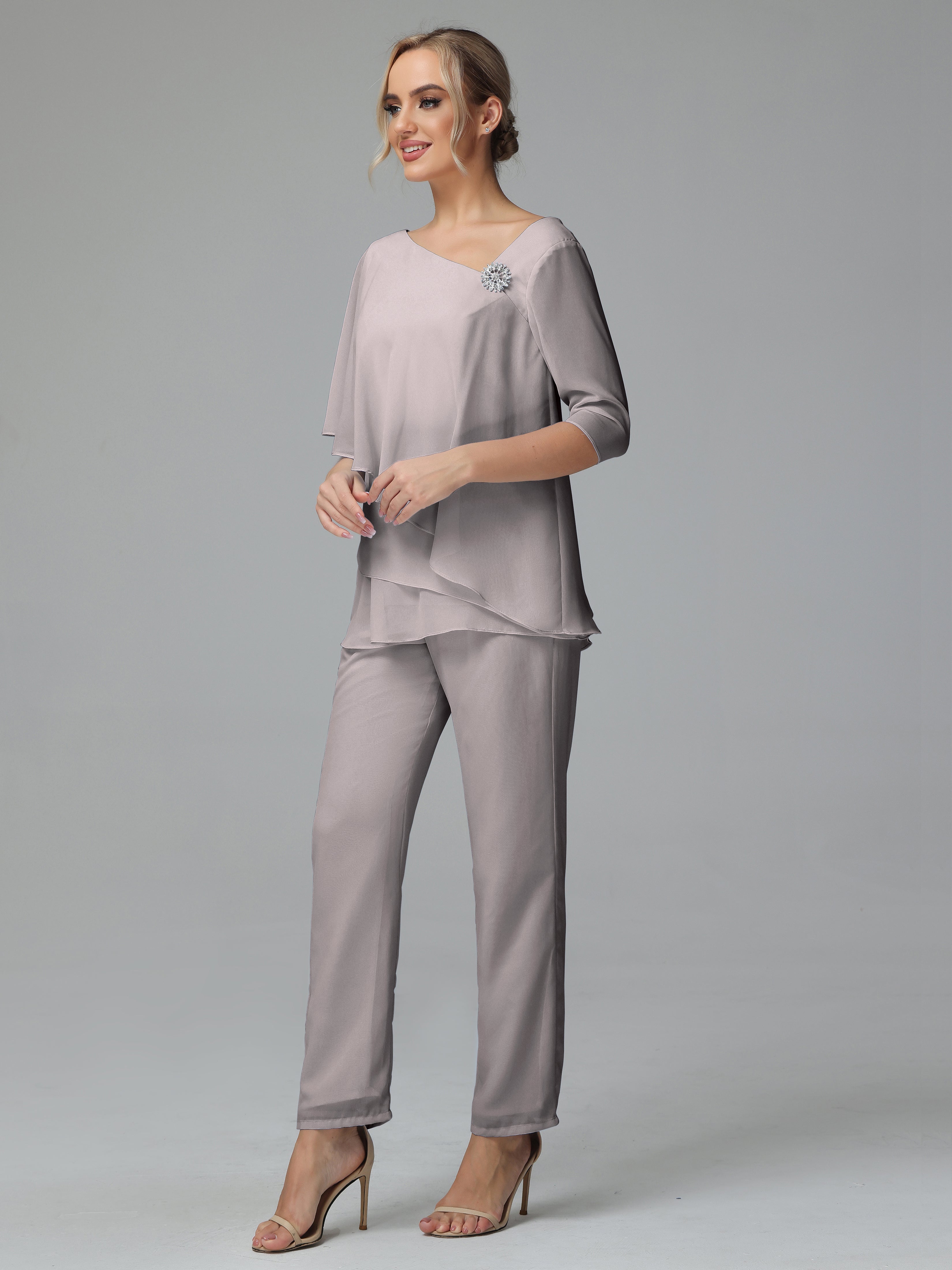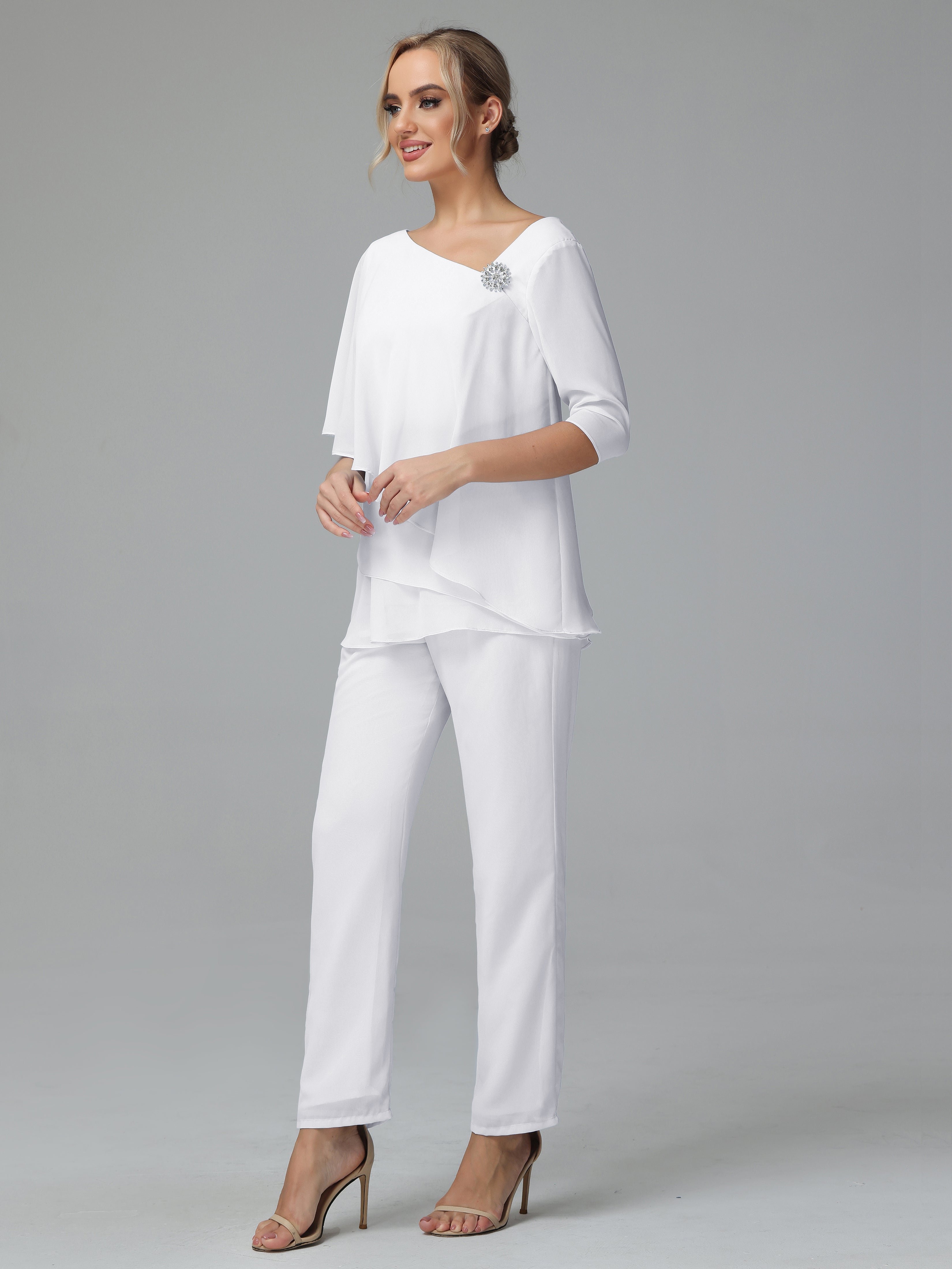 Half Sleeves Chiffon Mother of the Bride Dress Pant Suits With Beading