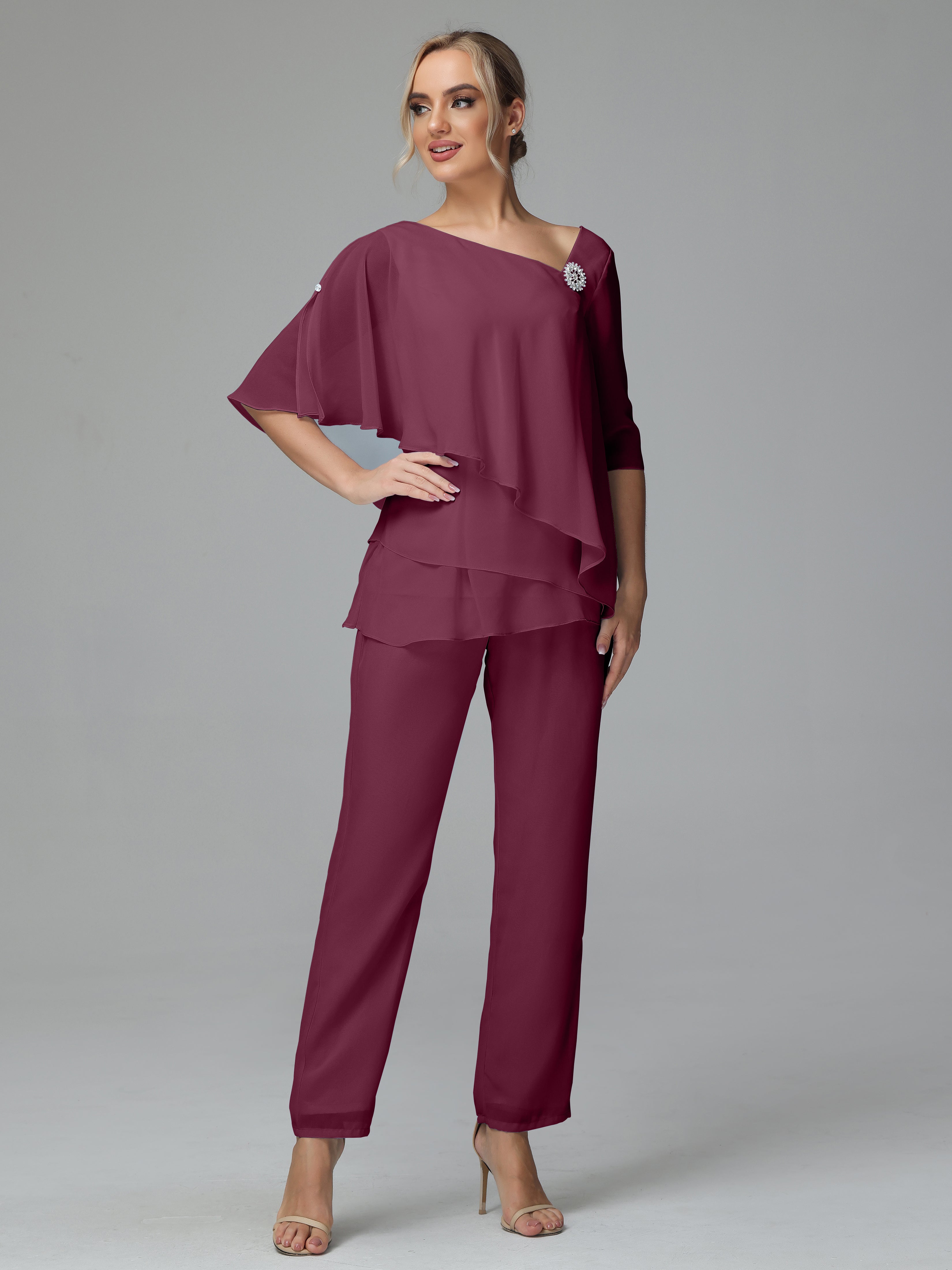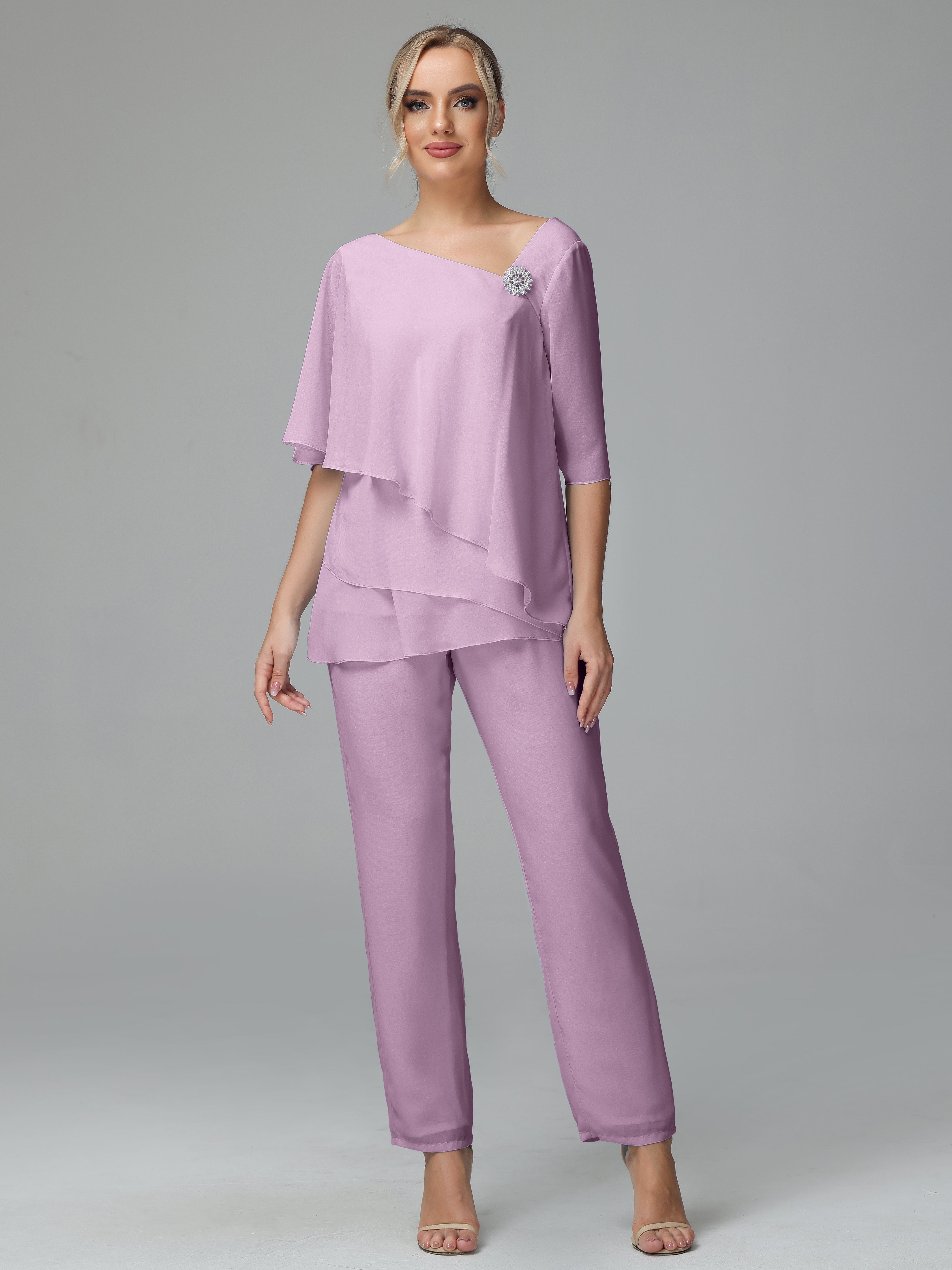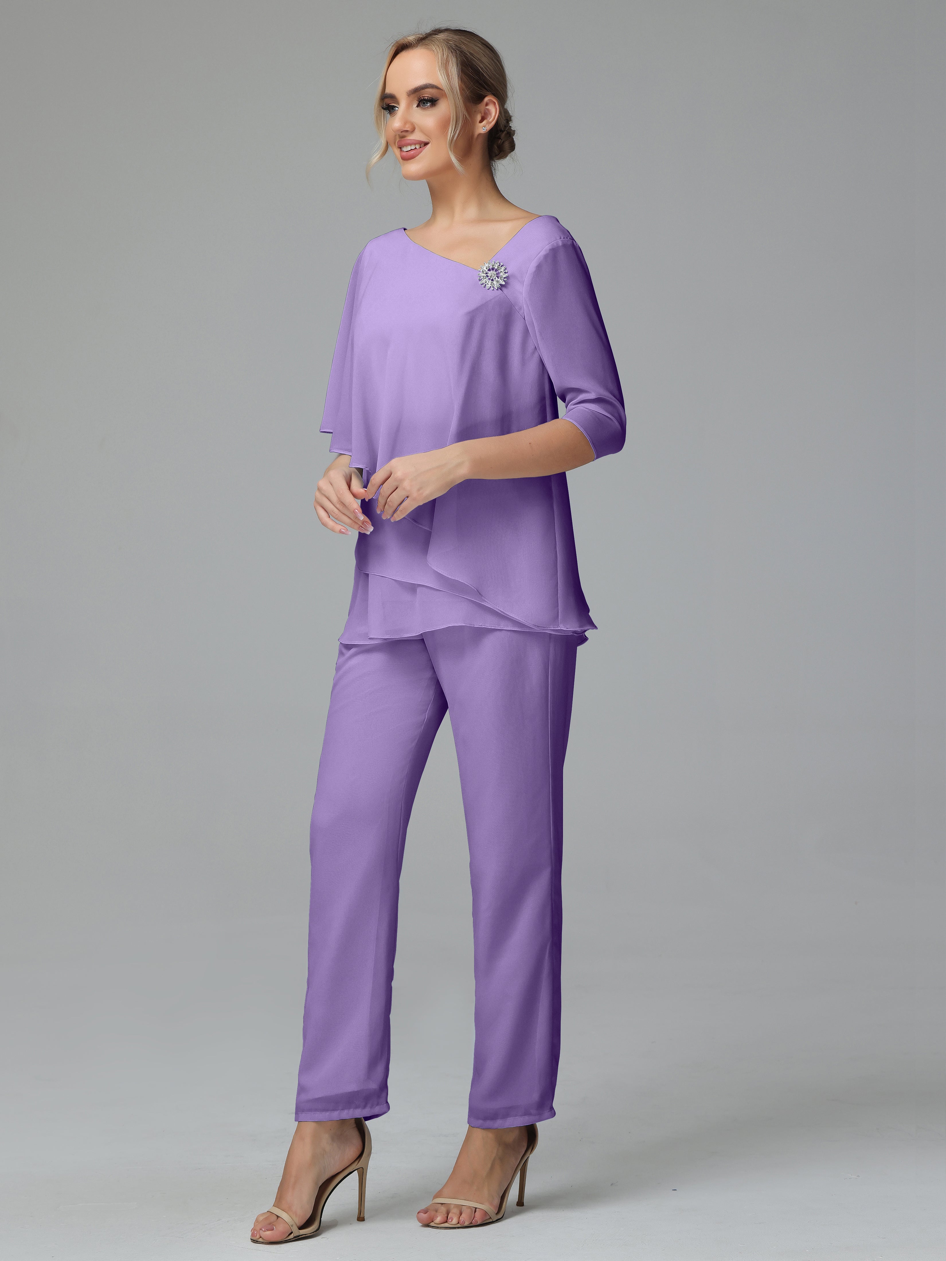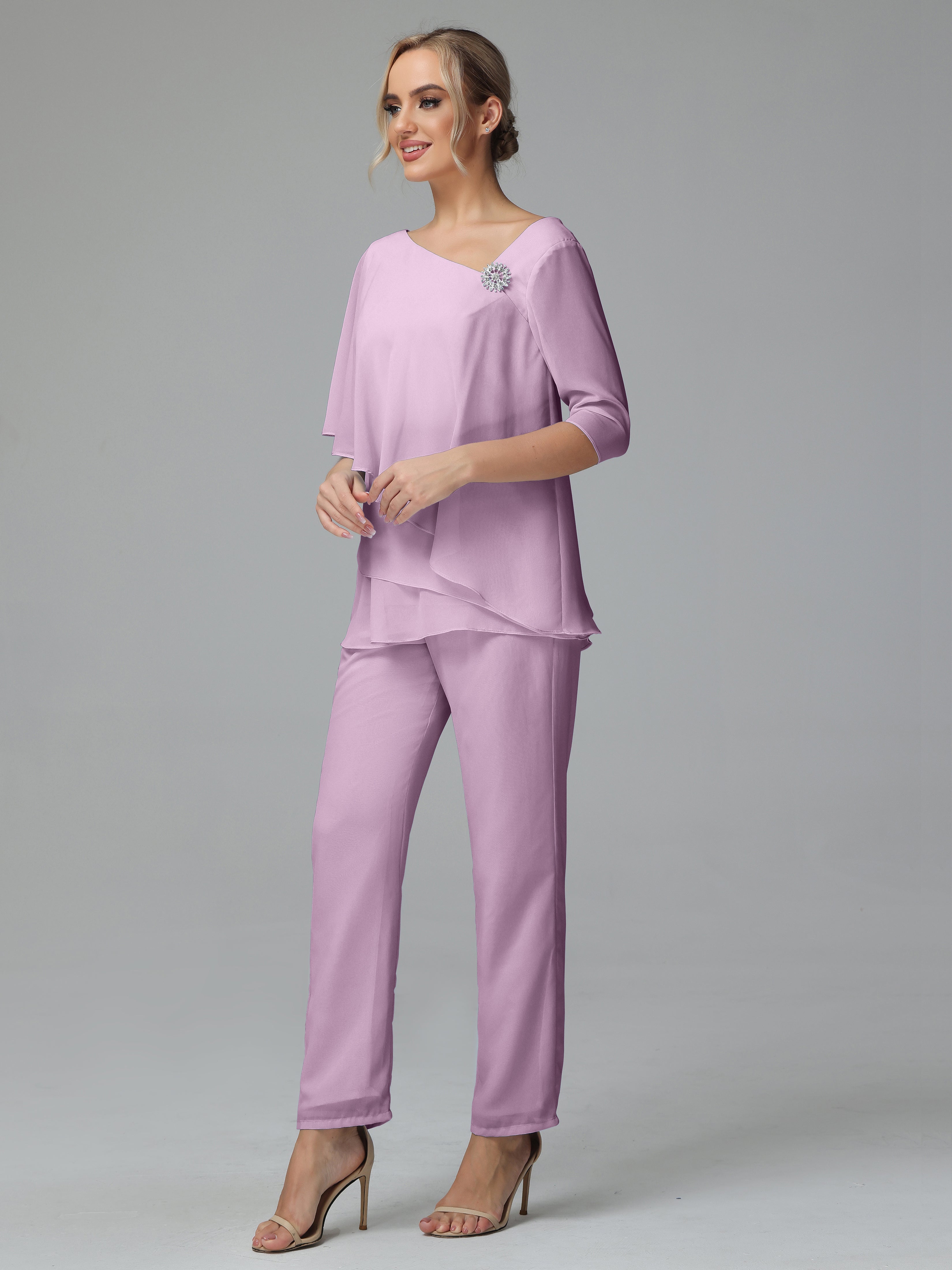 Half Sleeves Chiffon Mother of the Bride Dress Pant Suits With Beading