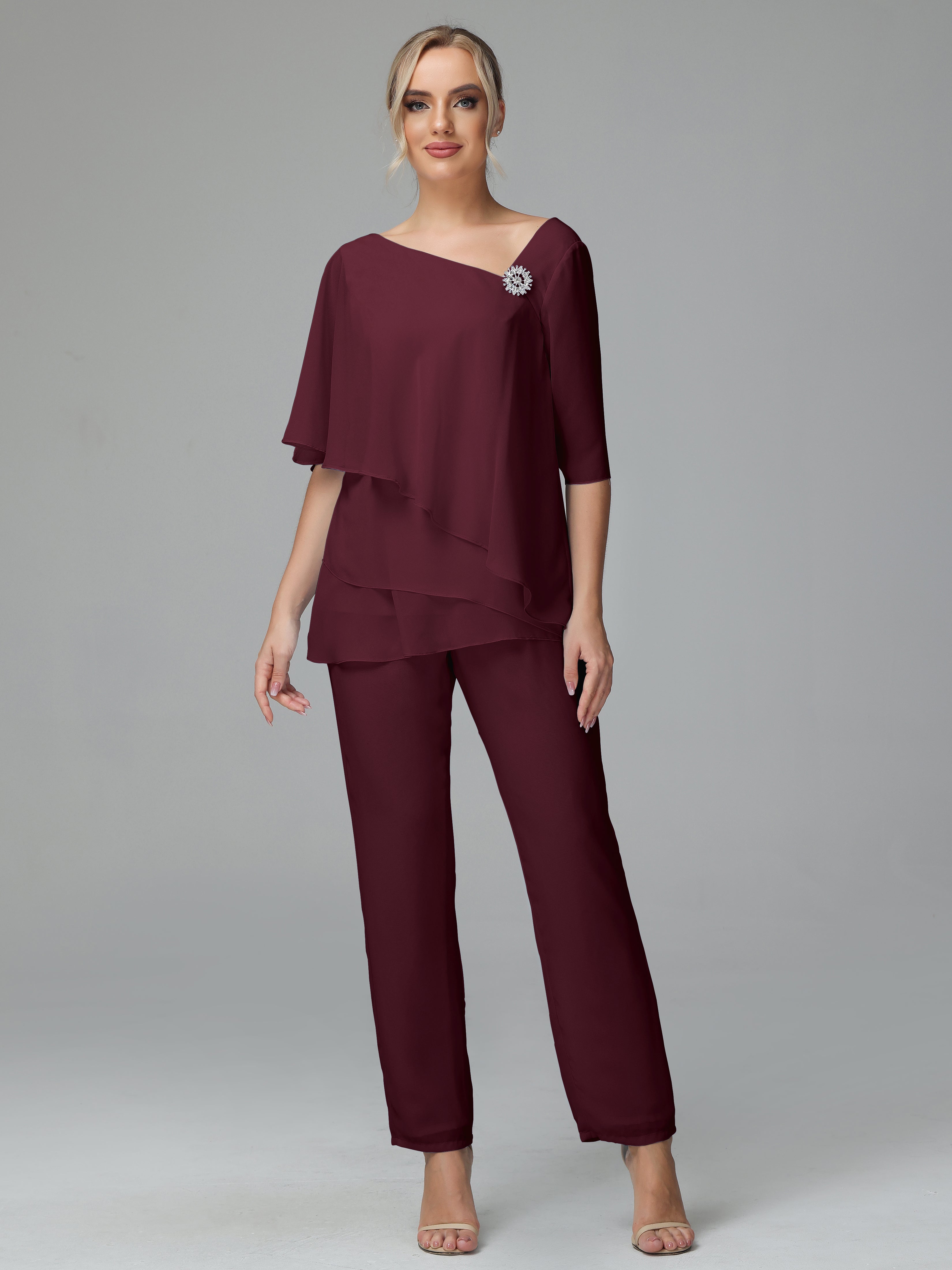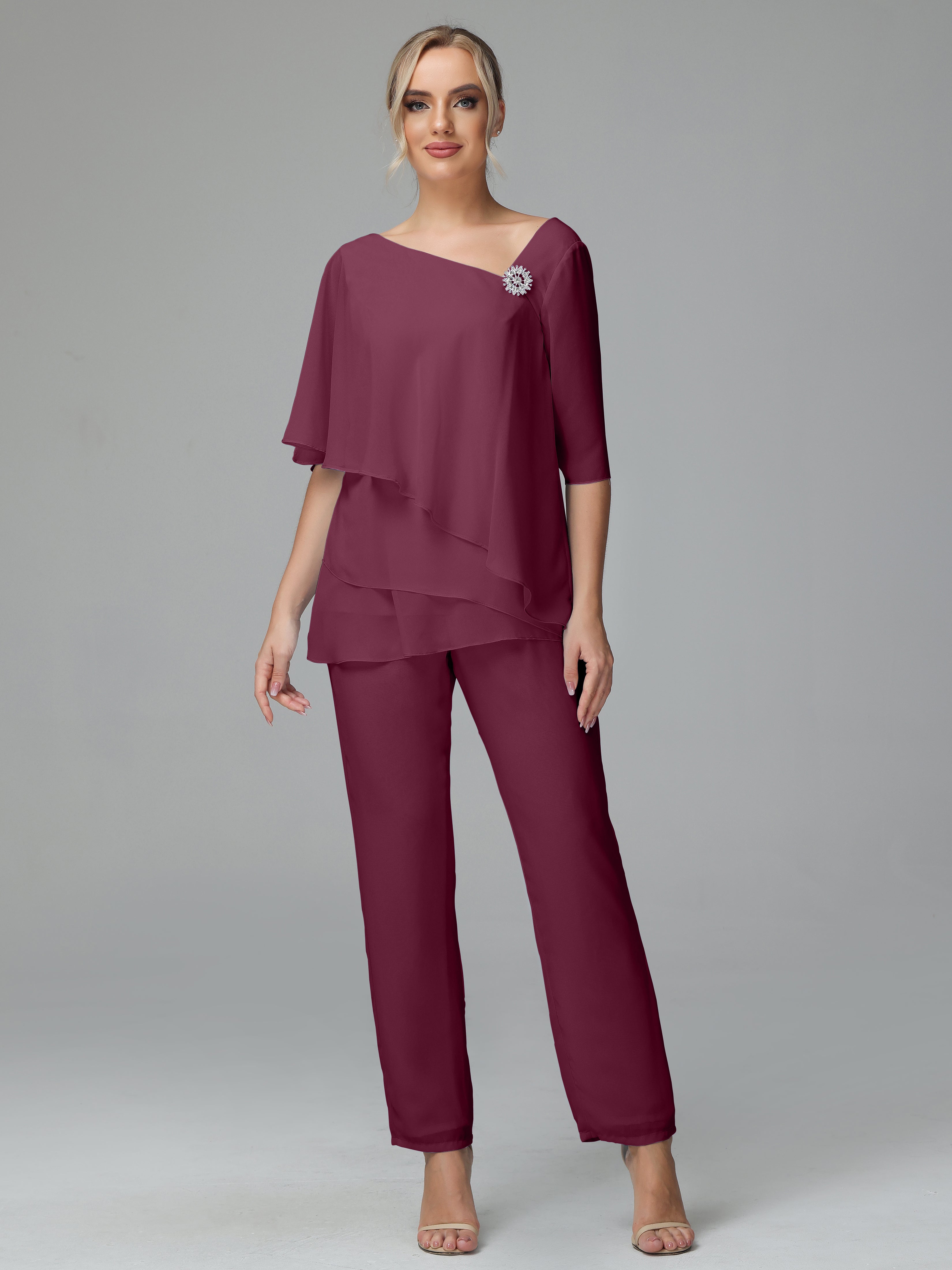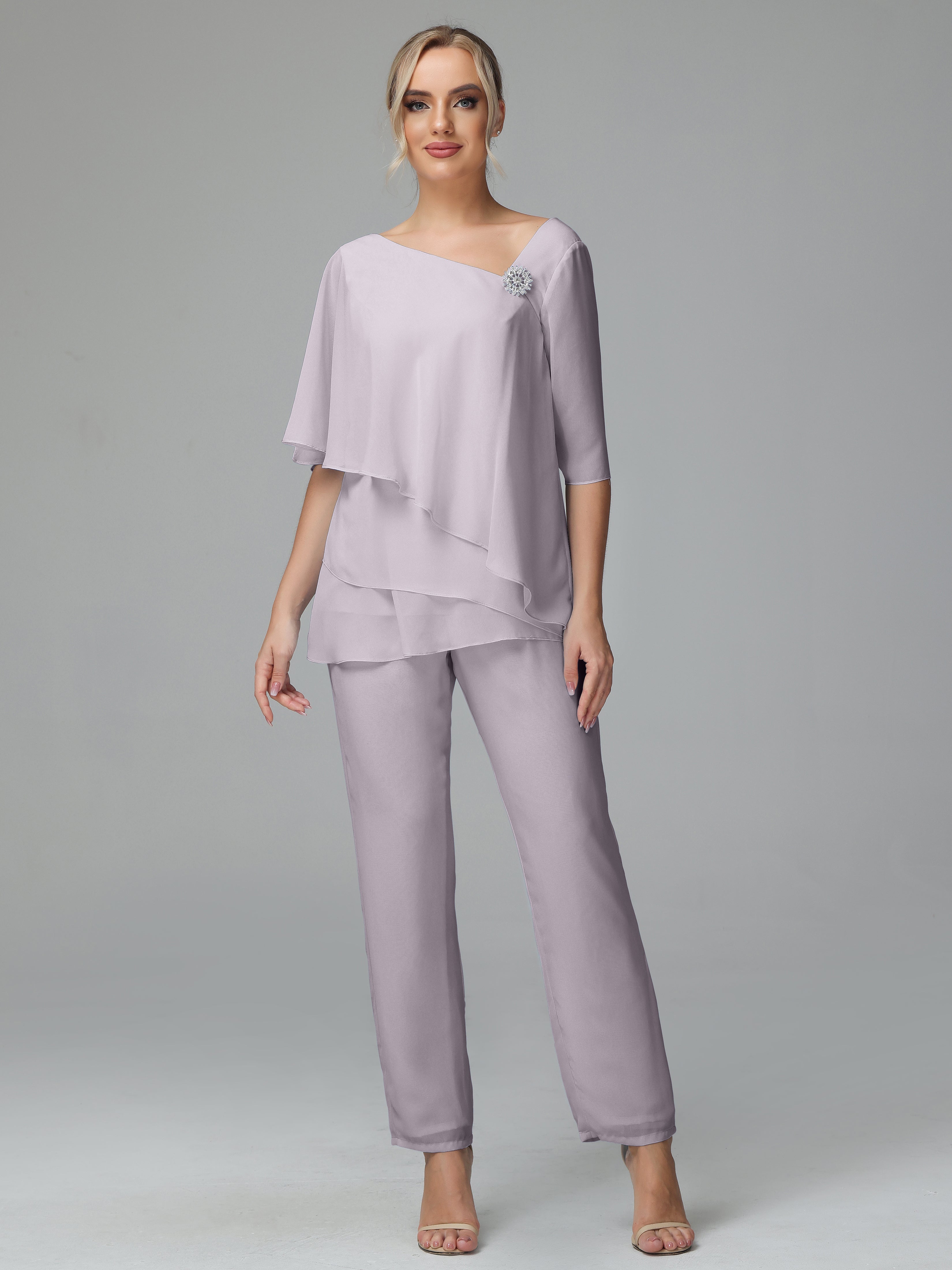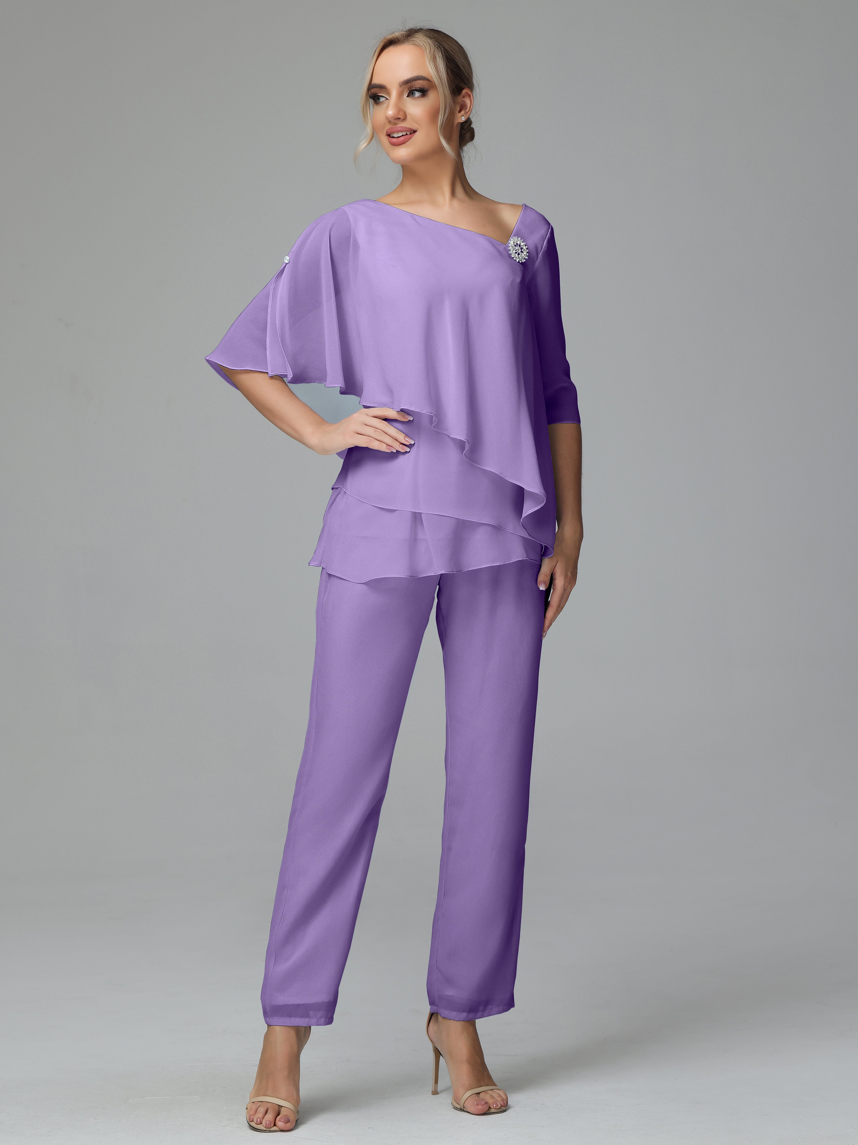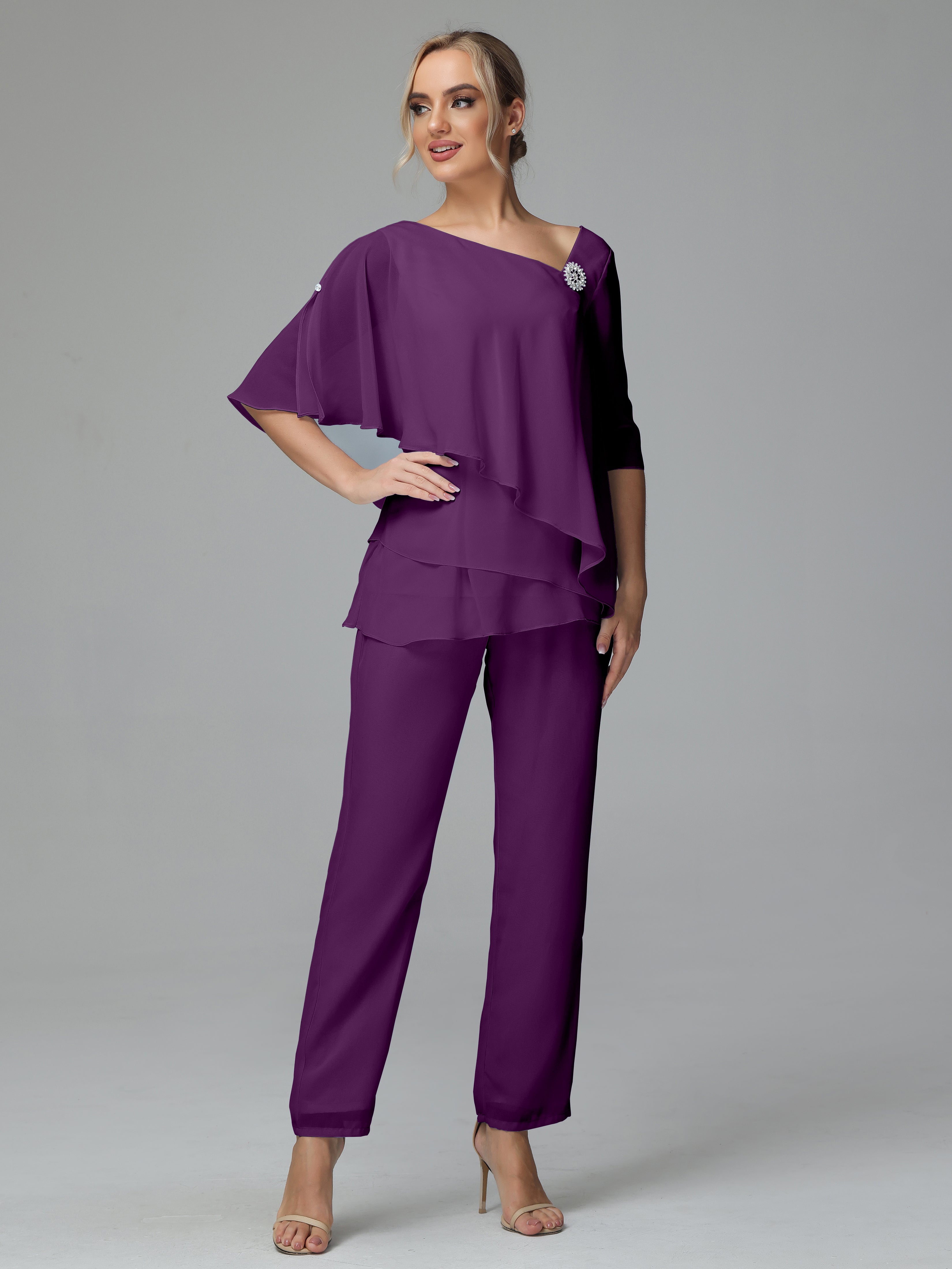 Half Sleeves Chiffon Mother of the Bride Dress Pant Suits With Beading