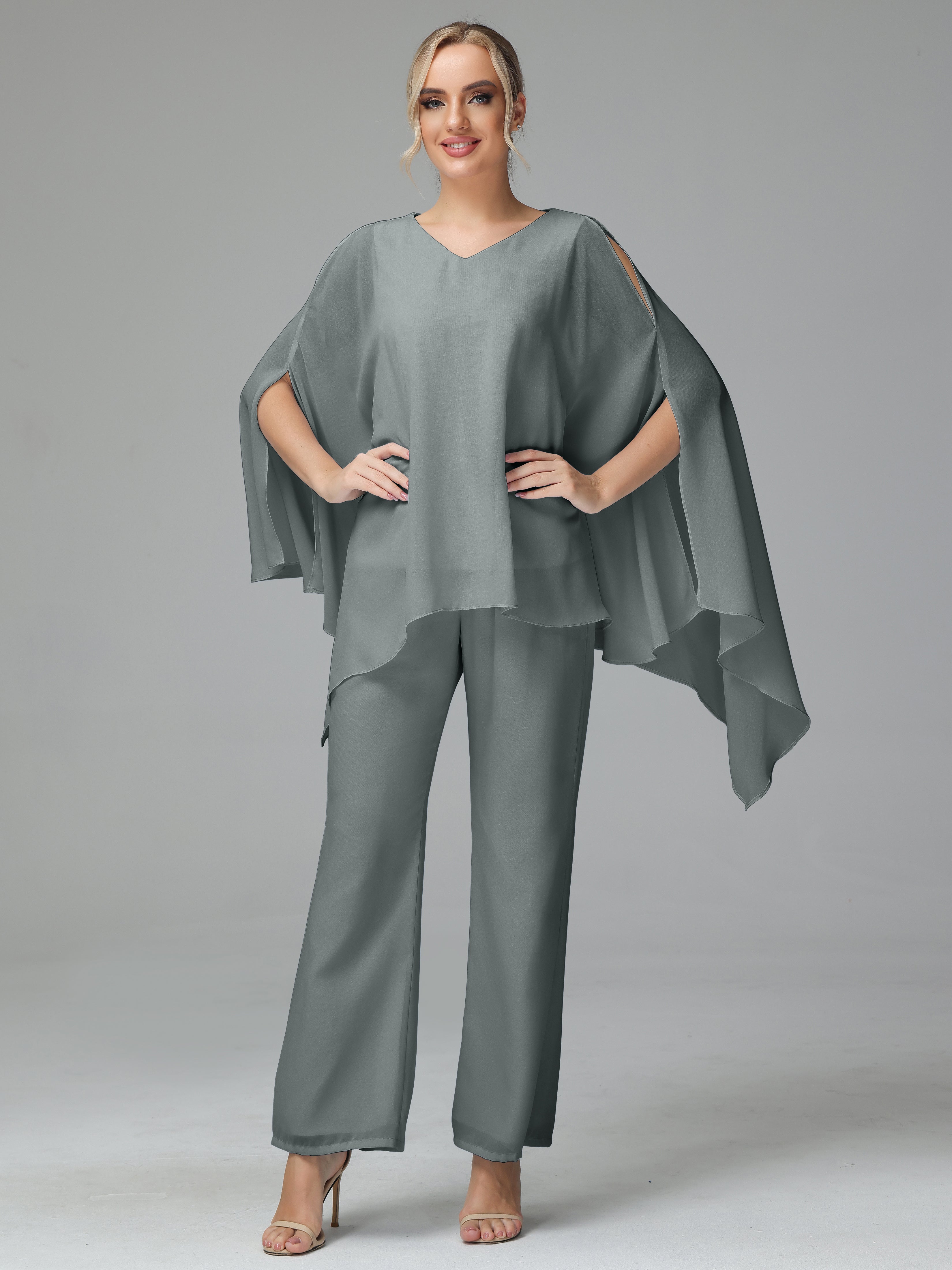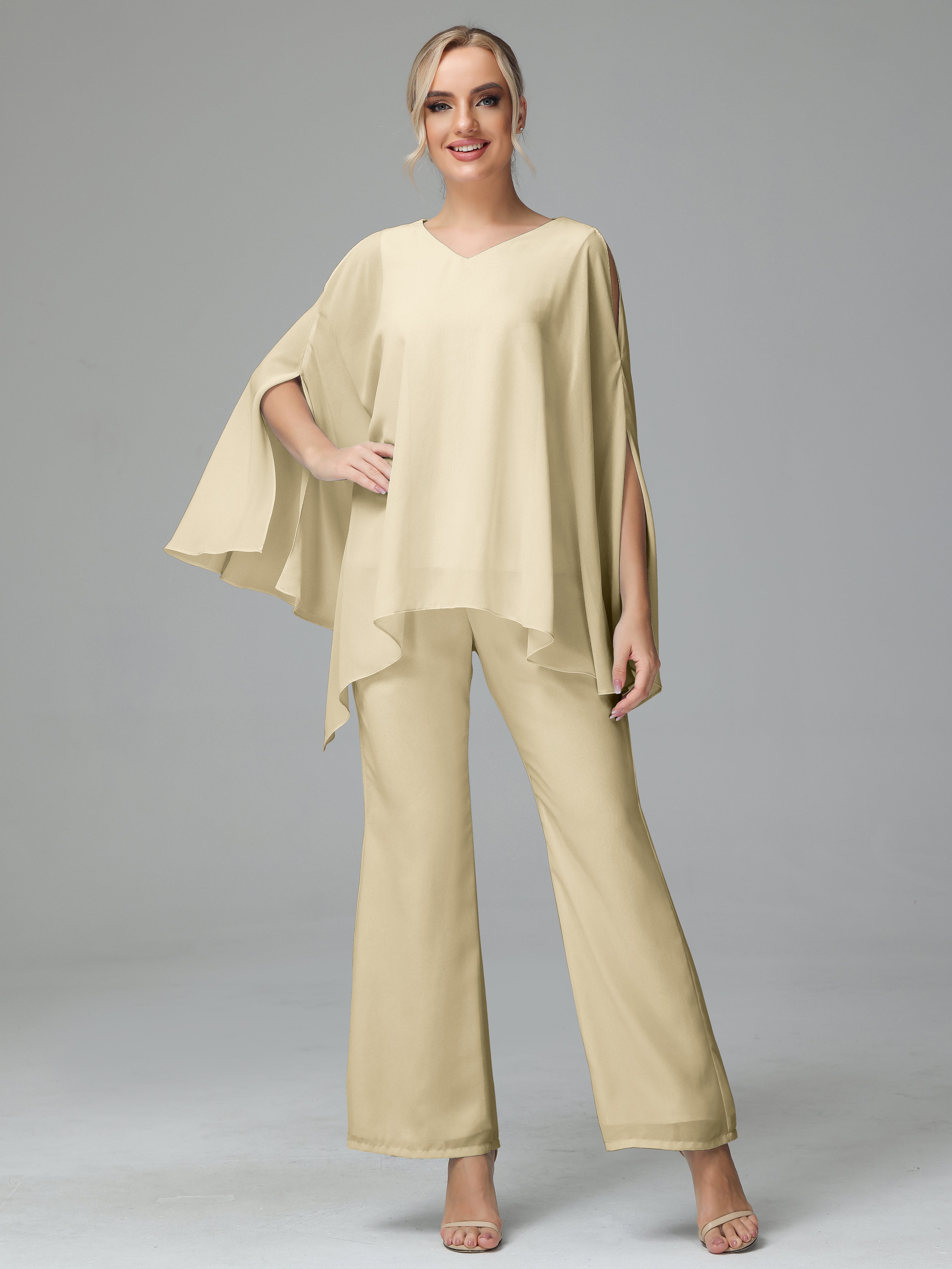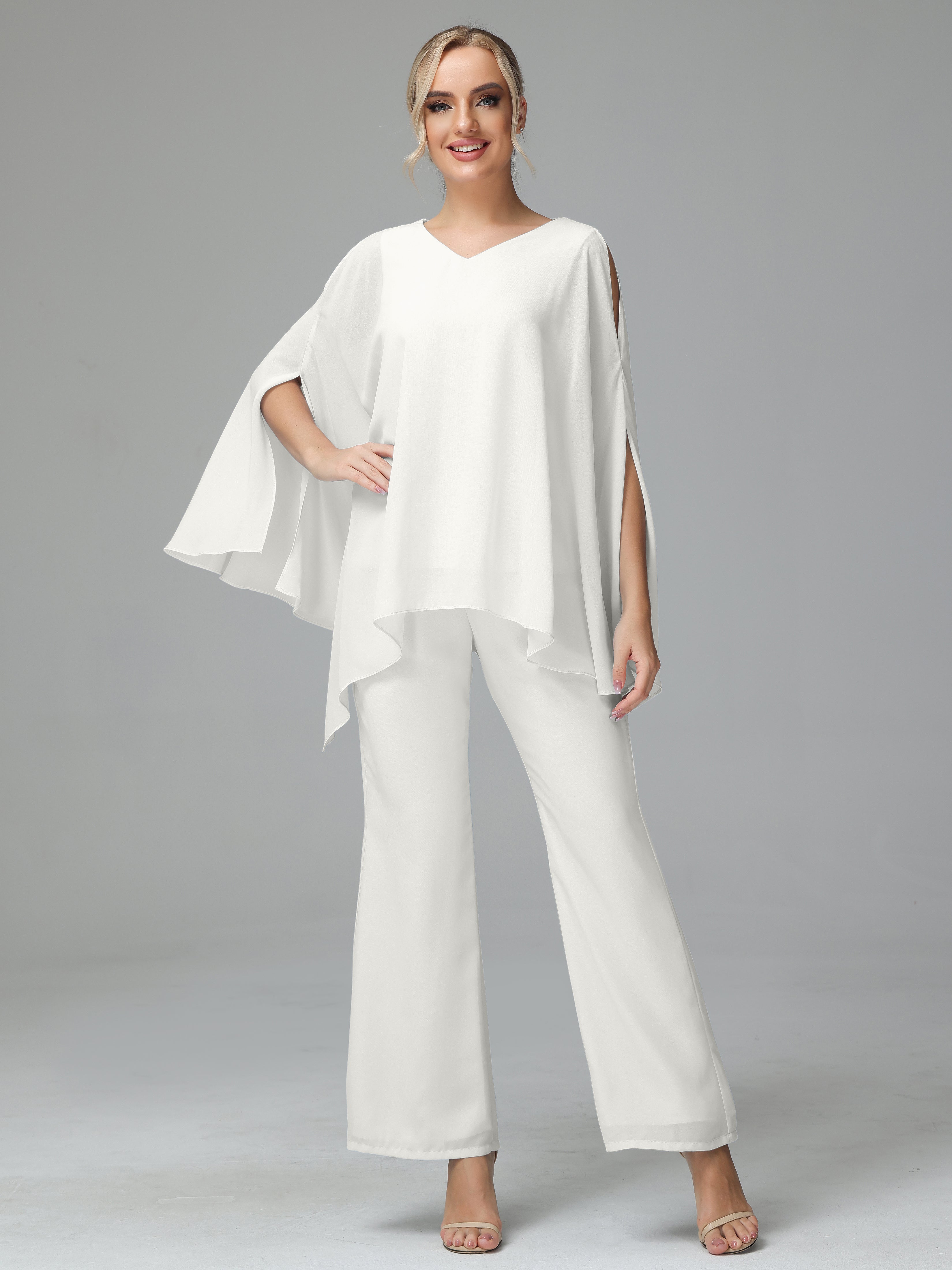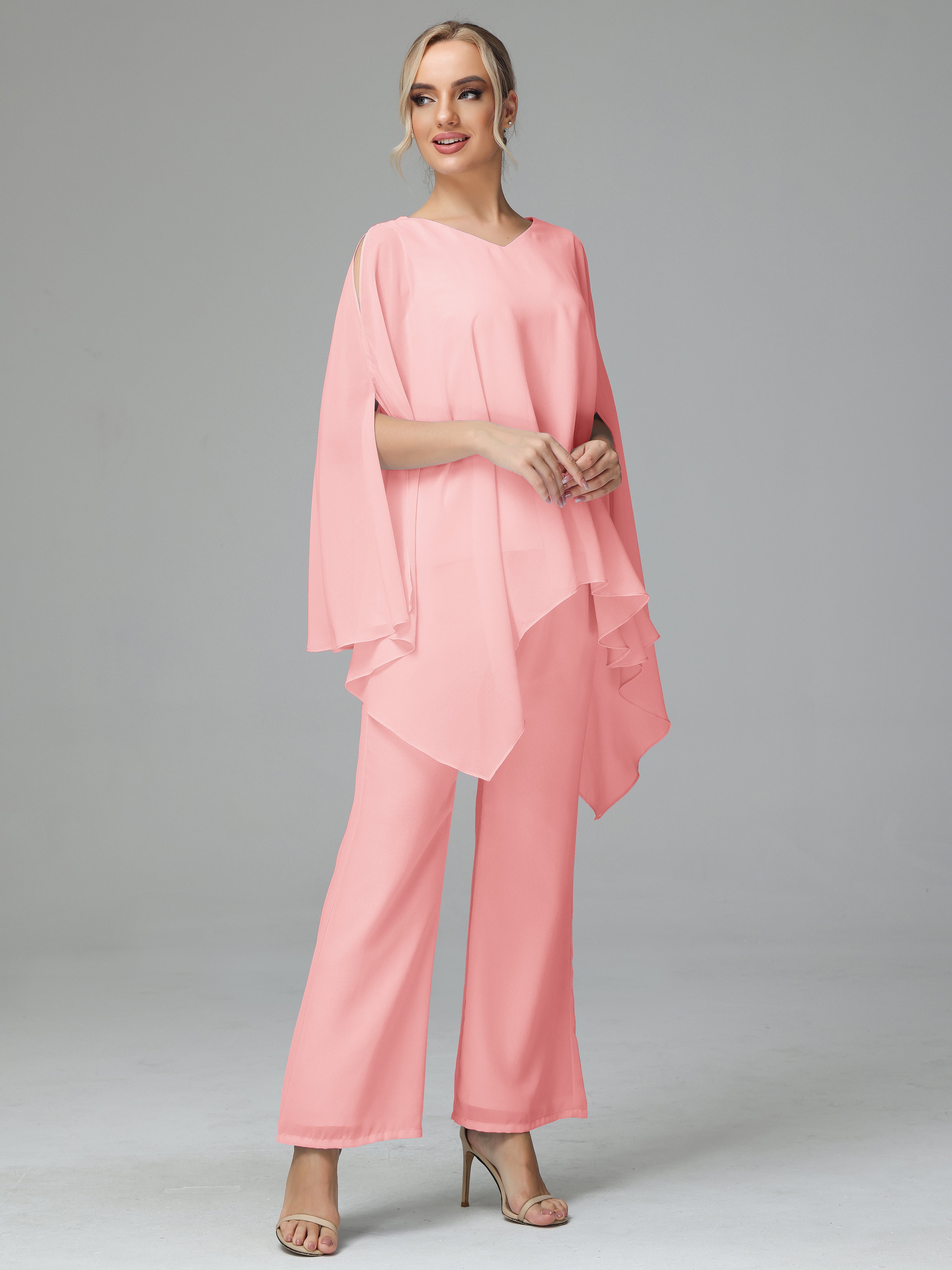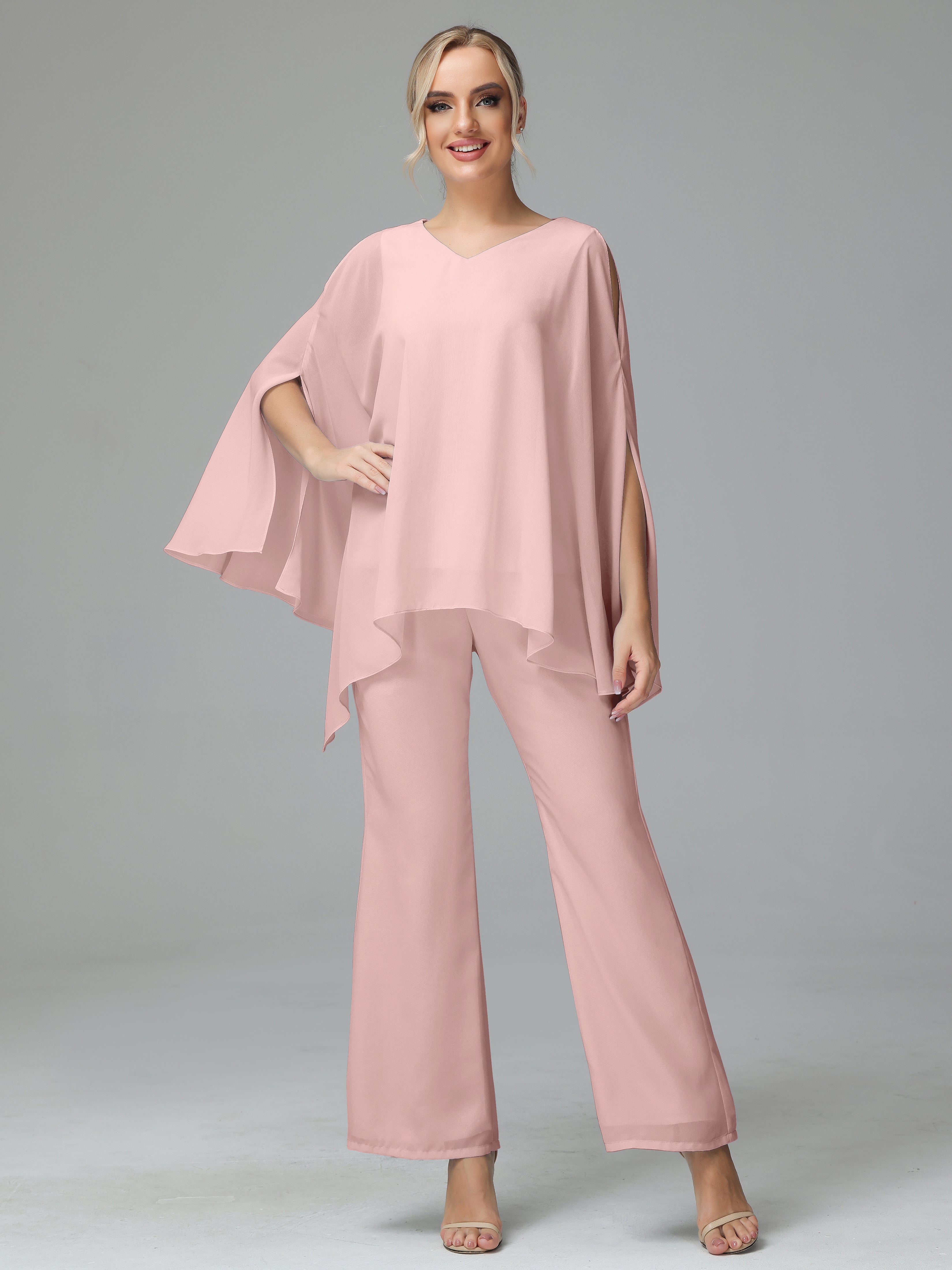 Half Sleeves V-Neck Chiffon Mother Of The Bride Dress Pants Suits
