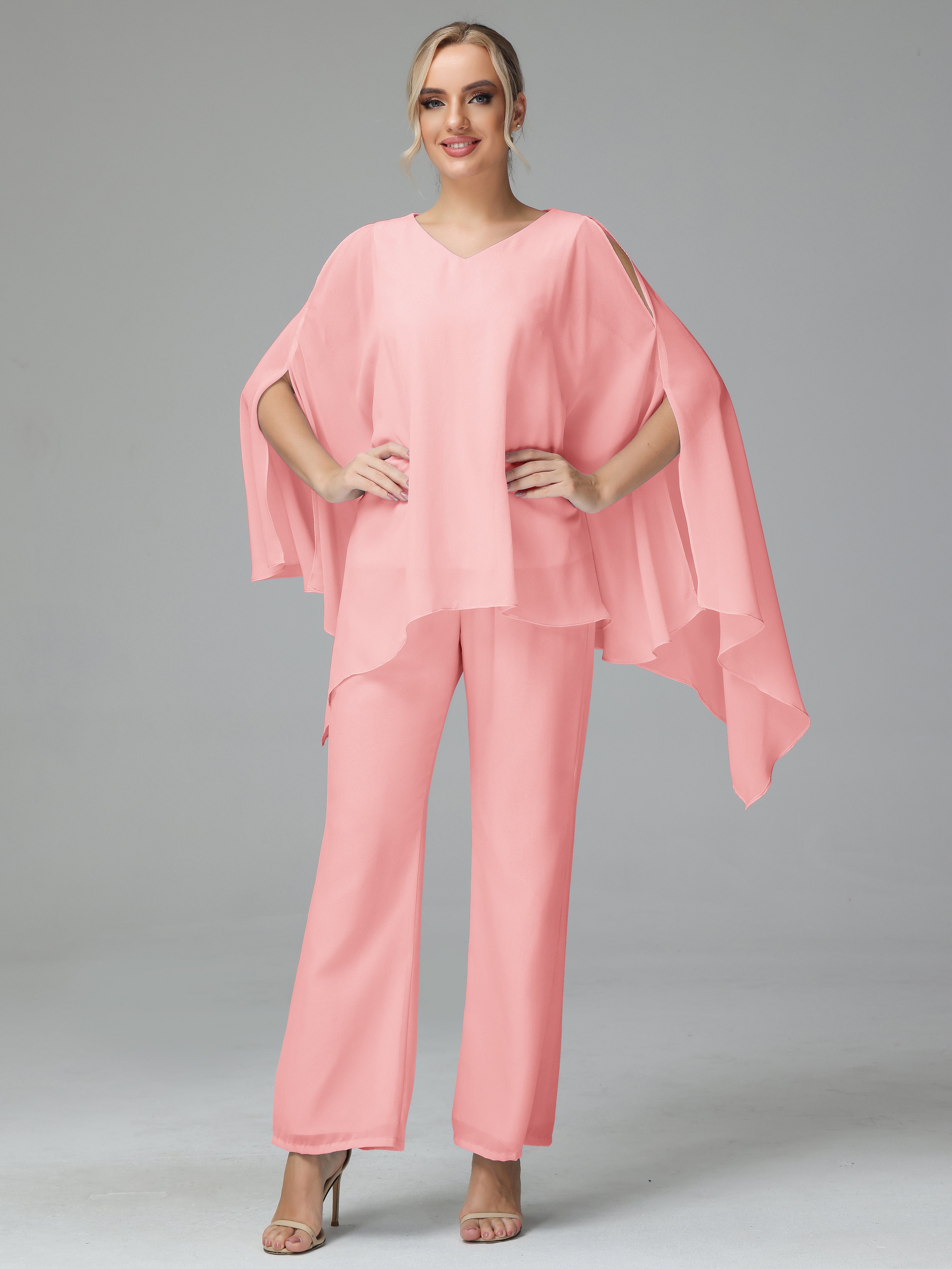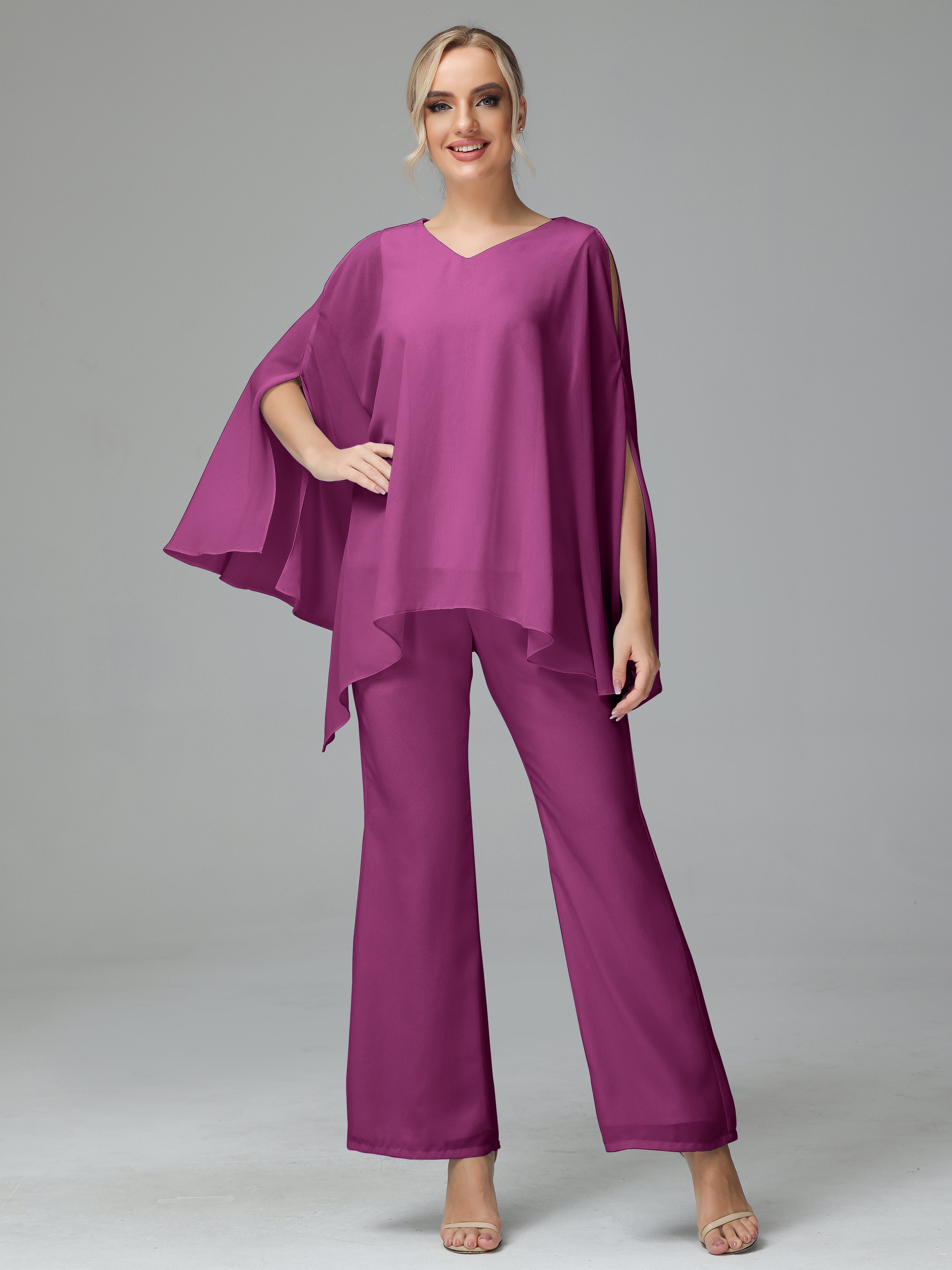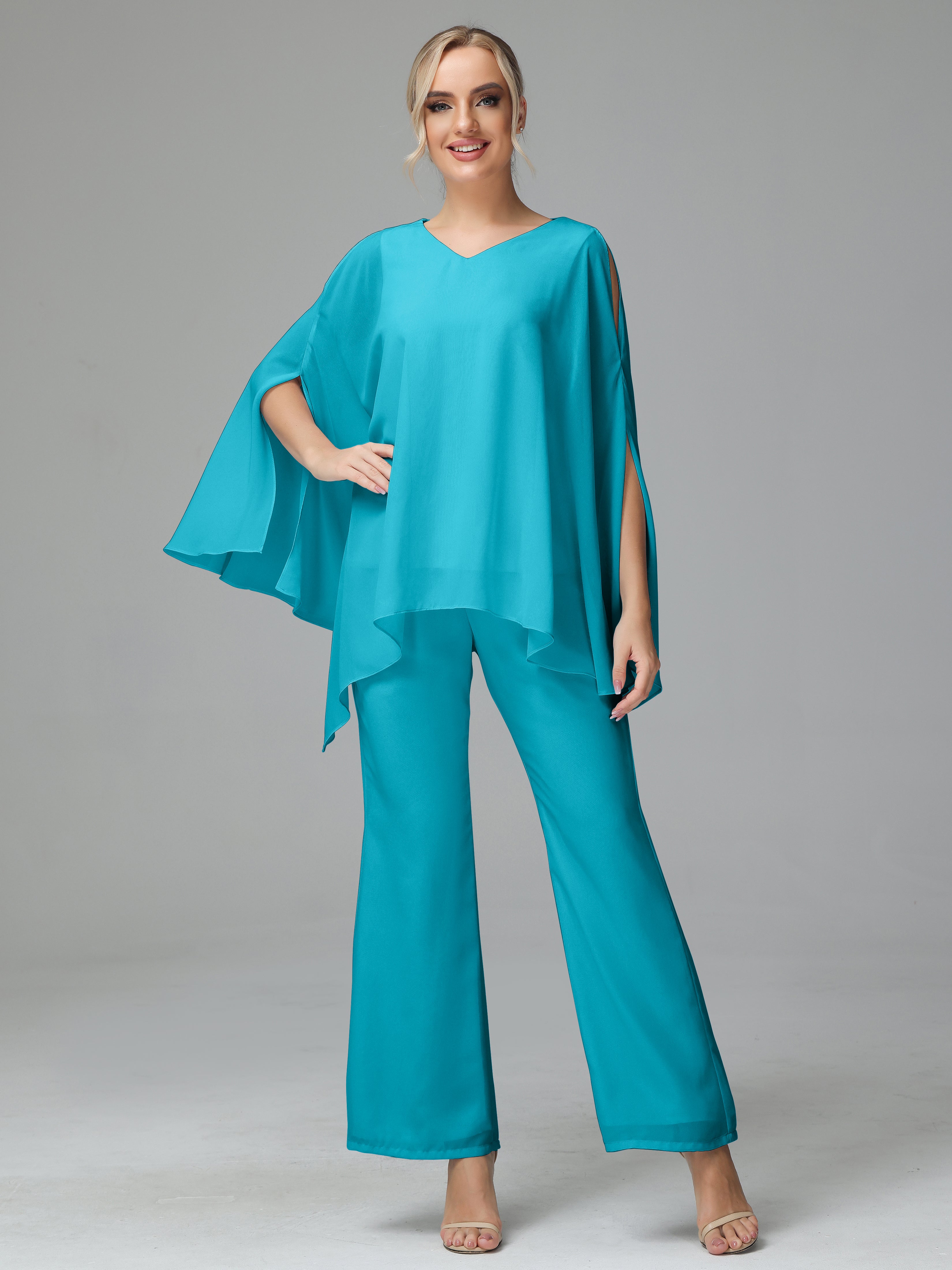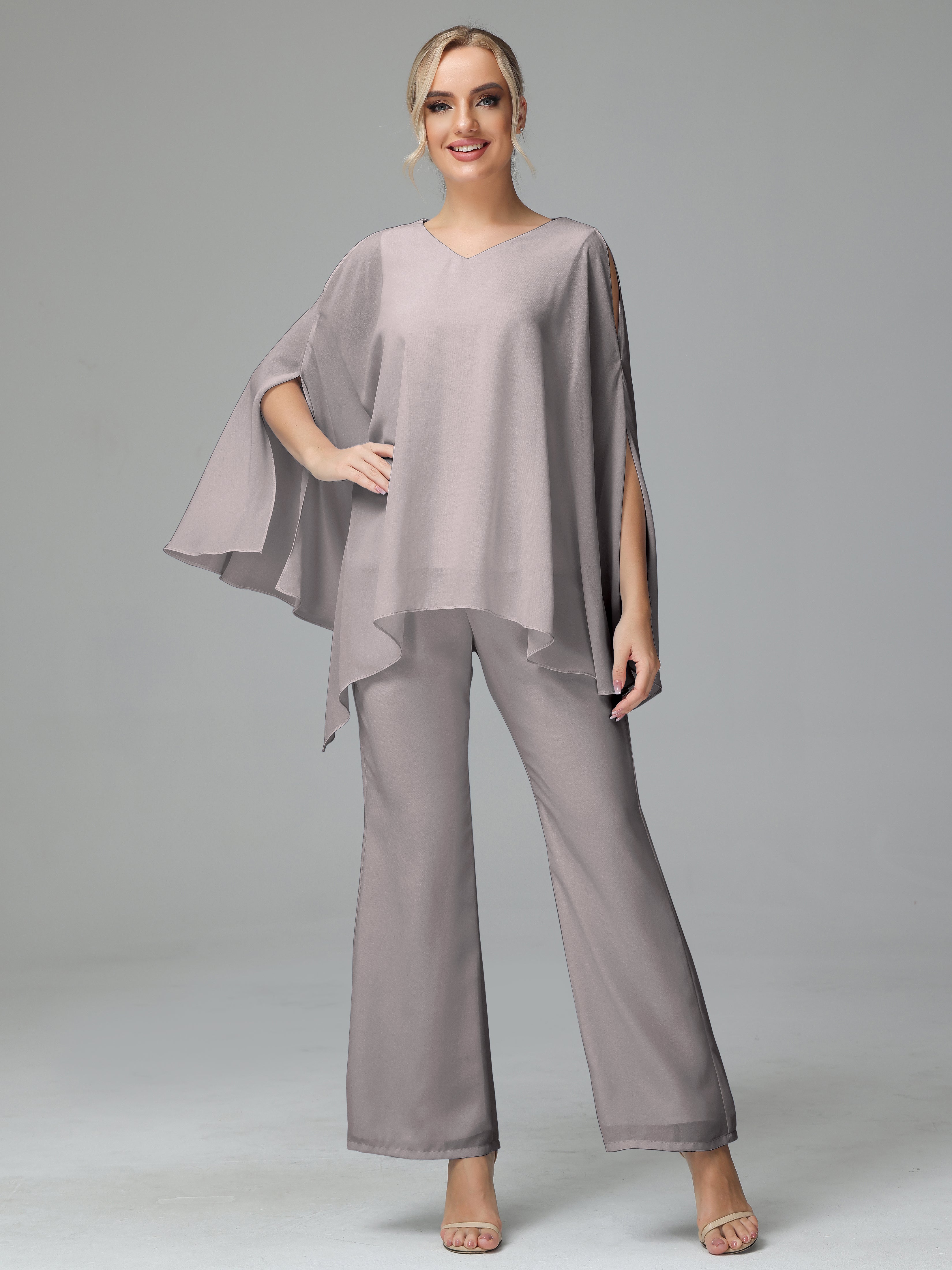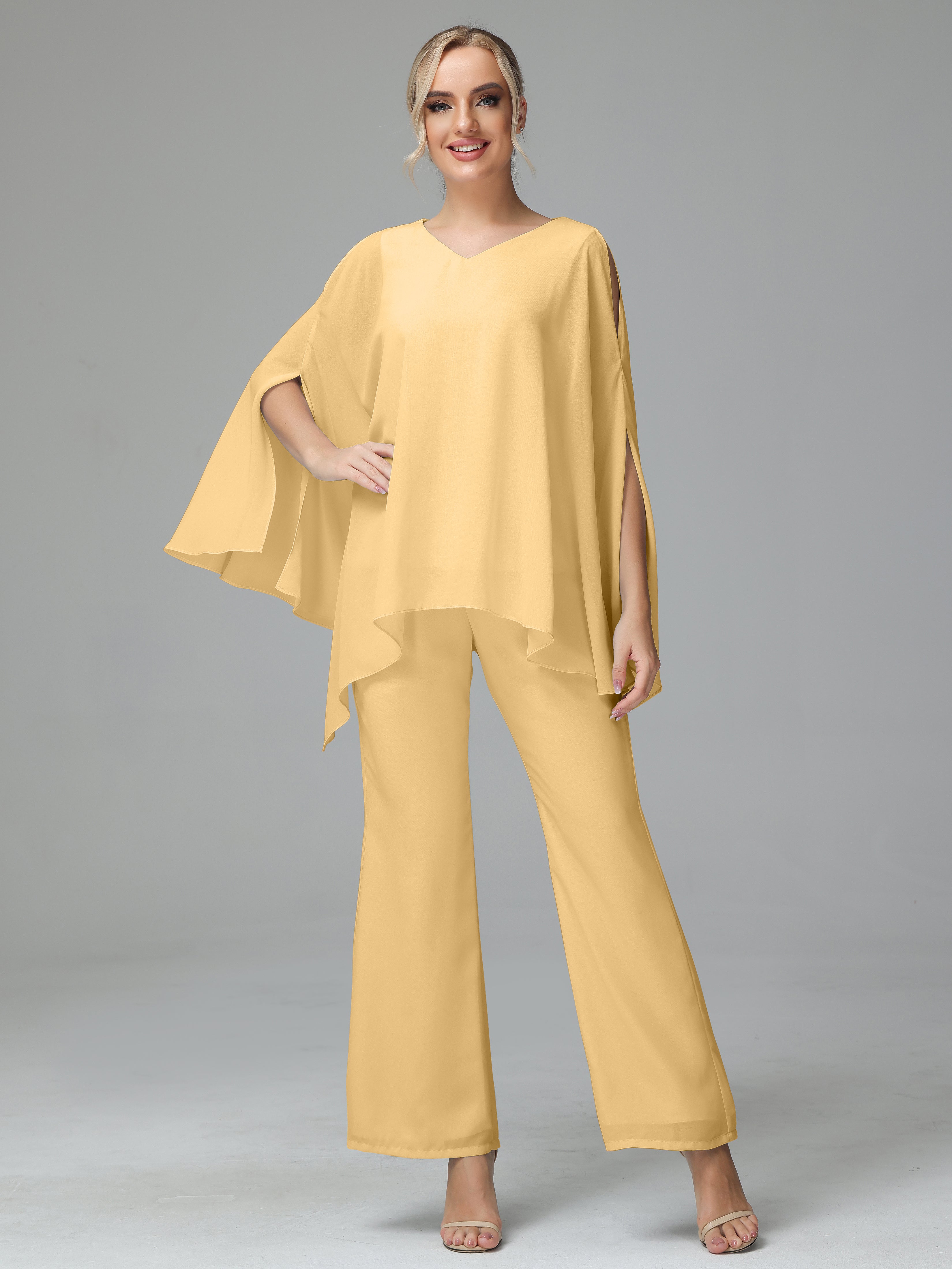 Half Sleeves V-Neck Chiffon Mother Of The Bride Dress Pants Suits
