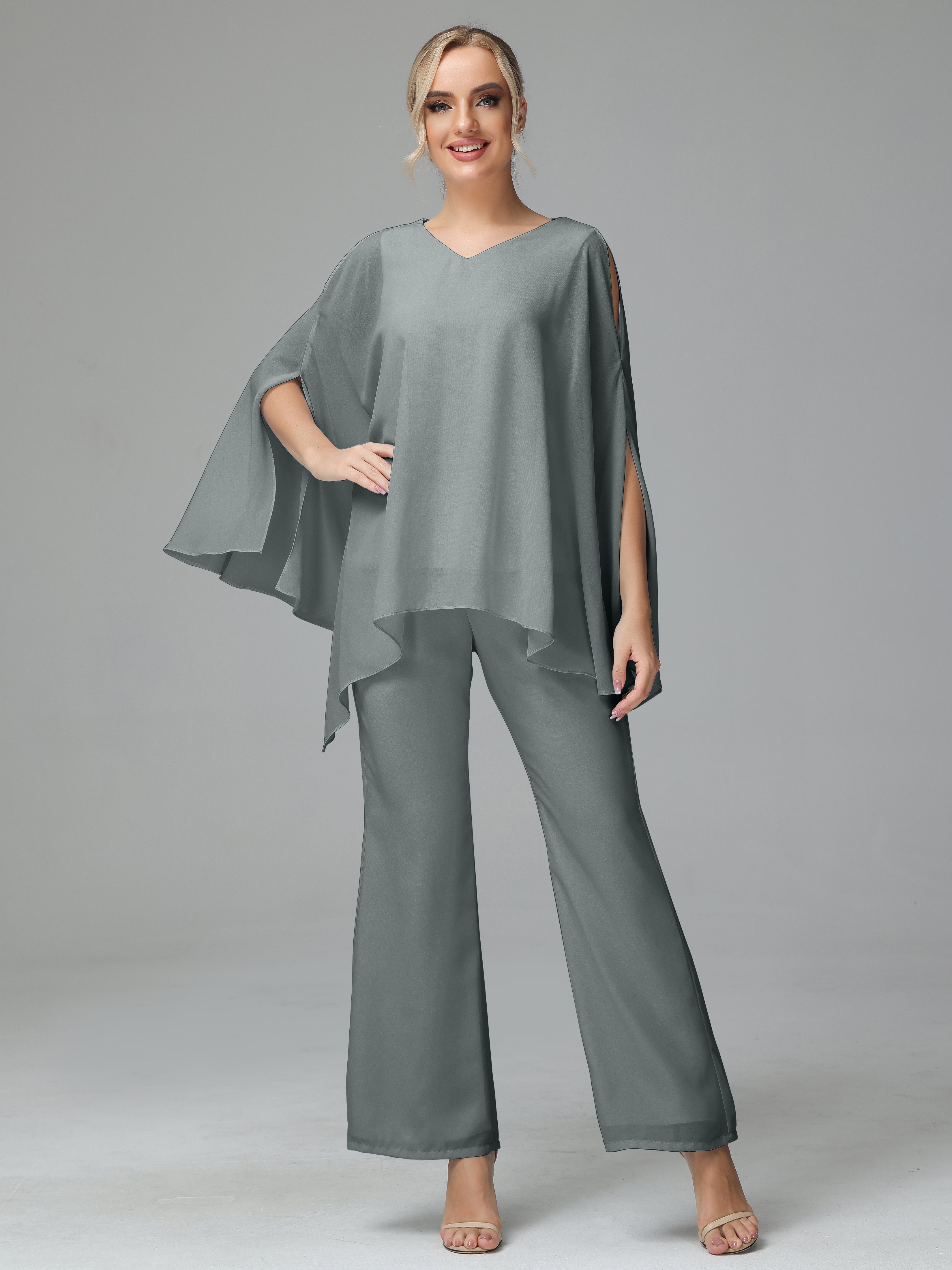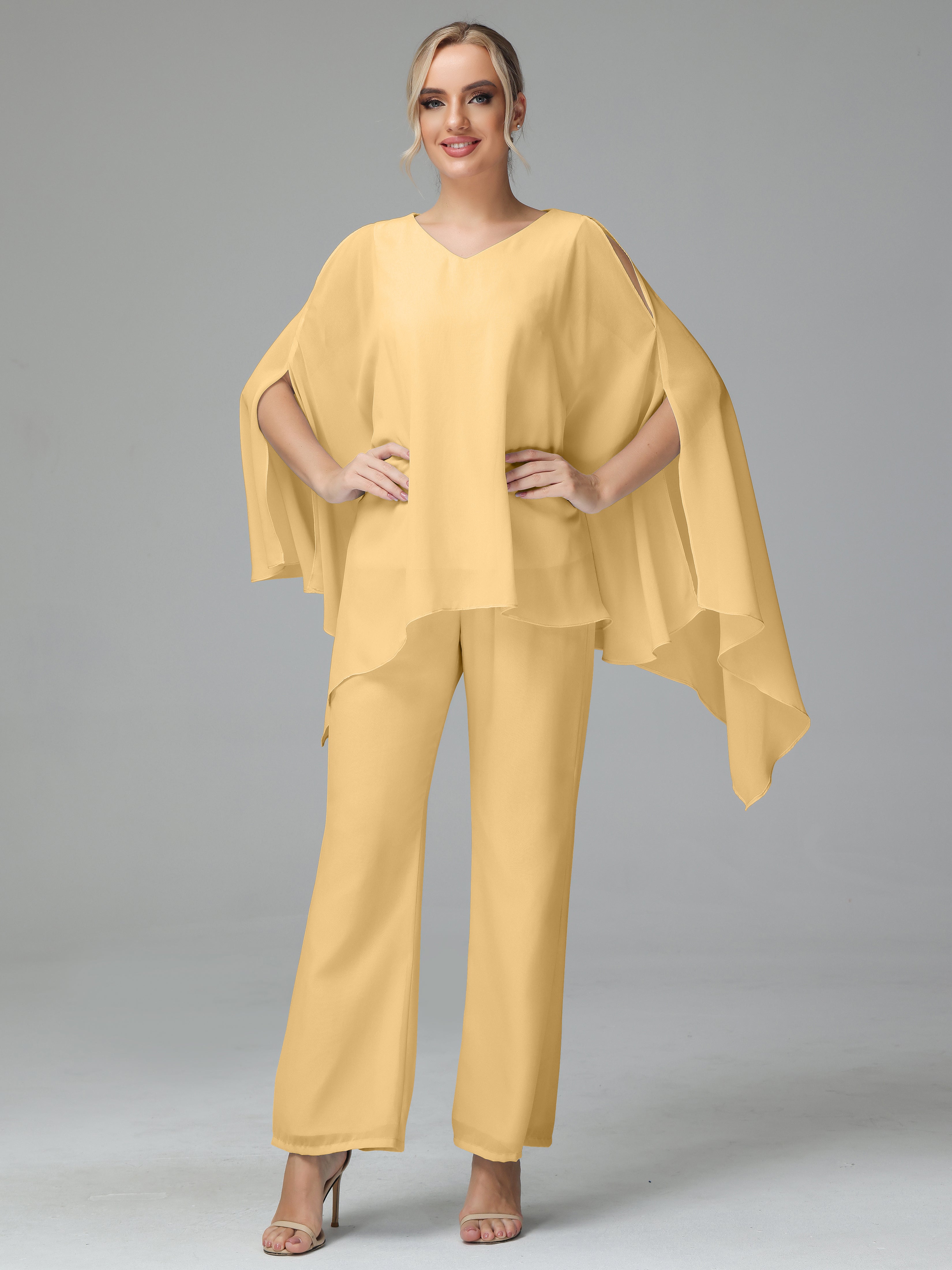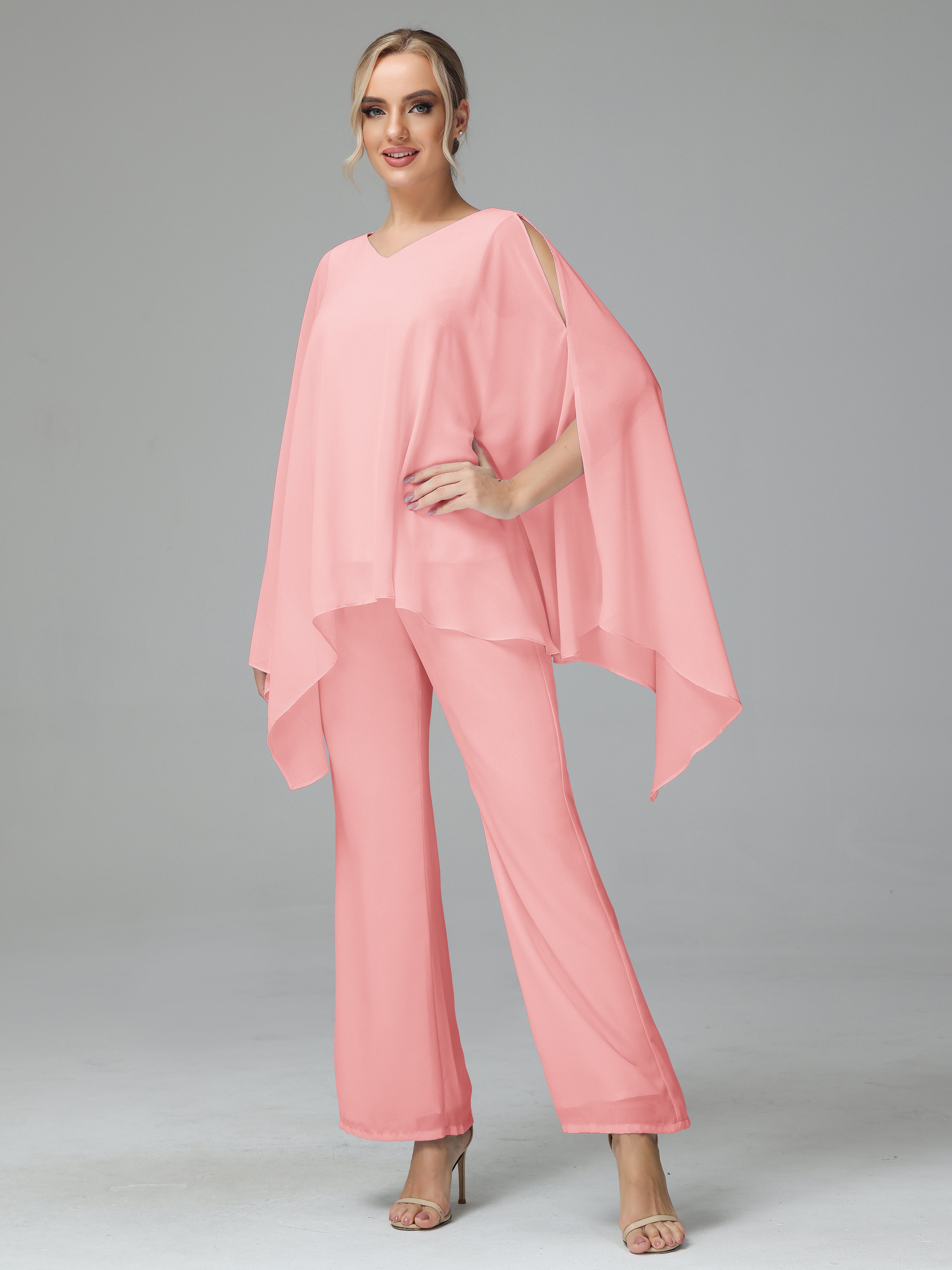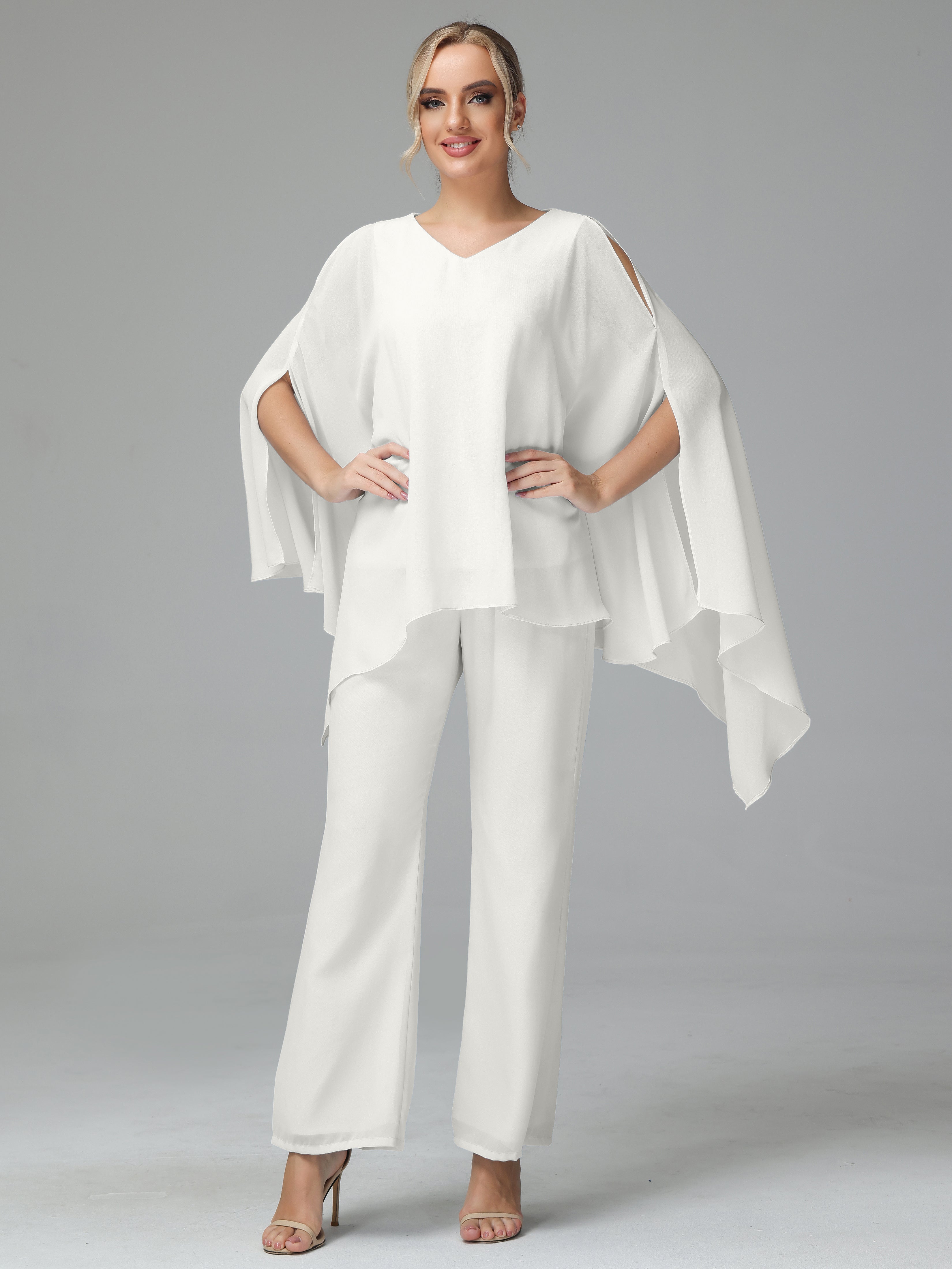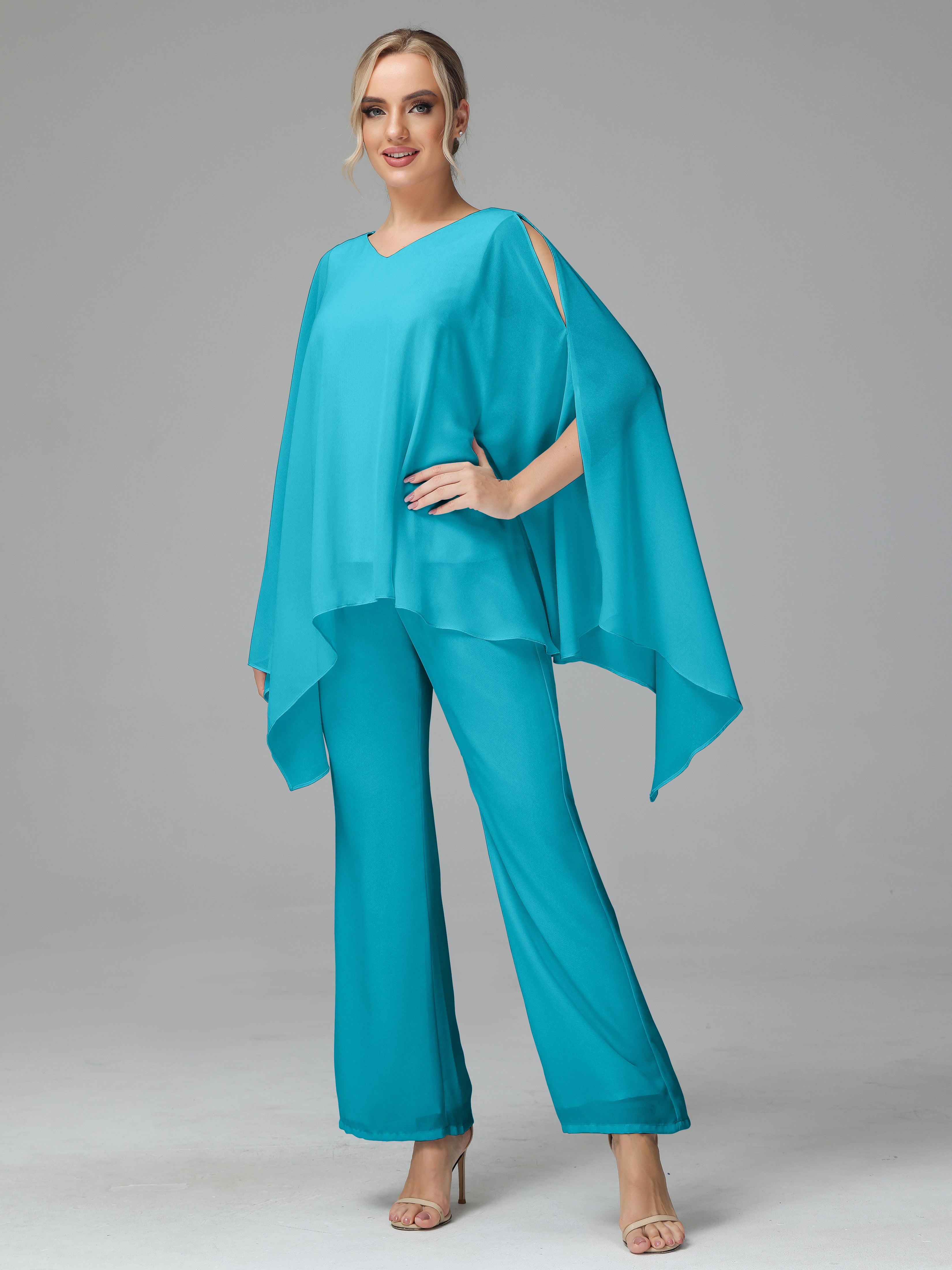 Half Sleeves V-Neck Chiffon Mother Of The Bride Dress Pants Suits