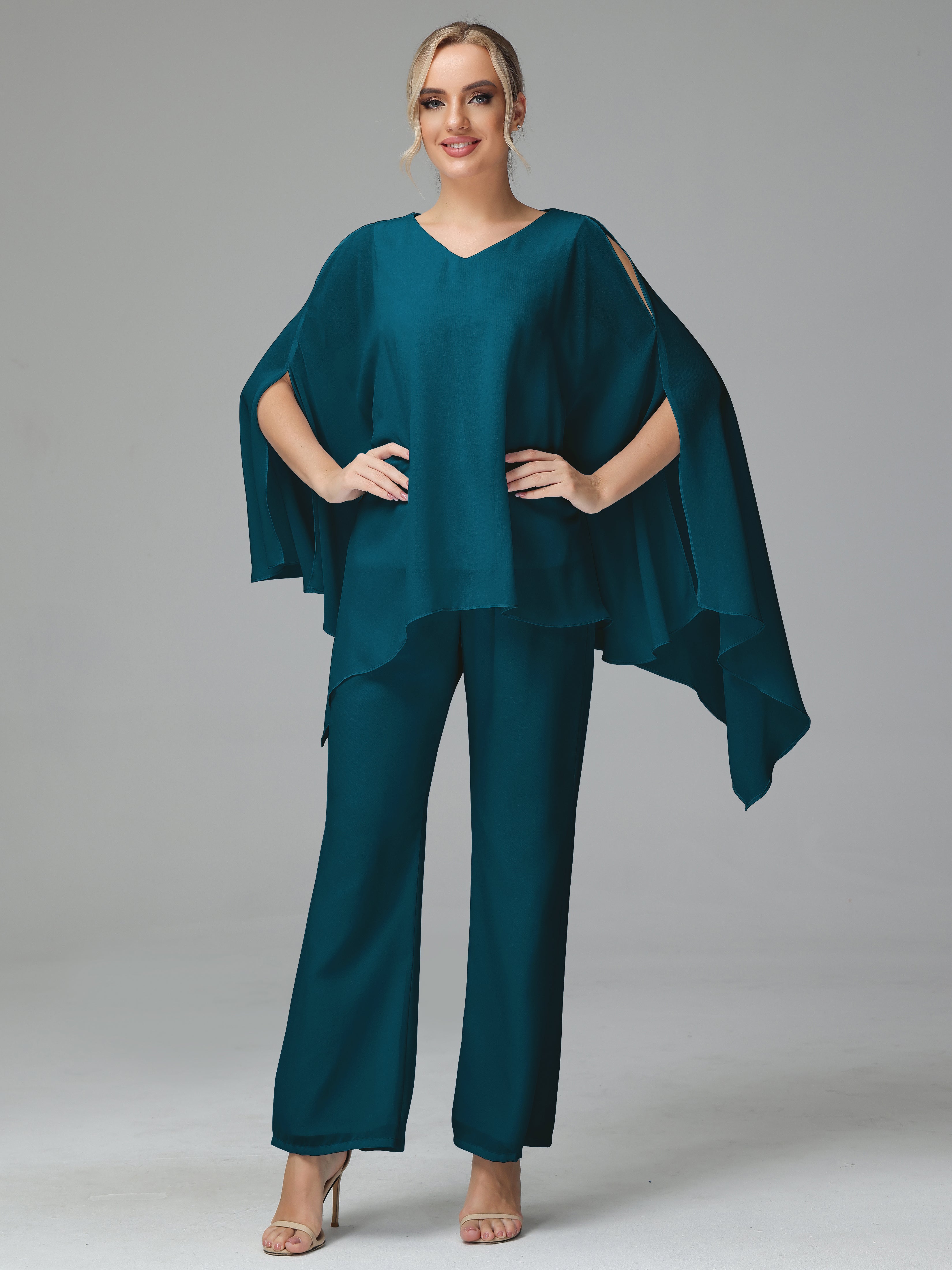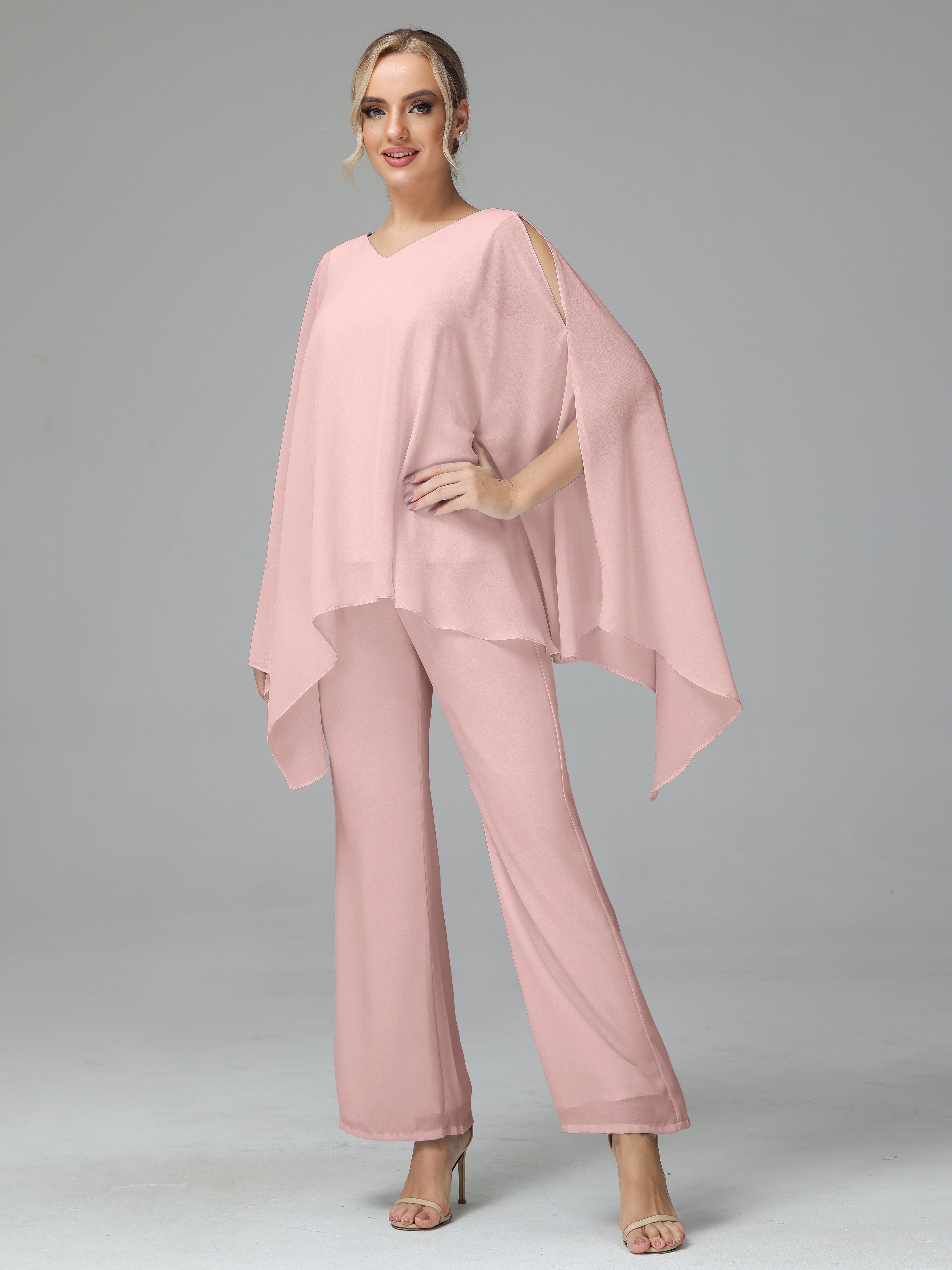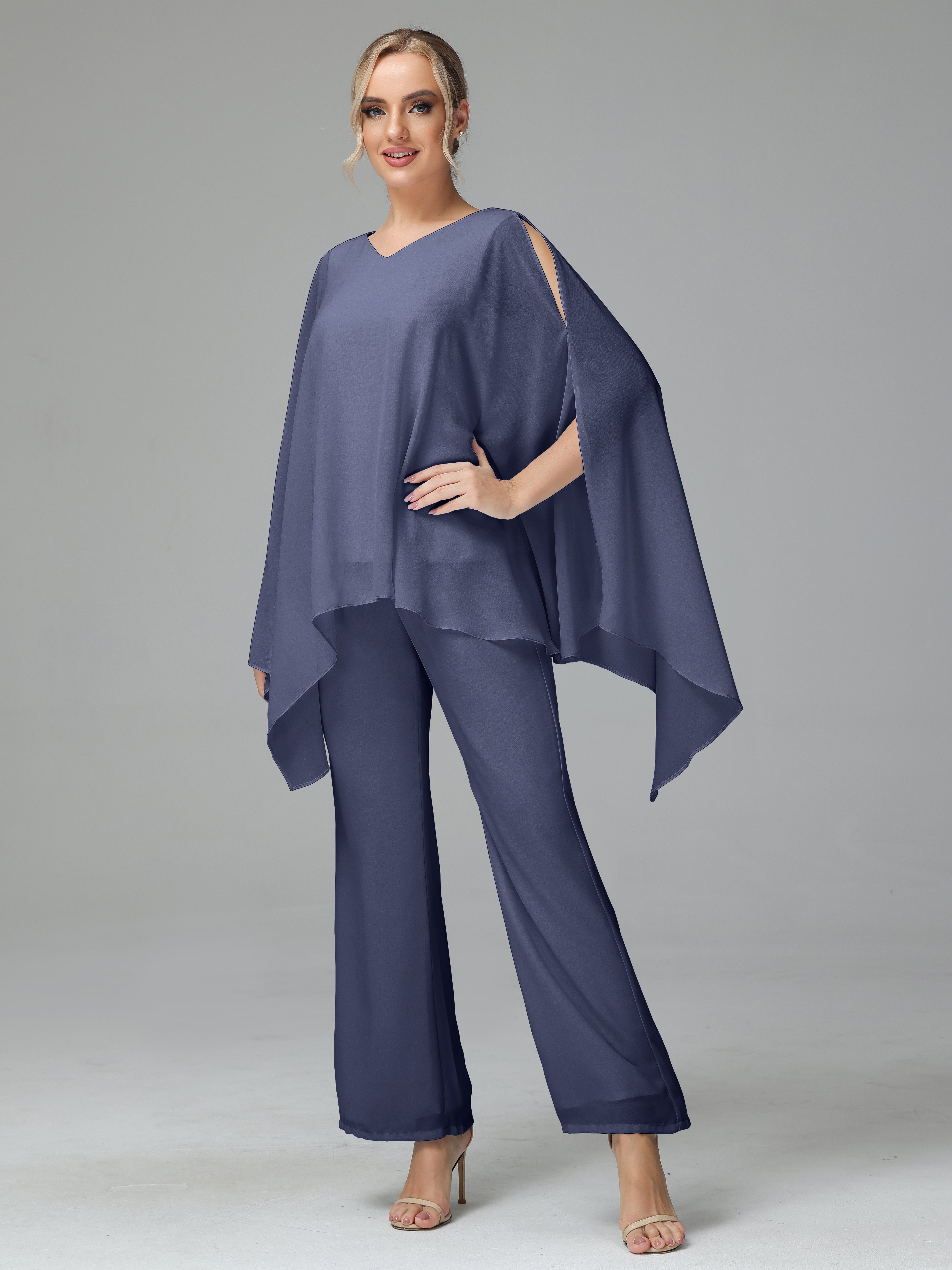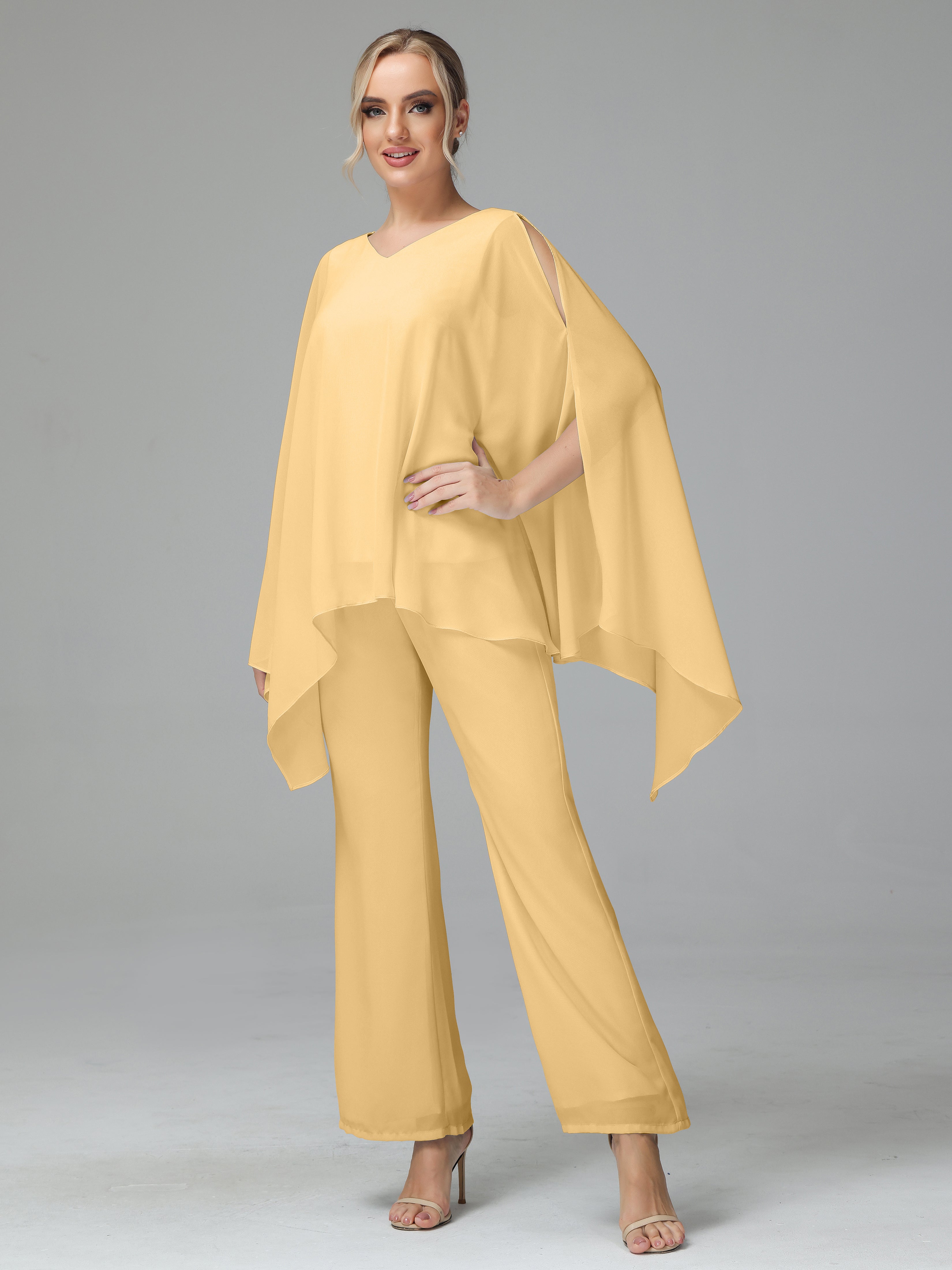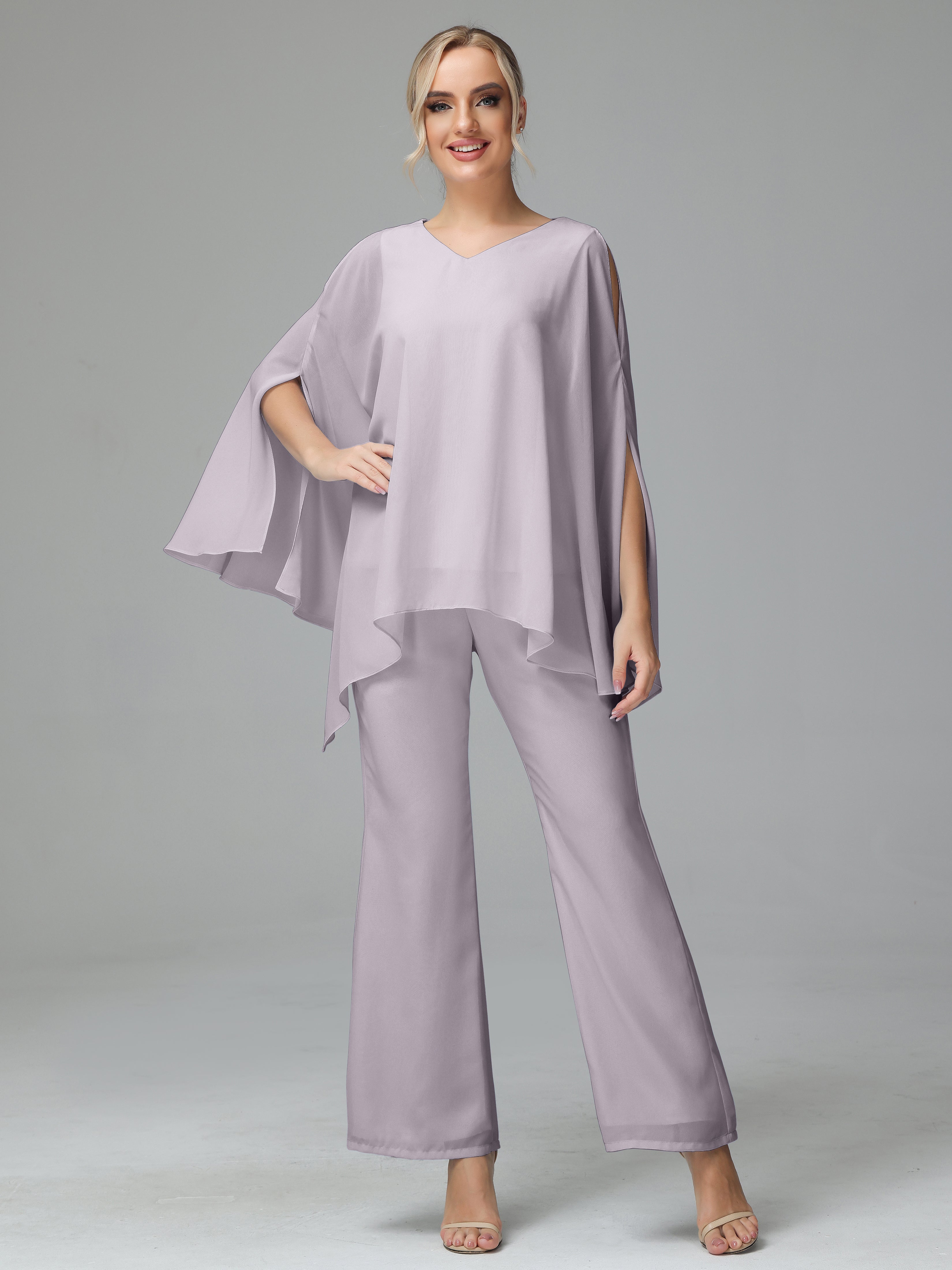 Half Sleeves V-Neck Chiffon Mother Of The Bride Dress Pants Suits