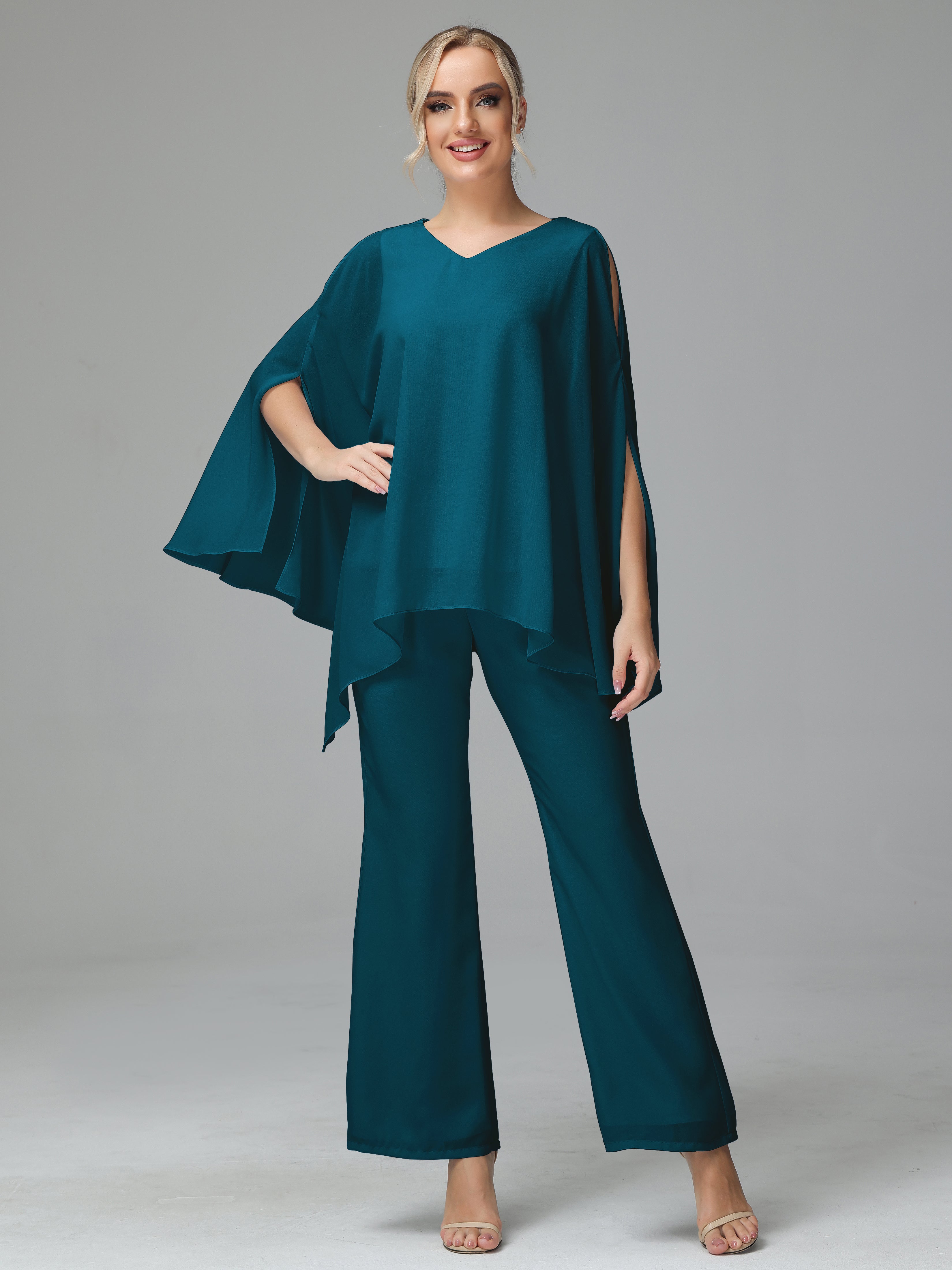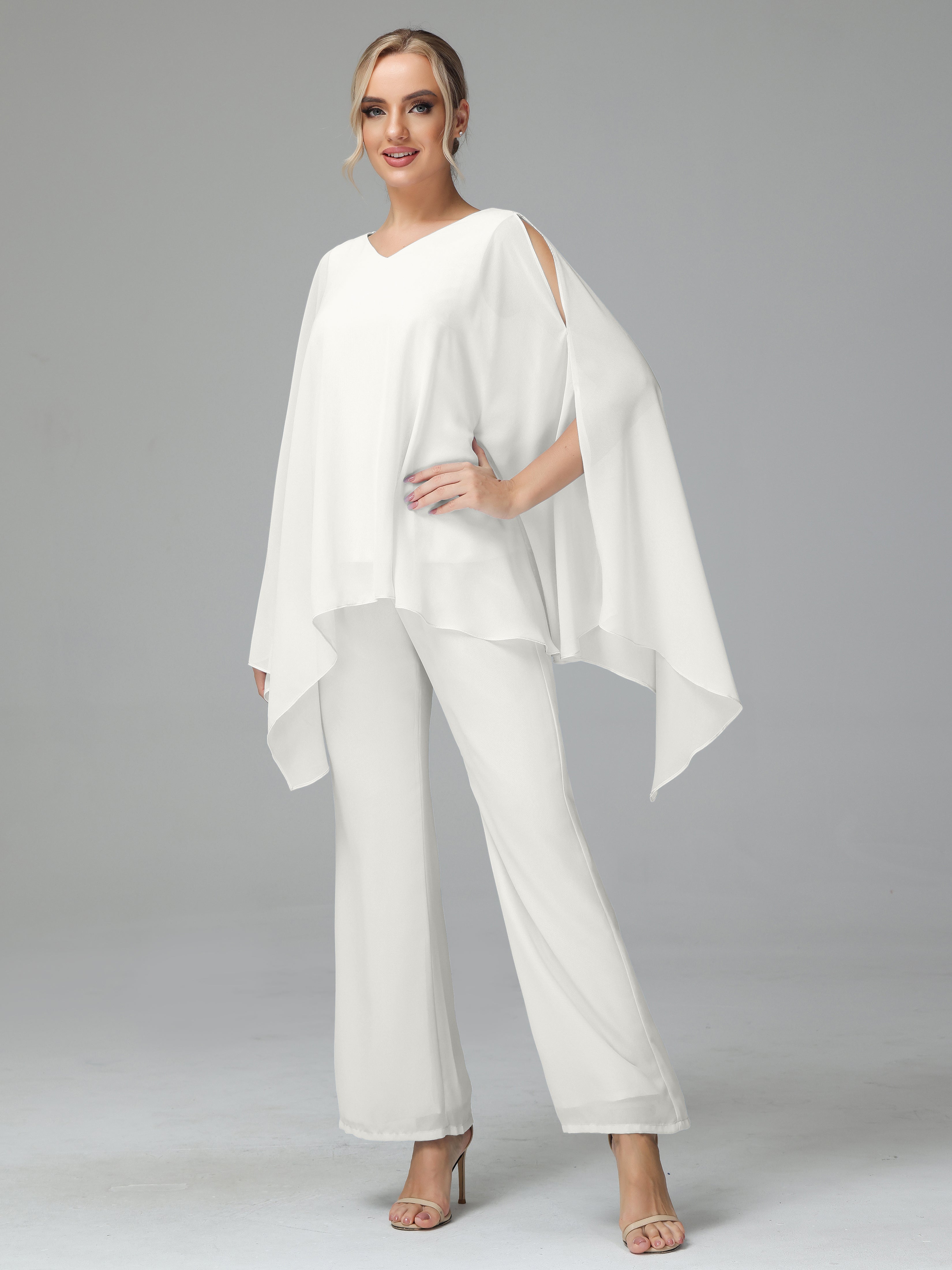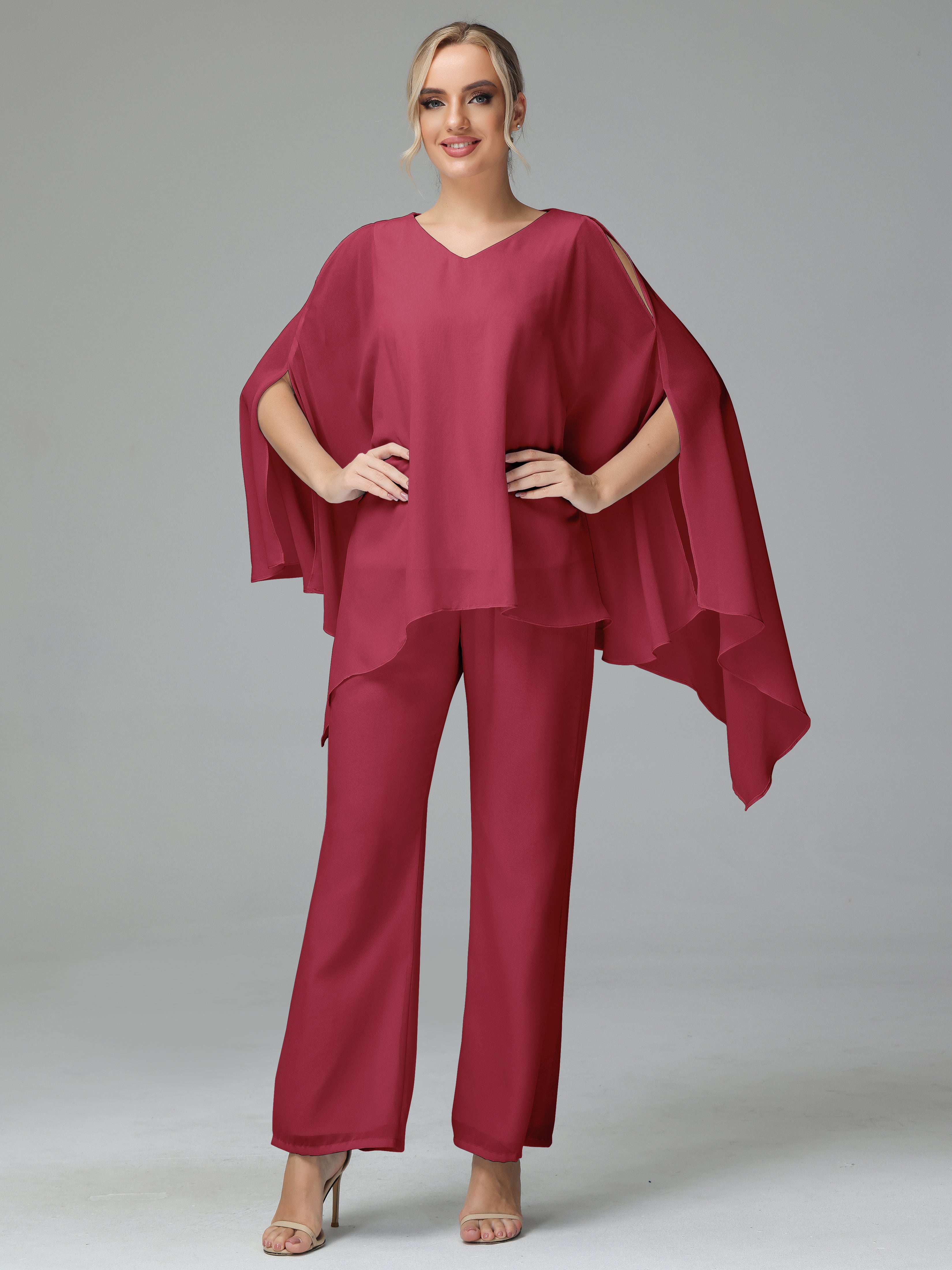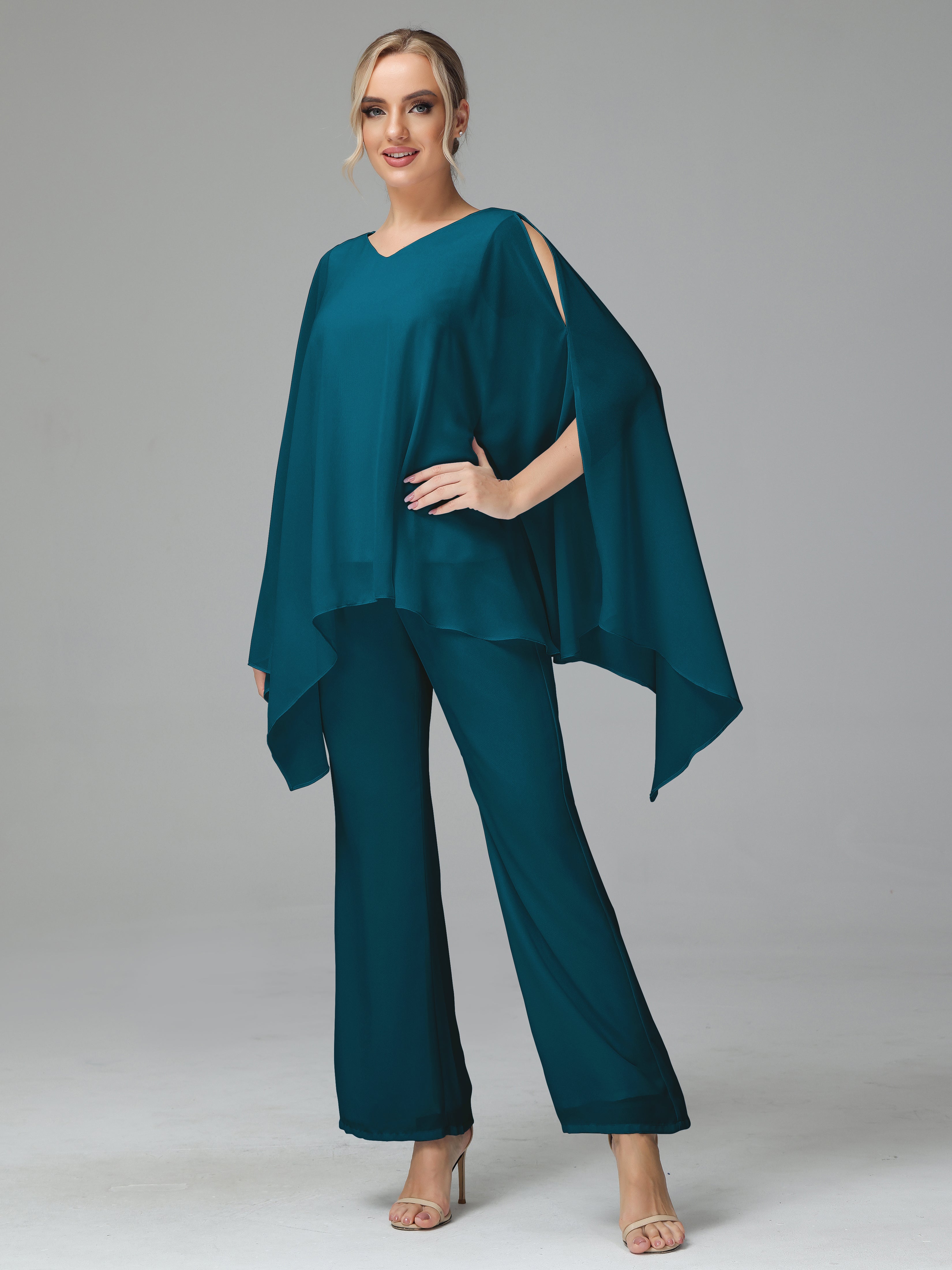 Half Sleeves V-Neck Chiffon Mother Of The Bride Dress Pants Suits