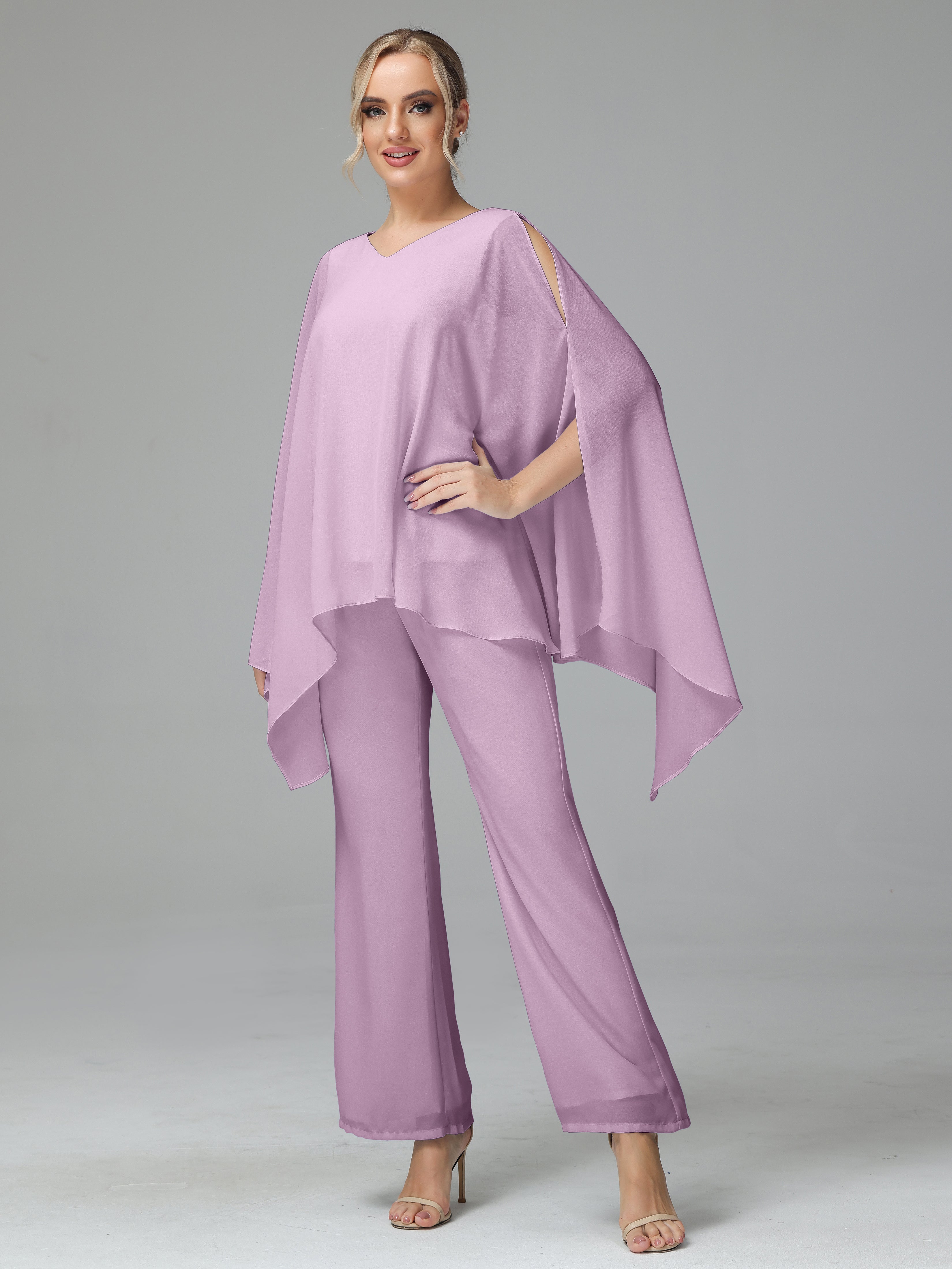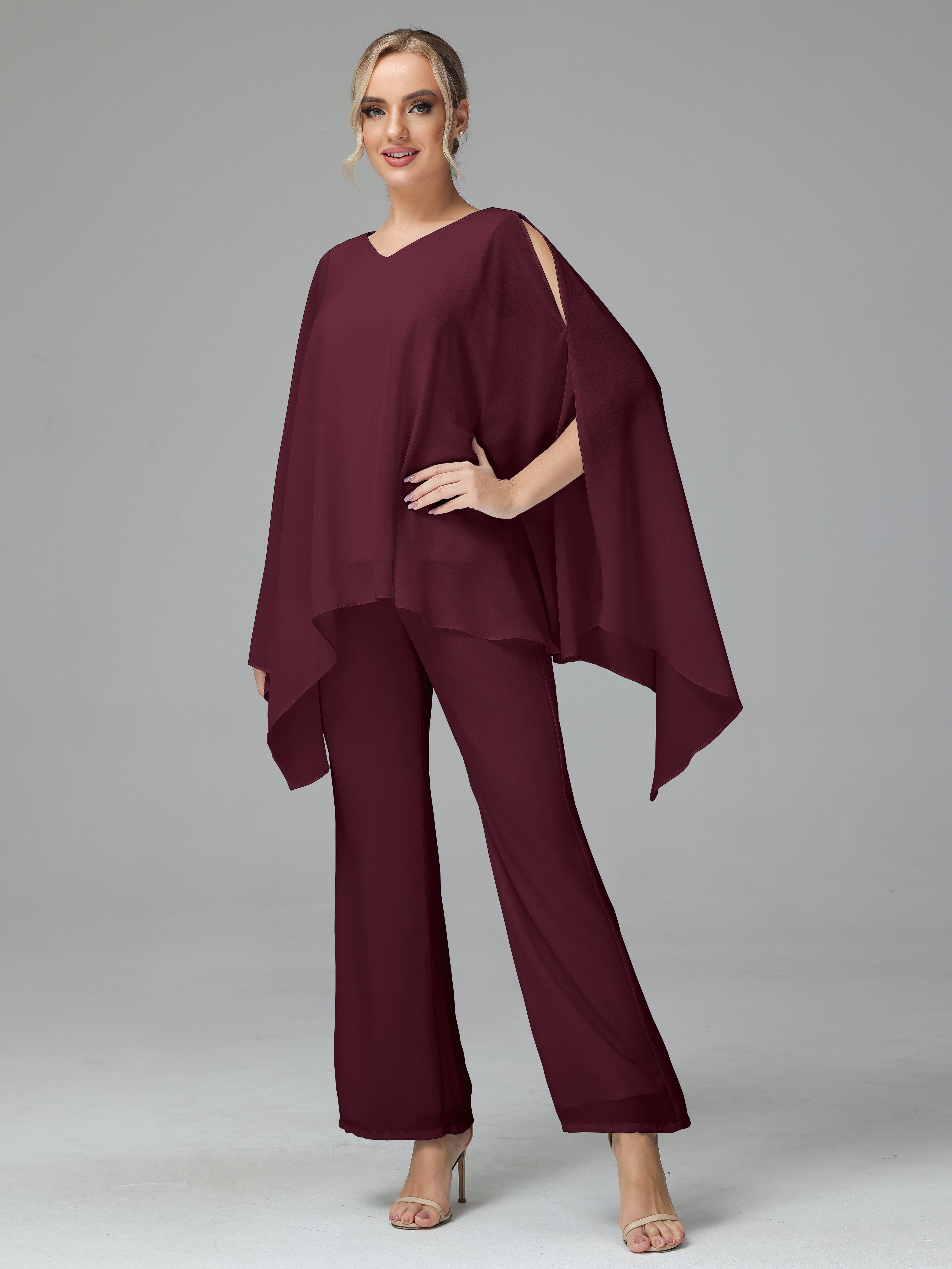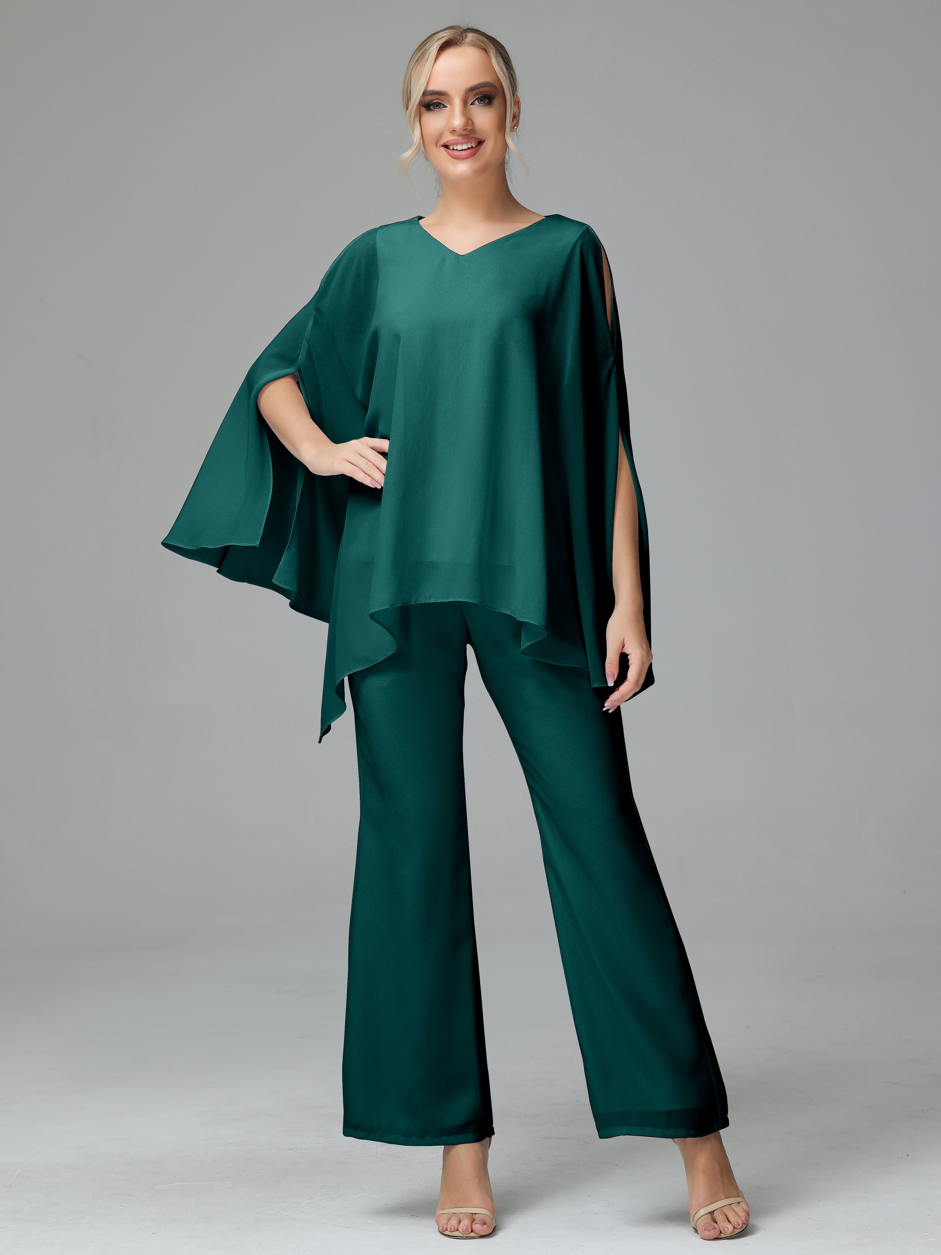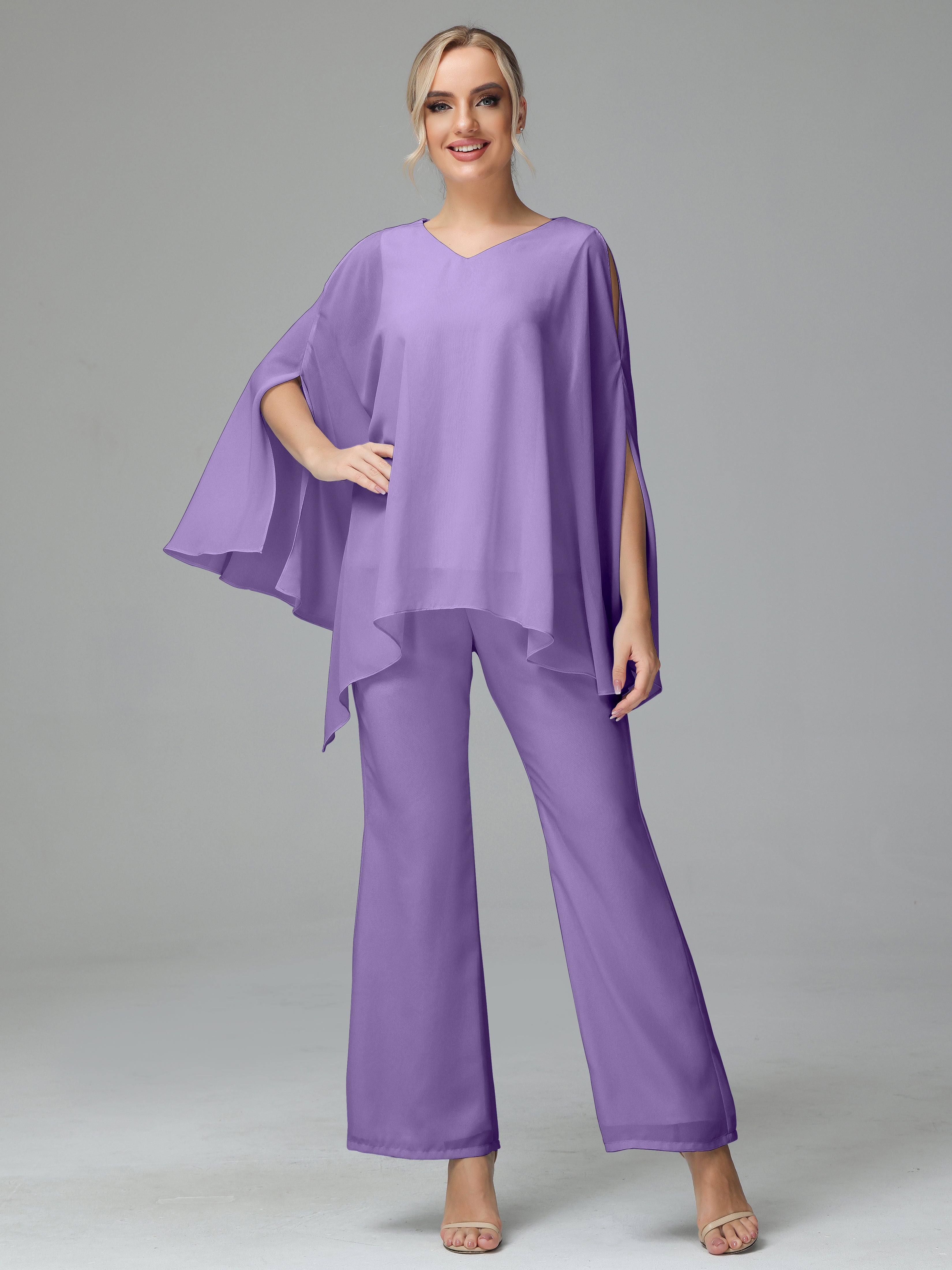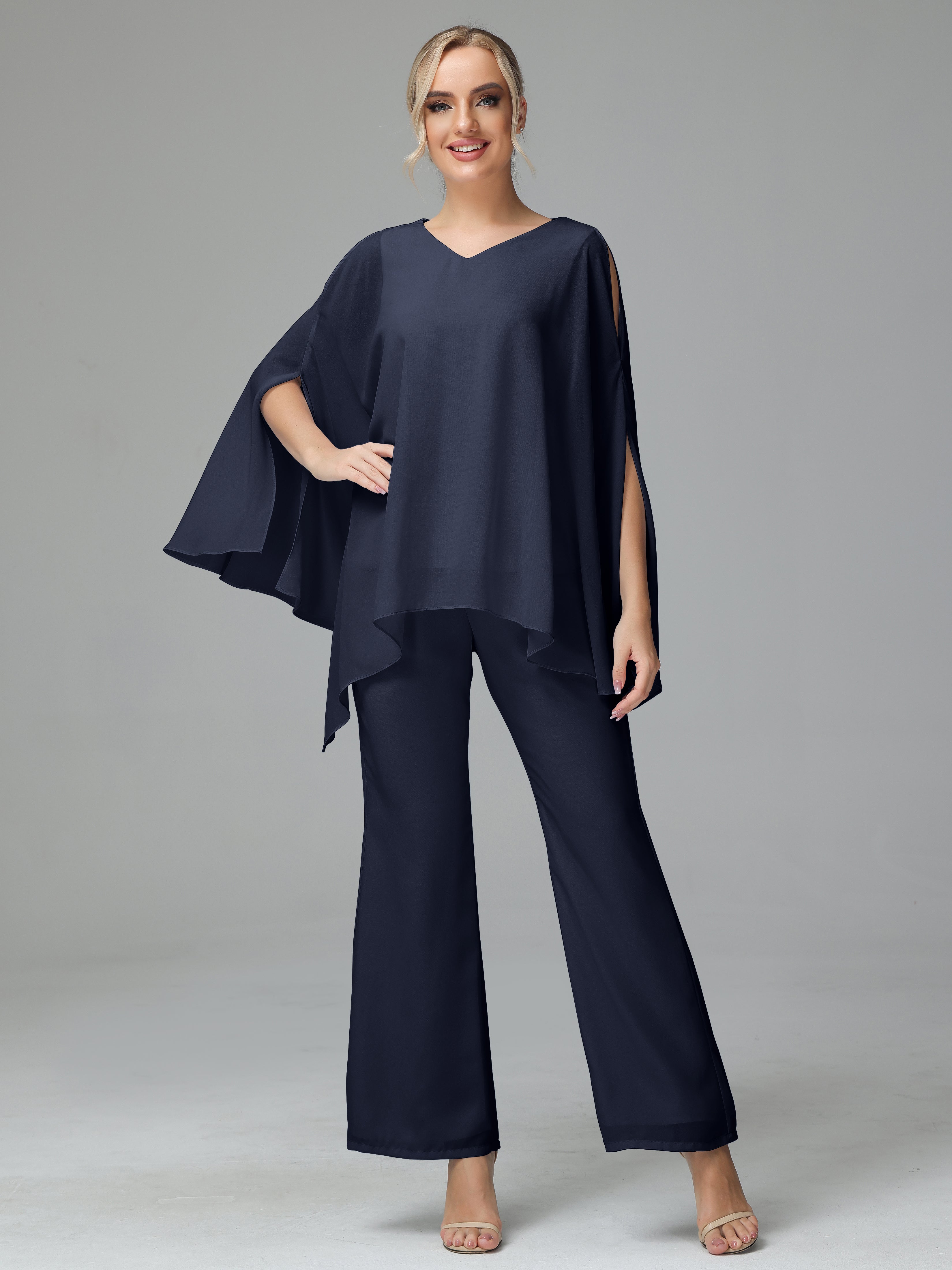 Half Sleeves V-Neck Chiffon Mother Of The Bride Dress Pants Suits