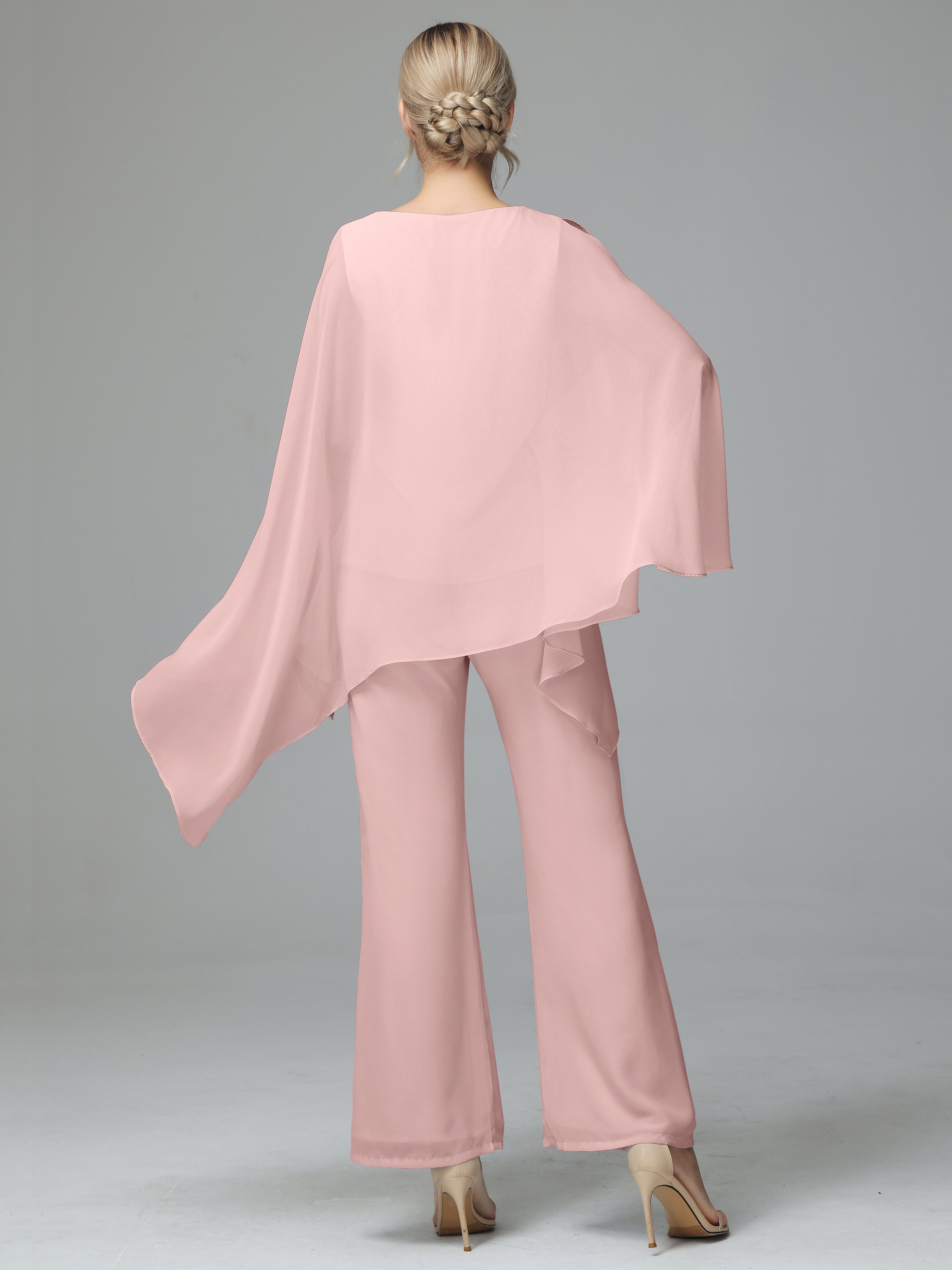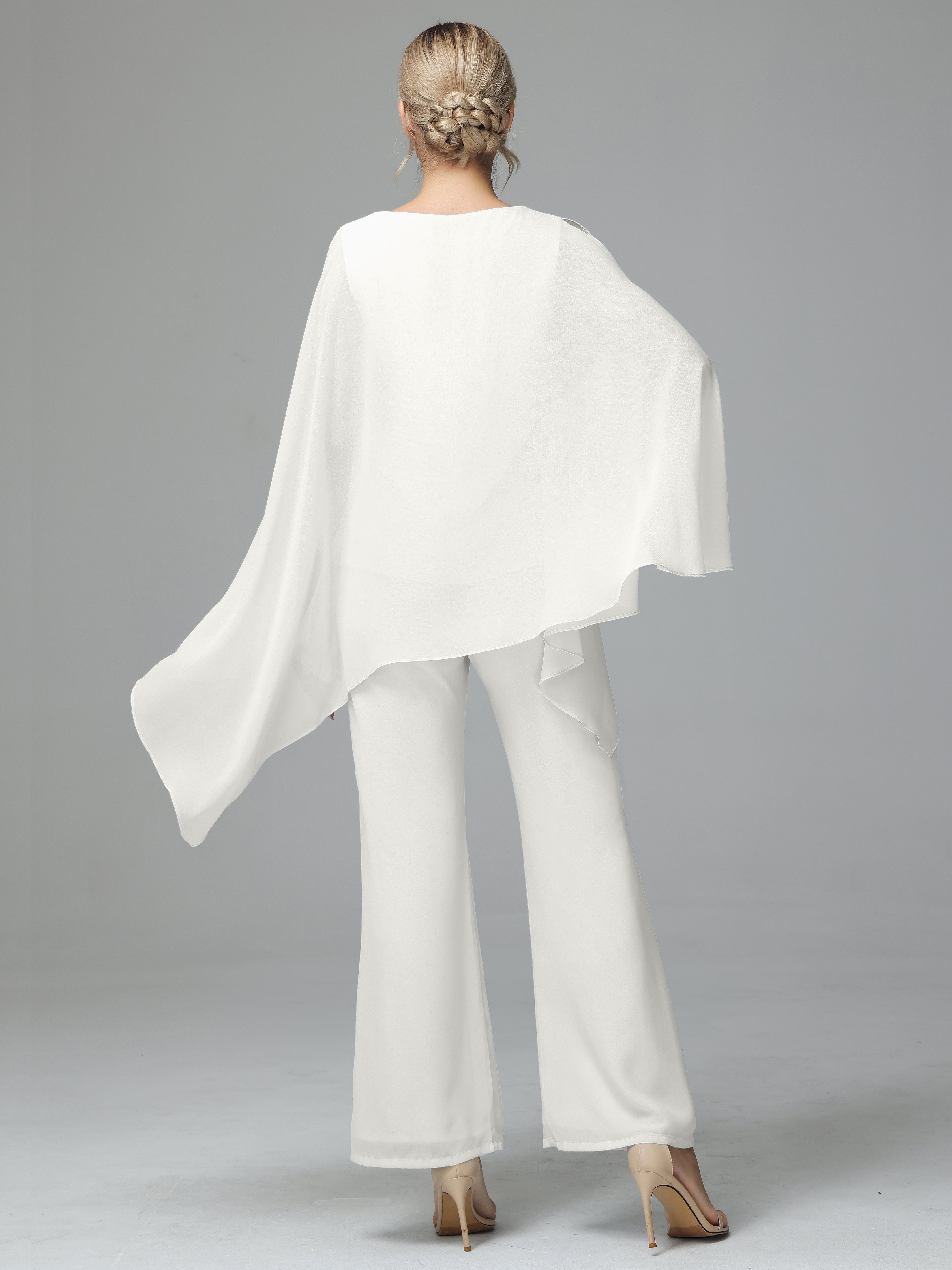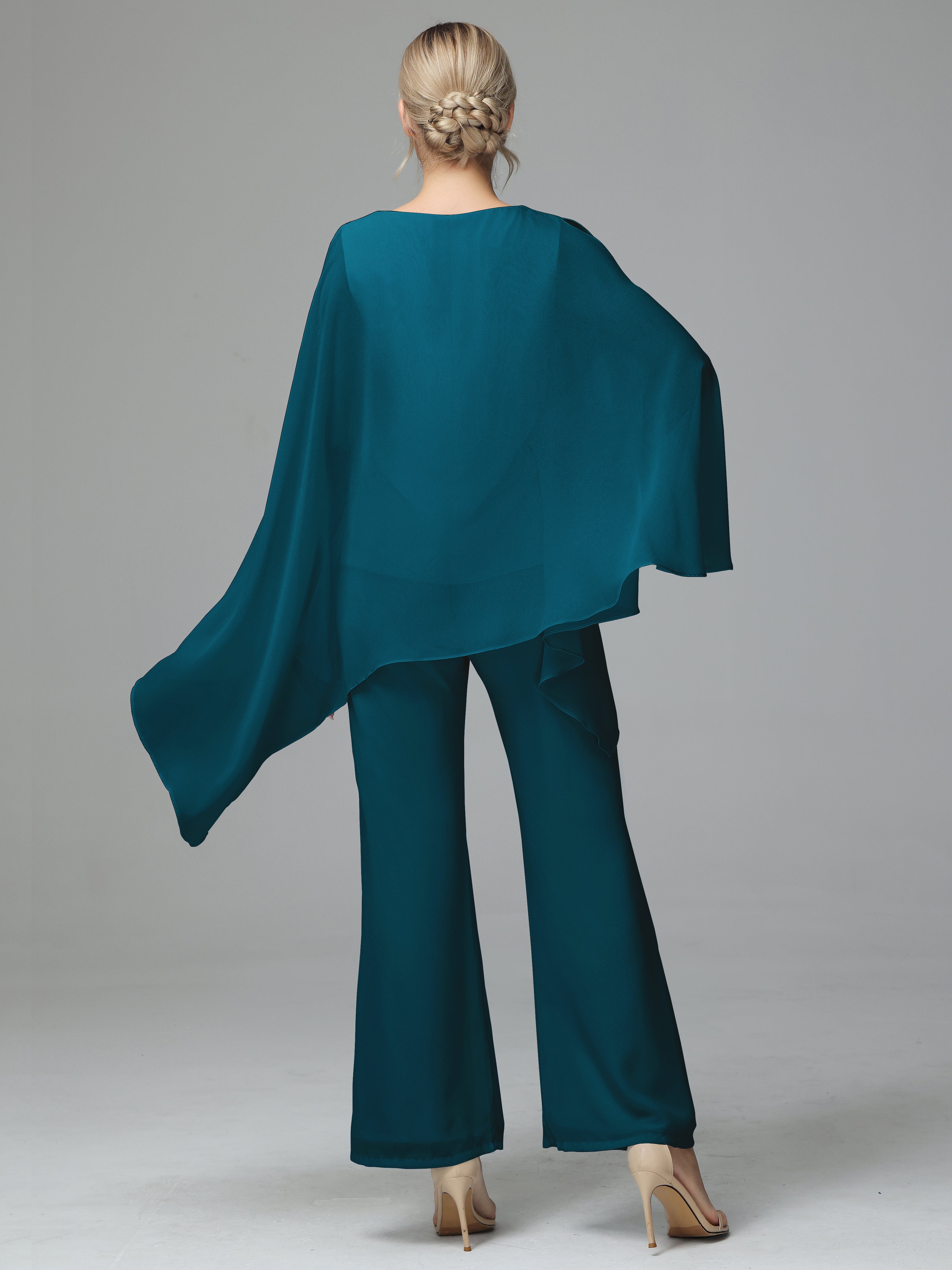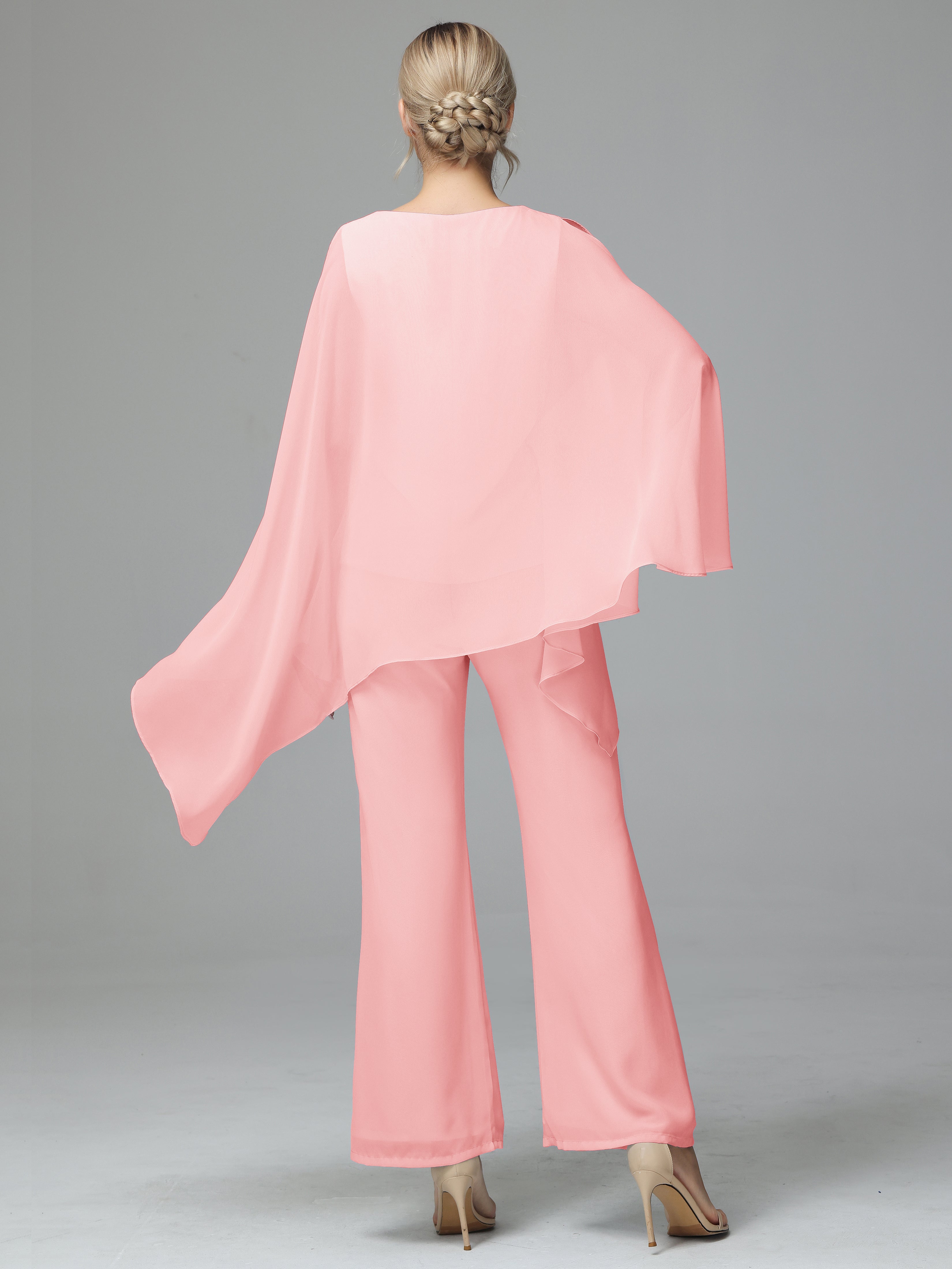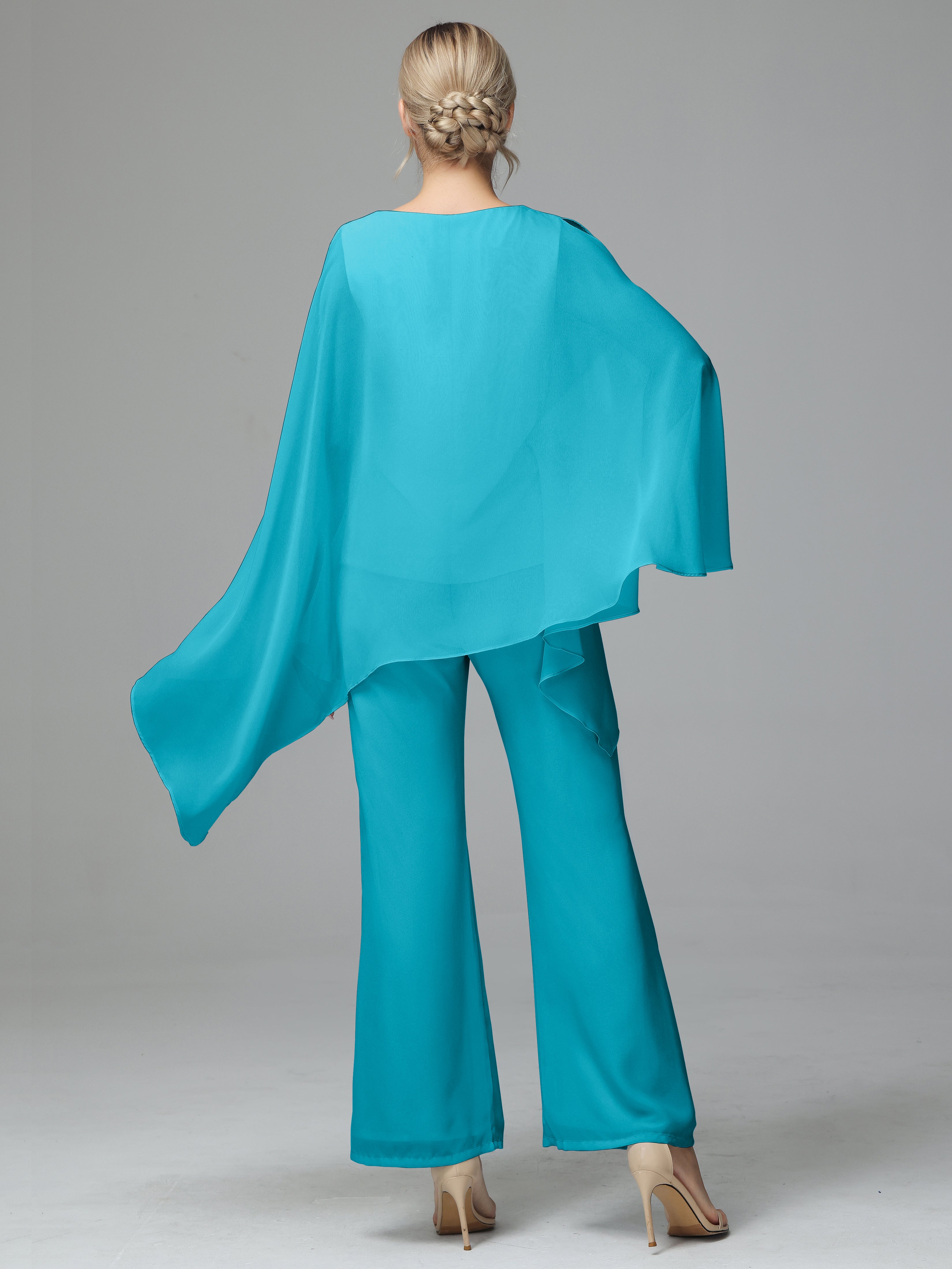 Half Sleeves V-Neck Chiffon Mother Of The Bride Dress Pants Suits