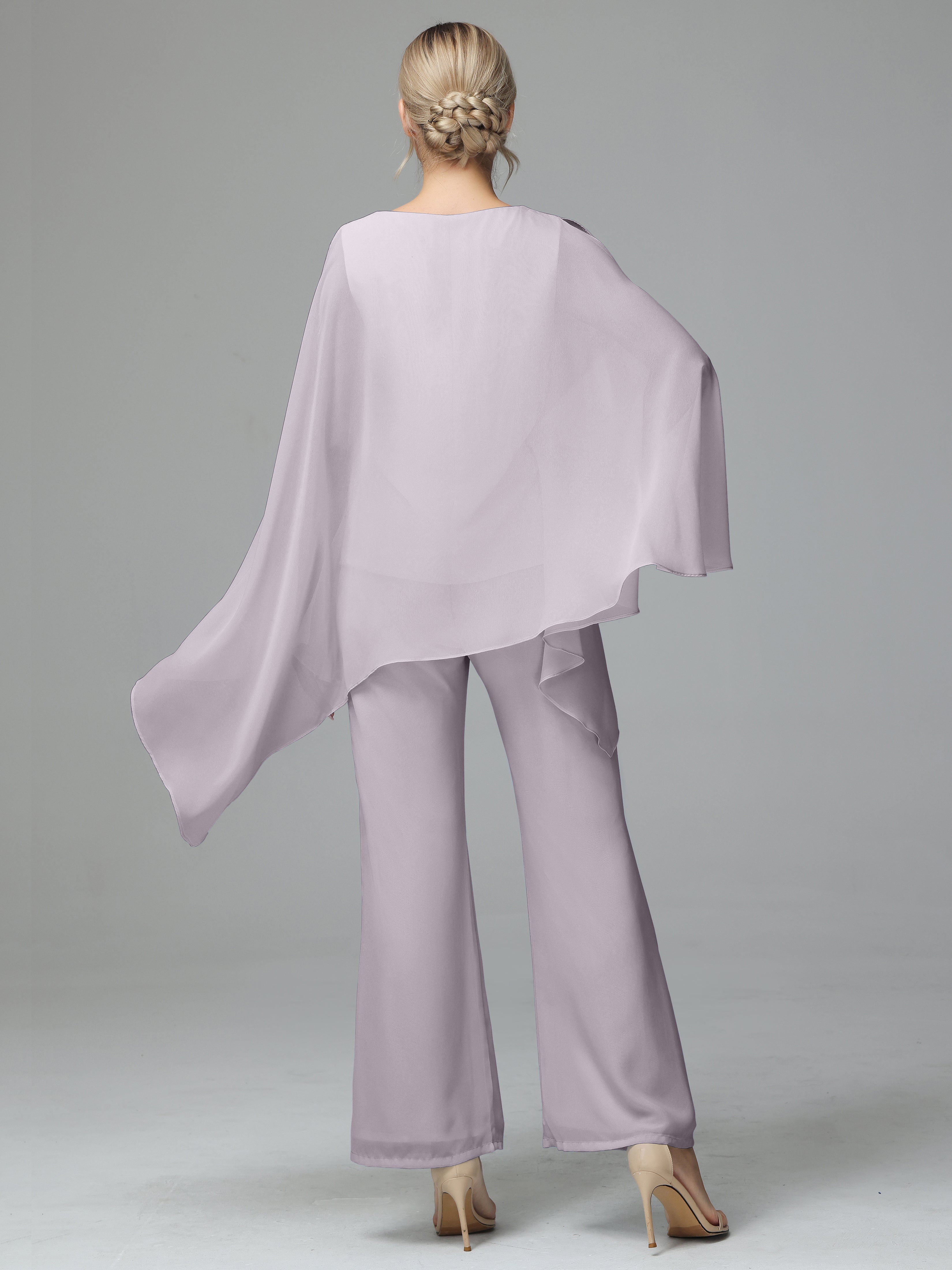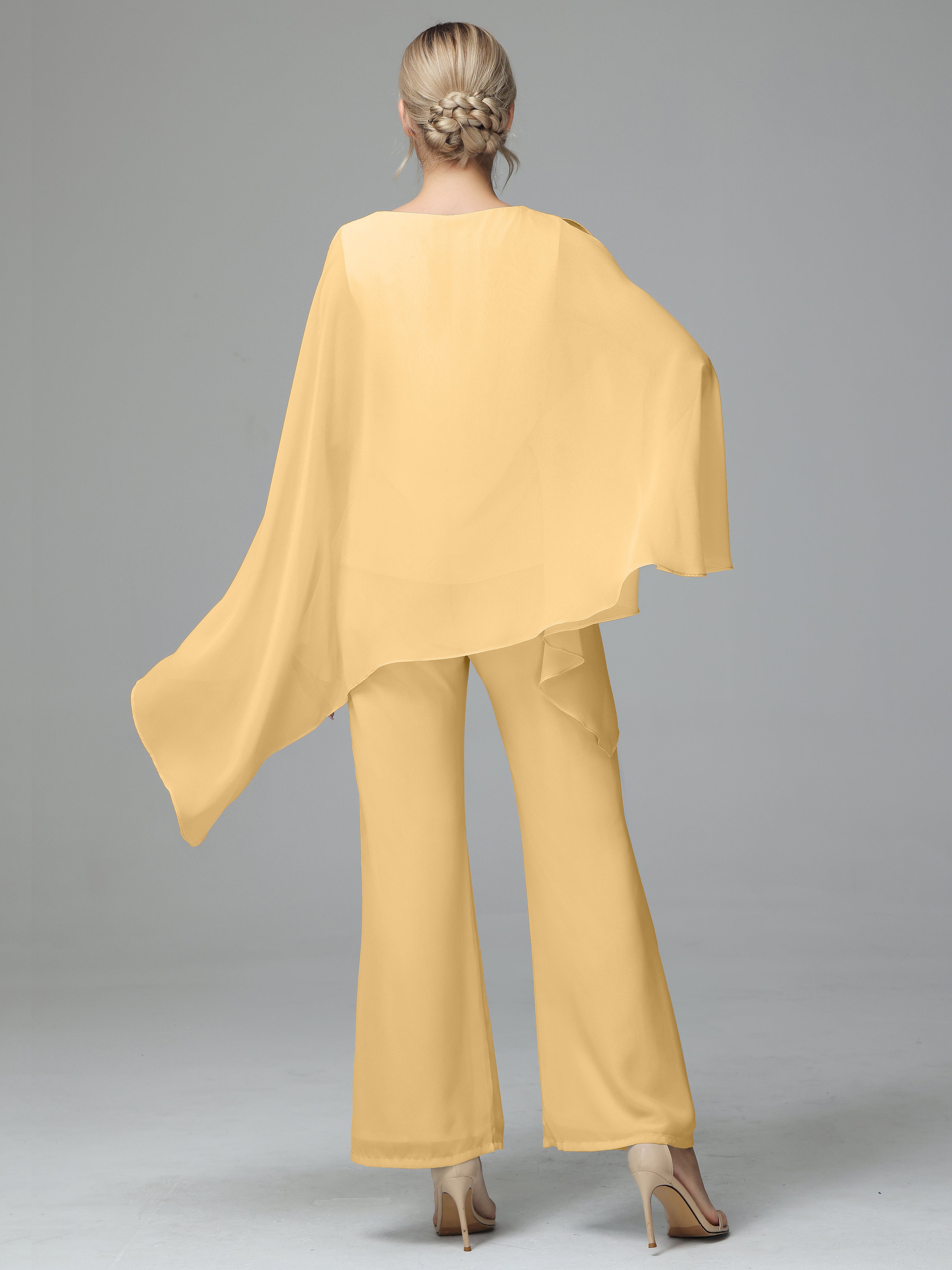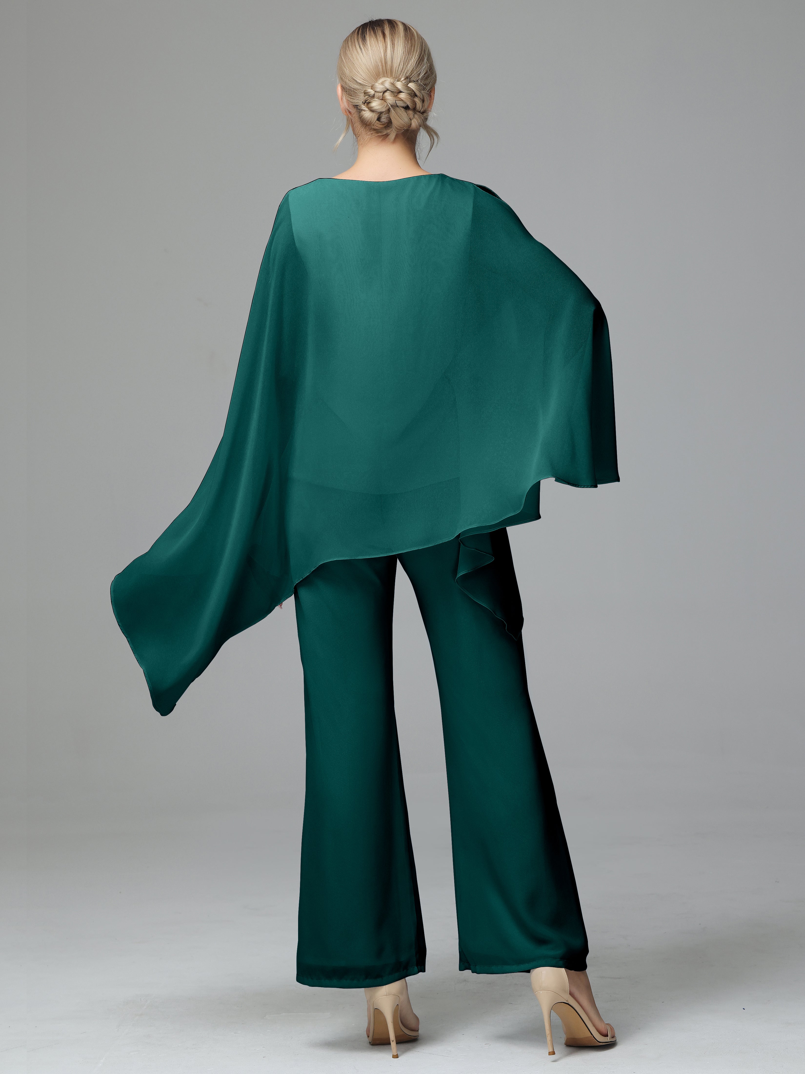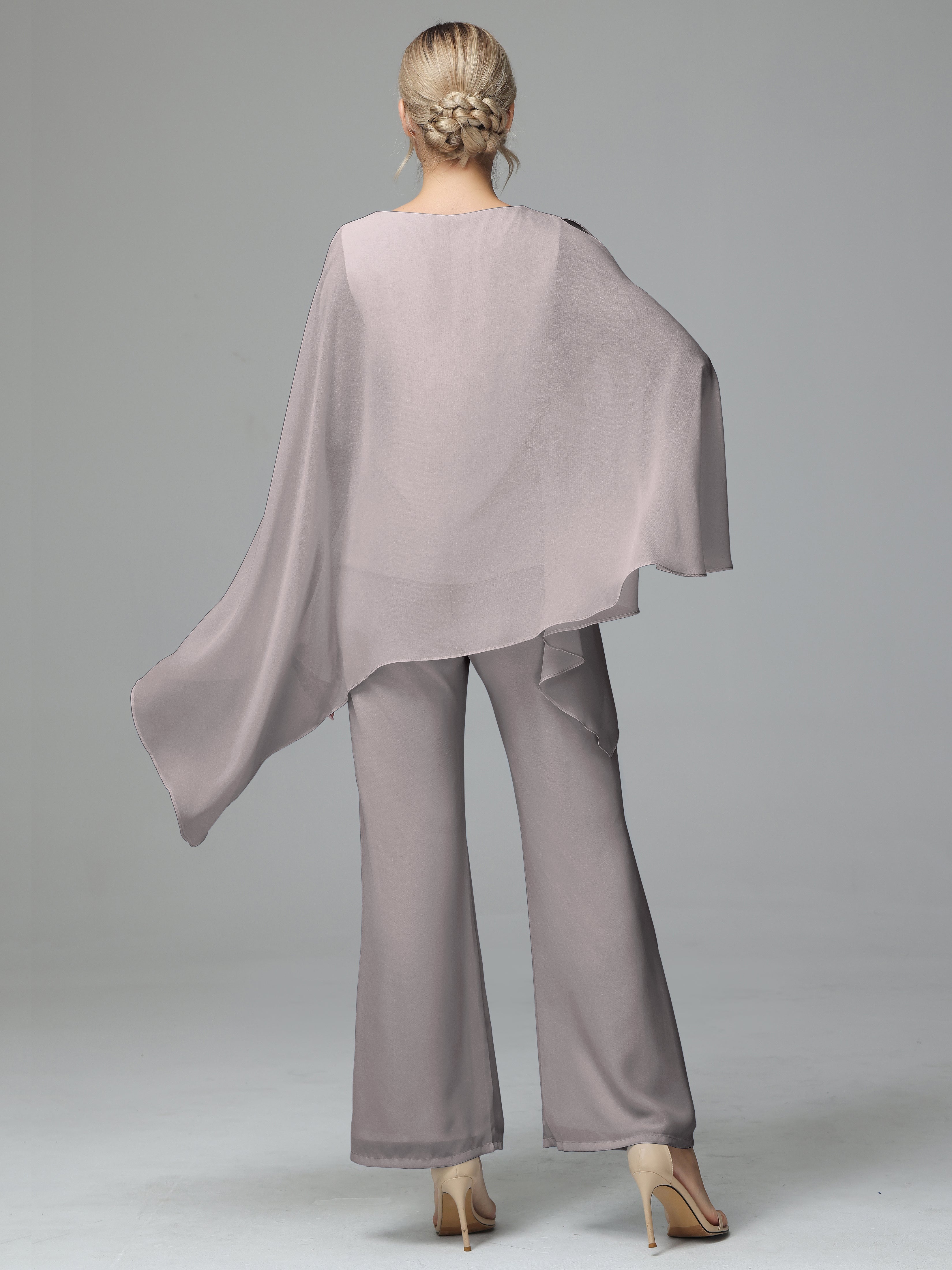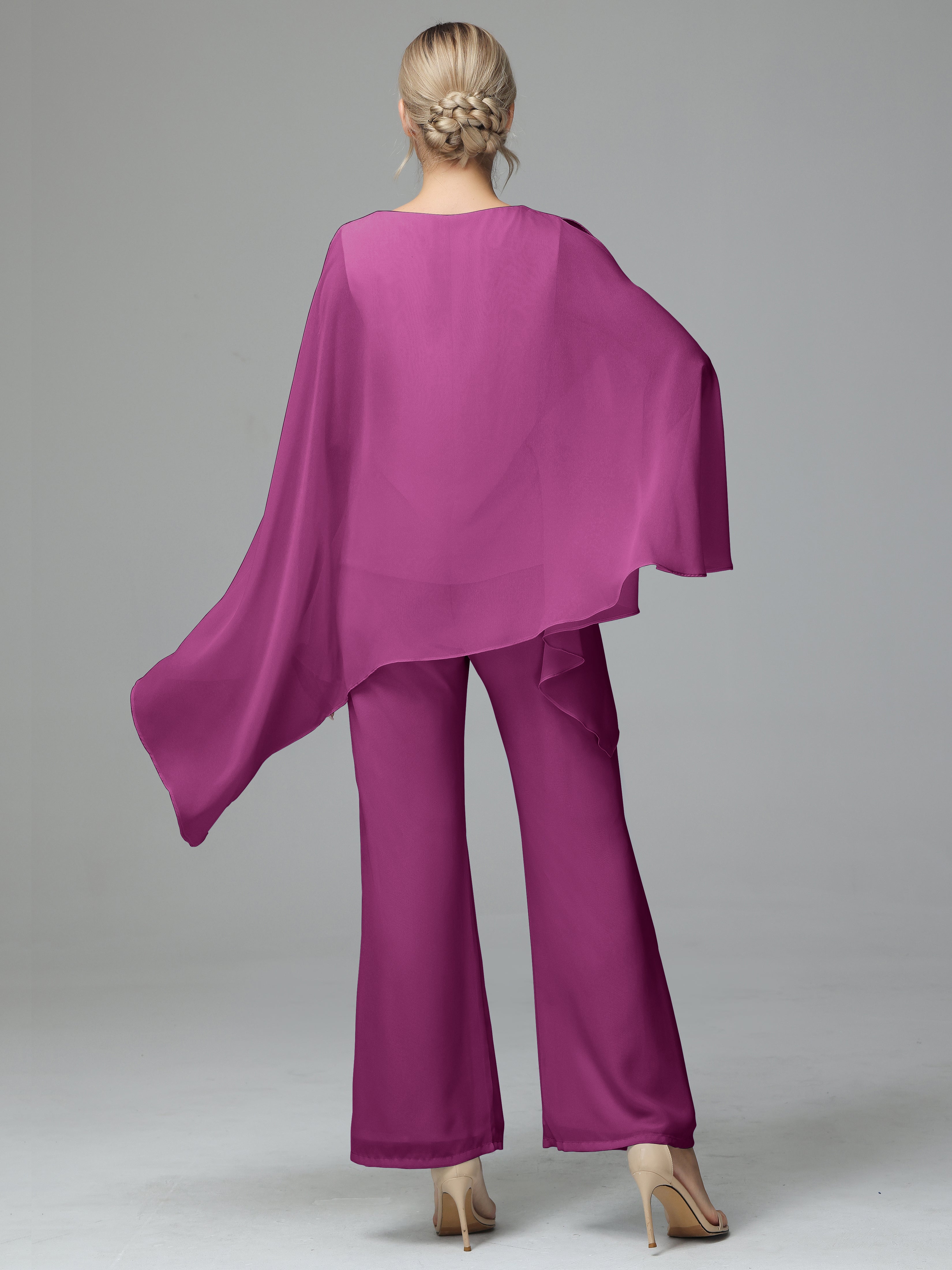 Half Sleeves V-Neck Chiffon Mother Of The Bride Dress Pants Suits