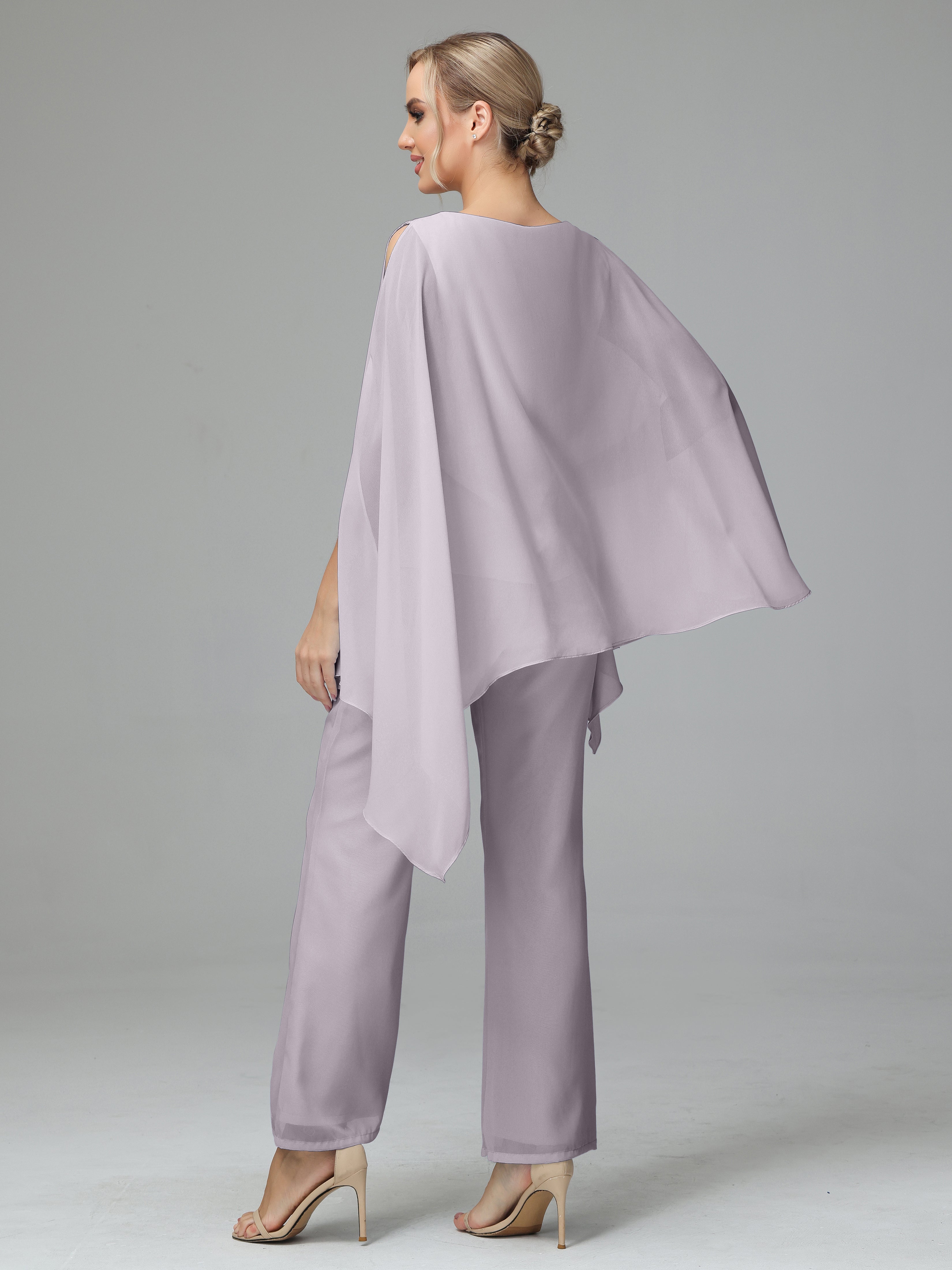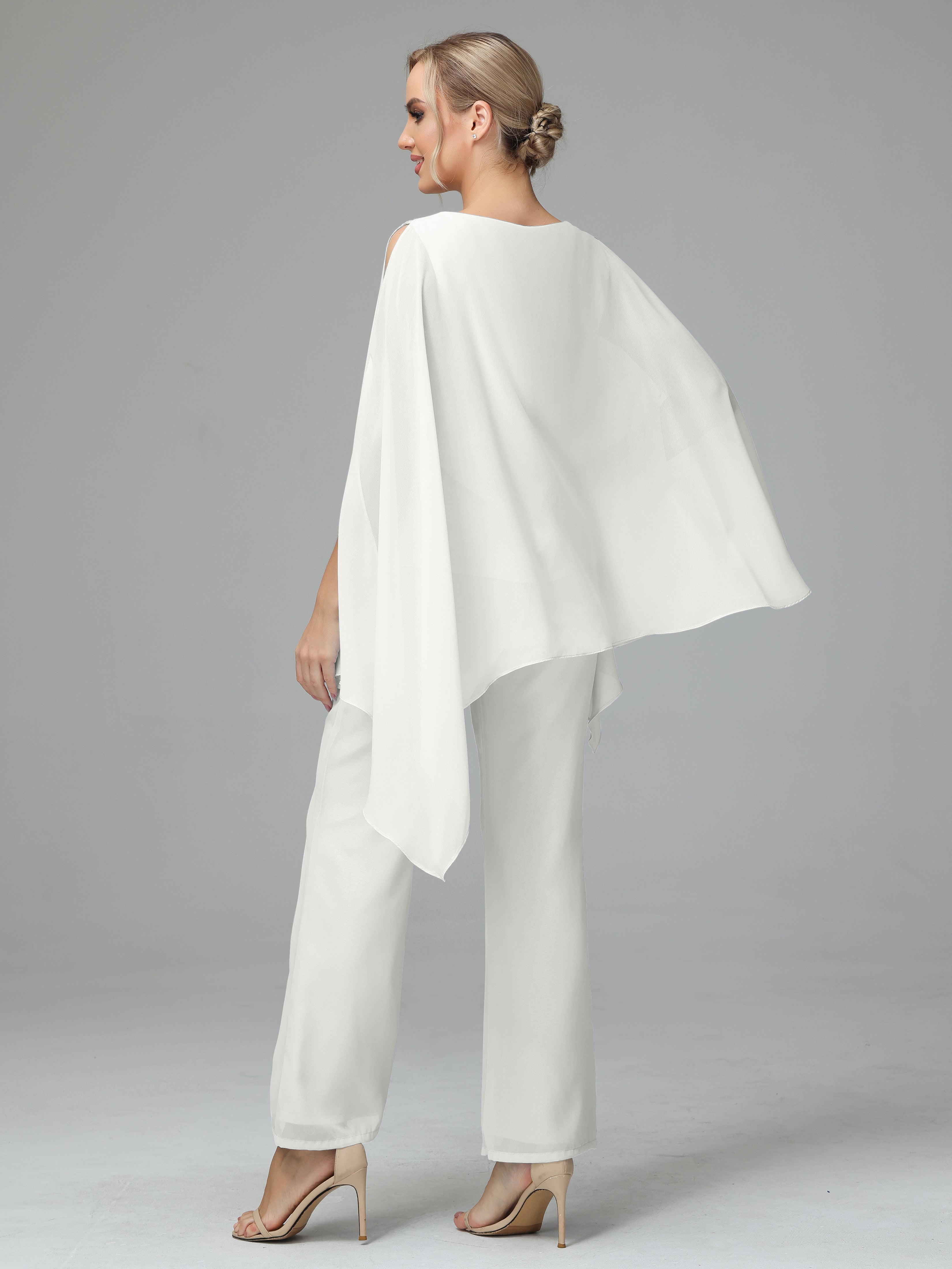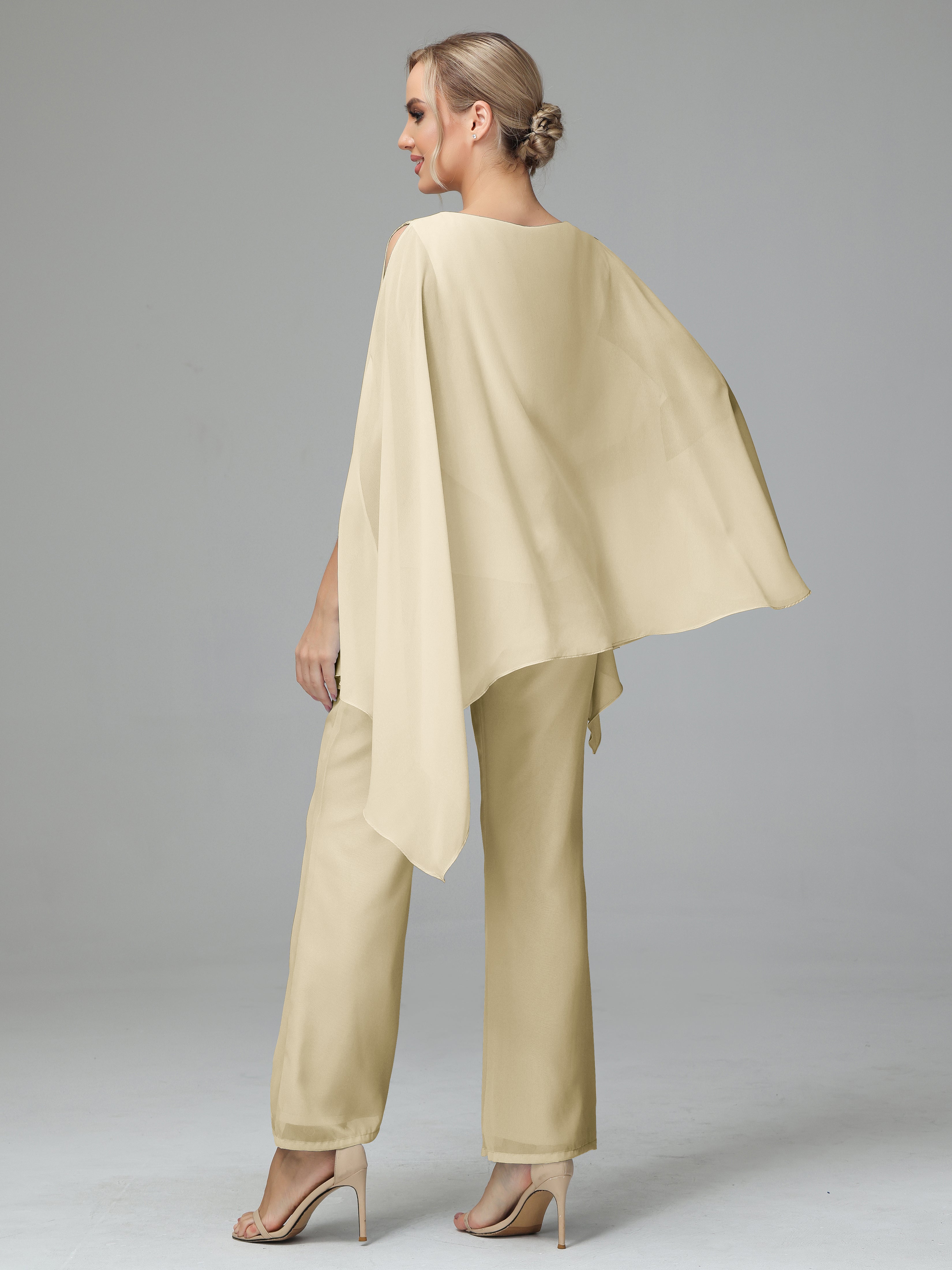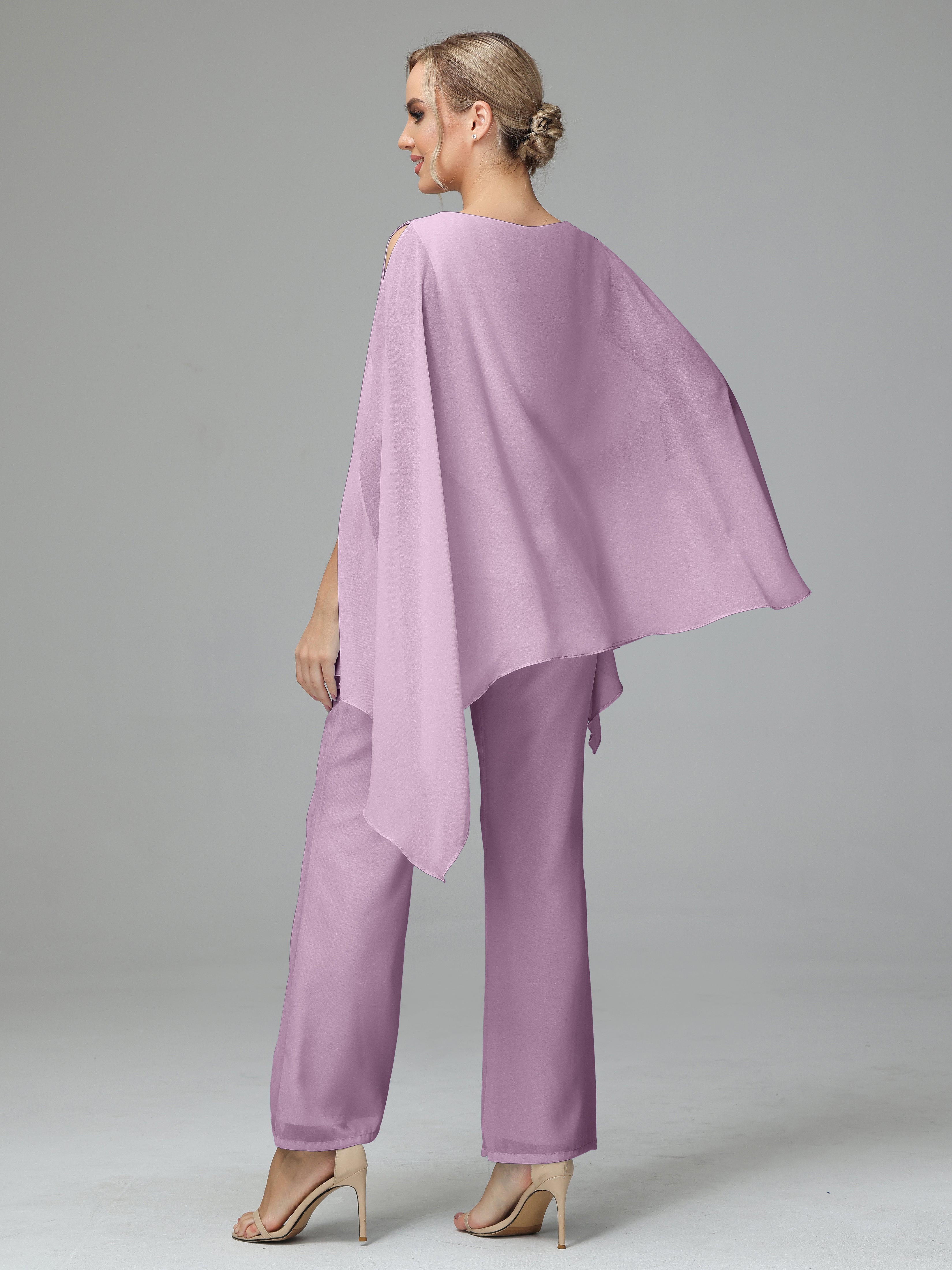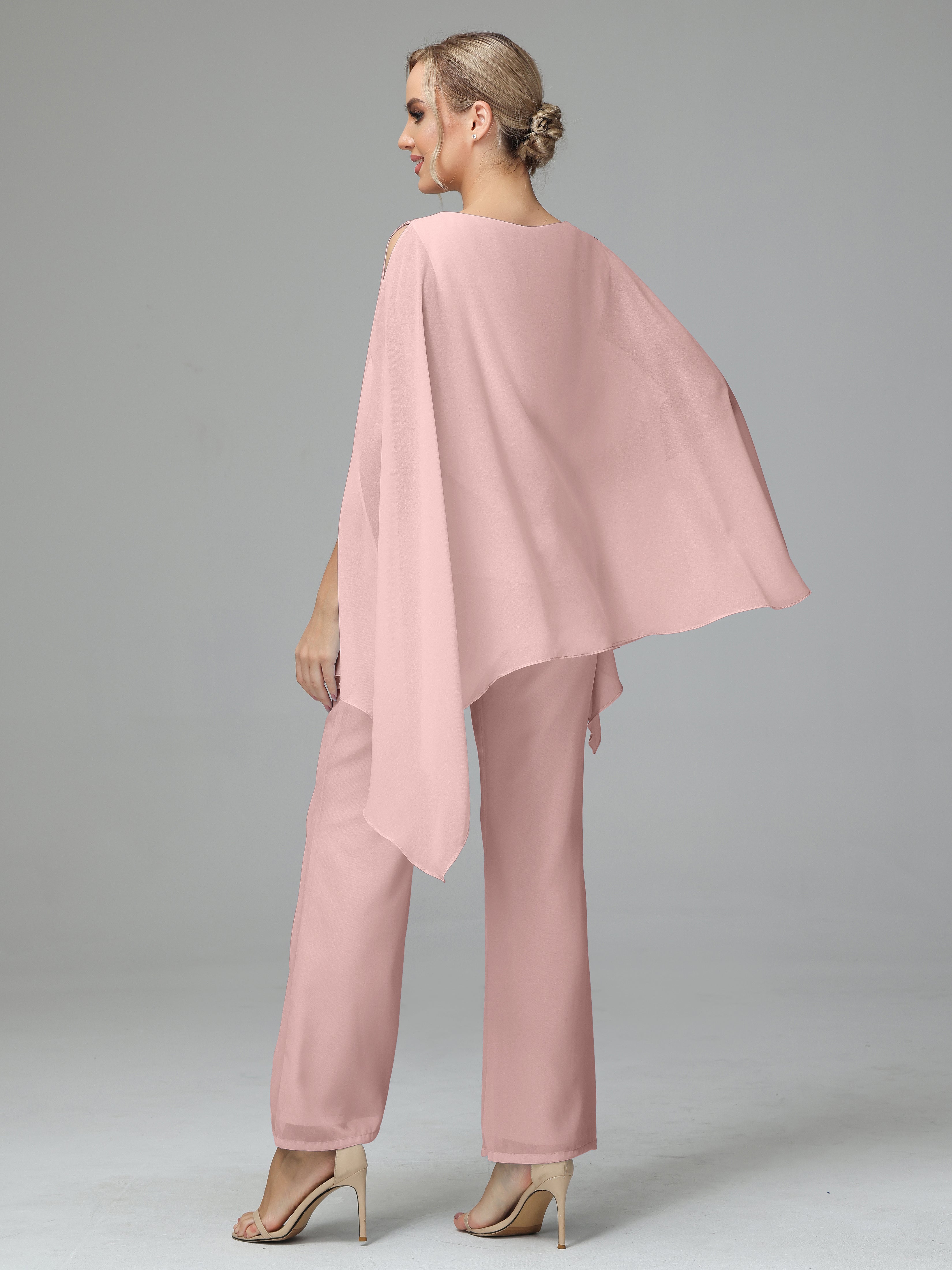 Half Sleeves V-Neck Chiffon Mother Of The Bride Dress Pants Suits