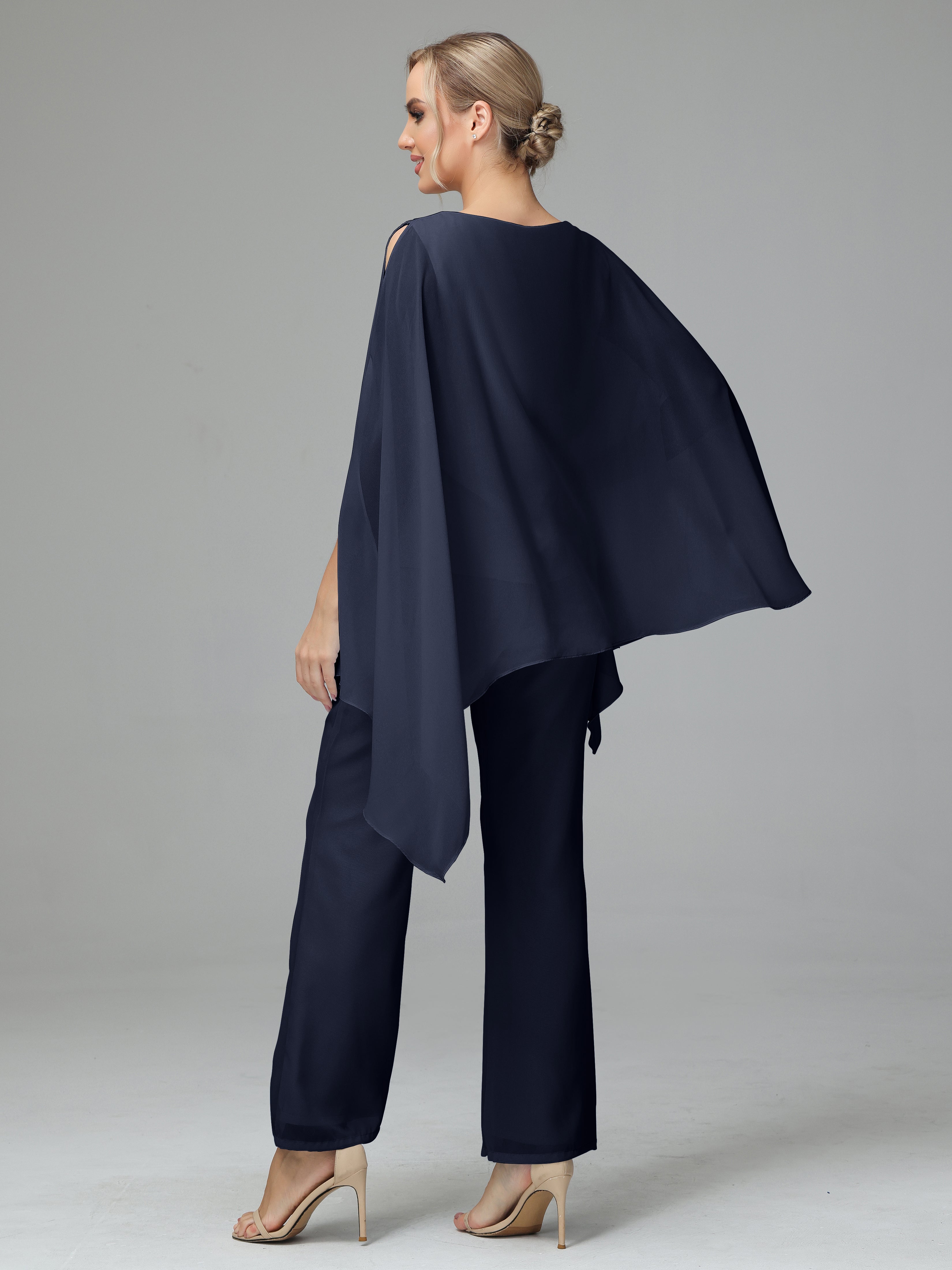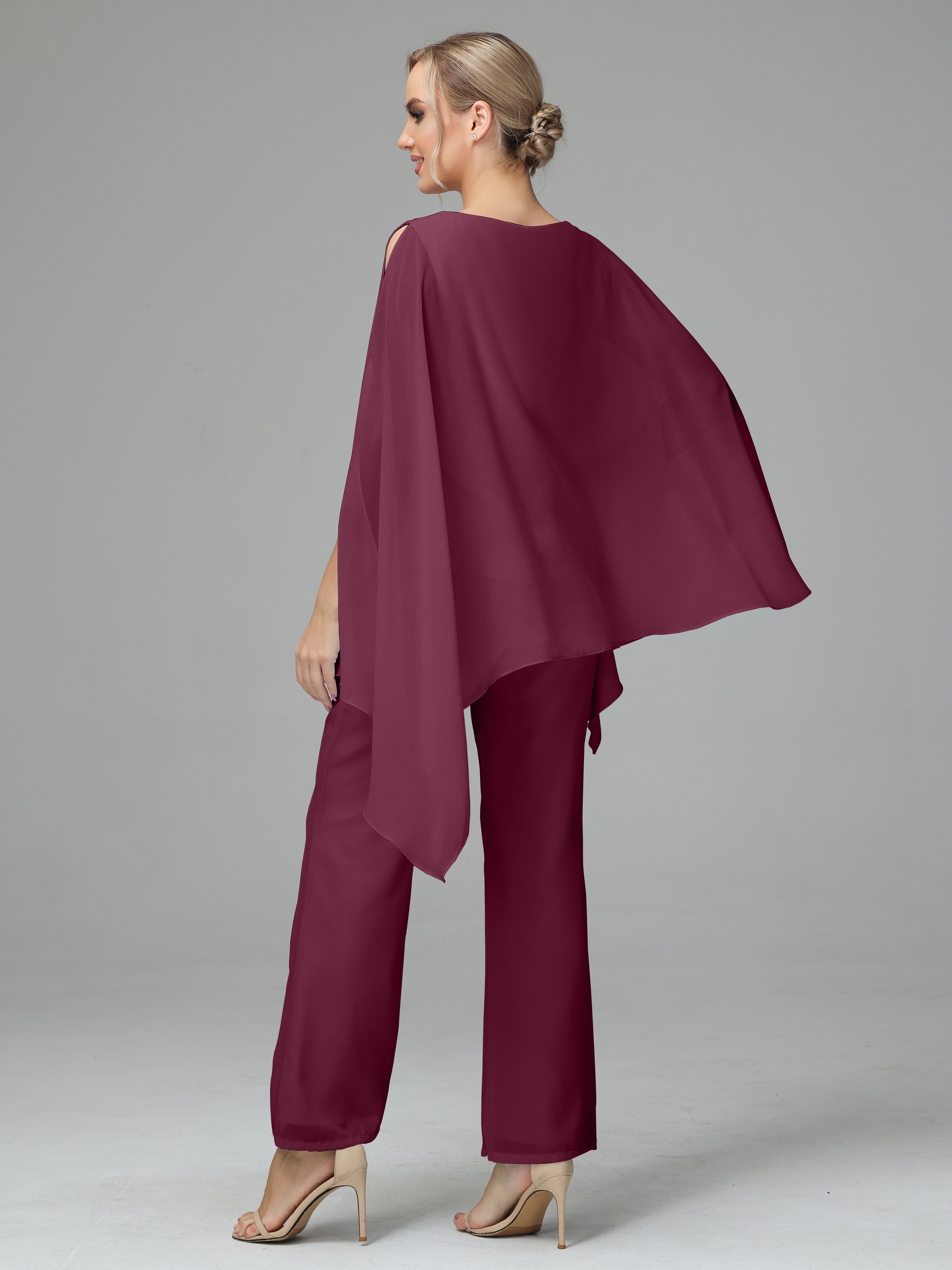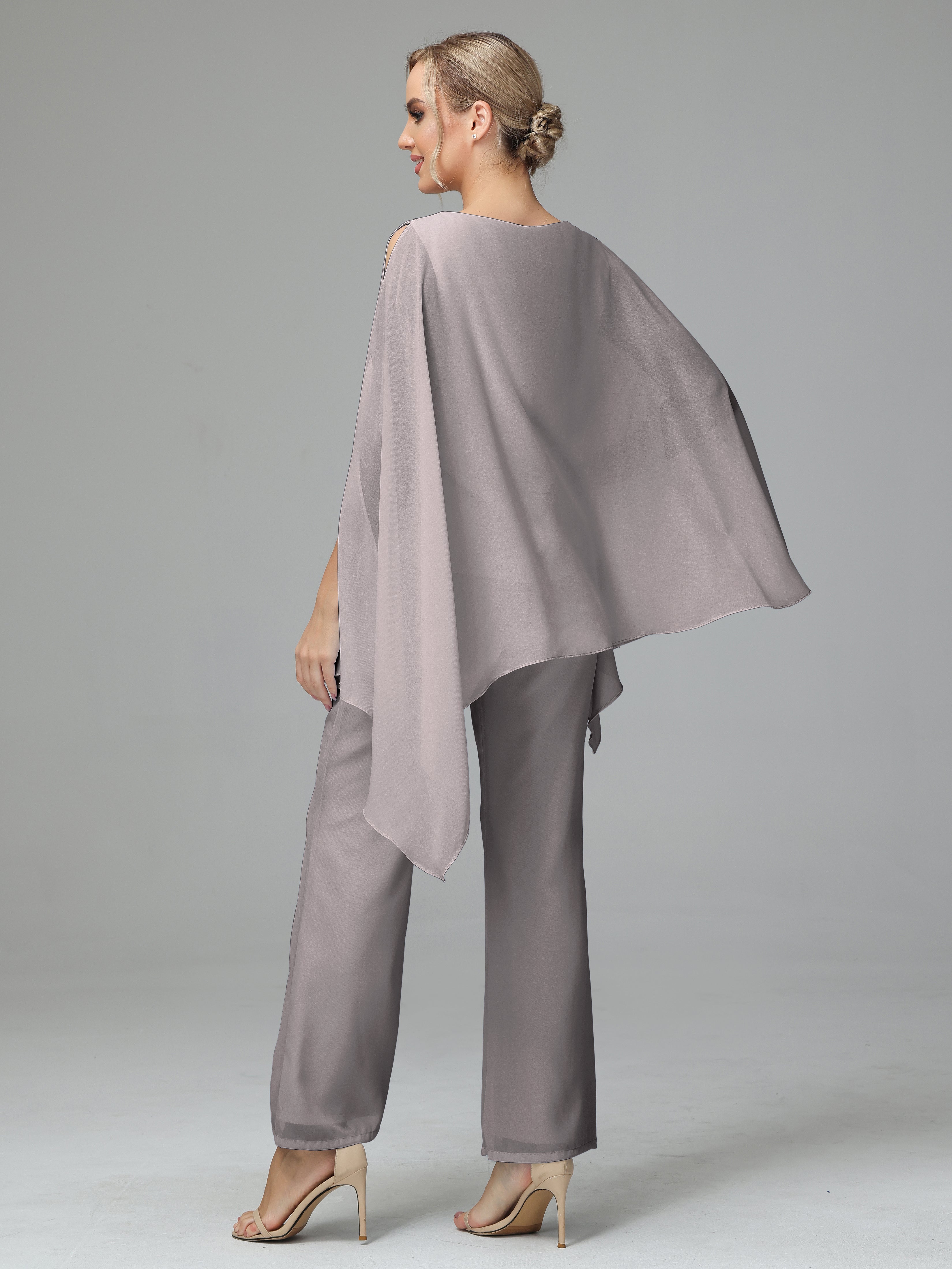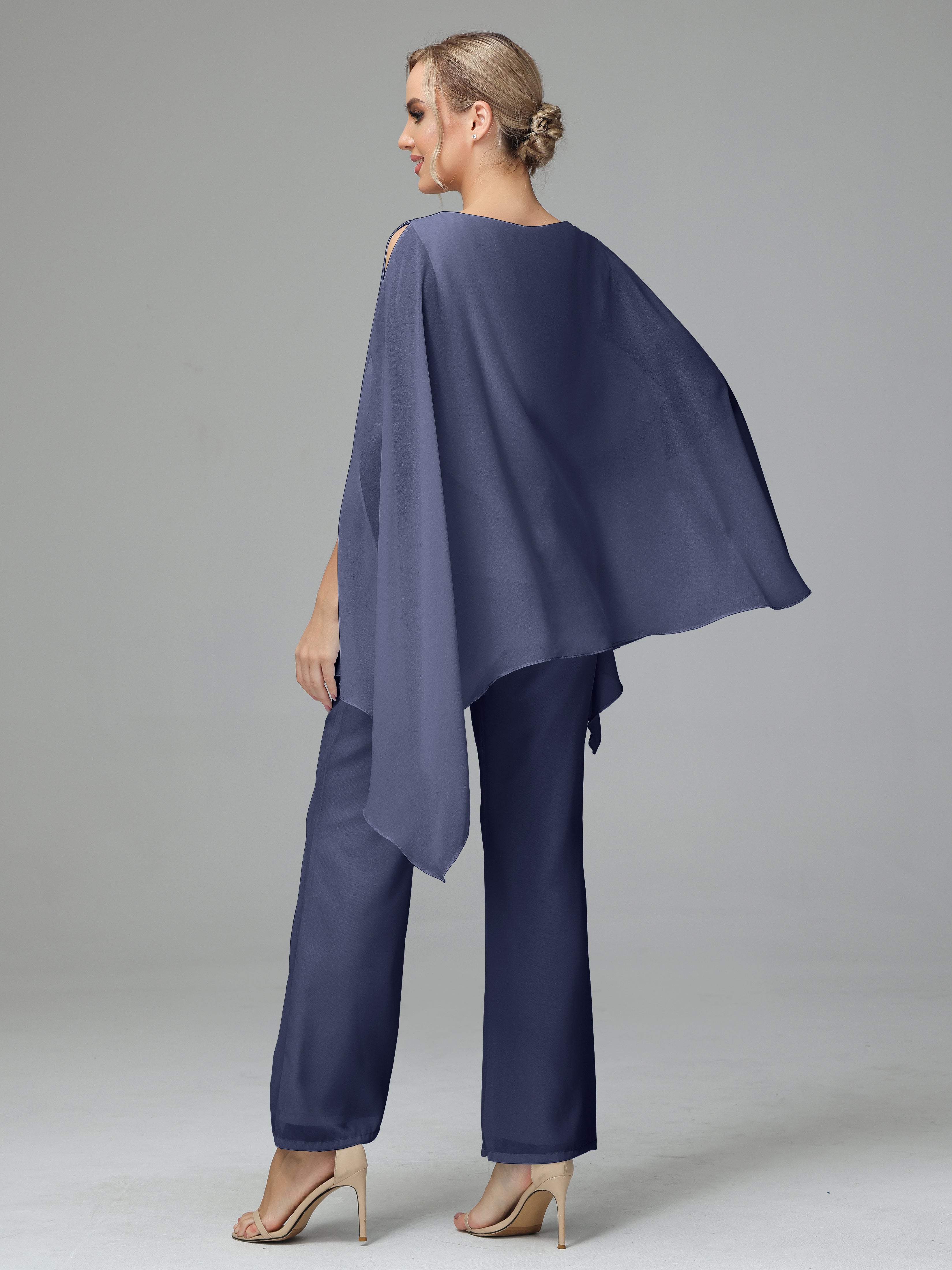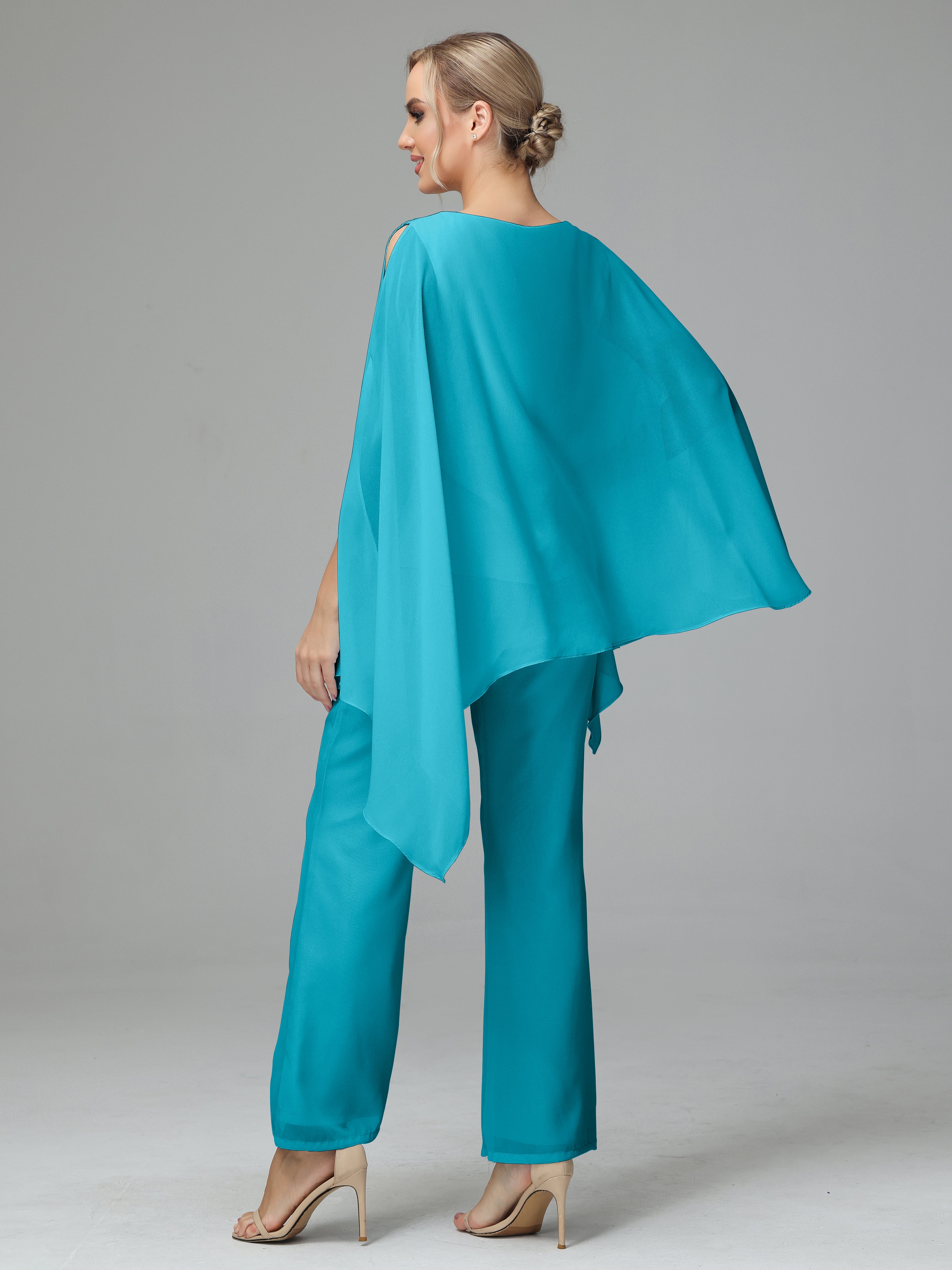 Half Sleeves V-Neck Chiffon Mother Of The Bride Dress Pants Suits