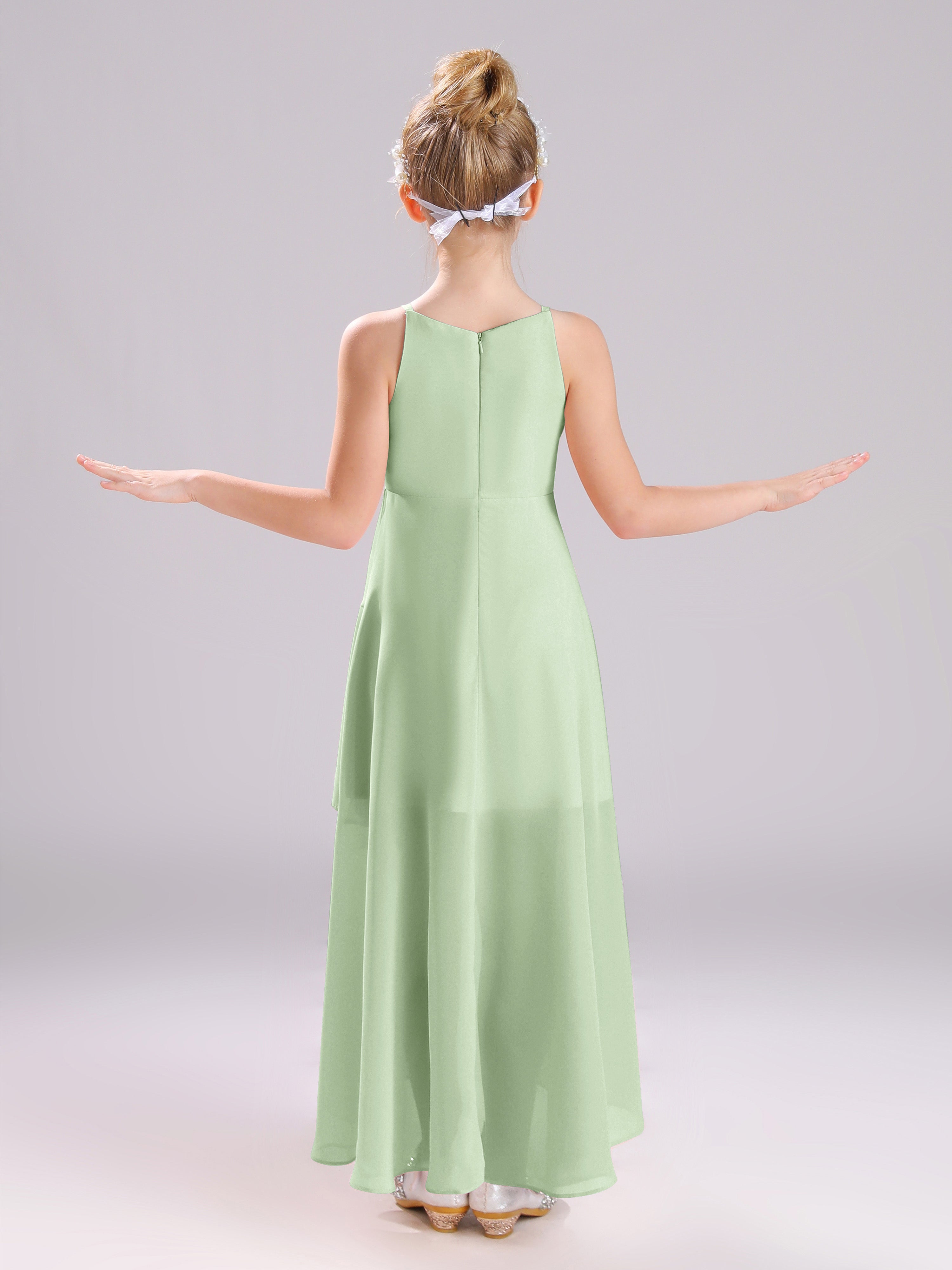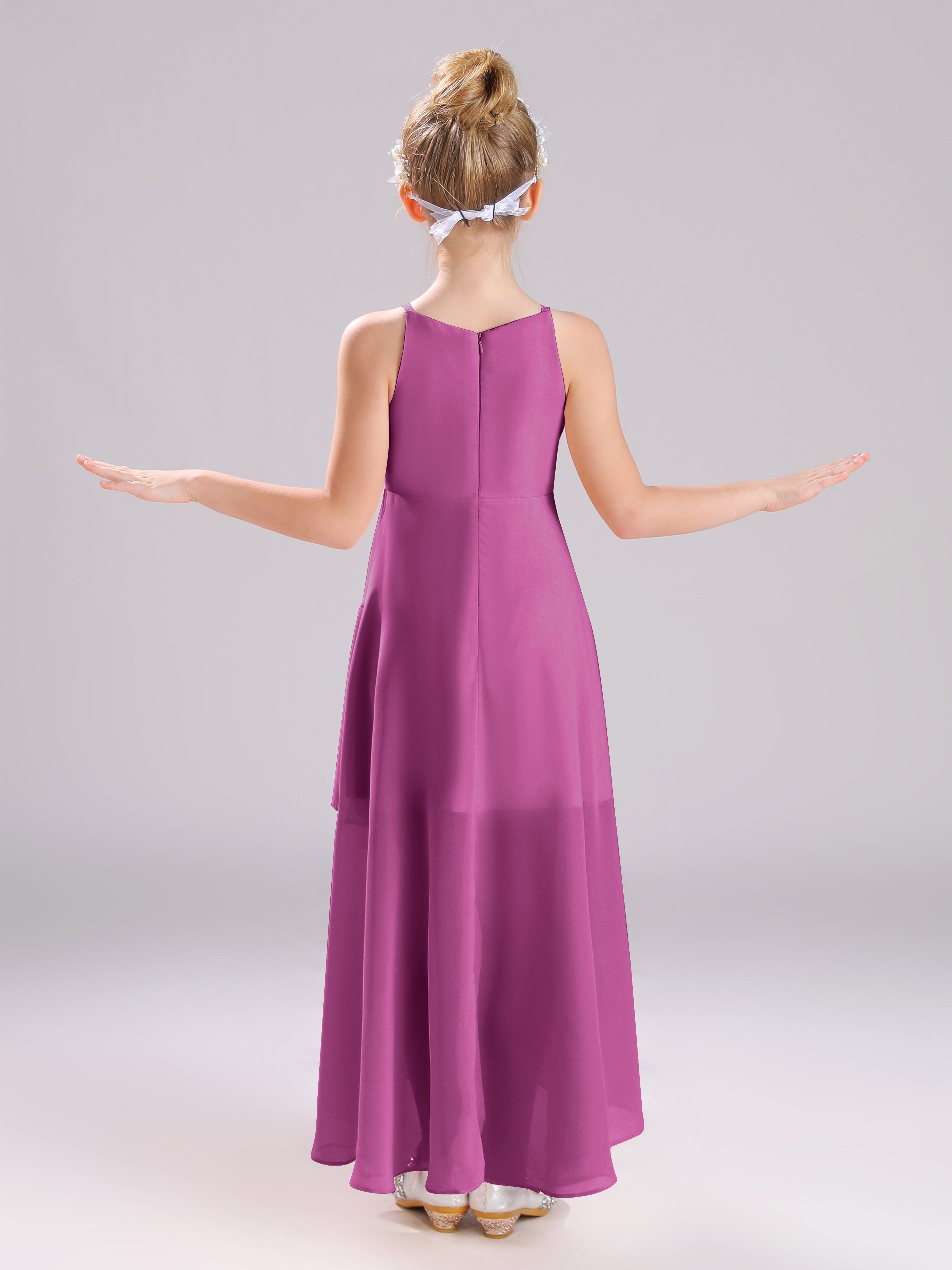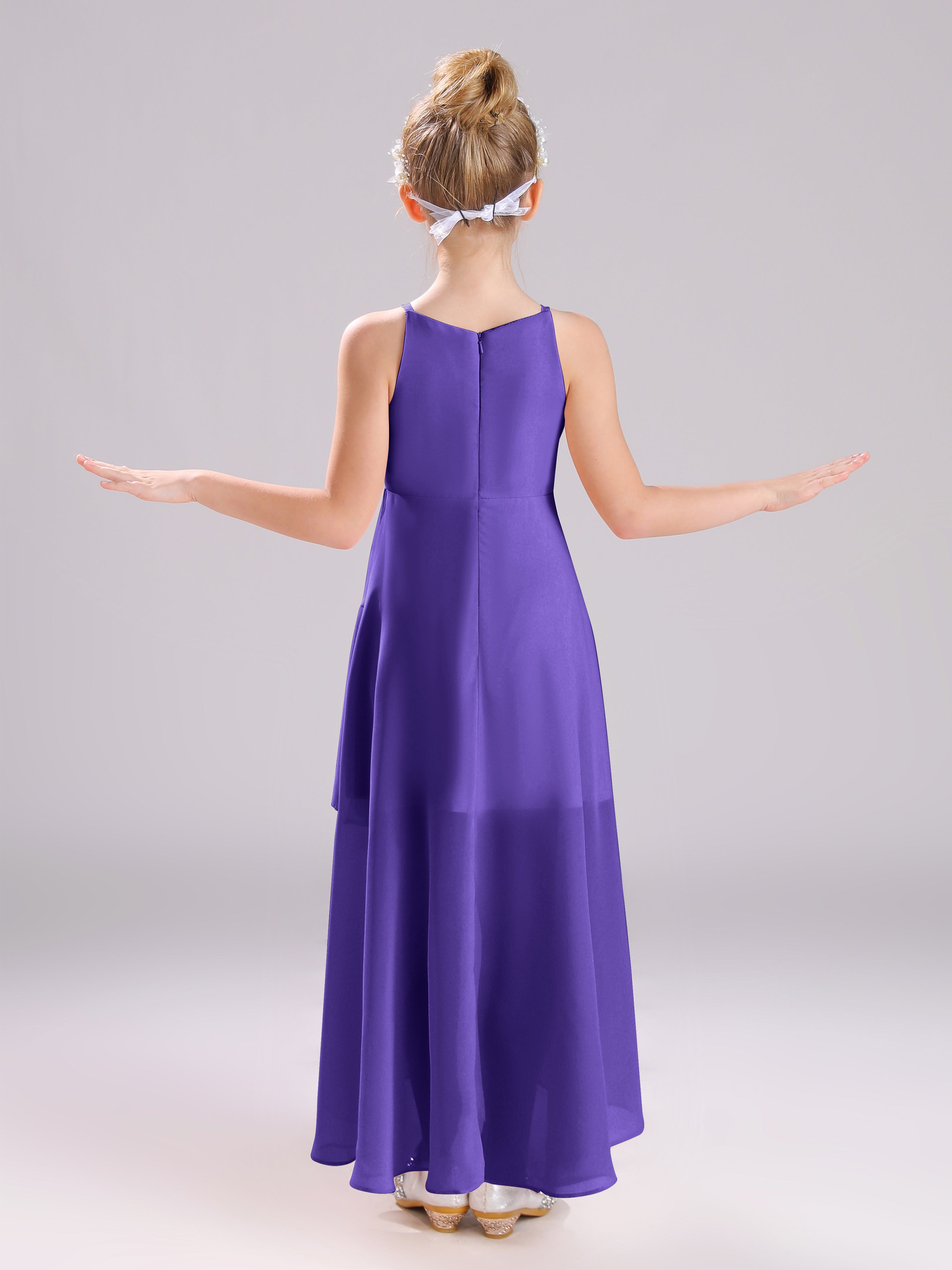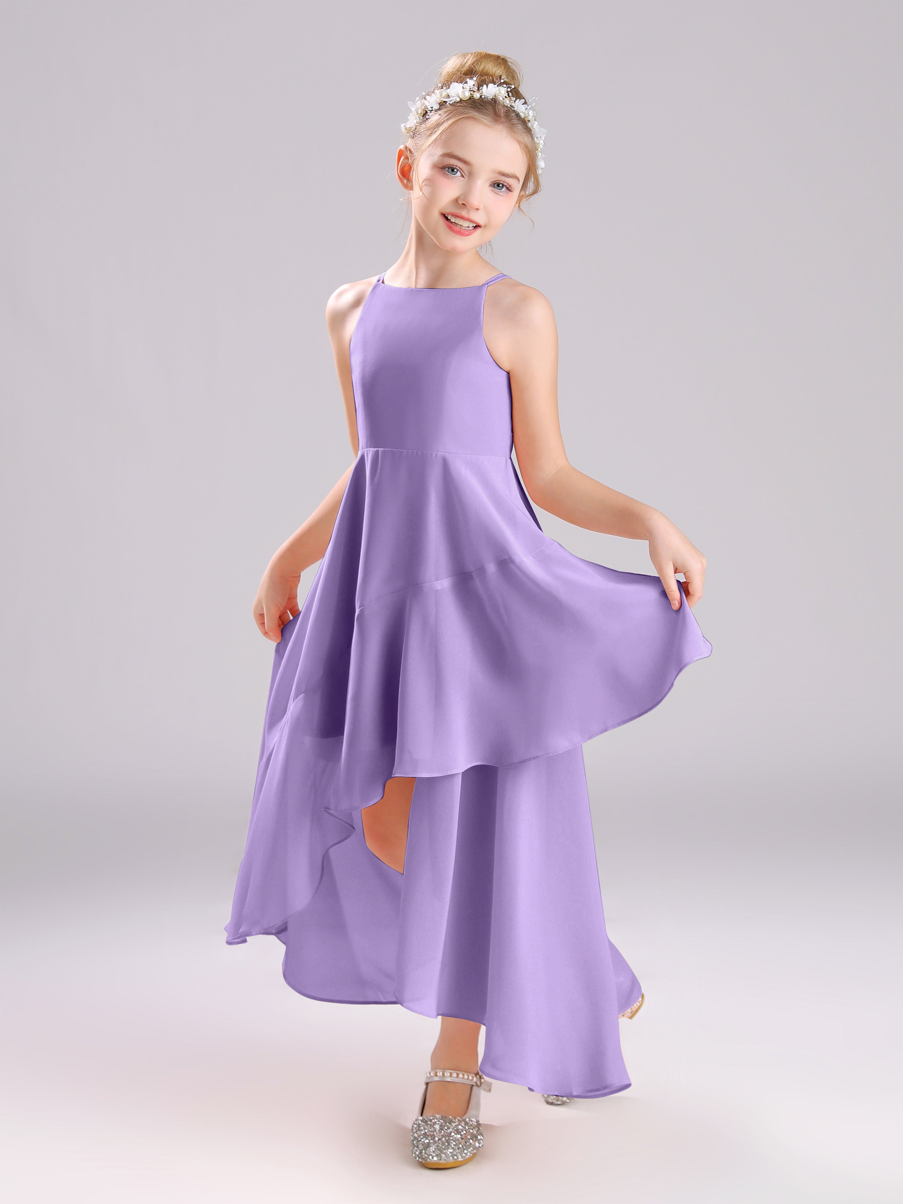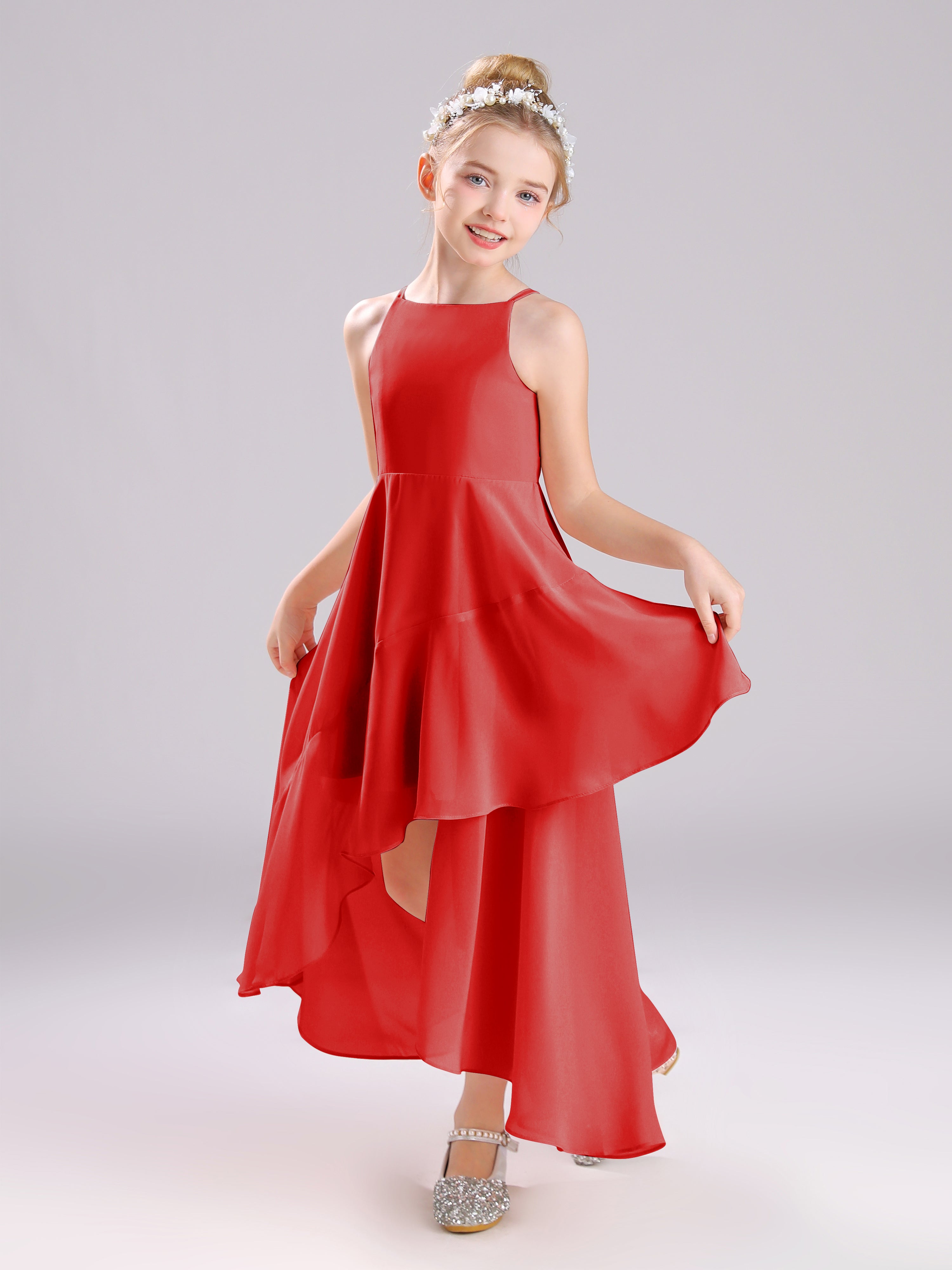 High-Low Ruffles Sleeveless Chiffon Junior Bridesmaid Dresses